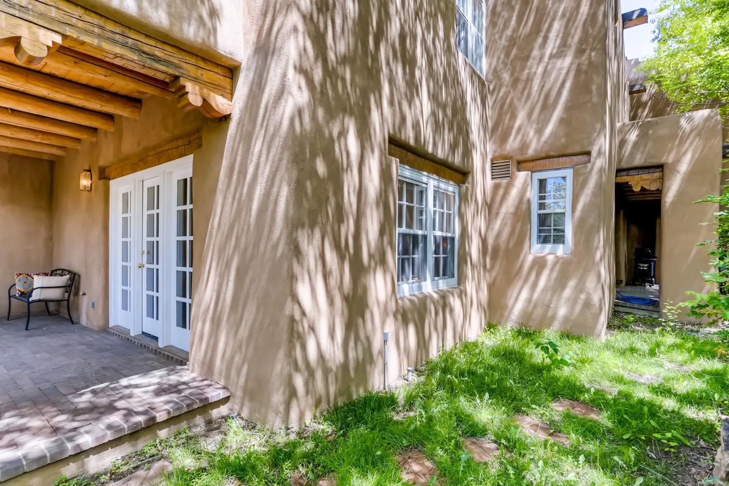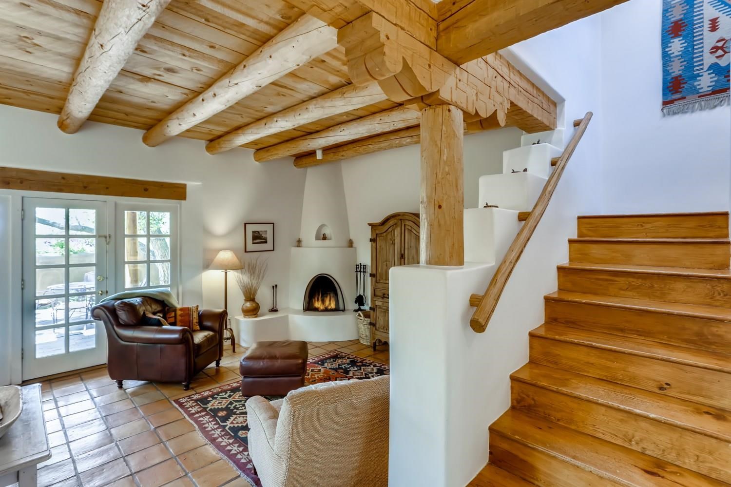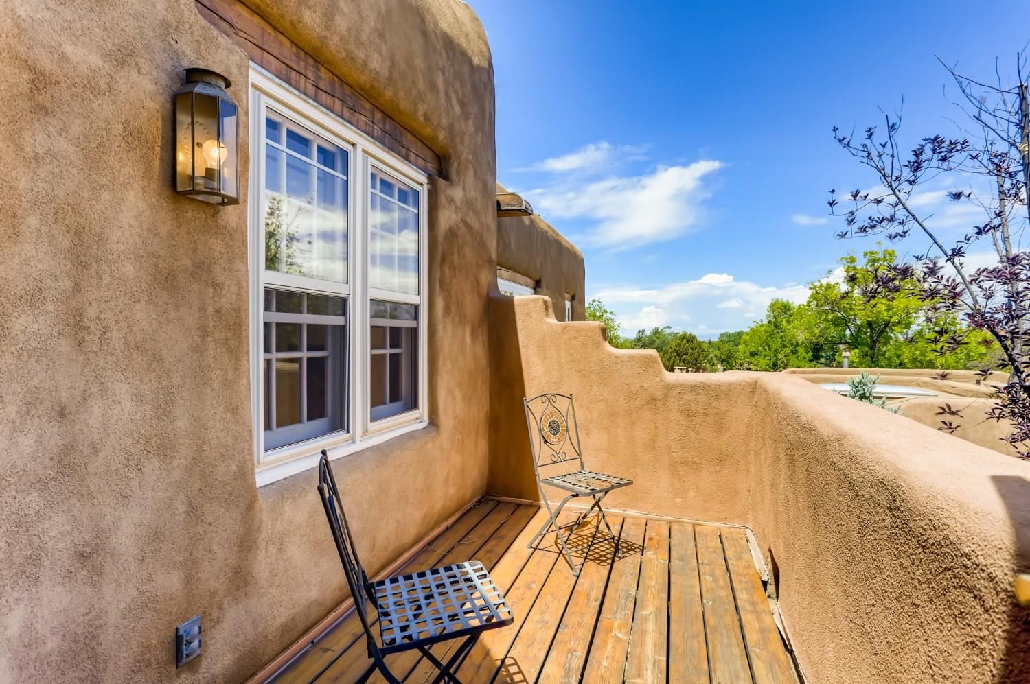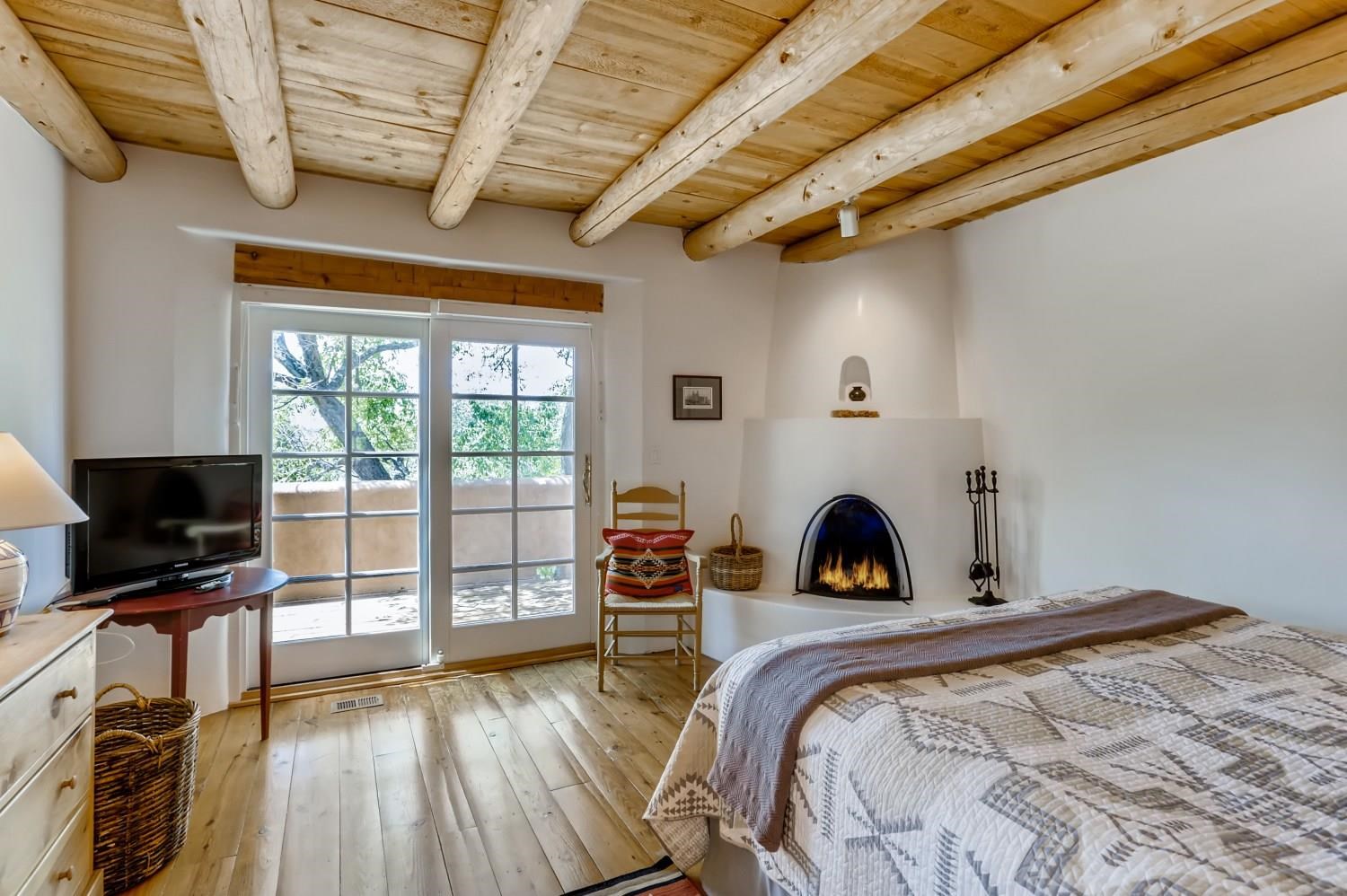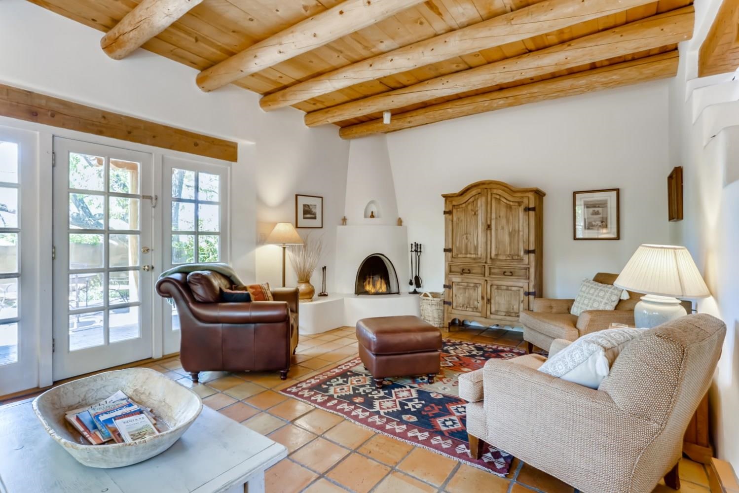 Enter Unit 10 at Campanilla Compound through a gated, landscaped entry garden. Inside find all the features that have long defined gracious Santa Fe homes: Viga ceilings through out, kiva fireplaces in both bedrooms and in the living room, Saltillo tile floors, Talavera in the kitchen and all three baths. French doors open up to a private and spacious back yard. And located in a quiet community just blocks from the Plaza! Intensely managed, including an established and successful rental program. All the best features in a vacation home at one-fourth of the cost. Quarter ownership interest in Unit 10.