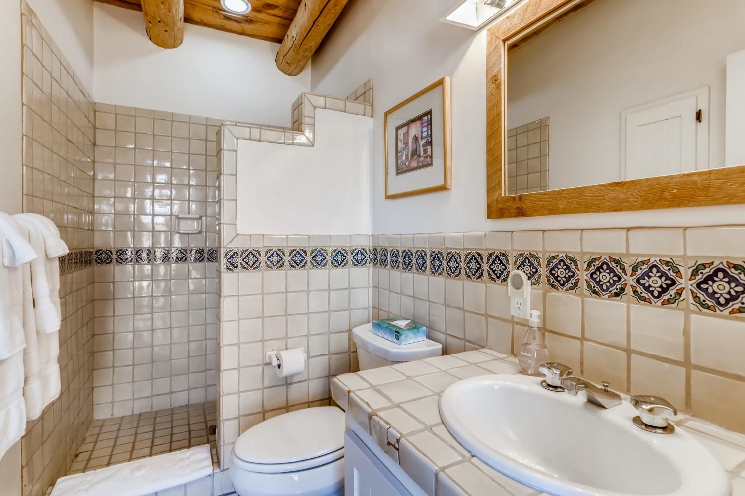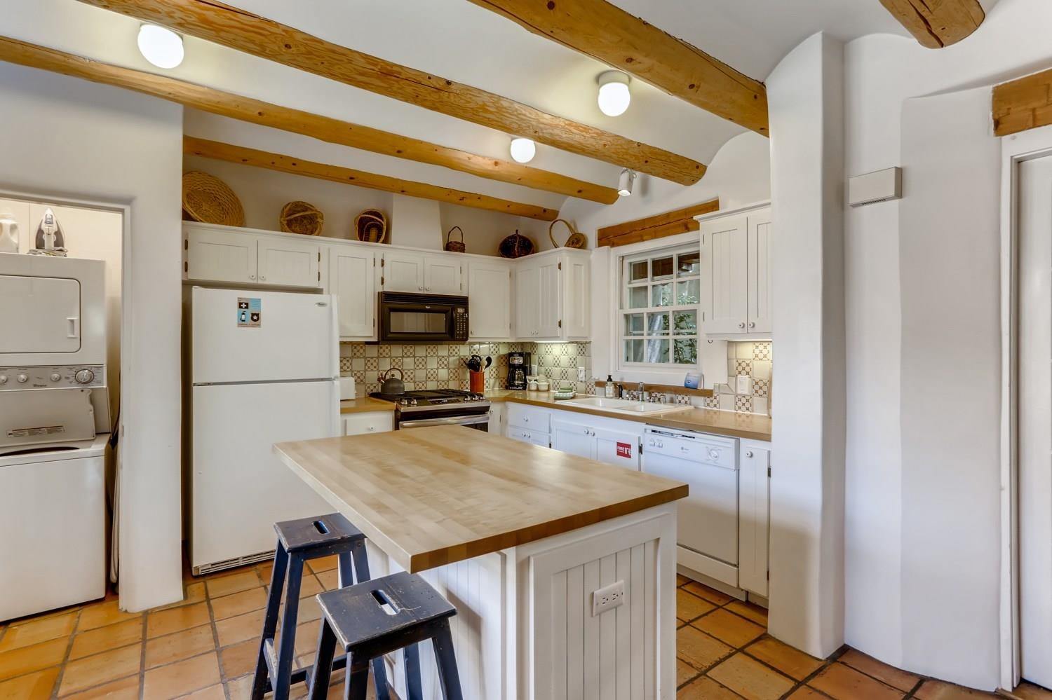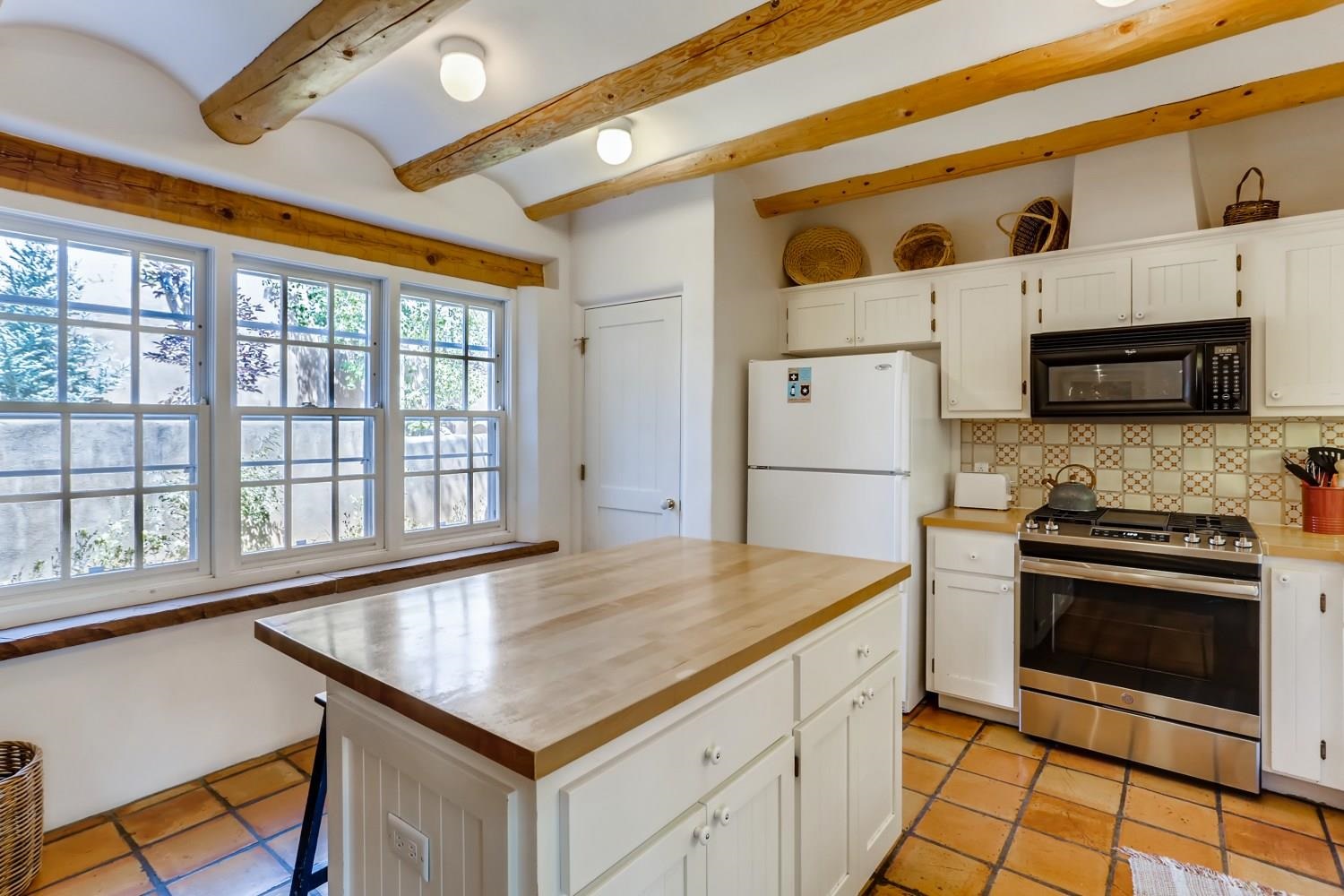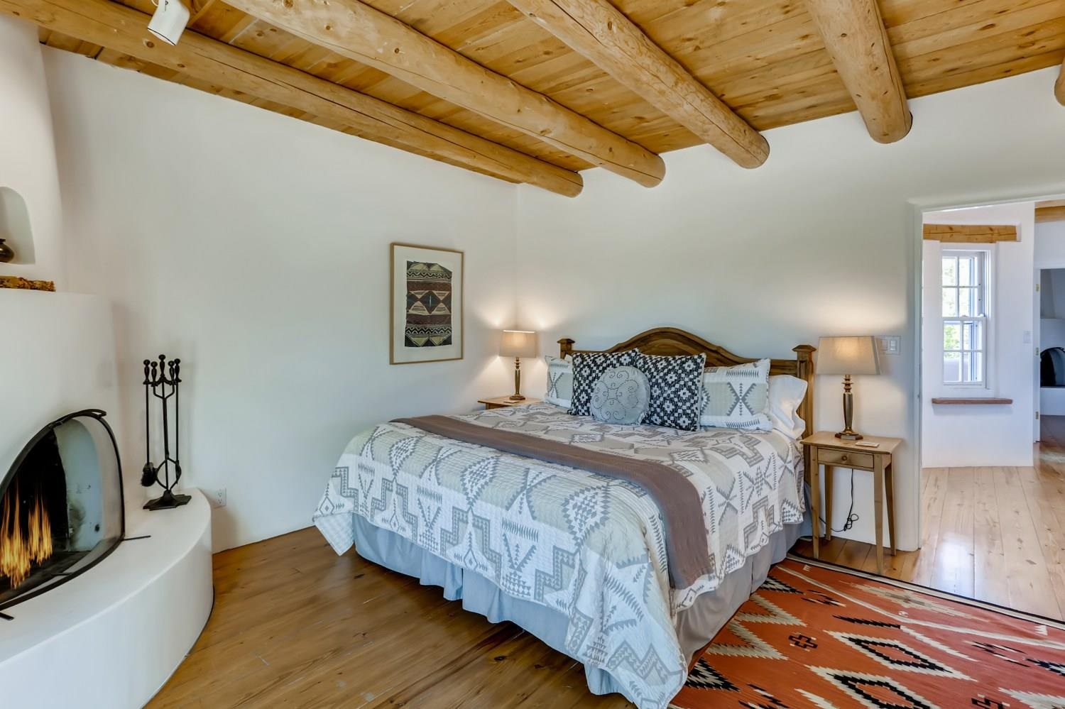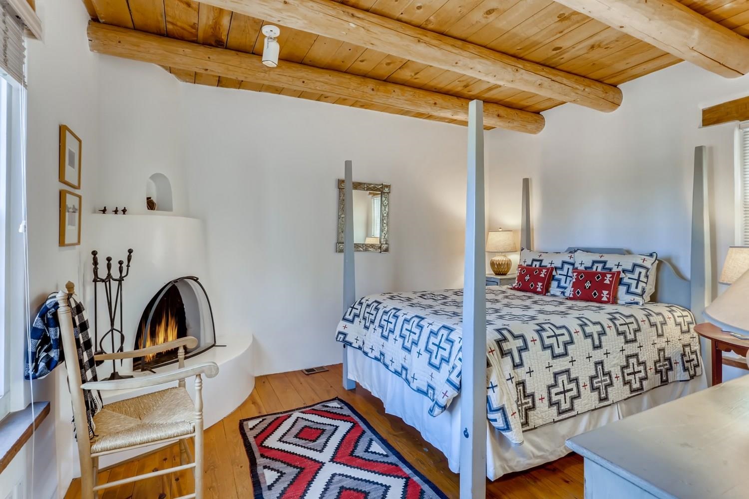 Enter Unit 10 at Campanilla Compound through a gated, landscaped entry garden. Inside find all the features that have long defined gracious Santa Fe homes: Viga ceilings through out, kiva fireplaces in both bedrooms and in the living room, Saltillo tile floors, Talavera in the kitchen and all three baths. French doors open up to a private and spacious back yard. And located in a quiet community just blocks from the Plaza! Intensely managed, including an established and successful rental program. All the best features in a vacation home at one-fourth of the cost. Quarter ownership interest in Unit 10.