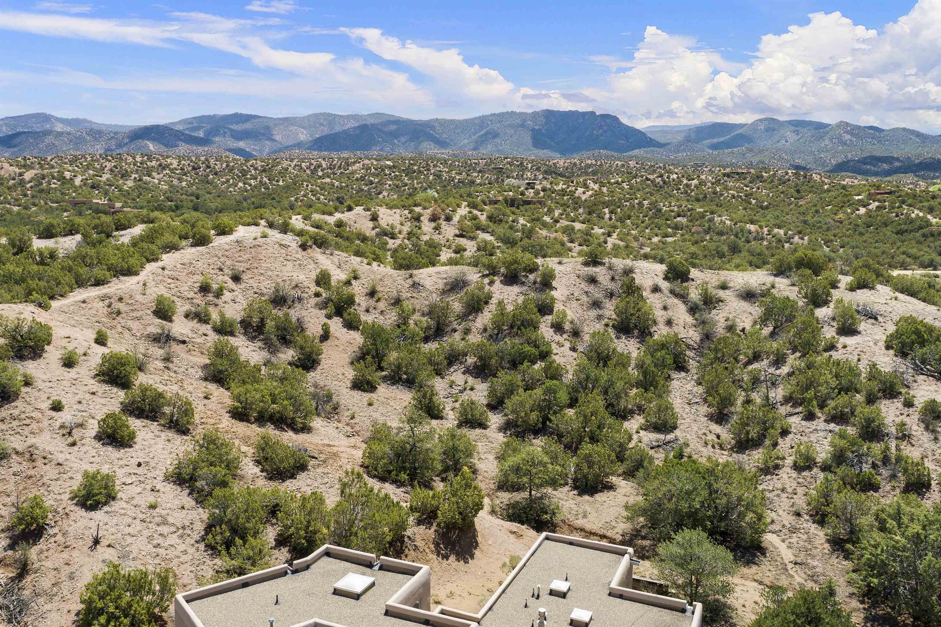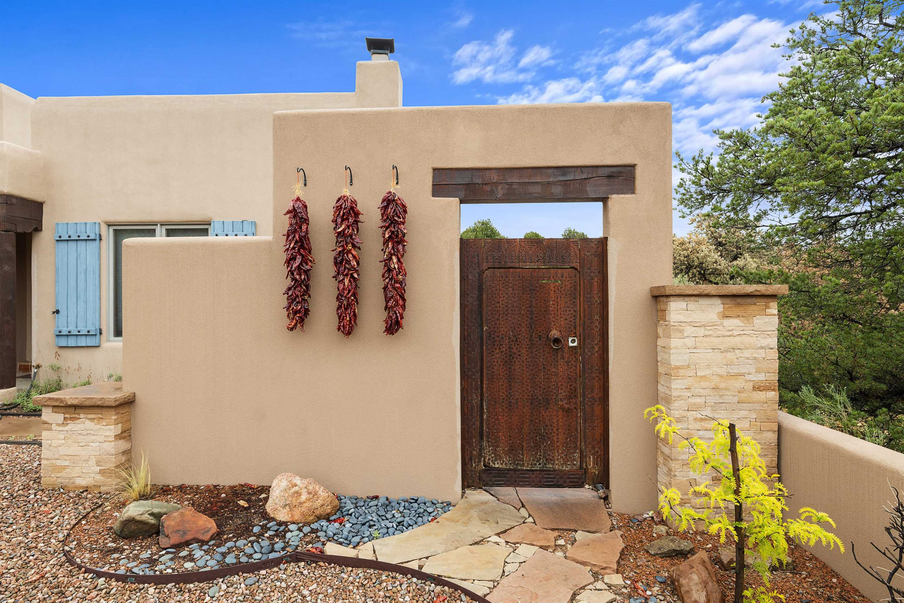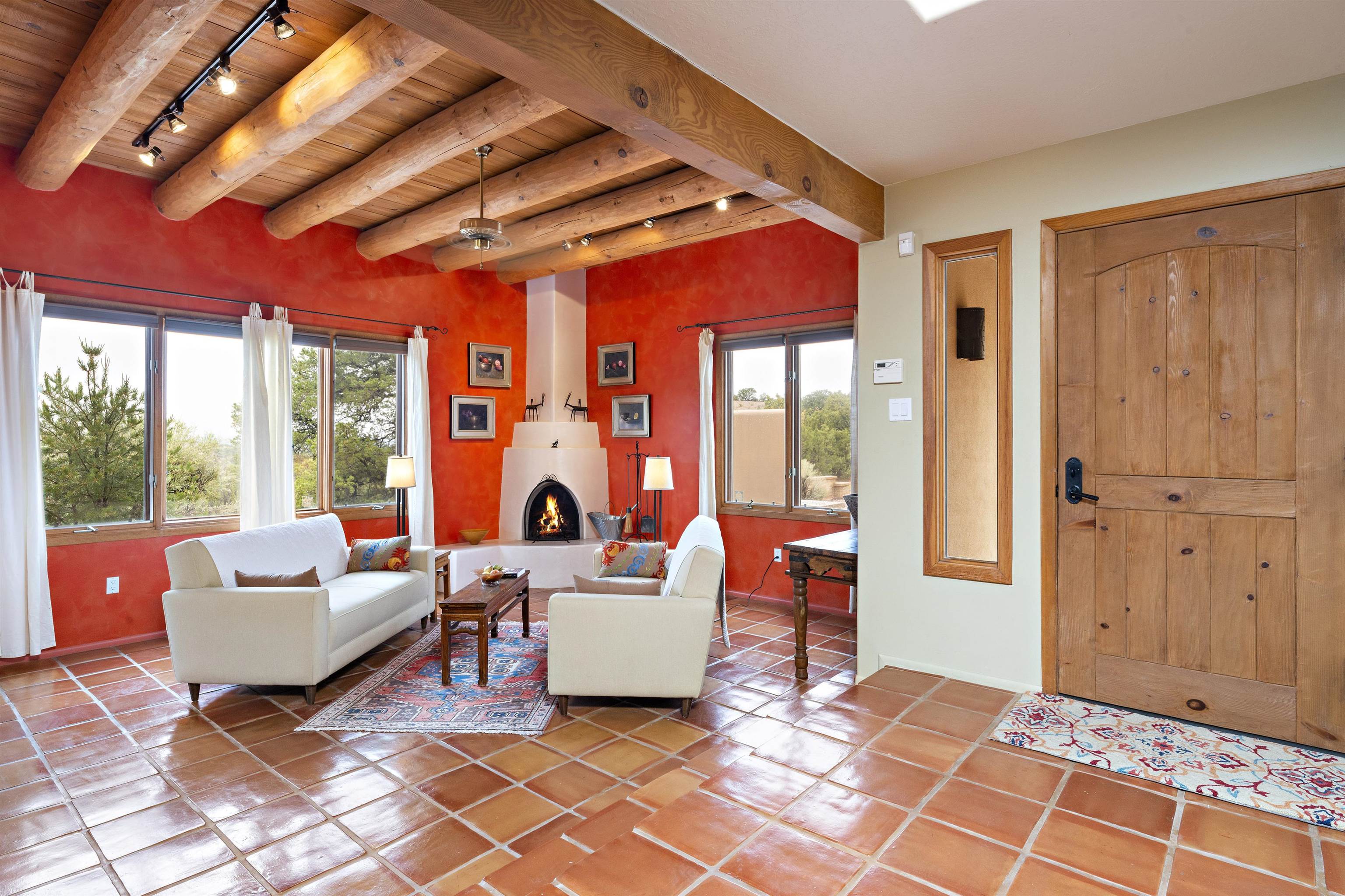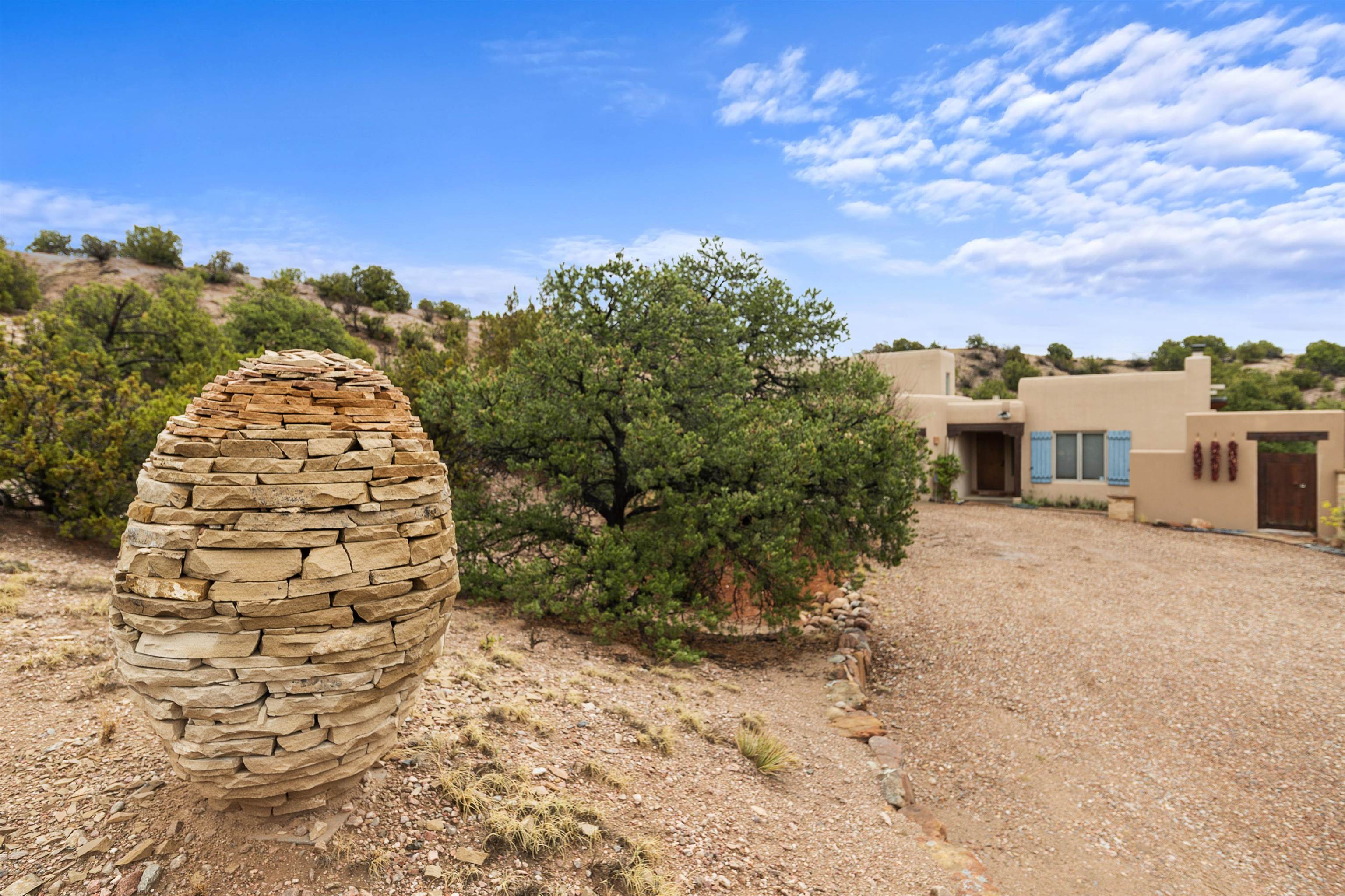 Absolutely charming Los Caminitos property set in the magical rolling hills of Tesuque. The open floor plan allows for ease of entertaining and sweeping views from the living areas. The primary suite is located upstairs from the living areas and guest bedrooms, and offers an elevated view to the mountains. The downstairs guest suite features its own private entry, allowing for privacy and convenience. An additional guest bedroom or office/den allows for additional flexible living. Traditional Santa Fe style and colorful touches abound, all set on 7+ private acres. Los Caminitos offers residents a community clubhouse, pool, and tennis courts, and you are moments away from the Four Seasons Resort and 12 minutes to downtown Santa Fe.