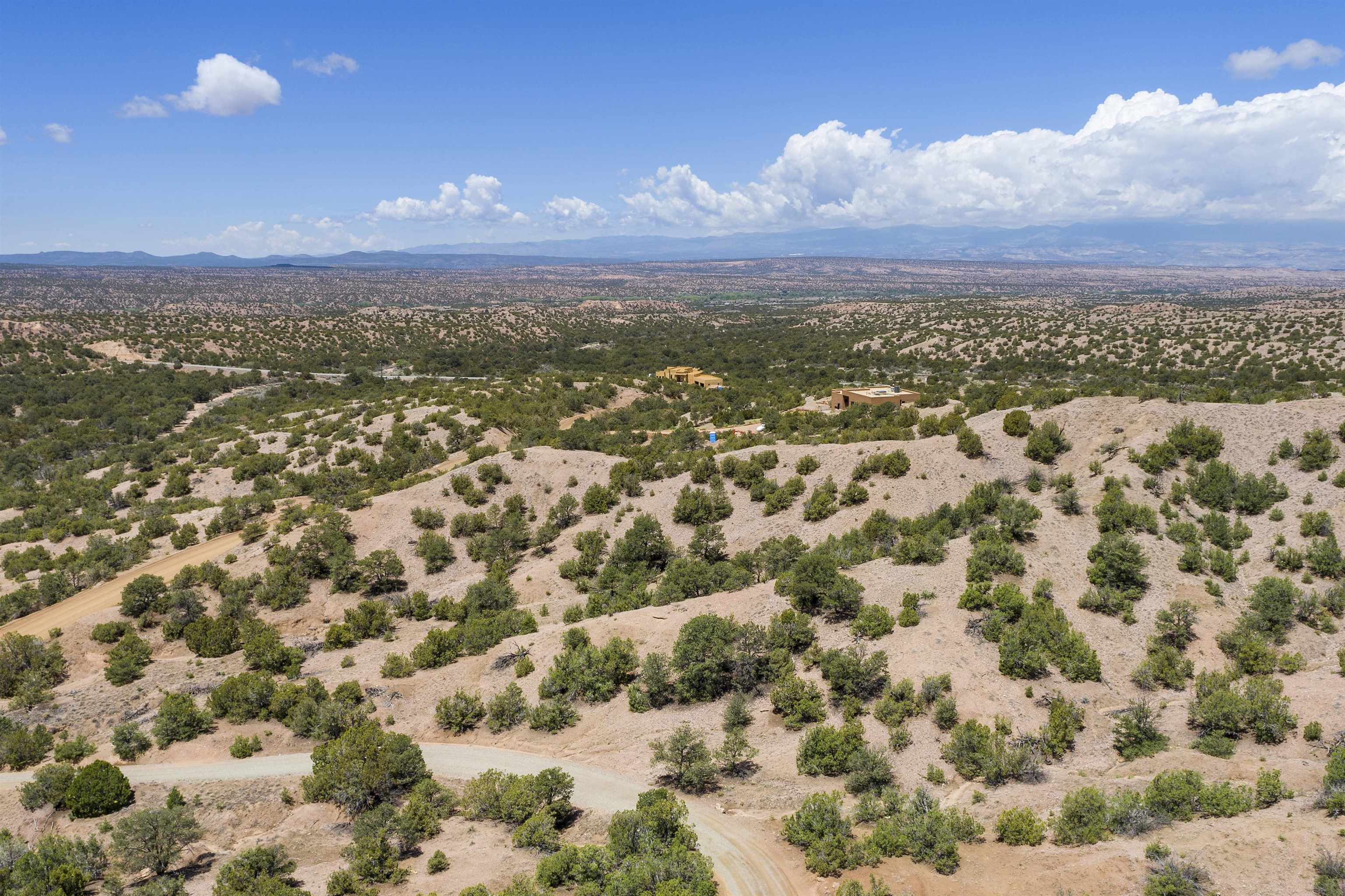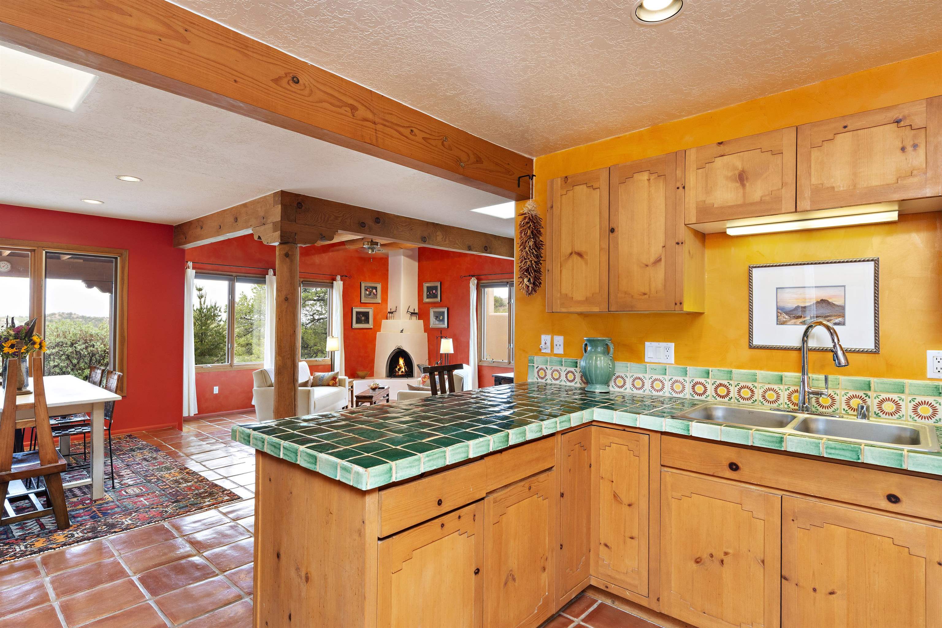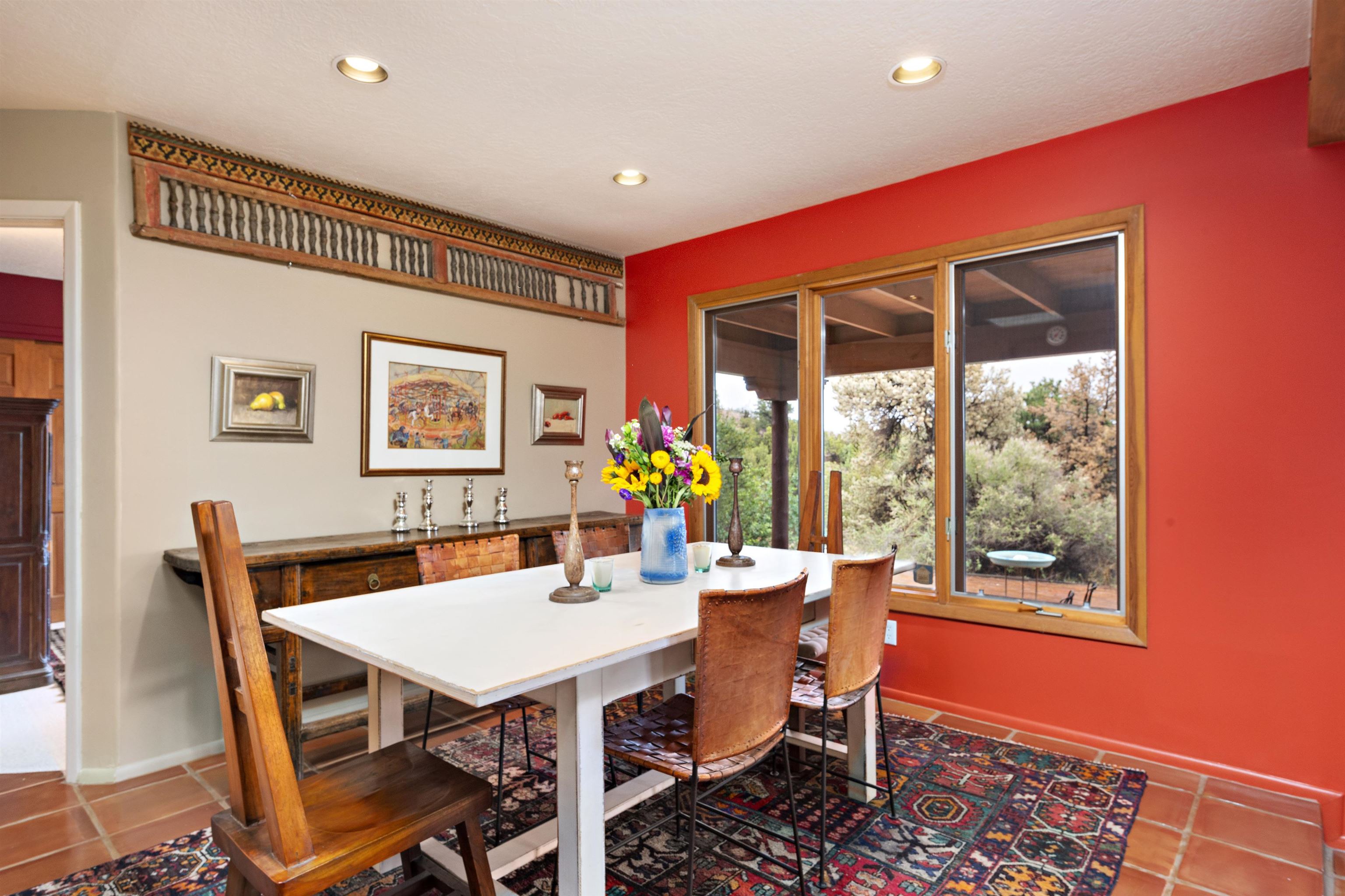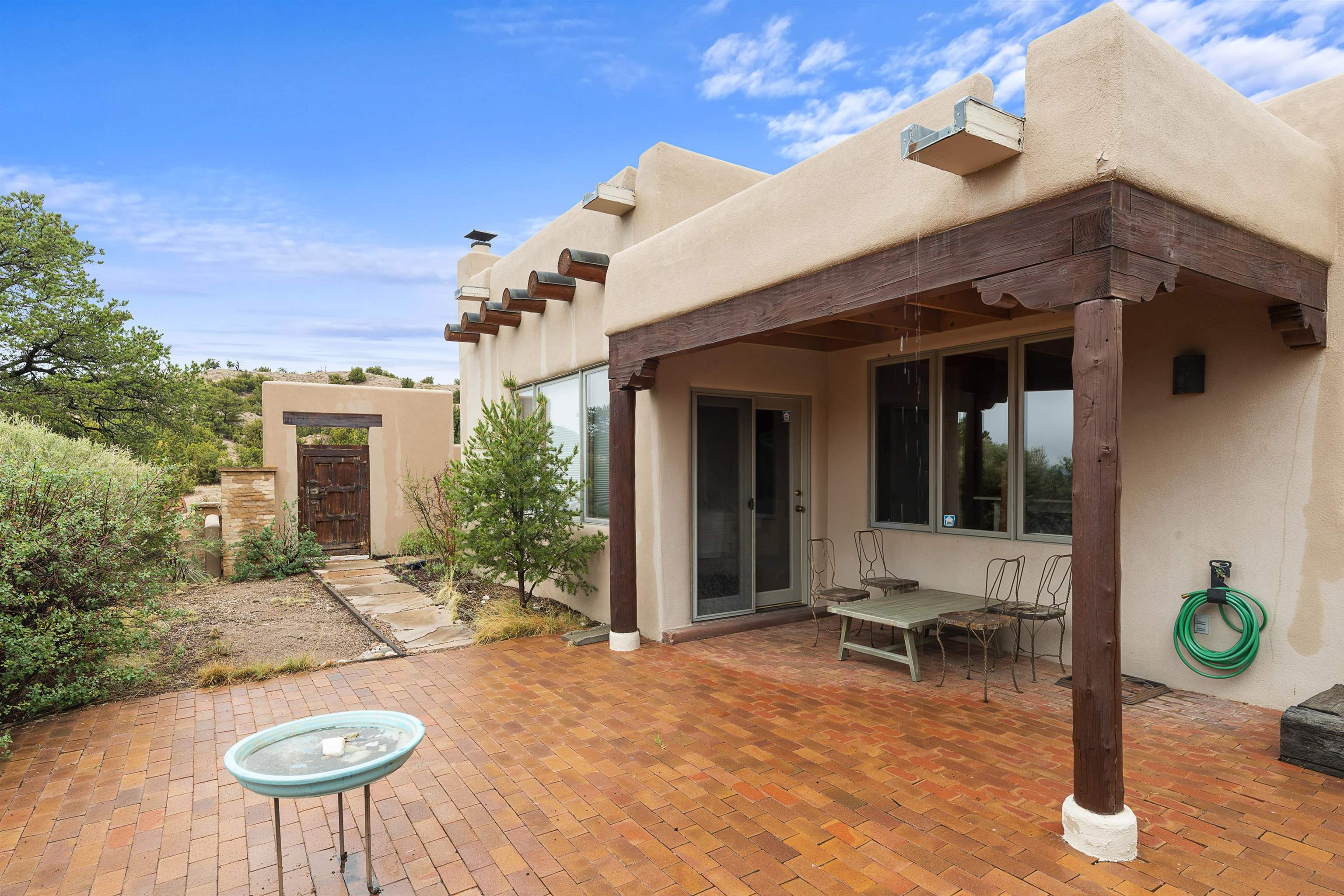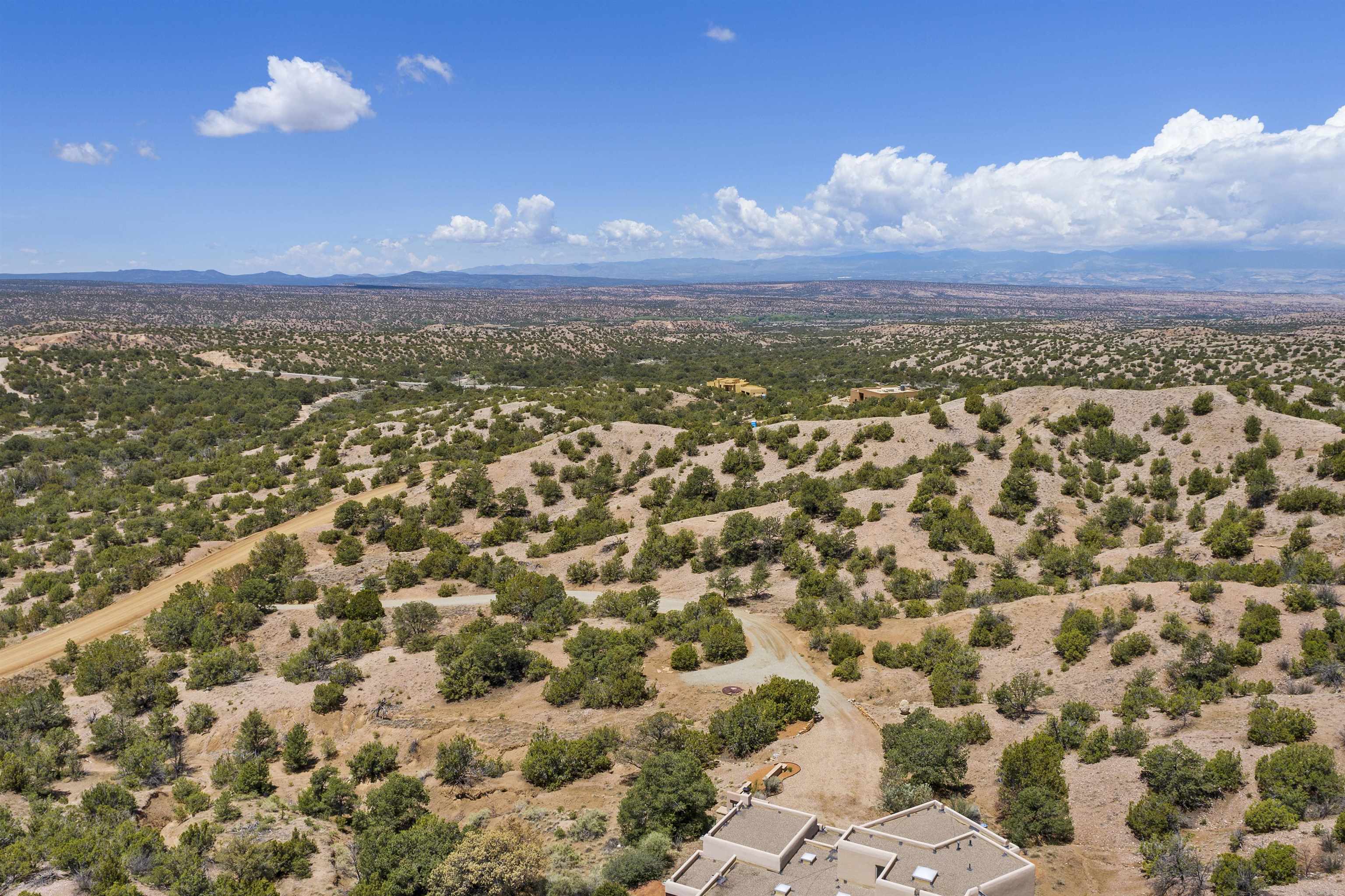 Absolutely charming Los Caminitos property set in the magical rolling hills of Tesuque. The open floor plan allows for ease of entertaining and sweeping views from the living areas. The primary suite is located upstairs from the living areas and guest bedrooms, and offers an elevated view to the mountains. The downstairs guest suite features its own private entry, allowing for privacy and convenience. An additional guest bedroom or office/den allows for additional flexible living. Traditional Santa Fe style and colorful touches abound, all set on 7+ private acres. Los Caminitos offers residents a community clubhouse, pool, and tennis courts, and you are moments away from the Four Seasons Resort and 12 minutes to downtown Santa Fe.