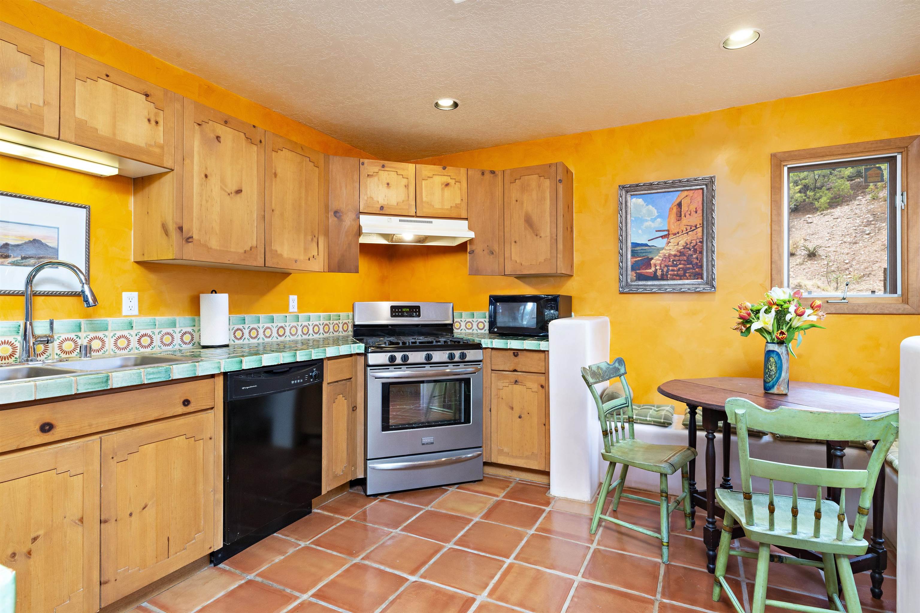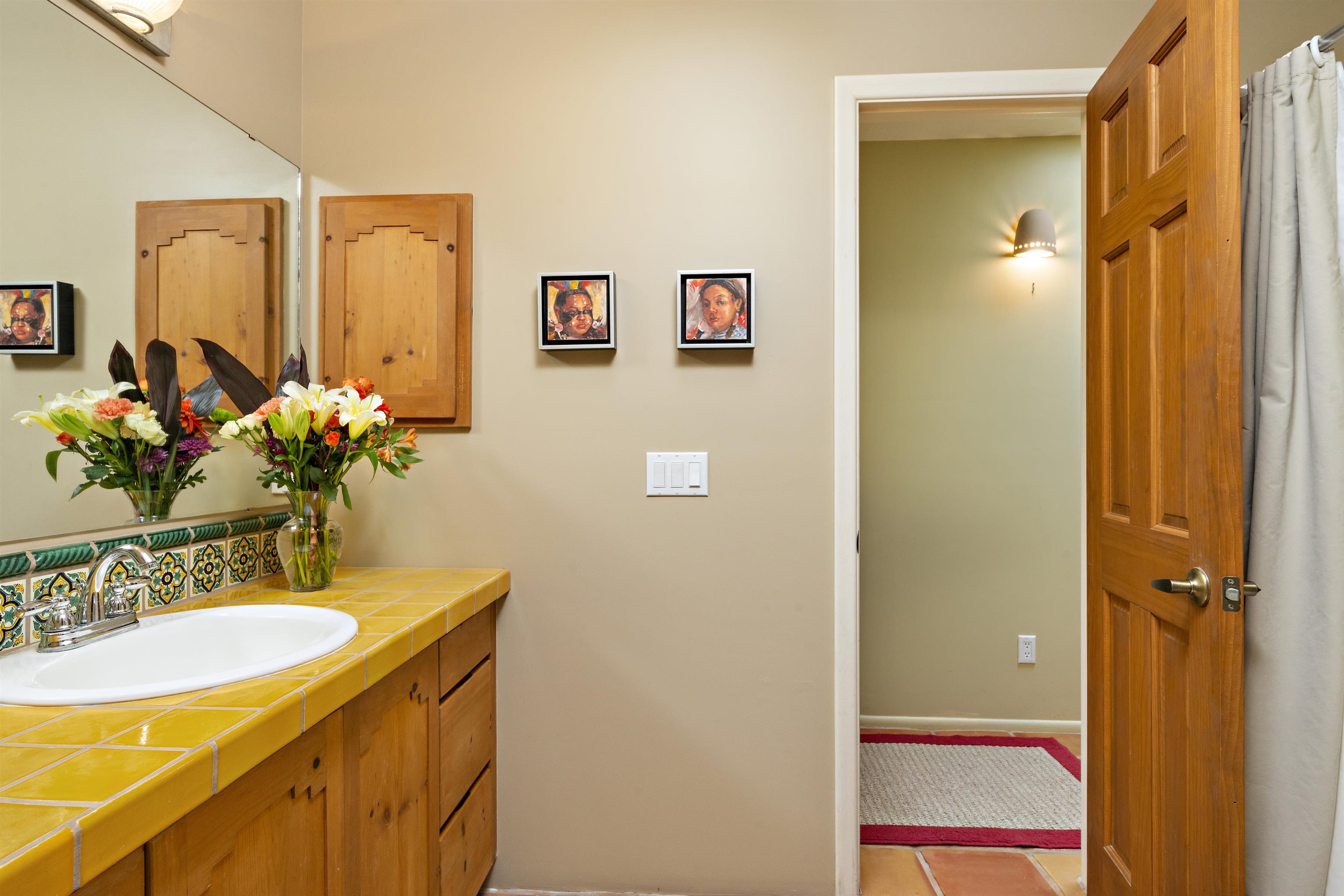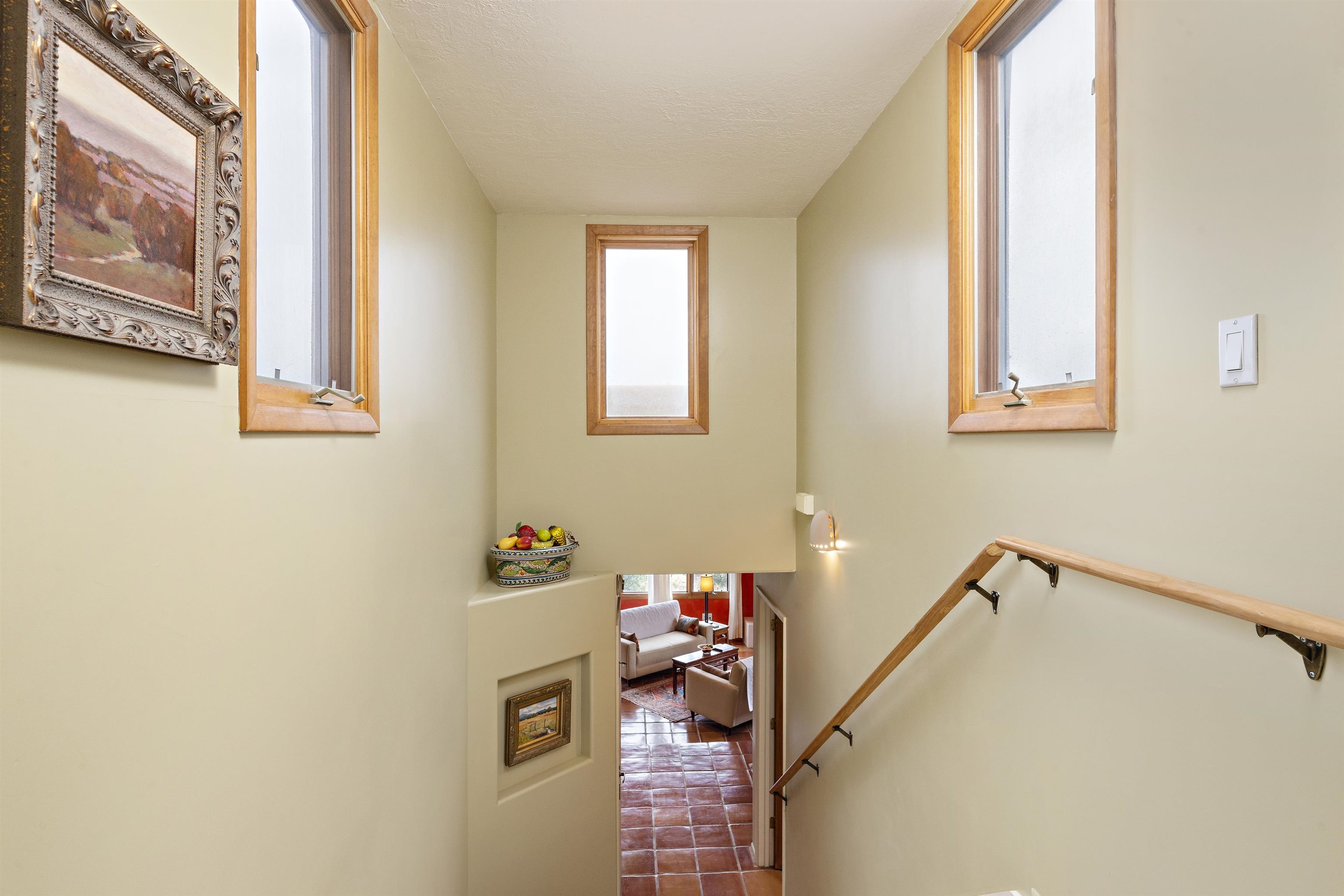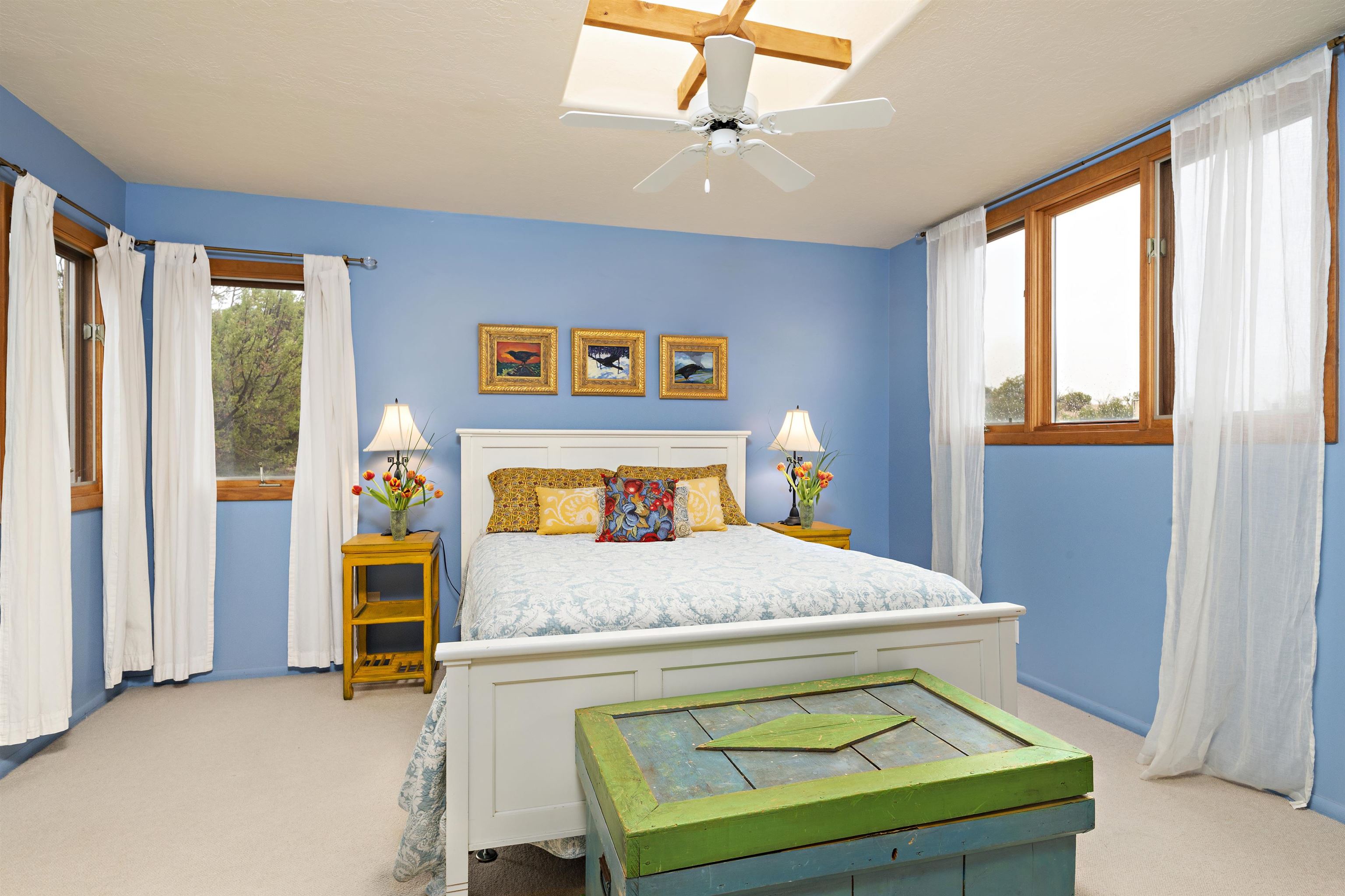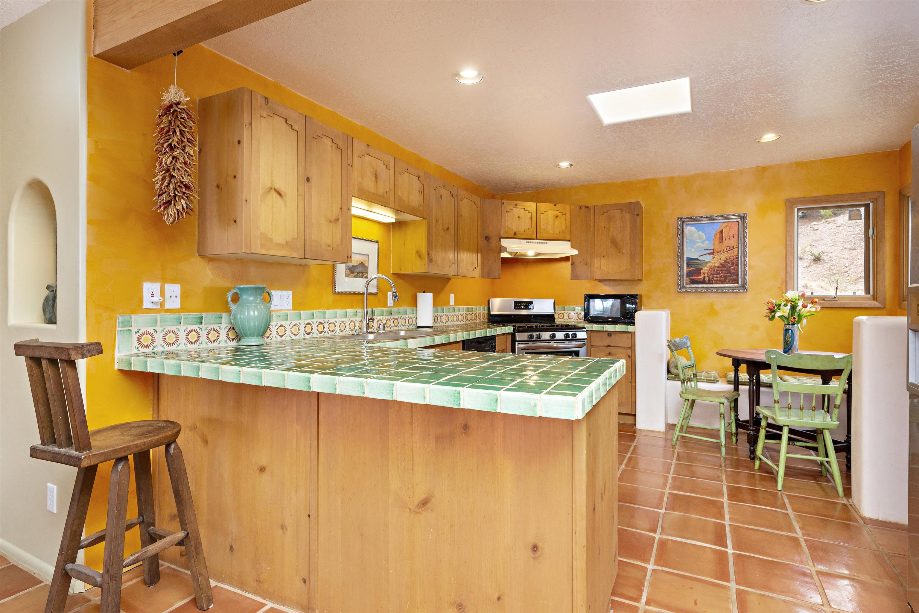 Absolutely charming Los Caminitos property set in the magical rolling hills of Tesuque. The open floor plan allows for ease of entertaining and sweeping views from the living areas. The primary suite is located upstairs from the living areas and guest bedrooms, and offers an elevated view to the mountains. The downstairs guest suite features its own private entry, allowing for privacy and convenience. An additional guest bedroom or office/den allows for additional flexible living. Traditional Santa Fe style and colorful touches abound, all set on 7+ private acres. Los Caminitos offers residents a community clubhouse, pool, and tennis courts, and you are moments away from the Four Seasons Resort and 12 minutes to downtown Santa Fe.