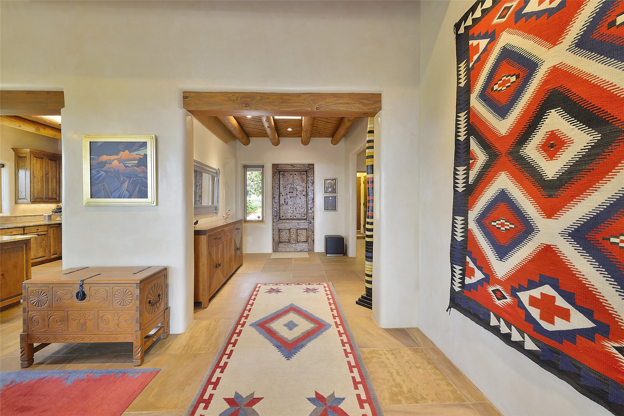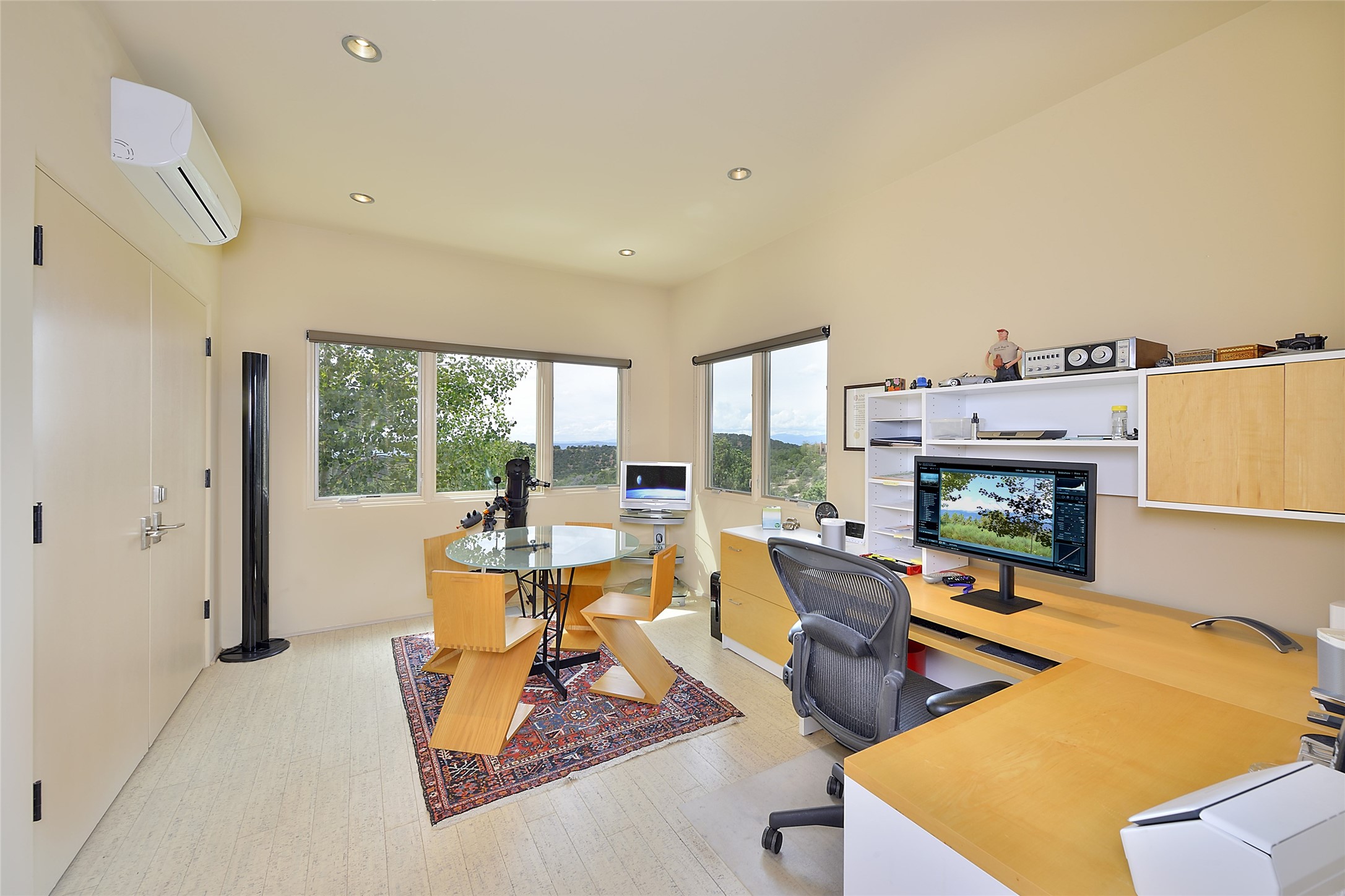 This is an exceptional offering in the gated and sought after High Summit. This compound estateconsists of a 3 Bedroom , 2.5 Bath main home built in 2009 and a 2 Bedroom, 2 Bath plus office/studioguest home completed in 2013. The homes are on a combined .7 acre lot and are nicely separated forprivacy with their own direct entry 2 car garages. The covered portals flow from the living spaces andoffer wonderful sunset views to the South and West. Upon entering you immediately notice the highend finishes and features such as nichos, vigas, stone floors and custom doors & cabinetry. The kitchensoffer all the conveniences with quality appliances and islands and bars for gathering and entertaining.Central forced air heating and air conditioning in the guest house and radiant in-floor heating andevaporative cooling in the main house keep things comfortable year-round. The grounds arewonderfully landscaped and planted featuring tall aspens, pinons and water features. This gatedcommunity with a sensible HOA is a stone's throw away from Ten Thousand waves and 12 miles toSanta Fe Ski Basin, yet only 5 miles away from the heart of downtown, Canyon road, restaurants and artgalleries.