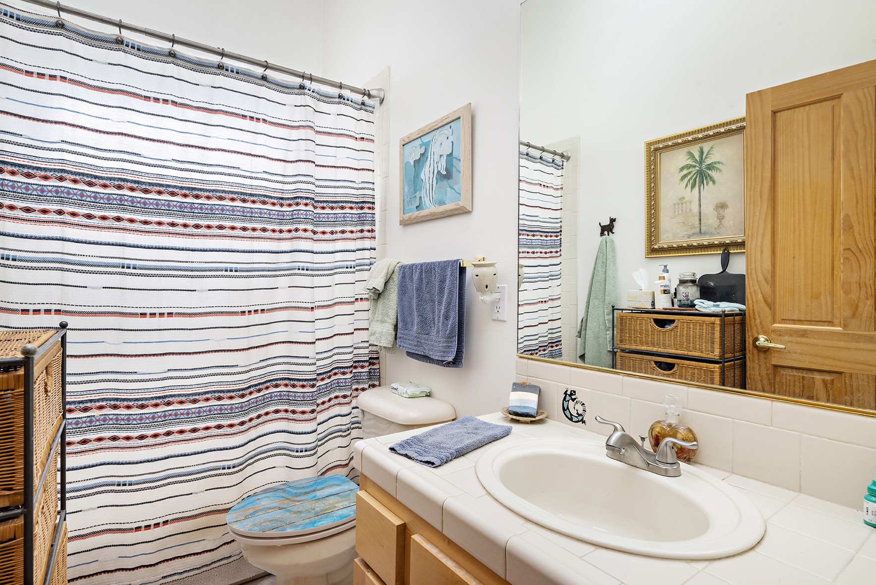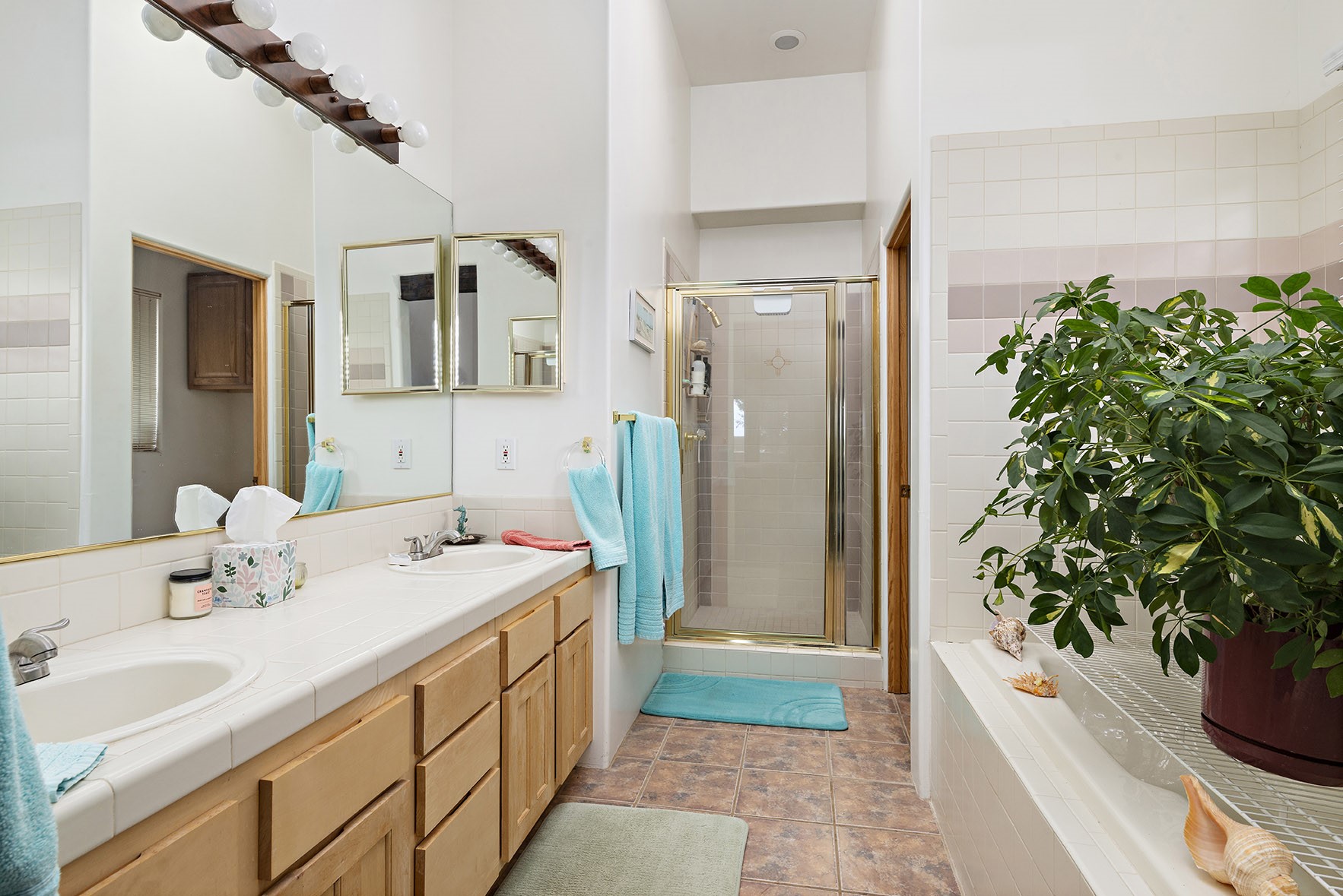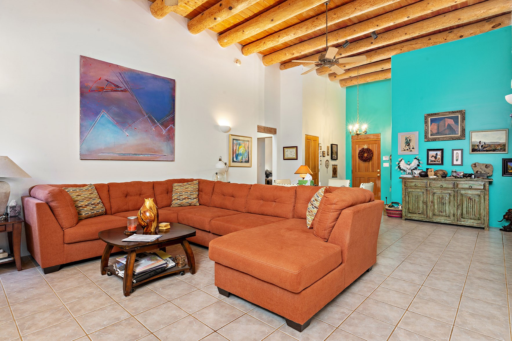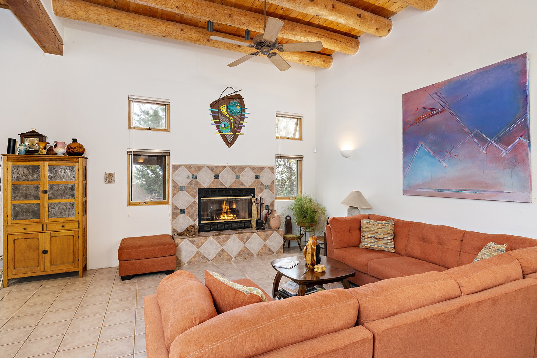 You see the charm of this Eldorado home as soon as you drive up to it. Not one, but two courtyards for beautifully landscaped and private outdoor living space. Enter the house from the front courtyard and you are met with Santa Fe style decorative touches, including vigas and nichos. Everyone remarks on the spacious high ceilings, which are throughout the house. A gas fireplace warms the living room, which opens into the roomy dining area, which in turn leads to the back courtyard (hot tub conveys). The kitchen comes with stainless appliances, including a 5-burner gas stove and hood vent, and lots of counter space and cabinets. The common living areas separate the primary suite from the two guest bedrooms. The primary suite consist of a bedroom that opens onto the back courtyard, spacious walk-in closet, and bathroom with two sinks, separate shower, separate toilet stall, and garden tub. On this end of the house, a large laundry room has extra pantry space and comes with washer and dryer. It leads out to the attached 2-car garage, with insulated walls, 3 skylights, and a huge storeroom. There is additional parking in the circle driveway. Open space around the house reveals the beautiful mountain views. Great location on Avenida Eldorado with easy access to US 285 into Santa Fe and to Eldorado's shopping at the Agora and La Tienda. Right next to Eldorado's extensive walking path system, so you don't need to join the gym! House comes with a 14-month home warranty, start 3/6/23