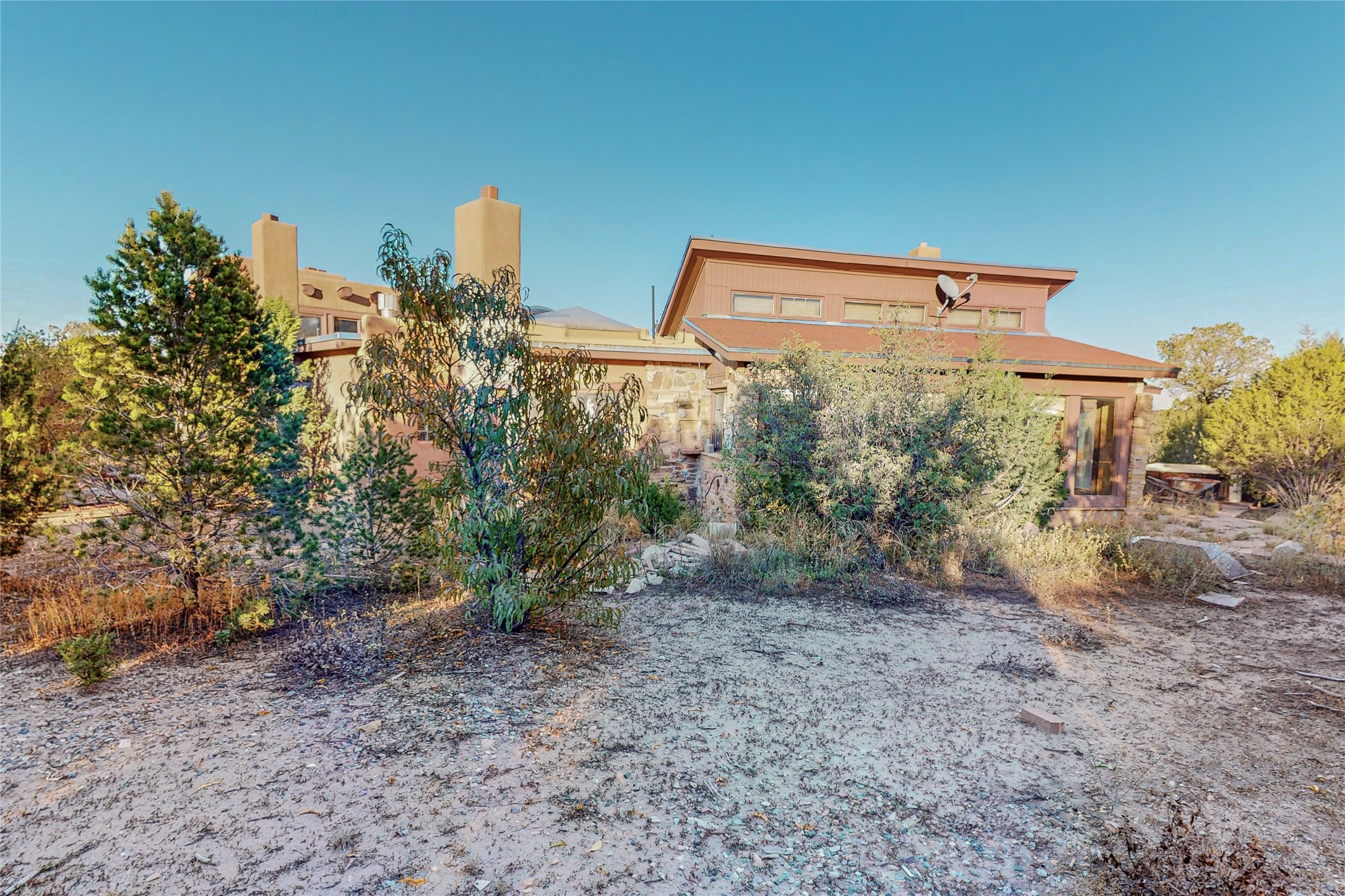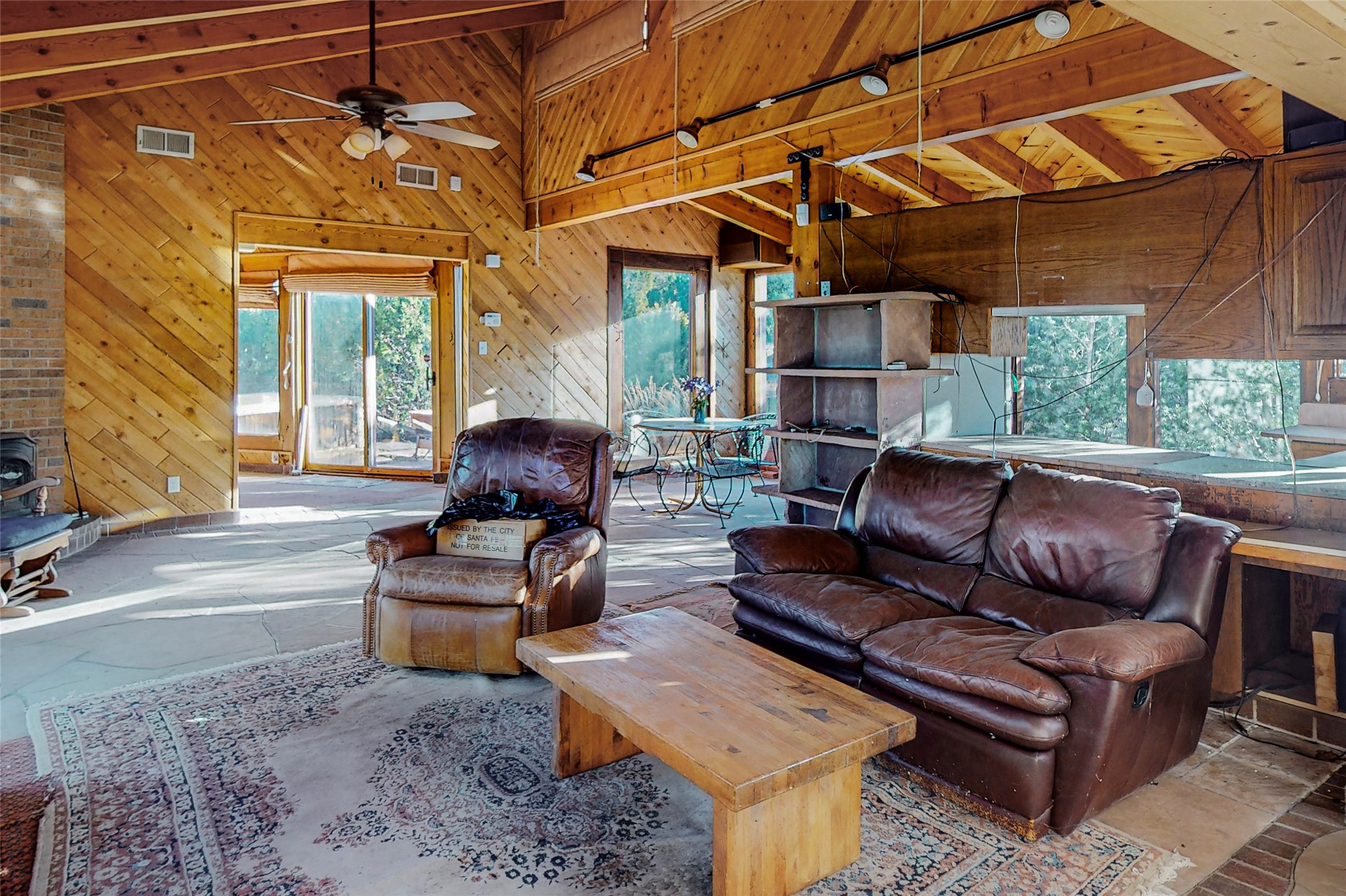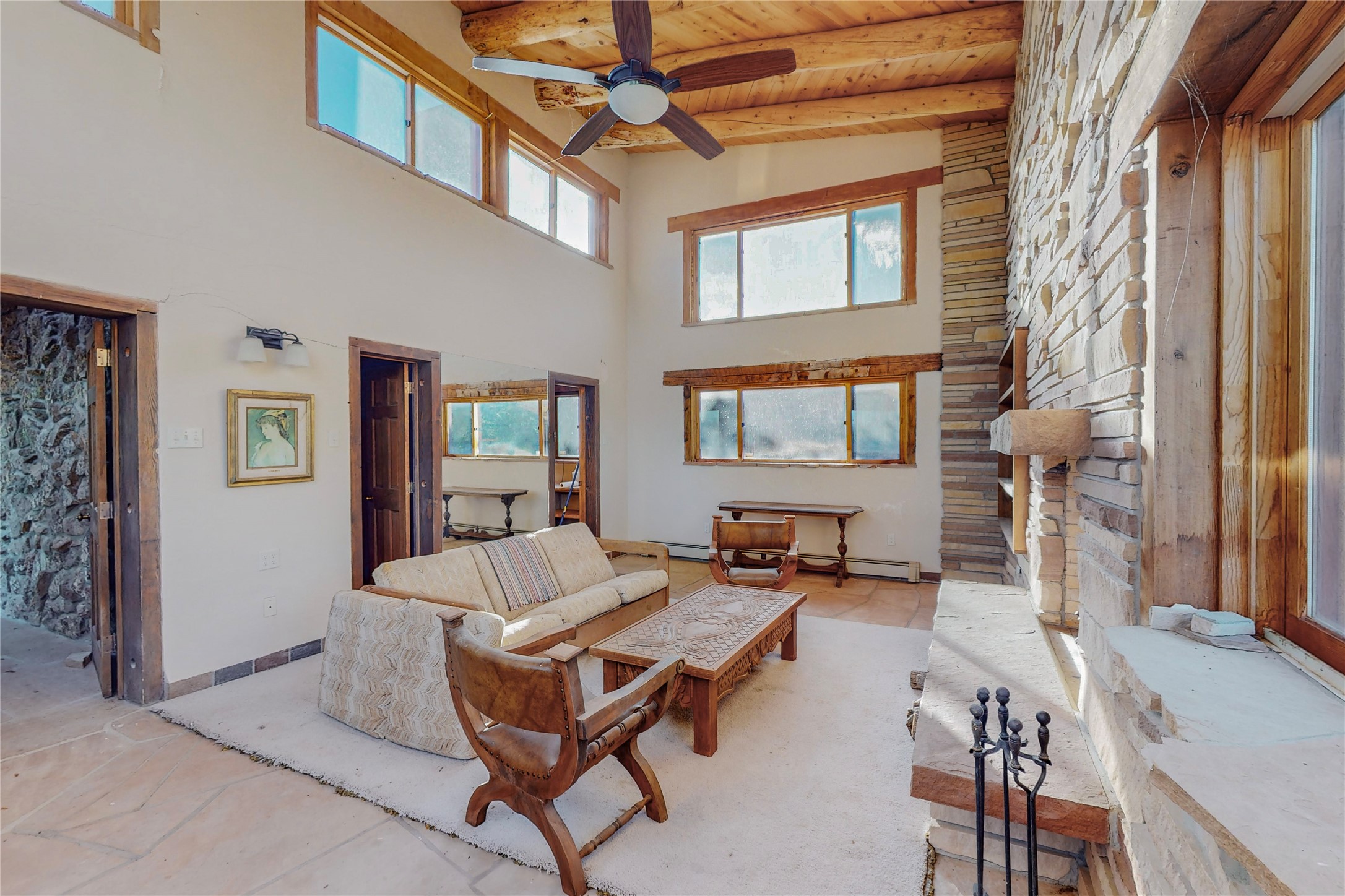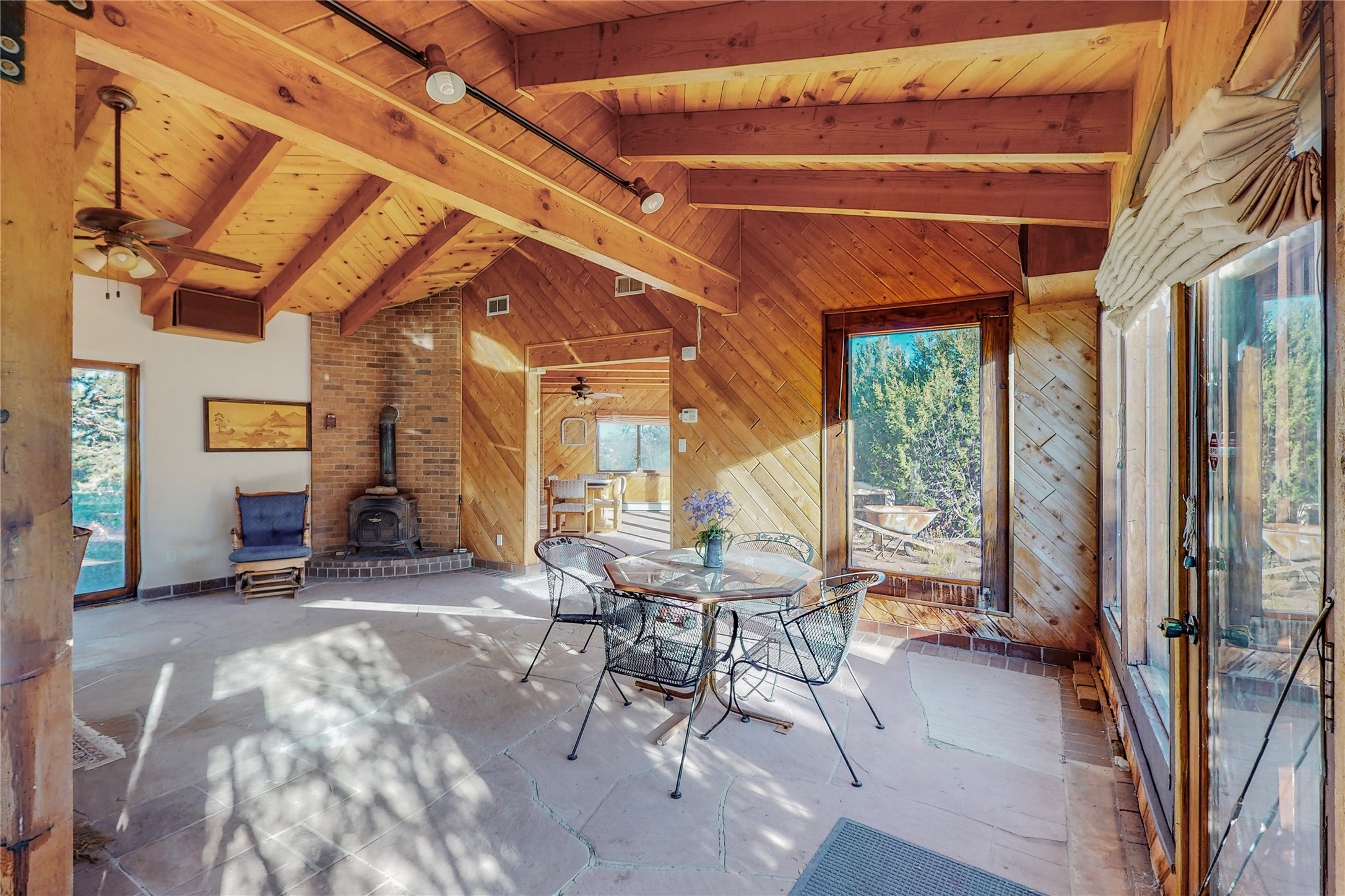 Handyman Special! This property has unlimited potential! If you've ever dreamed of owning your own private forest, this property comes with 42 acres of beautiful land; filled with abundant pine trees, native plants, and plenty of wildlife. This one of a kind, passive solar, private home has a NEW Septic Tank, recently updated roof, ample light, stunning flagstone and brick floors through out, vigas, 3 fireplaces and a wood burning stove and a 5-car garage that would fulfill a car collector's dream. Above the enormous garage there is a 300 sq ft private roof top studio. This home is busting with character and conveniently located 30 minutes from Santa Fe.