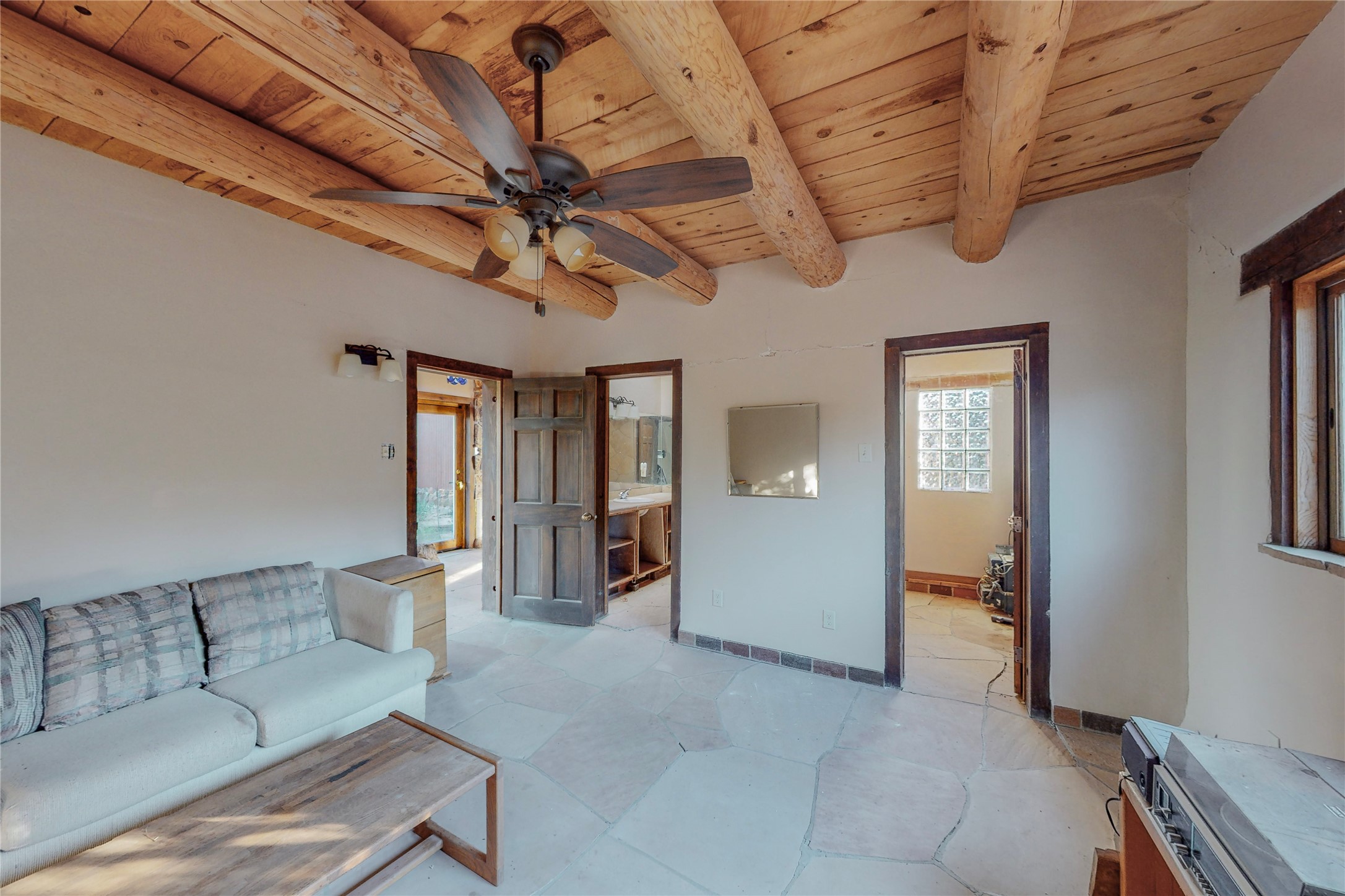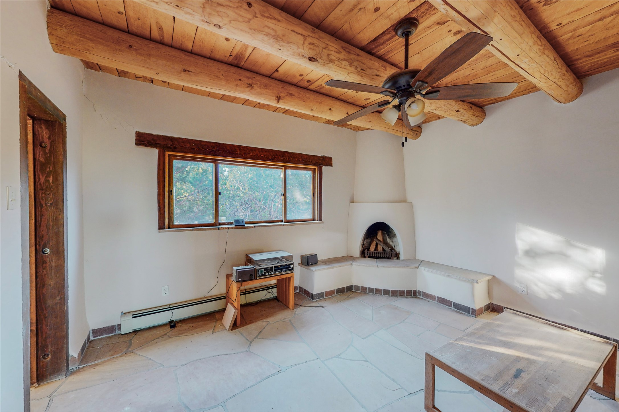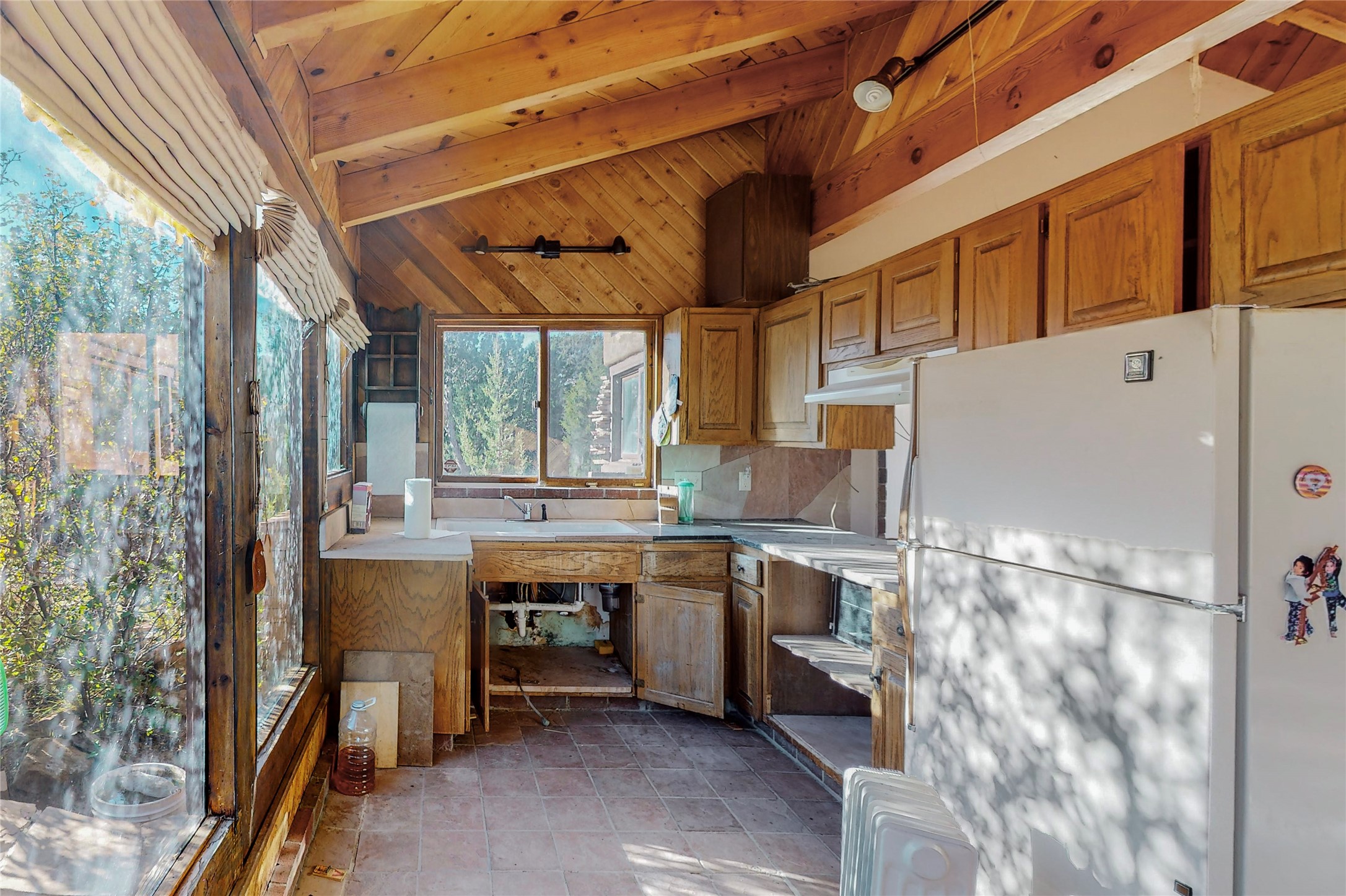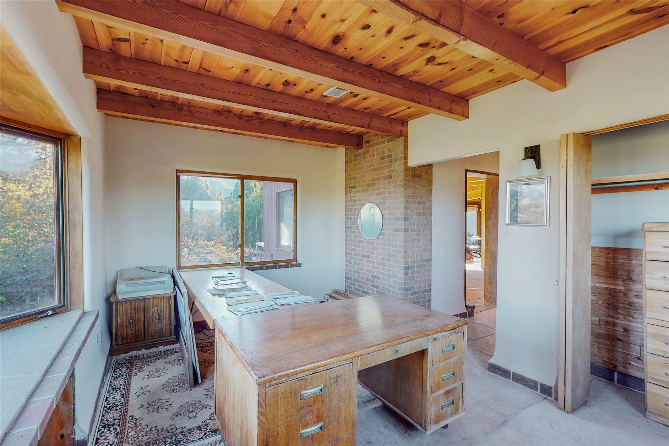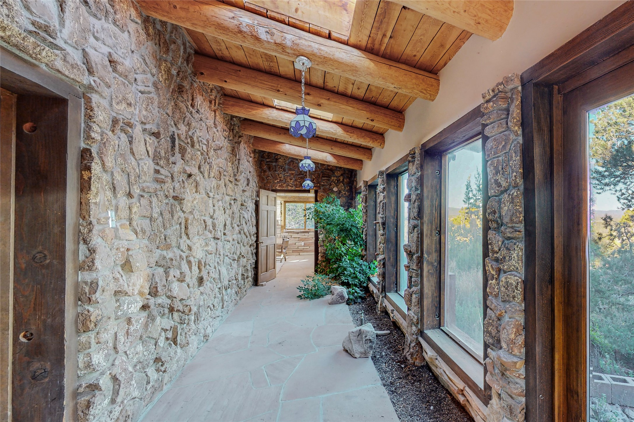 Handyman Special! This property has unlimited potential! If you've ever dreamed of owning your own private forest, this property comes with 42 acres of beautiful land; filled with abundant pine trees, native plants, and plenty of wildlife. This one of a kind, passive solar, private home has a NEW Septic Tank, recently updated roof, ample light, stunning flagstone and brick floors through out, vigas, 3 fireplaces and a wood burning stove and a 5-car garage that would fulfill a car collector's dream. Above the enormous garage there is a 300 sq ft private roof top studio. This home is busting with character and conveniently located 30 minutes from Santa Fe.