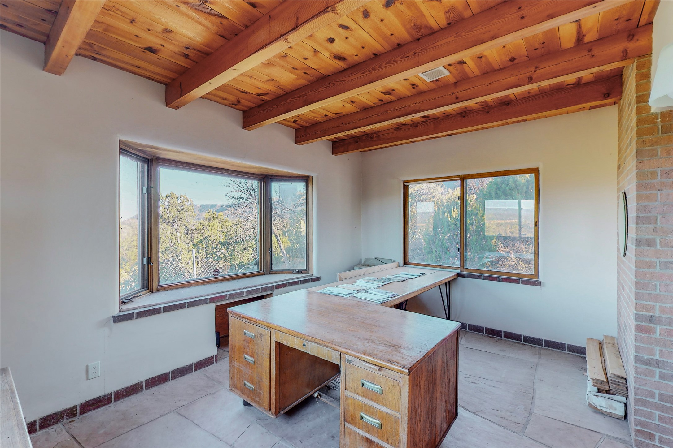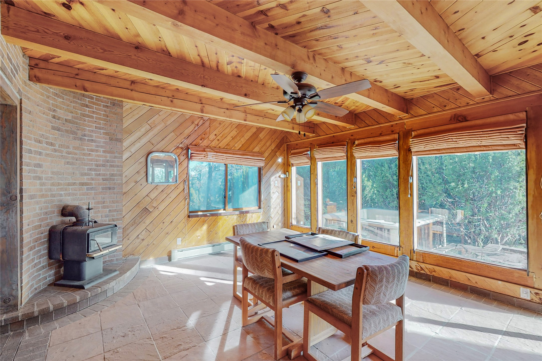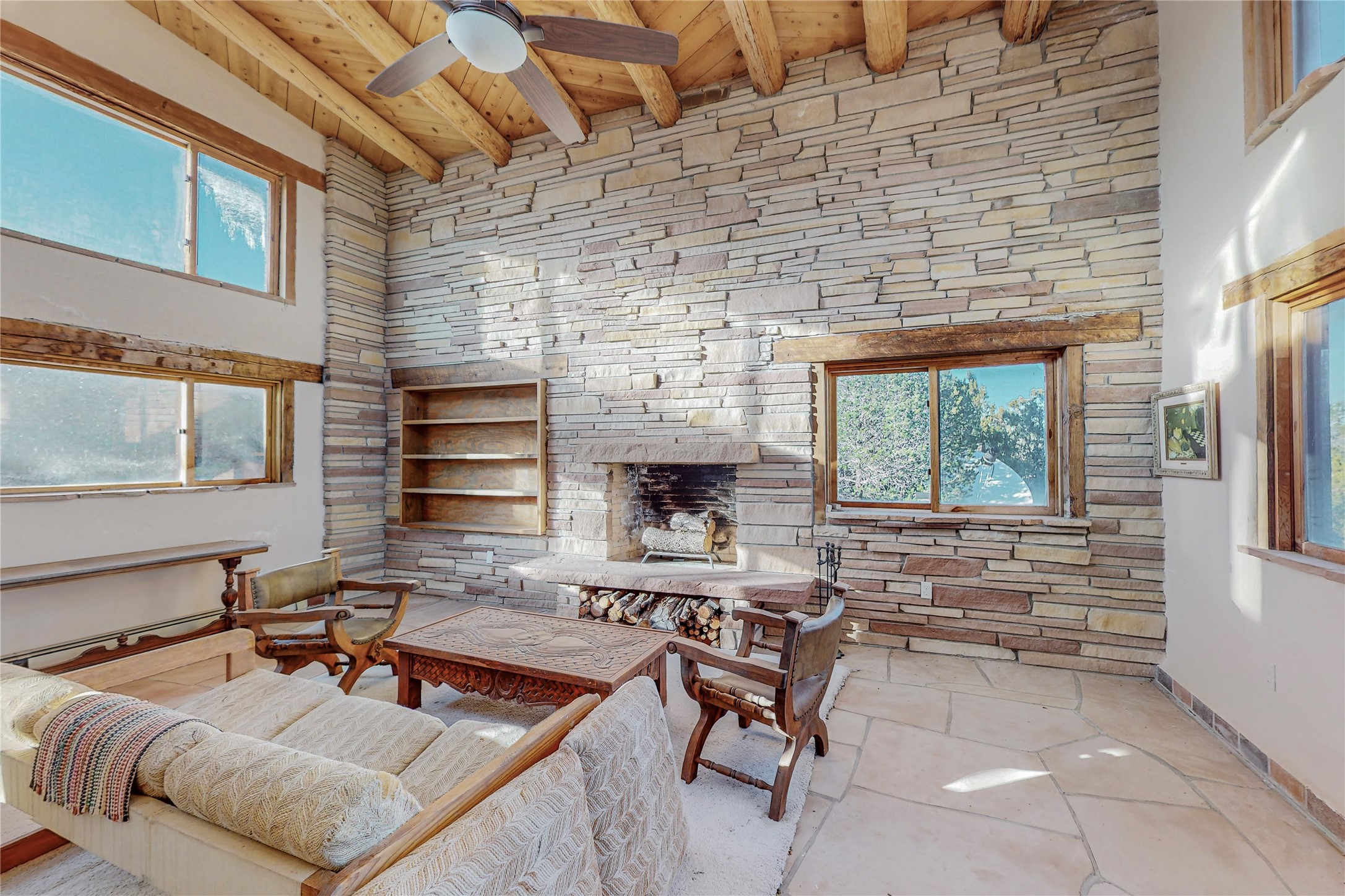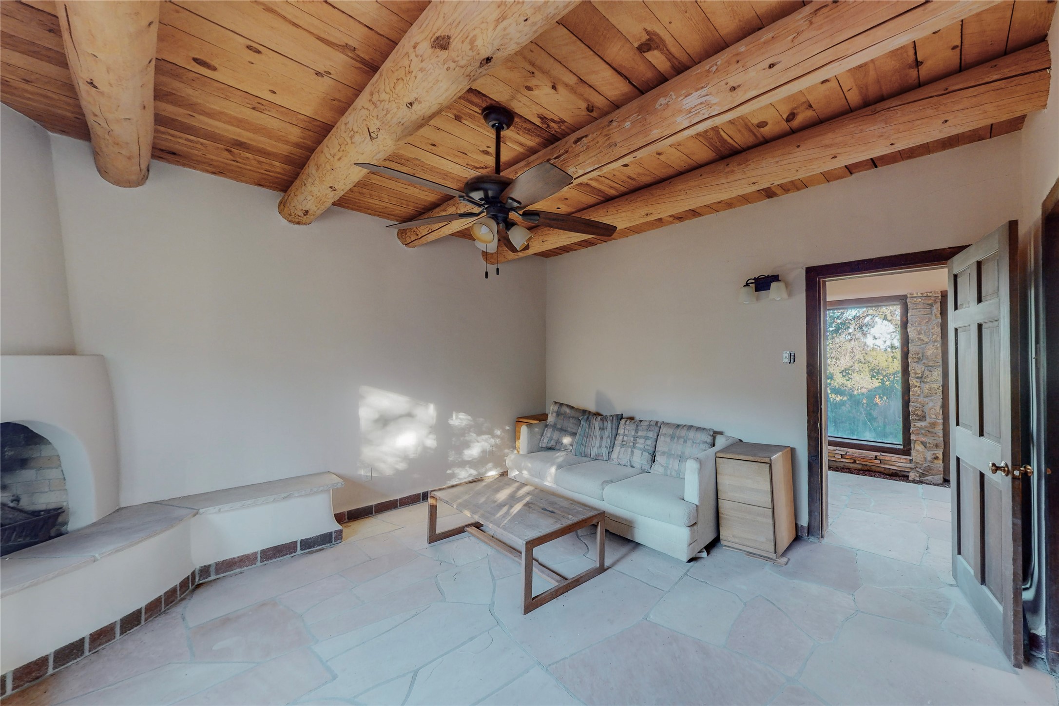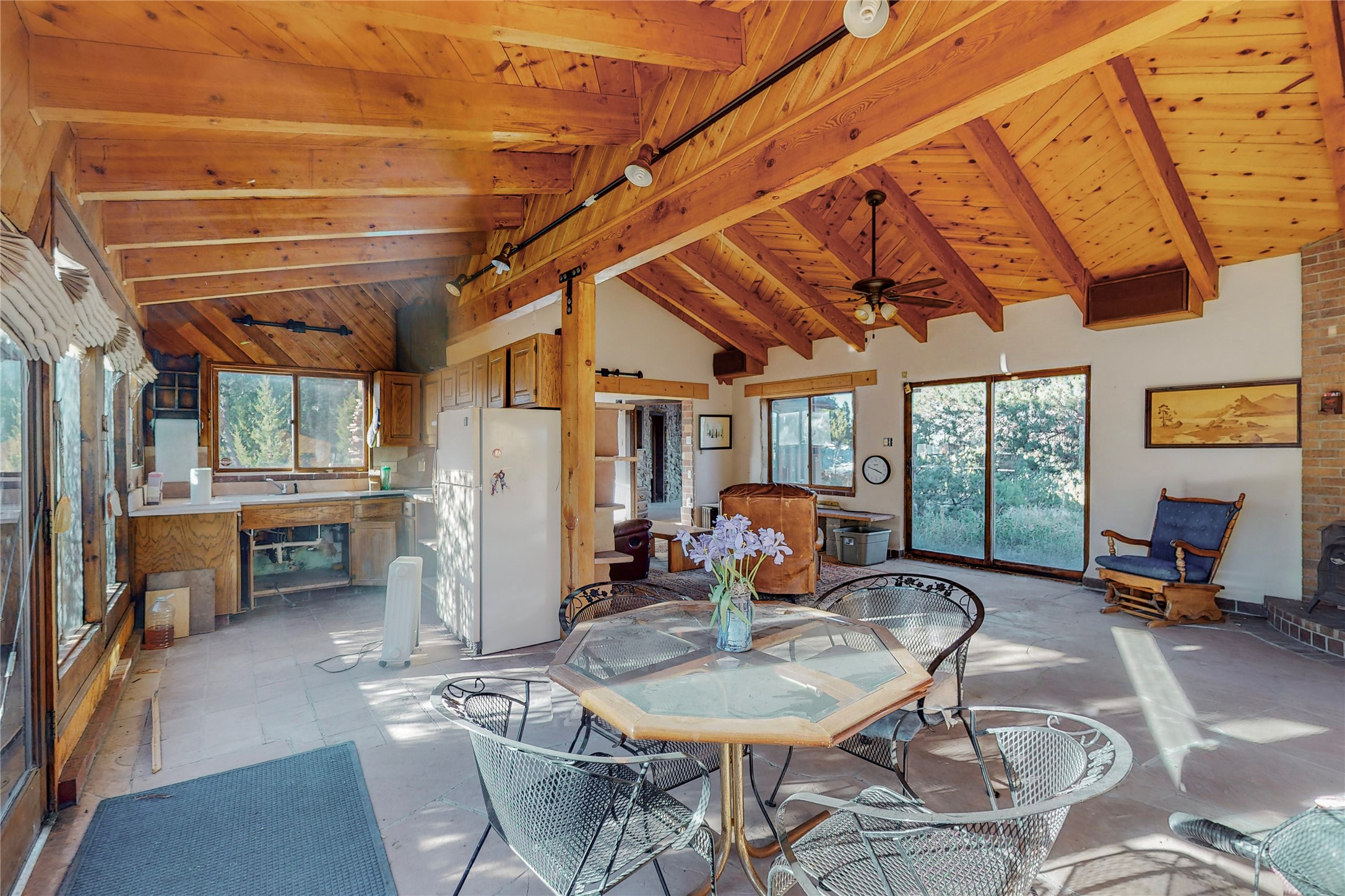 Handyman Special! This property has unlimited potential! If you've ever dreamed of owning your own private forest, this property comes with 42 acres of beautiful land; filled with abundant pine trees, native plants, and plenty of wildlife. This one of a kind, passive solar, private home has a NEW Septic Tank, recently updated roof, ample light, stunning flagstone and brick floors through out, vigas, 3 fireplaces and a wood burning stove and a 5-car garage that would fulfill a car collector's dream. Above the enormous garage there is a 300 sq ft private roof top studio. This home is busting with character and conveniently located 30 minutes from Santa Fe.