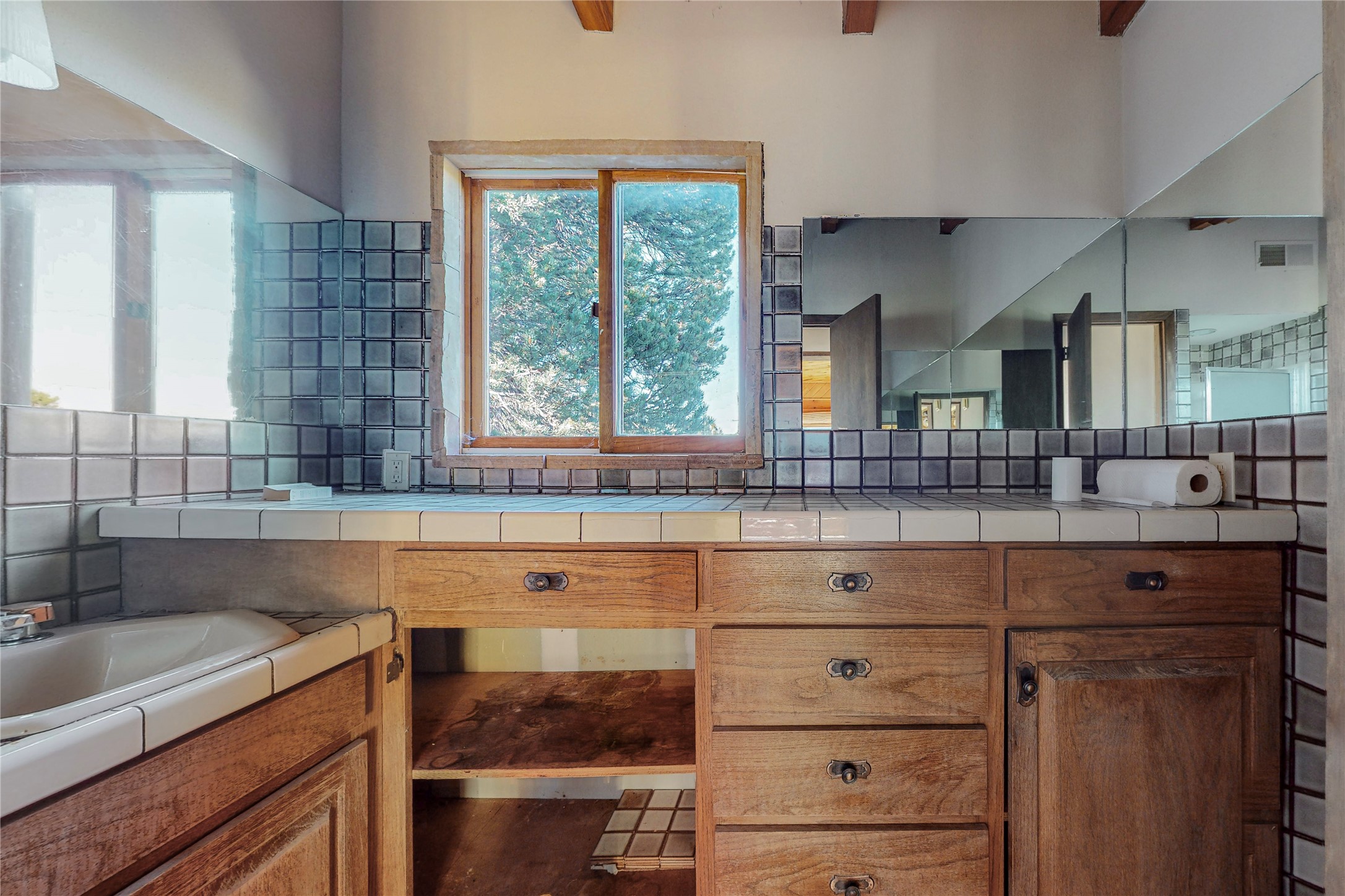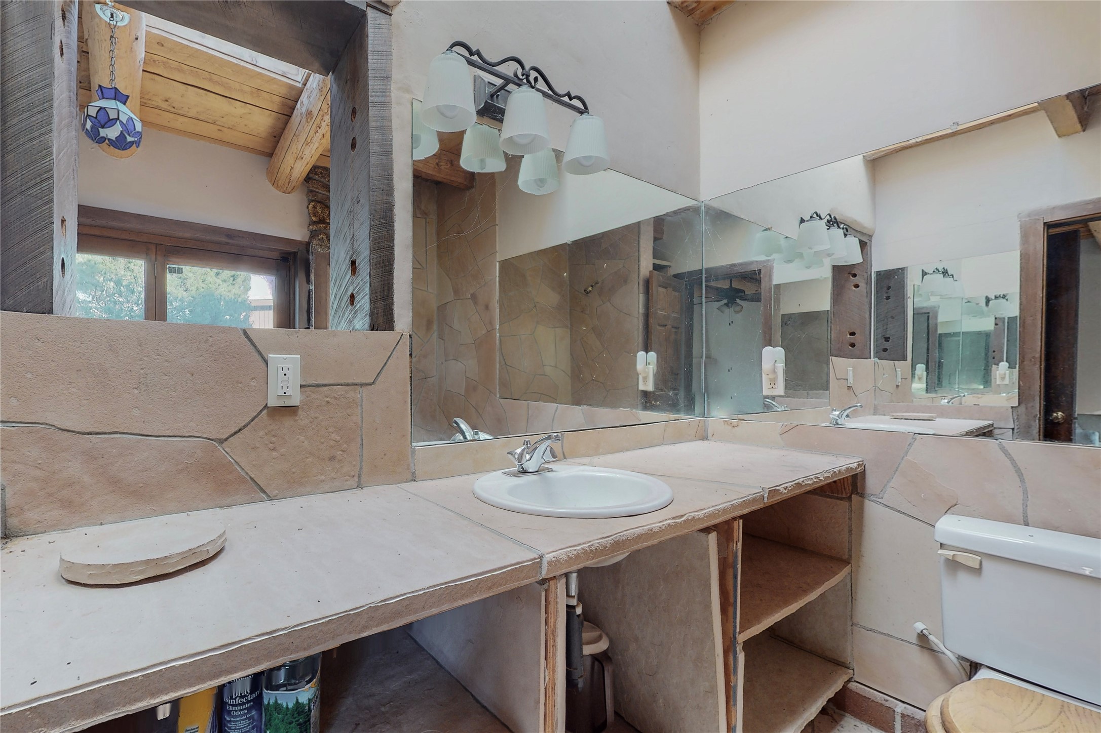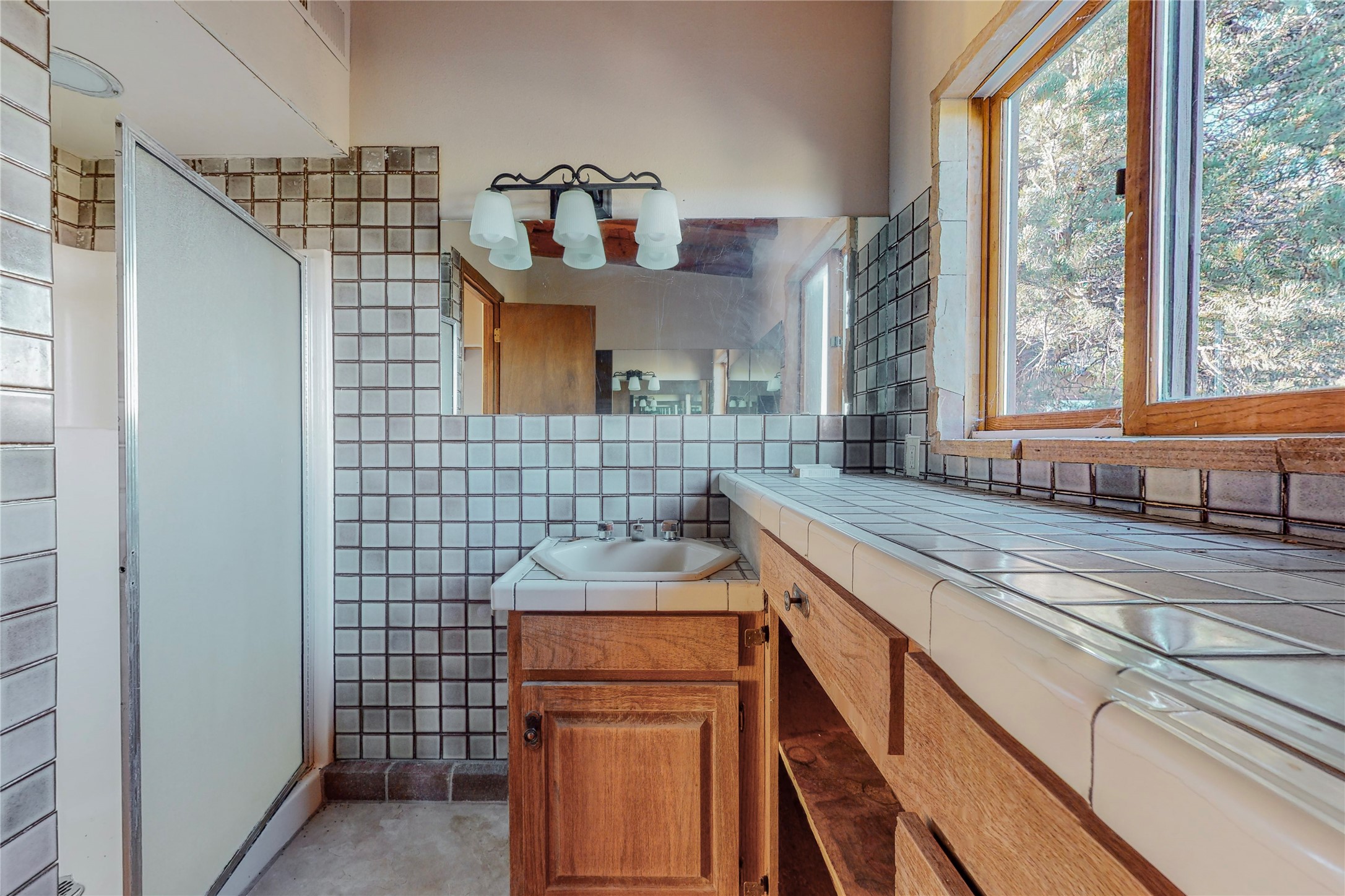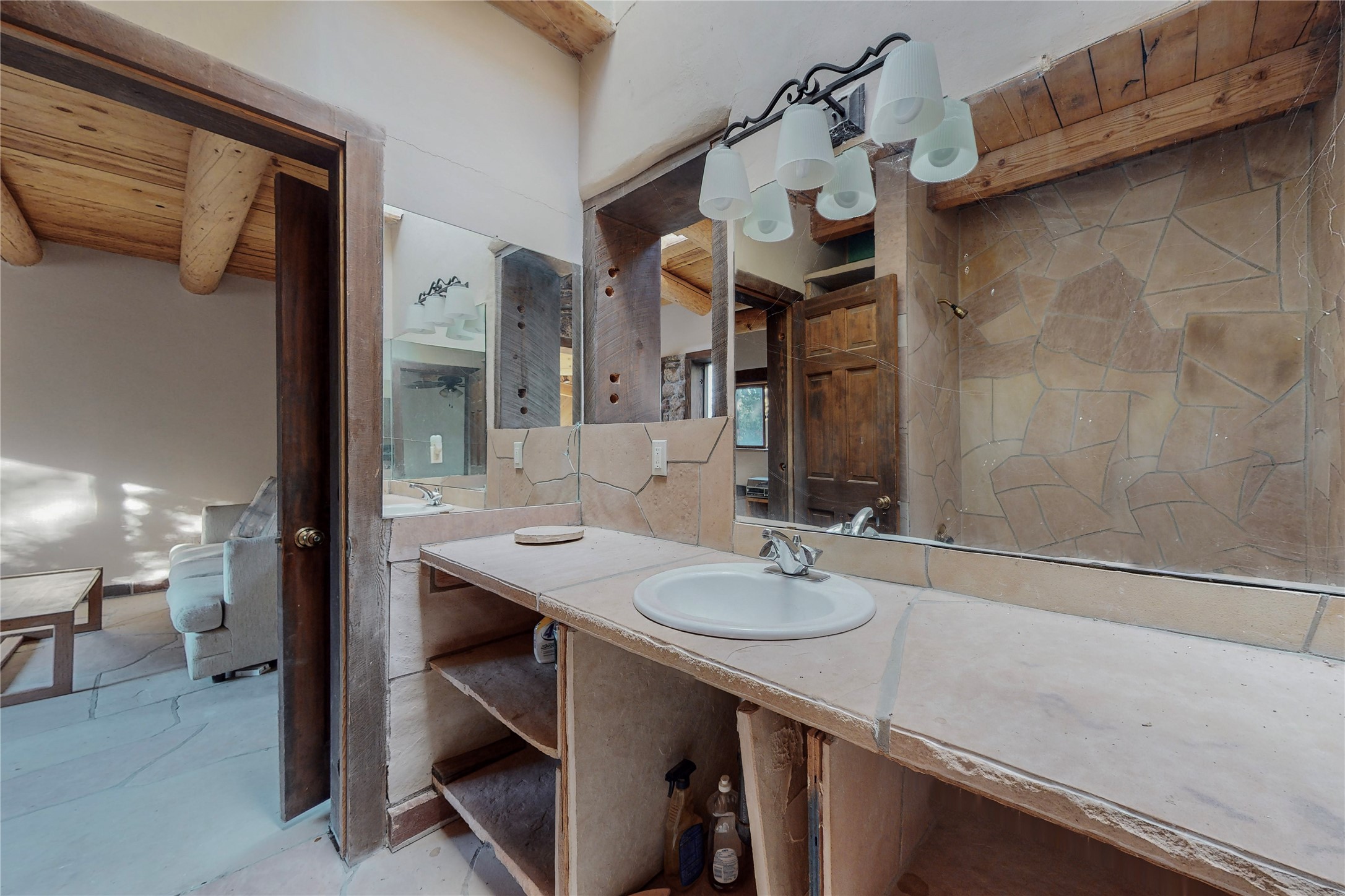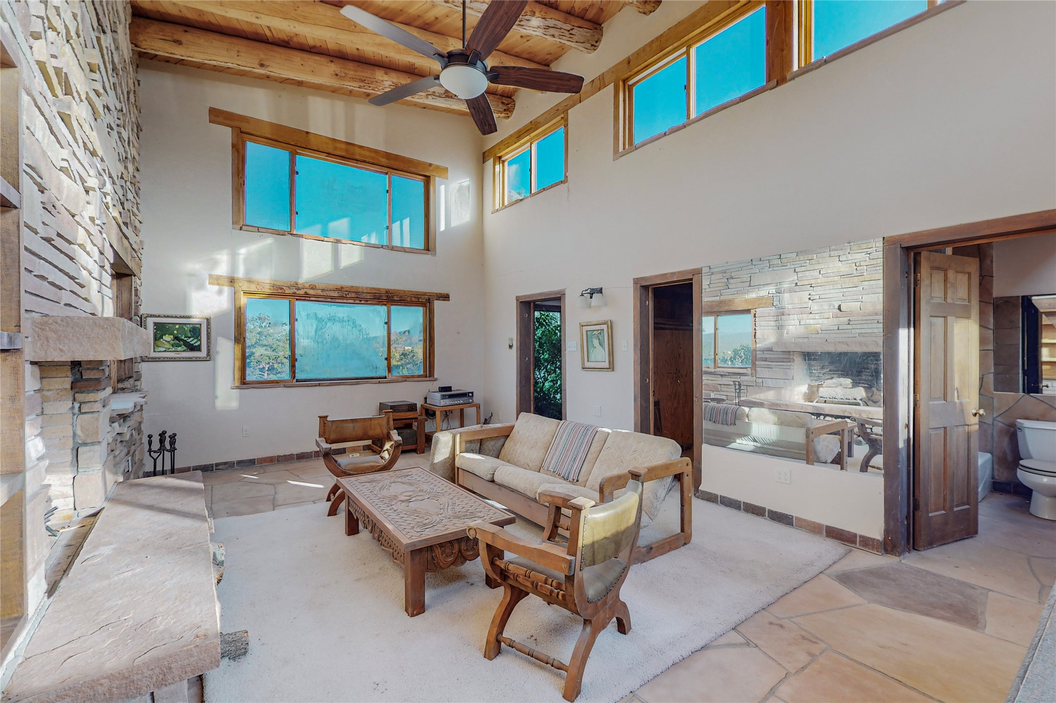 Handyman Special! This property has unlimited potential! If you've ever dreamed of owning your own private forest, this property comes with 42 acres of beautiful land; filled with abundant pine trees, native plants, and plenty of wildlife. This one of a kind, passive solar, private home has a NEW Septic Tank, recently updated roof, ample light, stunning flagstone and brick floors through out, vigas, 3 fireplaces and a wood burning stove and a 5-car garage that would fulfill a car collector's dream. Above the enormous garage there is a 300 sq ft private roof top studio. This home is busting with character and conveniently located 30 minutes from Santa Fe.