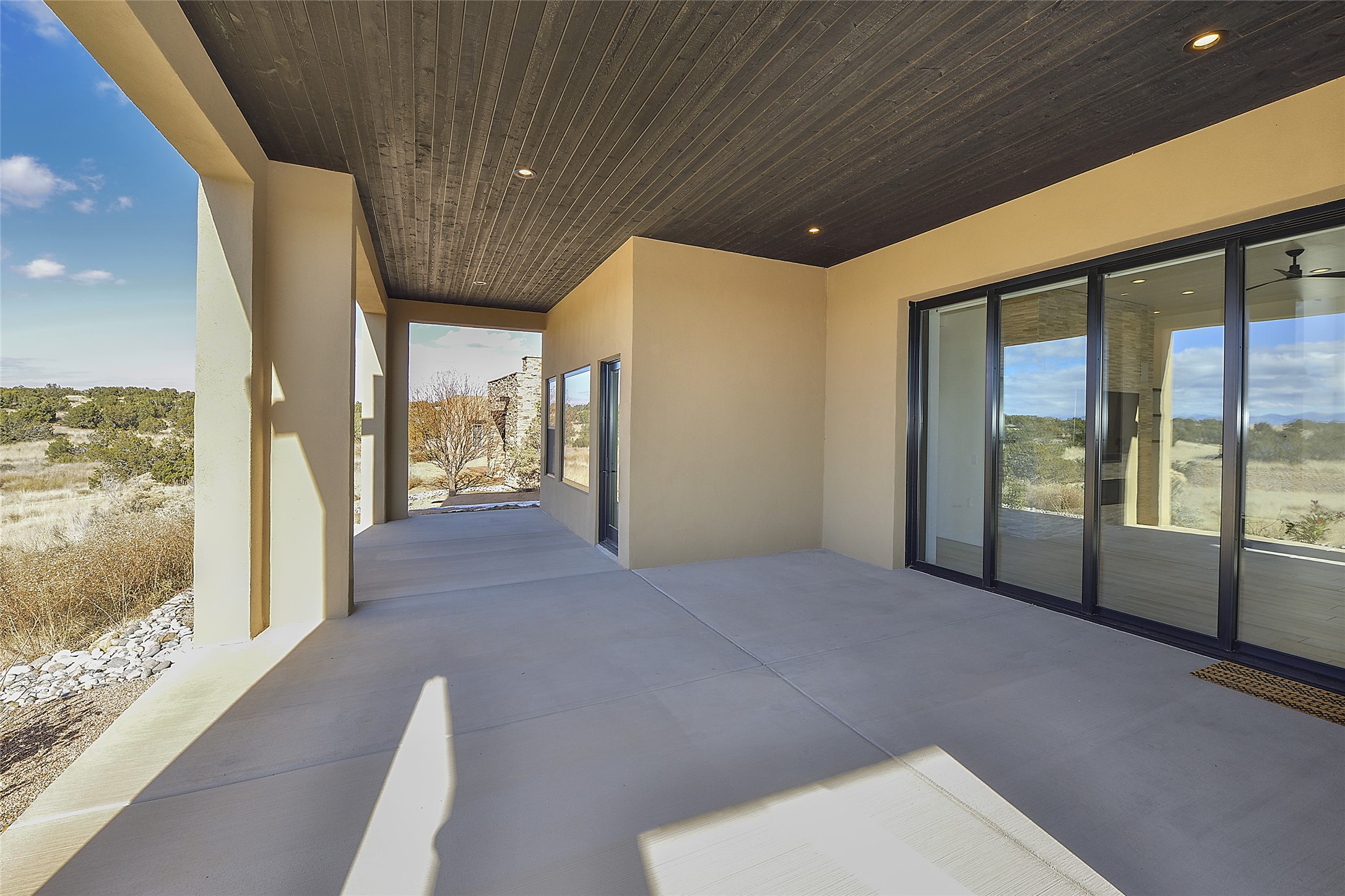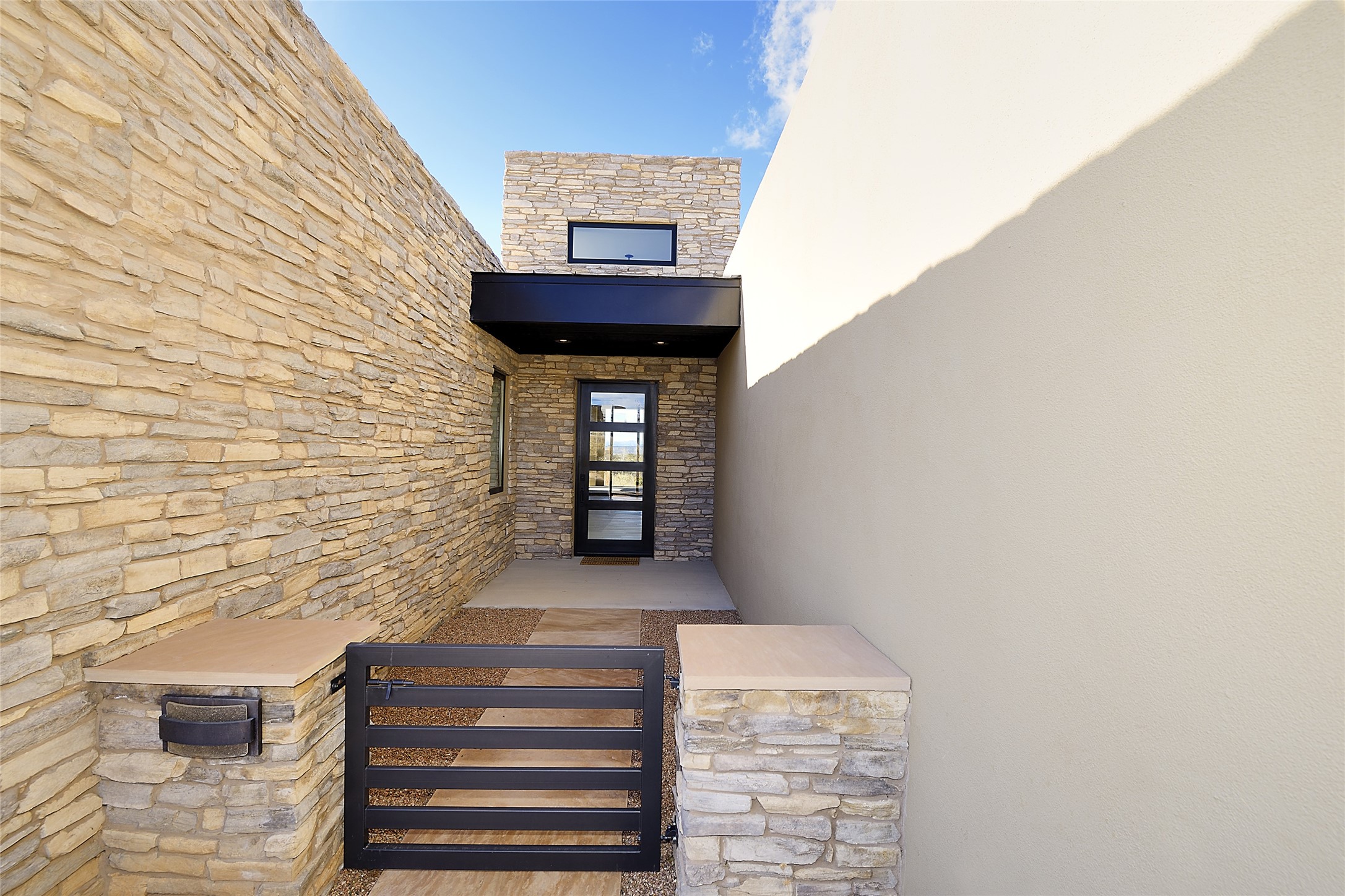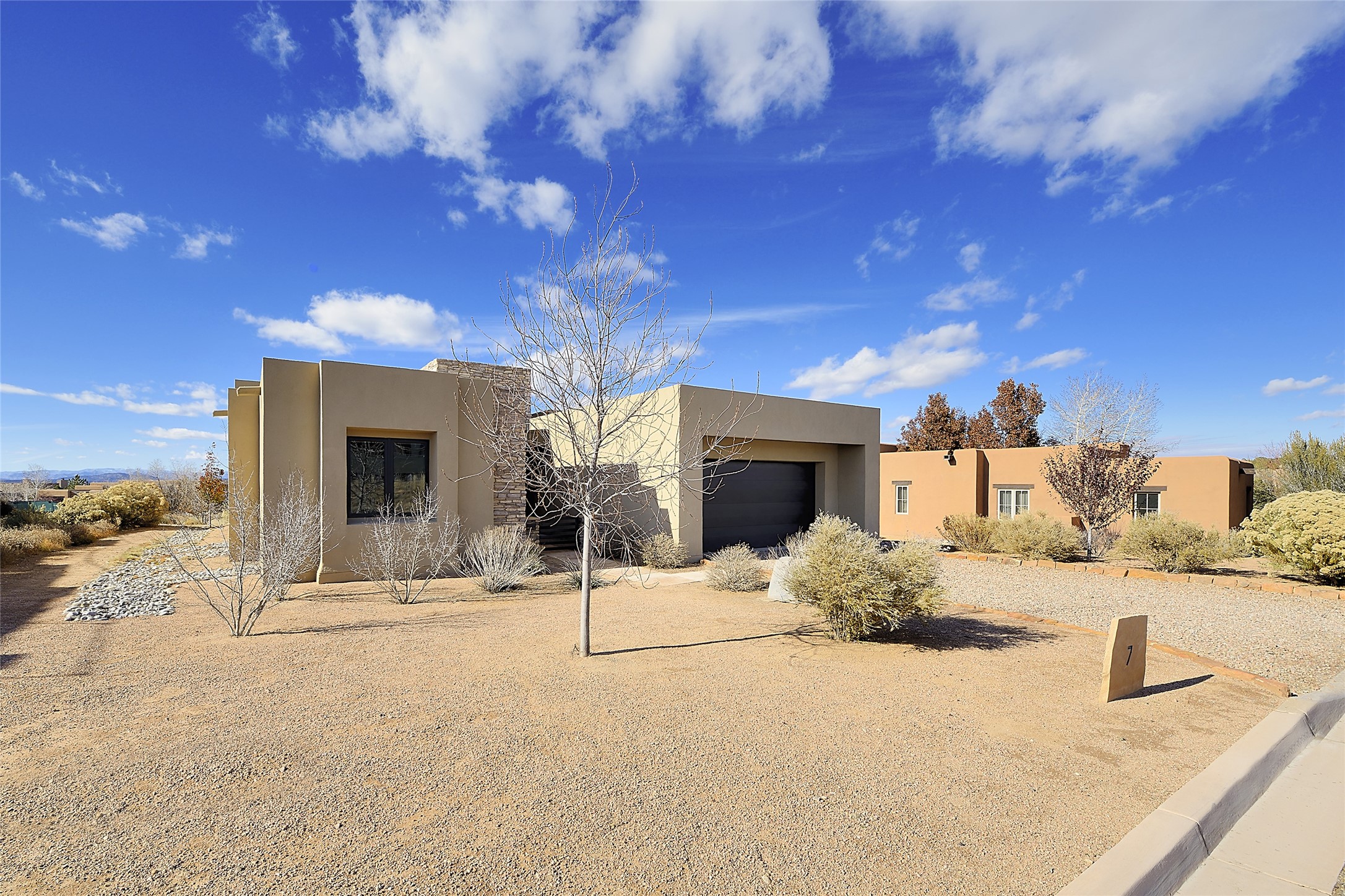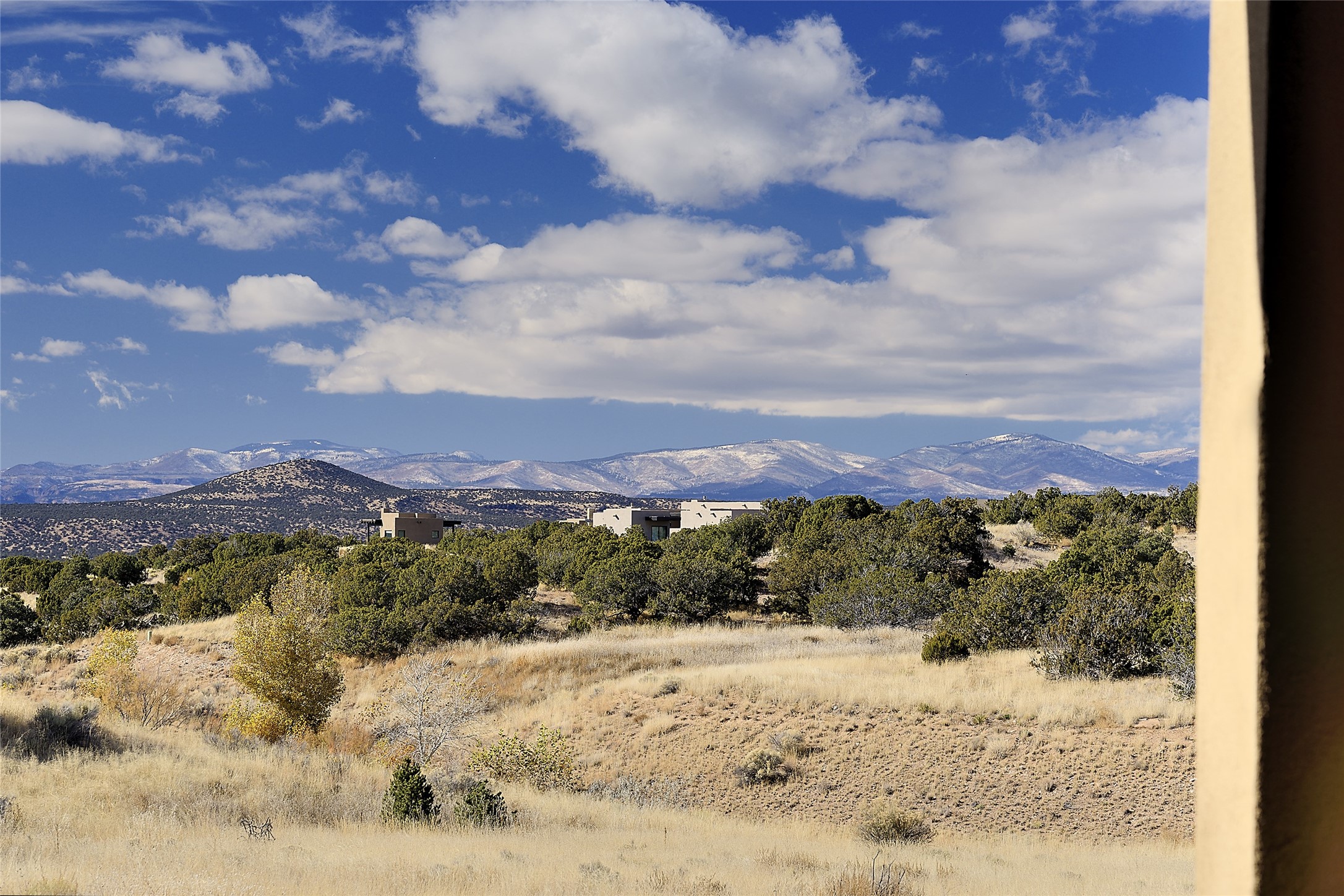 Newer contemporary 3 bedroom 2 bath home with spectacular mountain views in Las Campanas. Single story, no interior steps. Light and airy home with tile floors throughout. The open living/dining/kitchen design enhances ease of entertaining. Kitchen is appointed with upgraded appliances and a spacious center island. Split bedroom plan with large primary suite in a separate wing of the home provides primacy for owners and guests. Primary suite includes a spa like bath with a steam shower and a roomy walk-in closet. Third bedroom offers flex space as an office or studio. Back patio is ideal for al fresco dining. Las Campanas is a well-planned, amenity rich community with convenient access to downtown Santa Fe. Neighborhood features include two Jack Nicklaus Signature golf courses, a luxurious Spa & Tennis Center, the top-notch Las Campanas Equestrian Center, and extensive hiking and biking trails. Club Membership is optional.