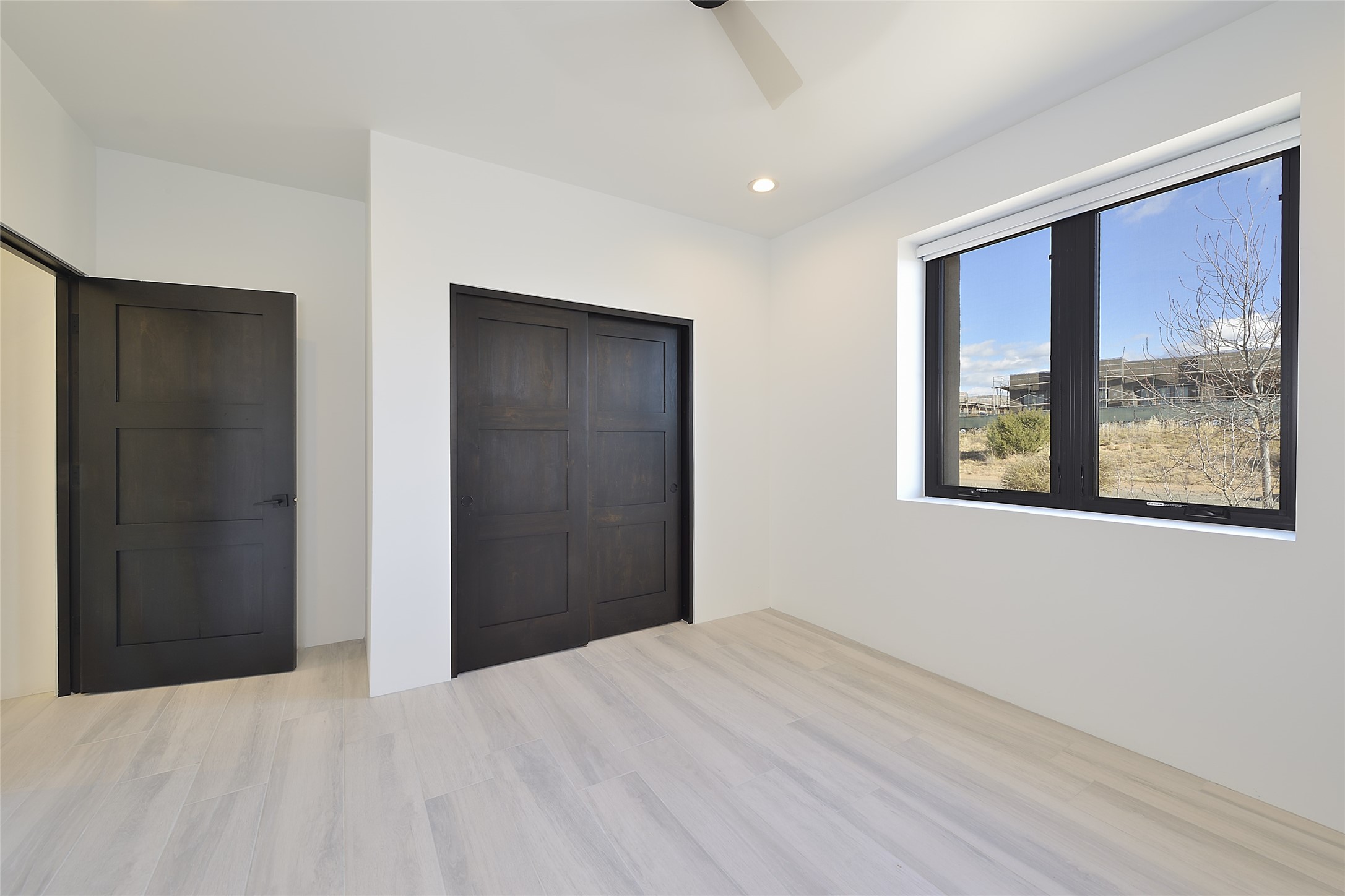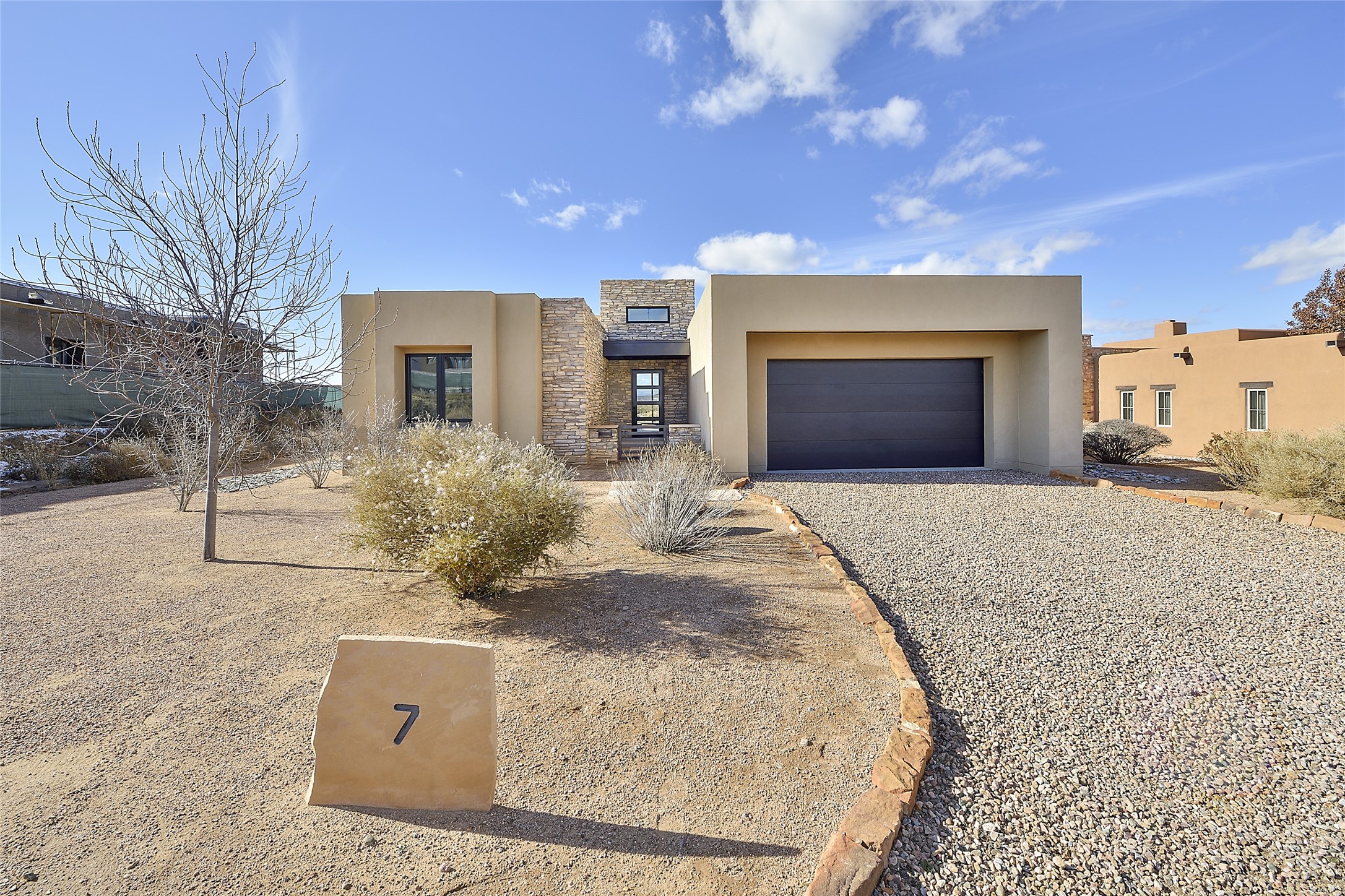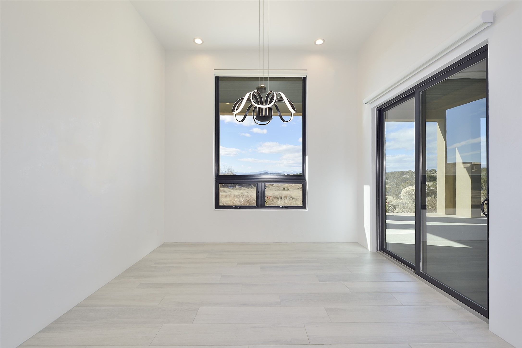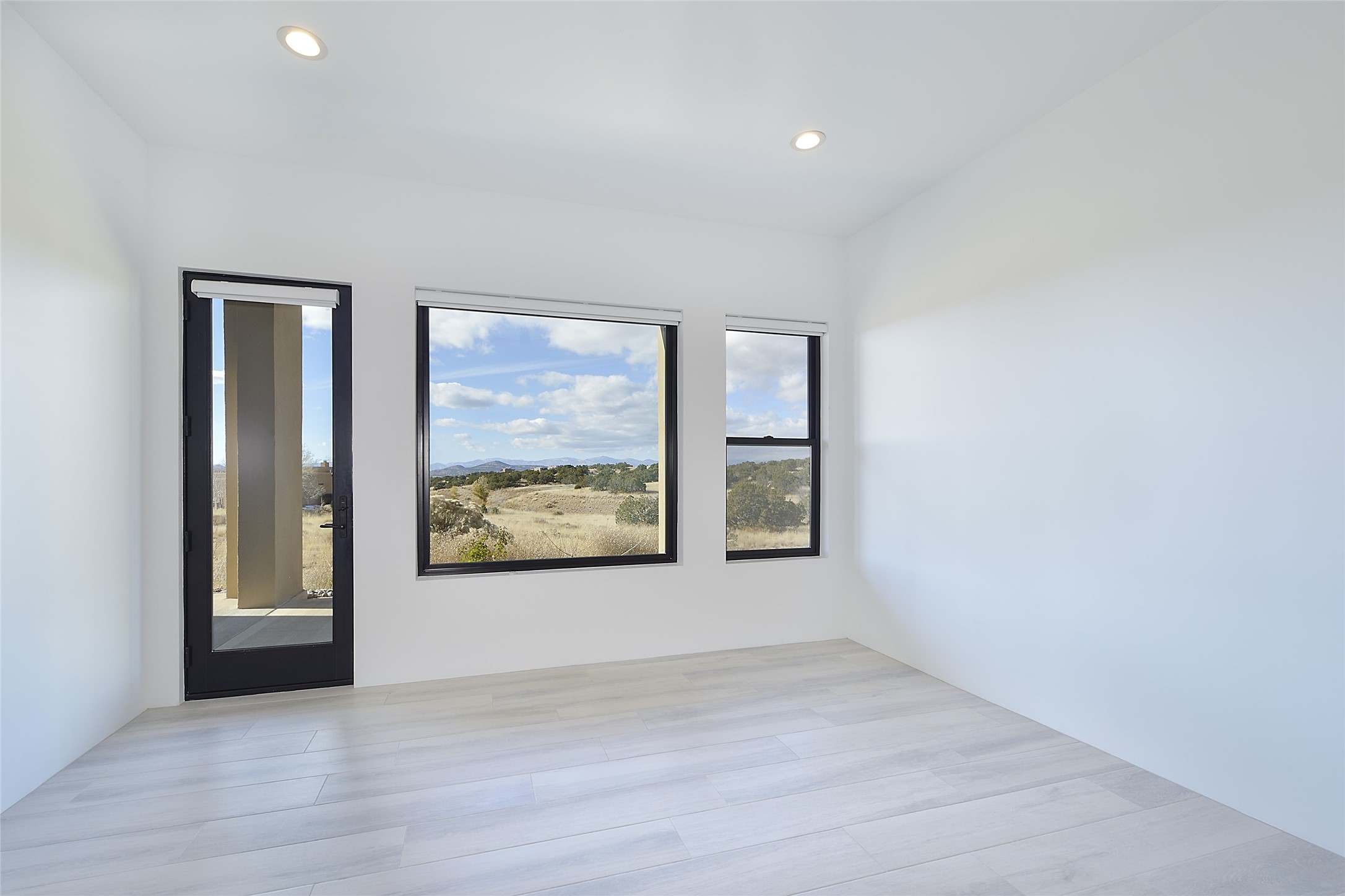 Newer contemporary 3 bedroom 2 bath home with spectacular mountain views in Las Campanas. Single story, no interior steps. Light and airy home with tile floors throughout. The open living/dining/kitchen design enhances ease of entertaining. Kitchen is appointed with upgraded appliances and a spacious center island. Split bedroom plan with large primary suite in a separate wing of the home provides primacy for owners and guests. Primary suite includes a spa like bath with a steam shower and a roomy walk-in closet. Third bedroom offers flex space as an office or studio. Back patio is ideal for al fresco dining. Las Campanas is a well-planned, amenity rich community with convenient access to downtown Santa Fe. Neighborhood features include two Jack Nicklaus Signature golf courses, a luxurious Spa & Tennis Center, the top-notch Las Campanas Equestrian Center, and extensive hiking and biking trails. Club Membership is optional.