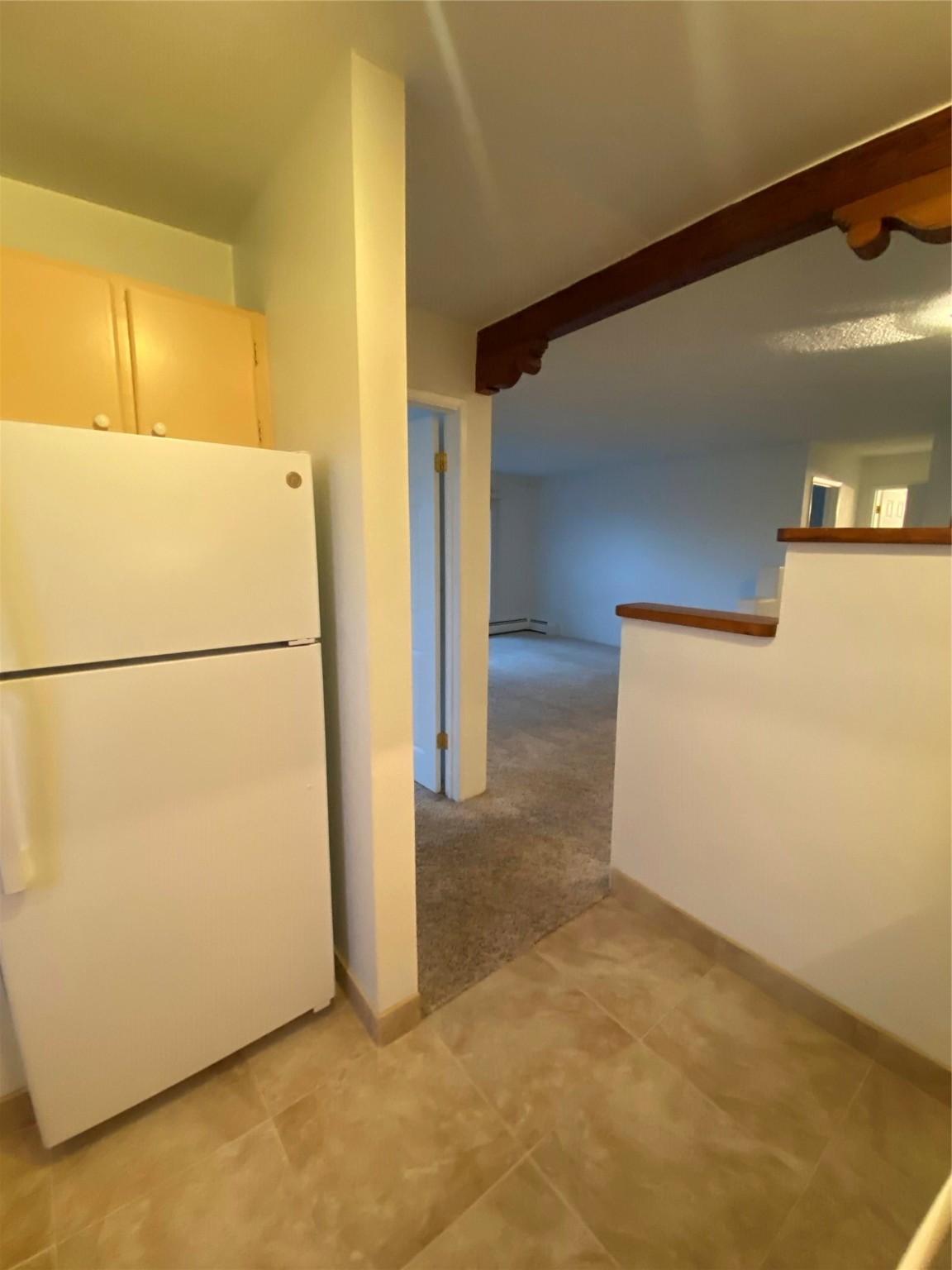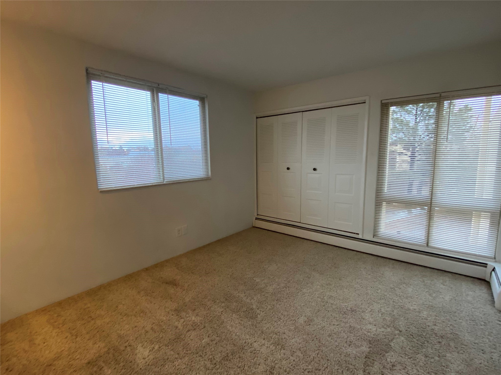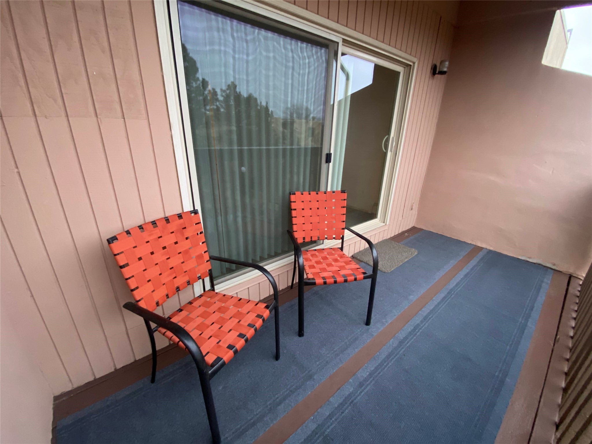 Highly desirable Los Arroyos Compound upstairs, corner unit on a green belt! This pleasant, 2 bedroom, 1 bath, condo is move in ready. Living/dining room combination with nice separation of bedrooms, carpet throughout. New refrigerator and new tile flooring in the kitchen and bathroom. Additional windows in the kitchen and second bedroom provide NW sunlight. Solar tube skylight provides natural light in the bathroom. Balcony faces NE overlooking the greenbelt. Community Amenities include: indoor heated pool, sauna, weight room, hospitality room, tennis and basketball courts and walking trails. Monthly condo fee is $345 per month and includes baseboard hot water heat, water, sewer, refuse, maintenance and insurance on the buildings and grounds. One reserved parking space #9. Second cars and guest park in un-numbered spaces. Convenient to downtown, medical facilities and shopping.