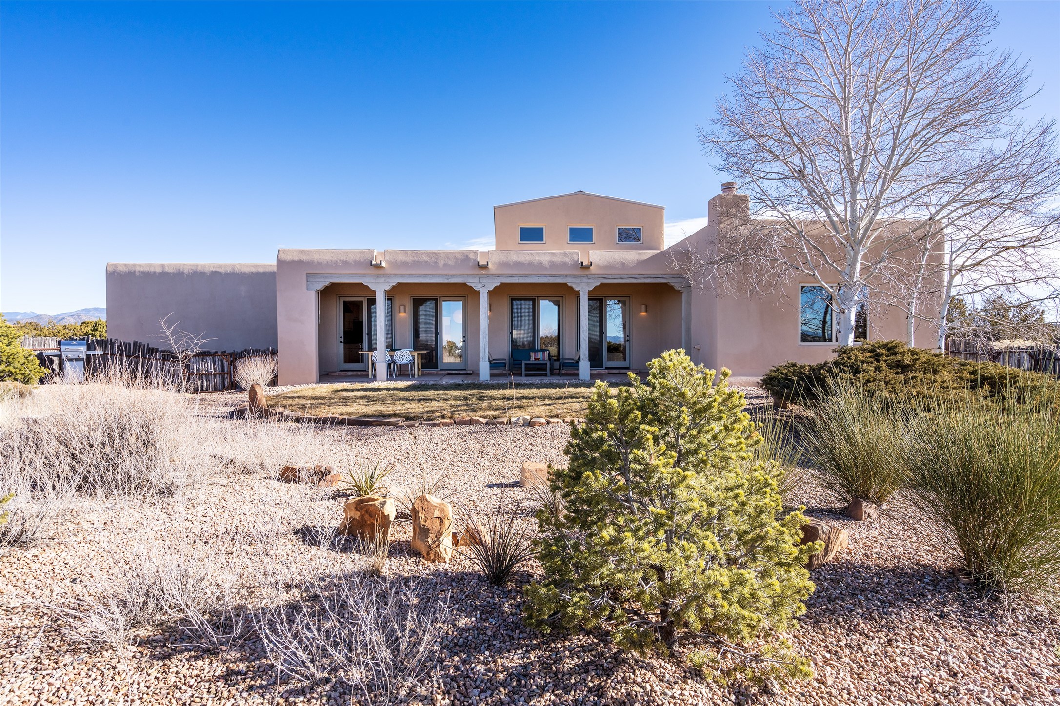 Gorgeous three bedroom, three bath home on 3.85 acres with glorious VIEWS in Tierra Colinas! Updated stainless appliances! All rooms have been repainted. High beamed ceilings in the living area with a corner wood burning fireplace. All bedrooms are downstairs. The primary bedroom has its own fireplace, large bathroom with separate shower and tub and roomy closet. Upstairs is a bonus loft space for a gym and or office. Oversized garage (620 sq. ft) with 220V and extra storage space. Adjacent to the laundry area and garage is the new attached 400 sq. ft studio space; light and bright with many built-ins and new ceramic tiled flooring plus a separate entrance. Transferrable membrane roof warranty. Nice and mature landscaping with a coyote fenced backyard with plenty of room for your pets and or children. Enjoy the sunsets from the back portal; including drop down shade awnings or simply enjoy the amazing dark skies for star gazing. Plenty of open space surround this property with a dedicated green belt. Evaporative cooler, water softener, natural gas radiant heat, Skybell, new boiler and water heater. This enchanting and tranquil home is move in ready. Near the Santa Fe rail trail, Galisteo Basin preserve trails, the Eldorado Community school, the Agora shopping area and restaurants.