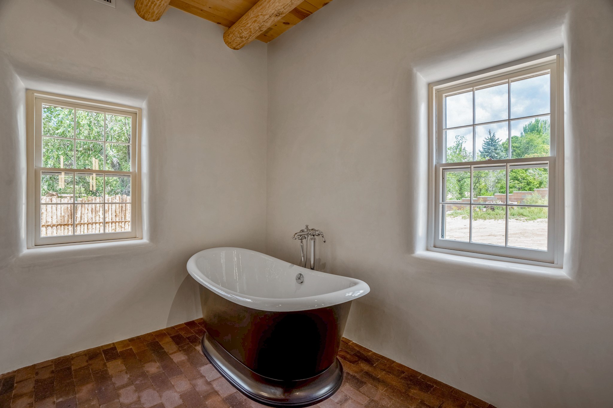 Fully restored/remodeled/rebuilt historic casita in a prime location in the heart of Santa Fe's Historic East Side. Single level casita sits on .134 +/- acre lot. New remodel includes 3 zone radiant floor heat under brick flooring with separate forced air heating and cooling, hot water on demand, Wolf/Sub-Zero/Bosch and Electrolux appliances. Full size WD, custom cabinetry throughout (including solid exterior and interior wood doors), quartz countertops, Rocky Mountain hardware, new foam roof, 2 gas kivas, diamond finish plaster, new vigas and decking with copper flashing, fully restored historic windows and all new electric and plumbing. And, at the end of your day in Santa Fe, come home to your walk-in custom shower, or soak in your cast iron two person tub......ahhhh..... Just steps from Canyon Rd. and the world renown Santa Fe Plaza. Set back off Garcia down a private lane - a fabulous in town location.