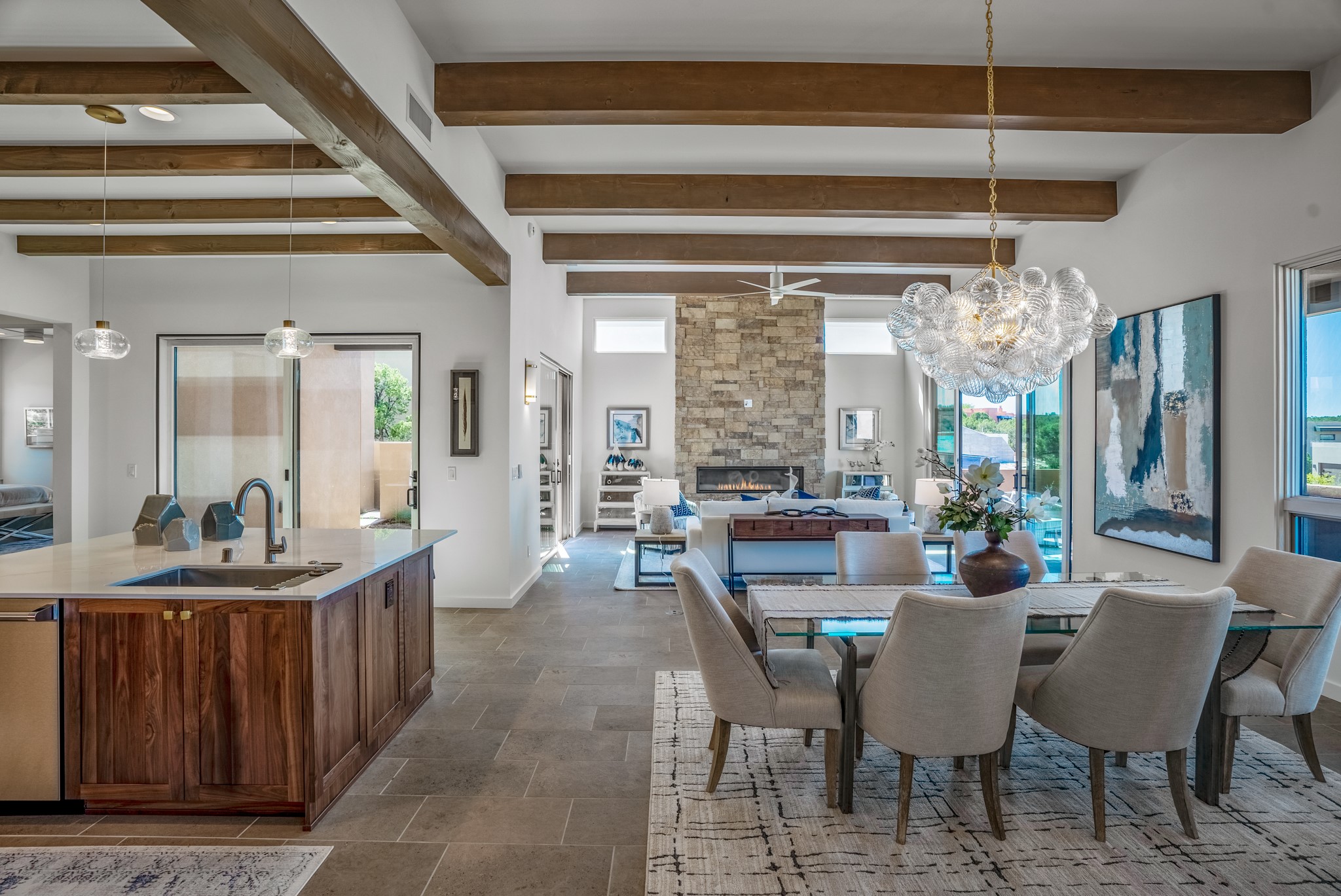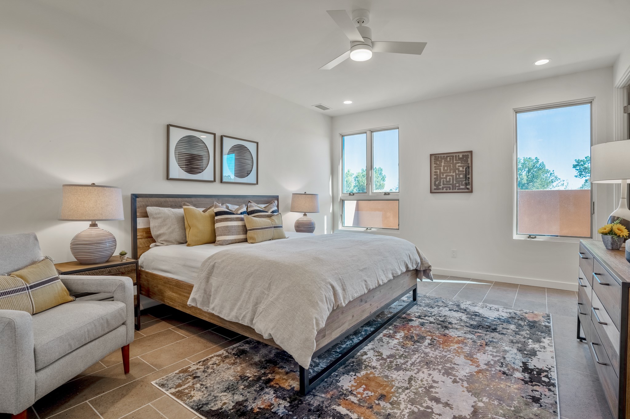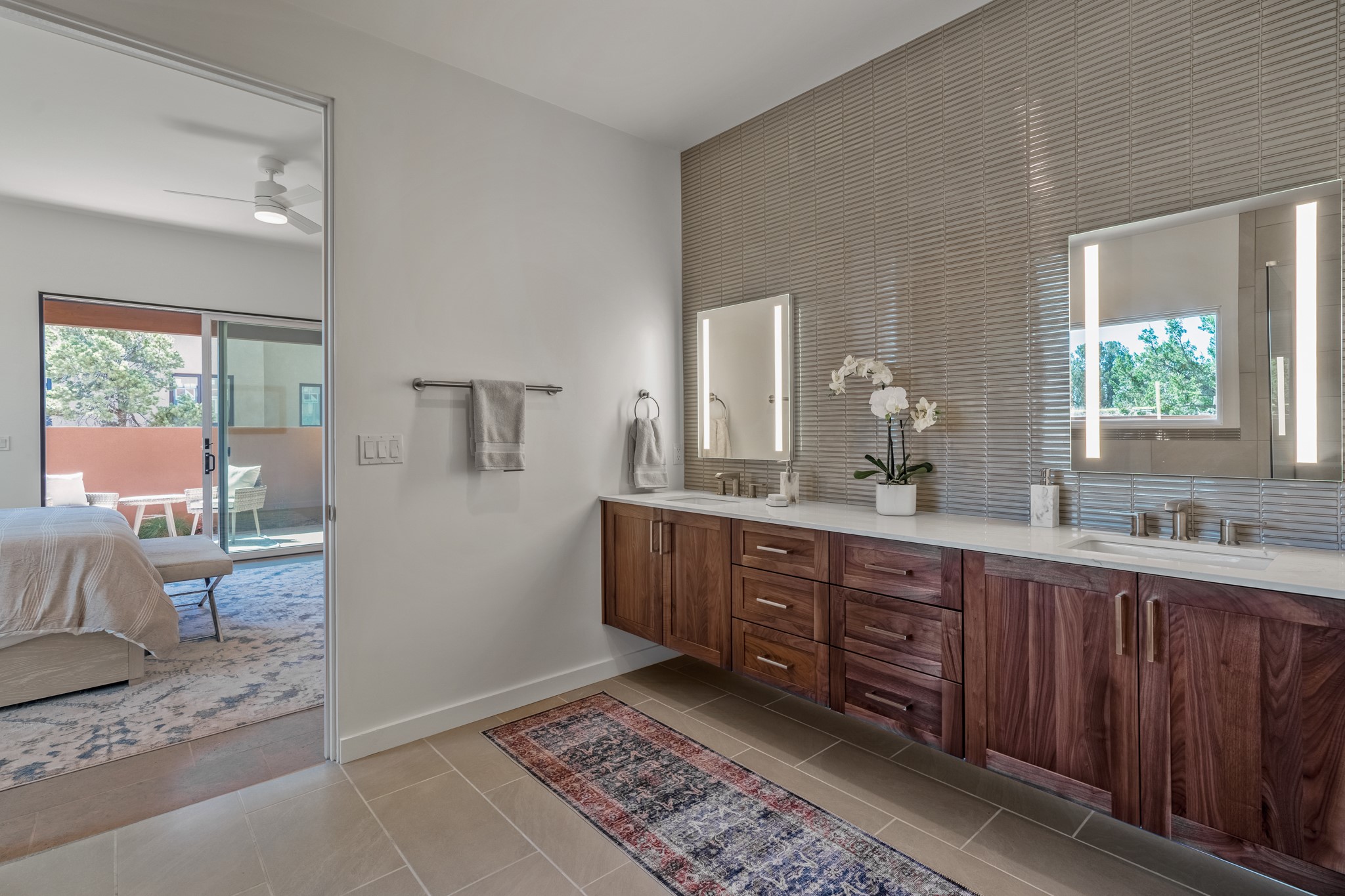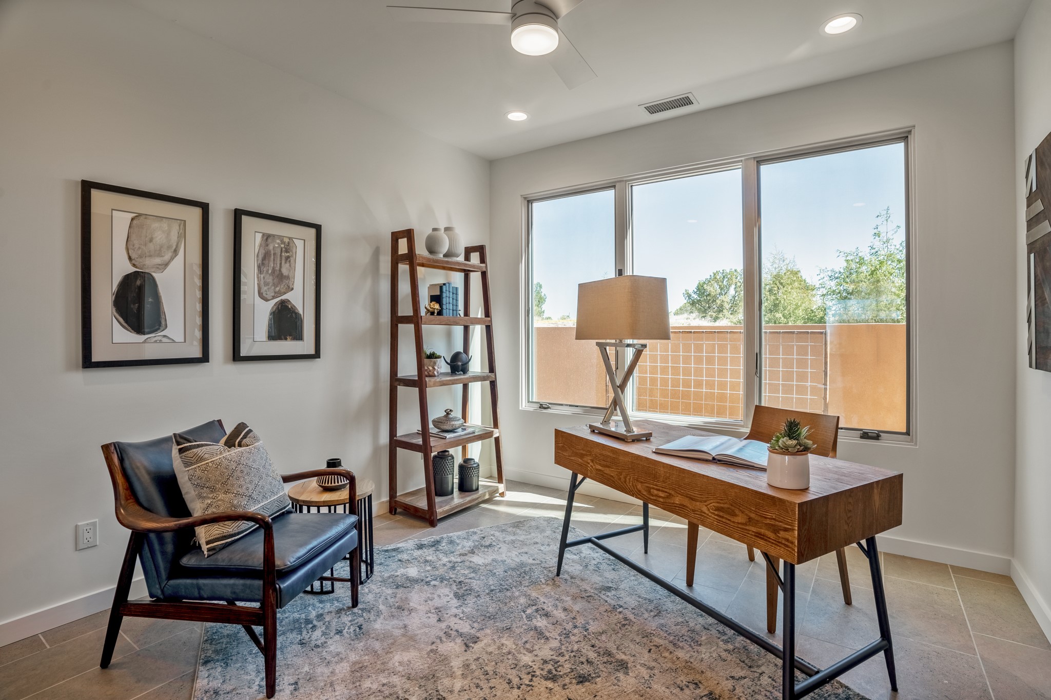 Just completed! Welcome to Valverde's exquisite Sunset floor plan, at 2,495 SF is a seamless blend of Pueblo Revival and Contemporary styles. Near the Las Campanas Sunset Golf Course, you'll enjoy mountain views and 3 outdoor living areas including a trellis covered courtyard patio. Inside you'll find a chef's dream kitchen with stainless steel Viking appliances, quartz countertops, solid wood cabinets, large pantry, all merging elegantly to dining and living areas with a large gas fireplace. The award-winning primary bedroom suite has its own portal, walk-in closet, and bathroom with curbless shower, large tub, and dual sinks. A shared bathroom connects two additional bedrooms/office. HOA fees include road and common area maintenance, 24-hour roaming security, and 24-hour EMTs on site. Membership to The Club at Las Campanas is optional. Club amenities include indoor and outdoor swimming, tennis, fitness facility, equestrian, fine dining, and two Jack Nicklaus Signature Golf Courses.