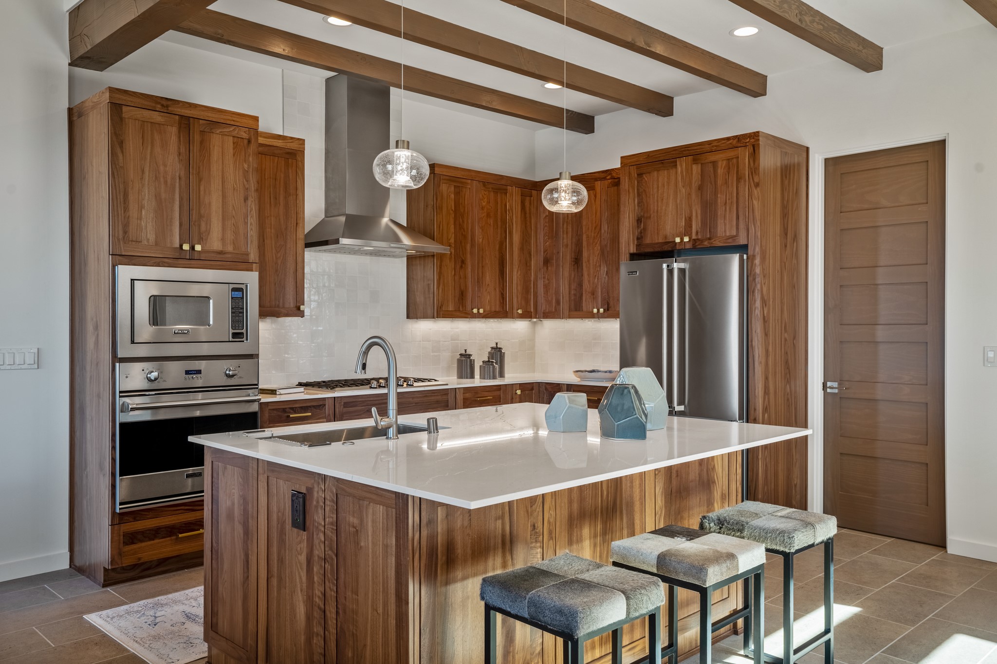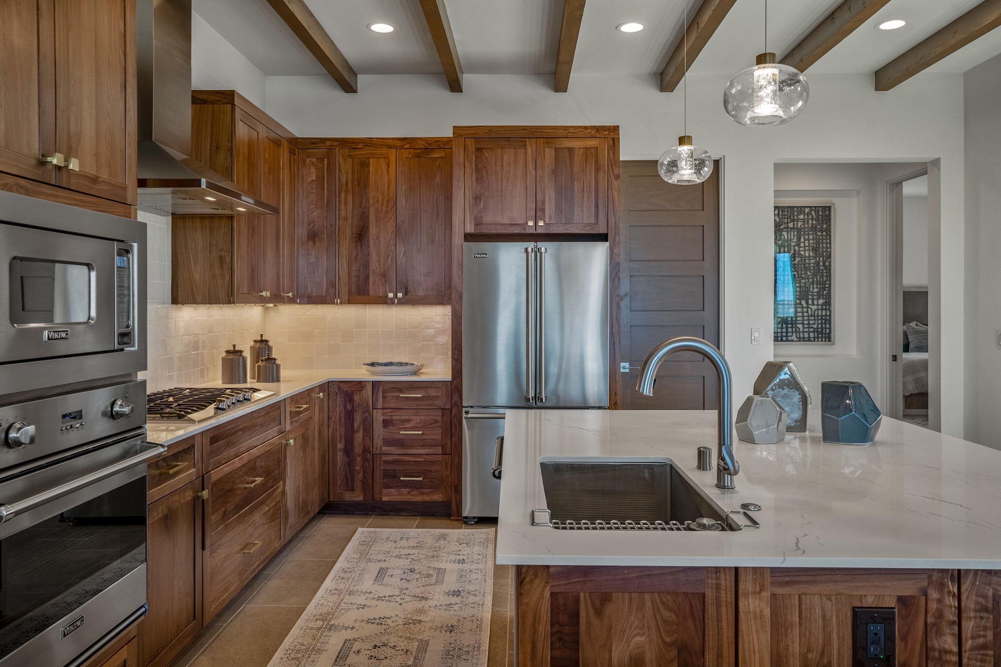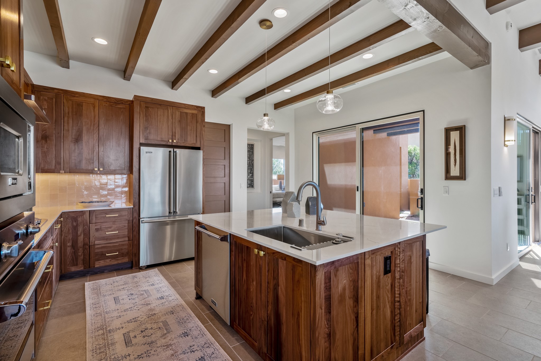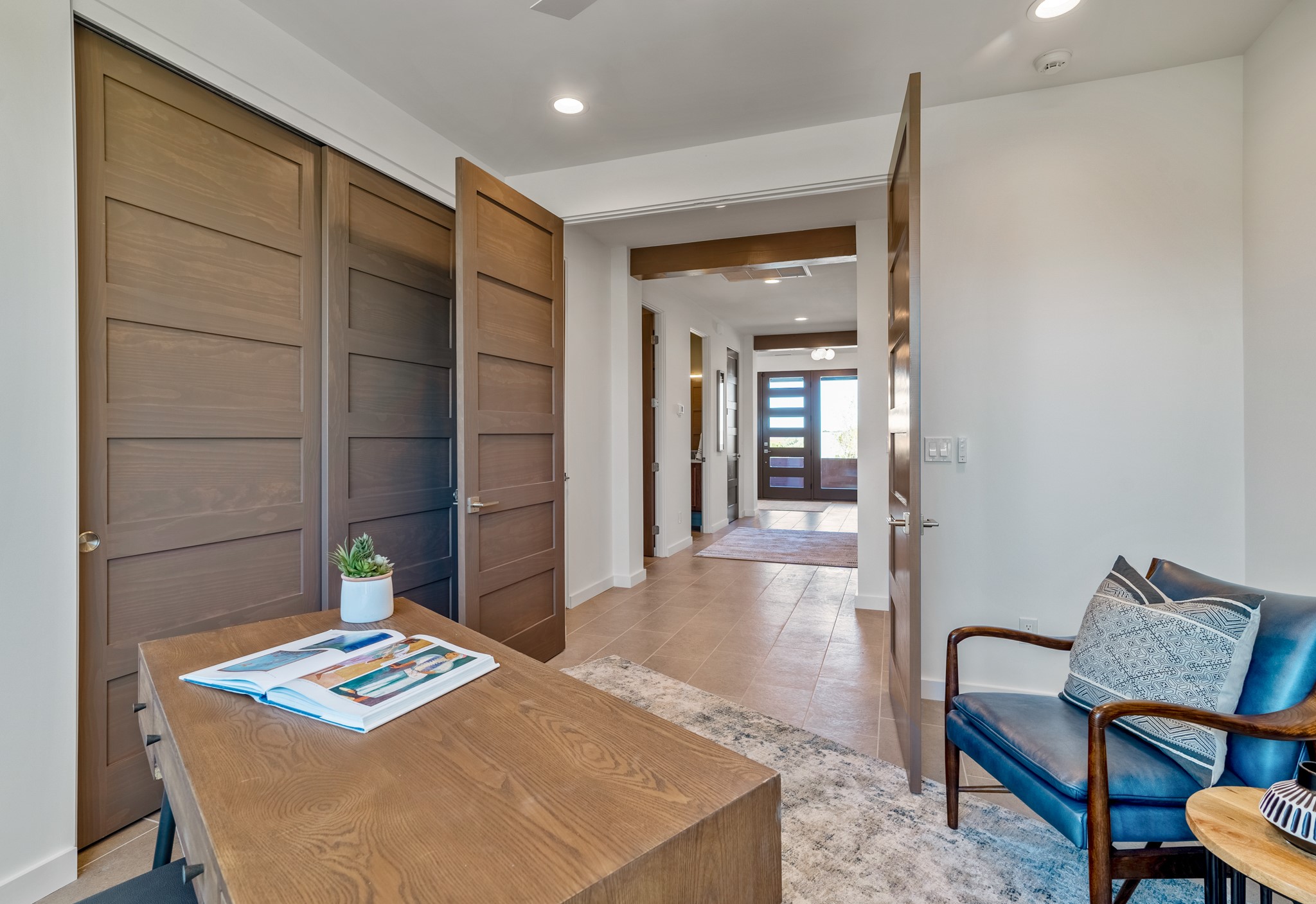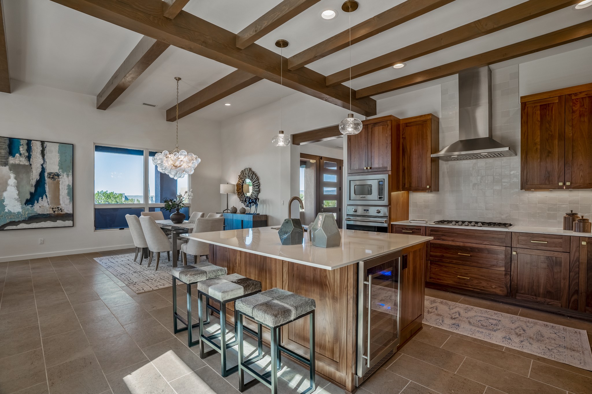 Just completed! Welcome to Valverde's exquisite Sunset floor plan, at 2,495 SF is a seamless blend of Pueblo Revival and Contemporary styles. Near the Las Campanas Sunset Golf Course, you'll enjoy mountain views and 3 outdoor living areas including a trellis covered courtyard patio. Inside you'll find a chef's dream kitchen with stainless steel Viking appliances, quartz countertops, solid wood cabinets, large pantry, all merging elegantly to dining and living areas with a large gas fireplace. The award-winning primary bedroom suite has its own portal, walk-in closet, and bathroom with curbless shower, large tub, and dual sinks. A shared bathroom connects two additional bedrooms/office. HOA fees include road and common area maintenance, 24-hour roaming security, and 24-hour EMTs on site. Membership to The Club at Las Campanas is optional. Club amenities include indoor and outdoor swimming, tennis, fitness facility, equestrian, fine dining, and two Jack Nicklaus Signature Golf Courses.