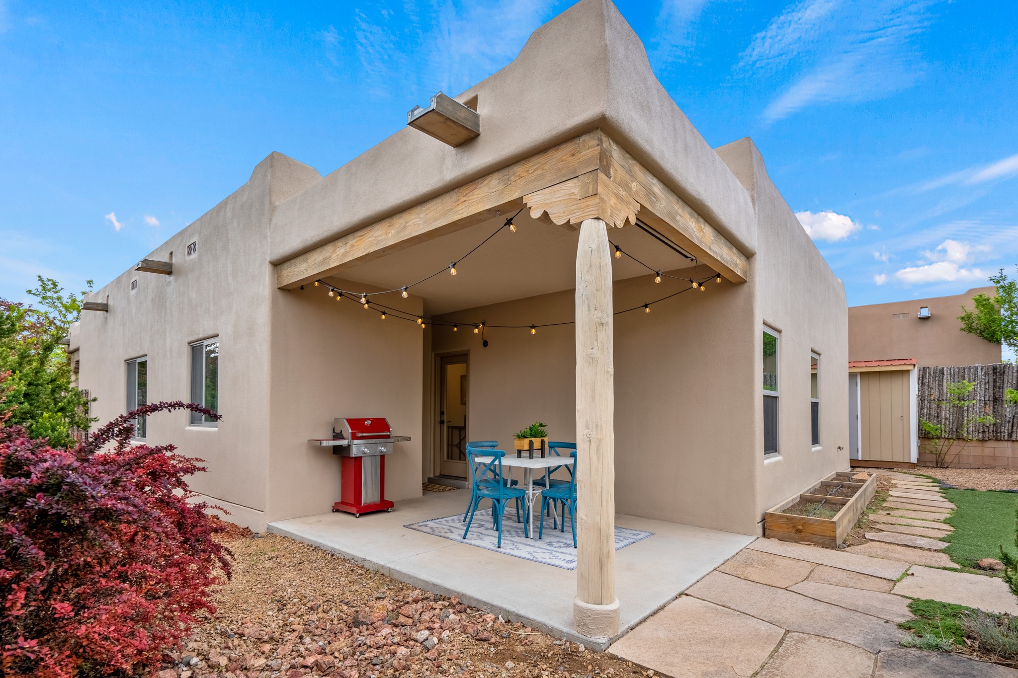 Great location! Newer construction! Priced to sell! This 2-bedroom plus office is nestled in the Sangre de Cristo foothills in a highly desirable area near El Gancho and Harry's Roadhouse, the Santa Fe National Forest is literally at your front door. Enjoy unobstructed views of Sun and Moon mountains, plenty of hiking, and a 5-minute bike ride to Arroyo Hondo Trailhead. 7-minutes to downtown, shopping, and grocery stores, and located within the coveted Wood Gormley school district. This energy-efficient home is priced competitively and is an excellent option for those seeking affordability without compromising on quality. The thoughtfully designed floor plan offers 2 bedrooms plus office and maximizes comfort and functionality. Enjoy lots of extra storage features in the laundry room, garage, and custom-built outdoor tool shed with electricity. Kitchen features granite countertops, marble backsplash, silent dishwasher, and high-end water filtration system. Enjoy on-demand hot water throughout the house. Washer and dryer are brand new. The front and backyard offer fruit trees, mature landscaping, and drip irrigation. This home has been well-maintained and is turn-key ready for its new owners!