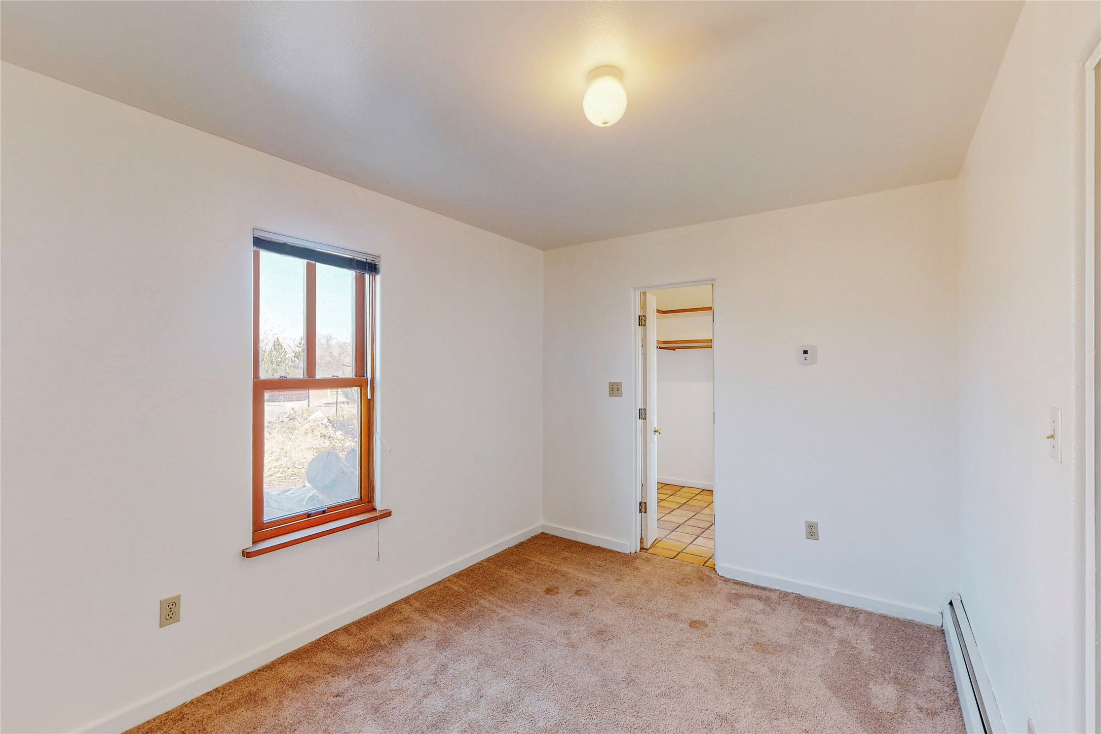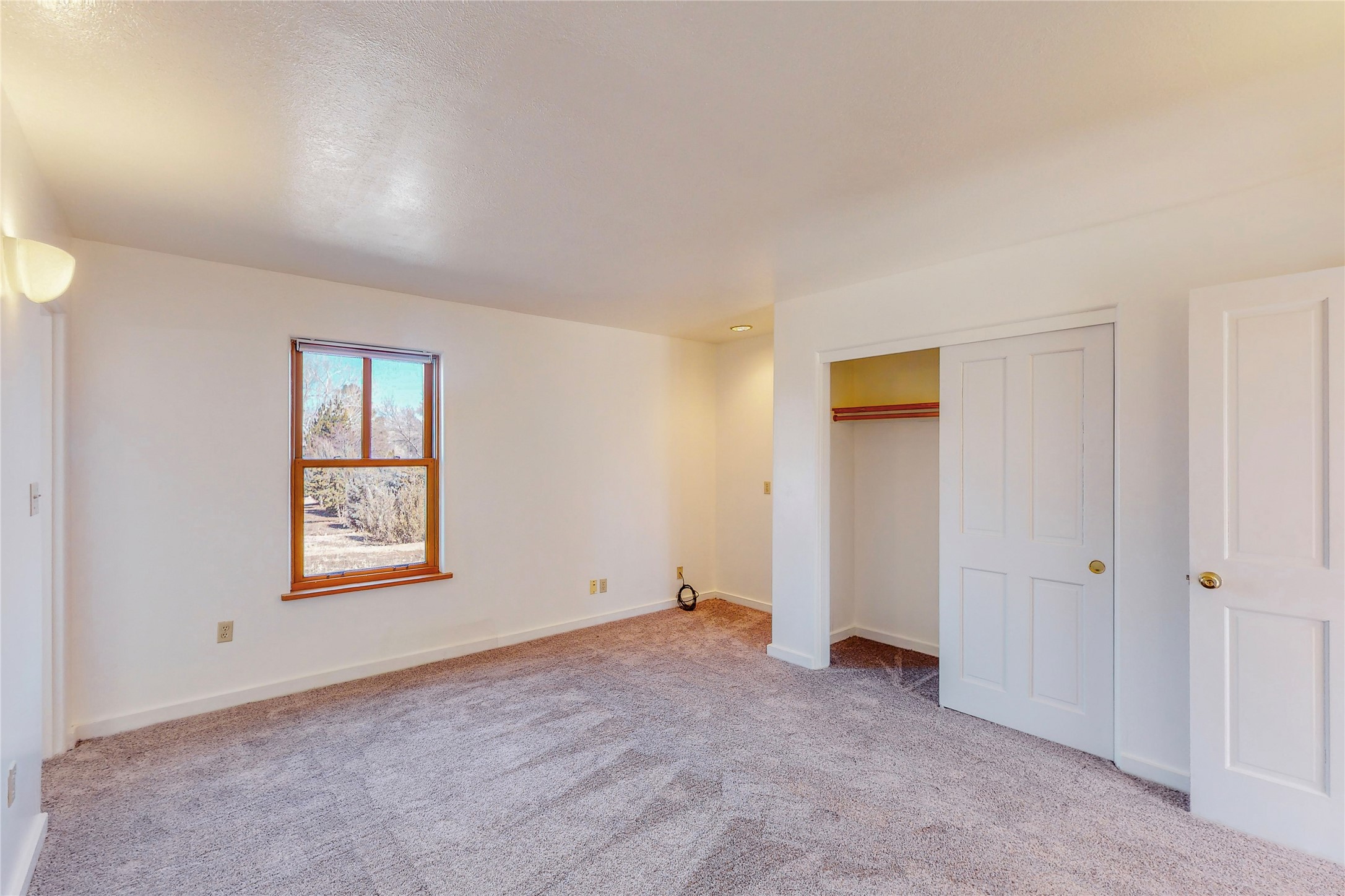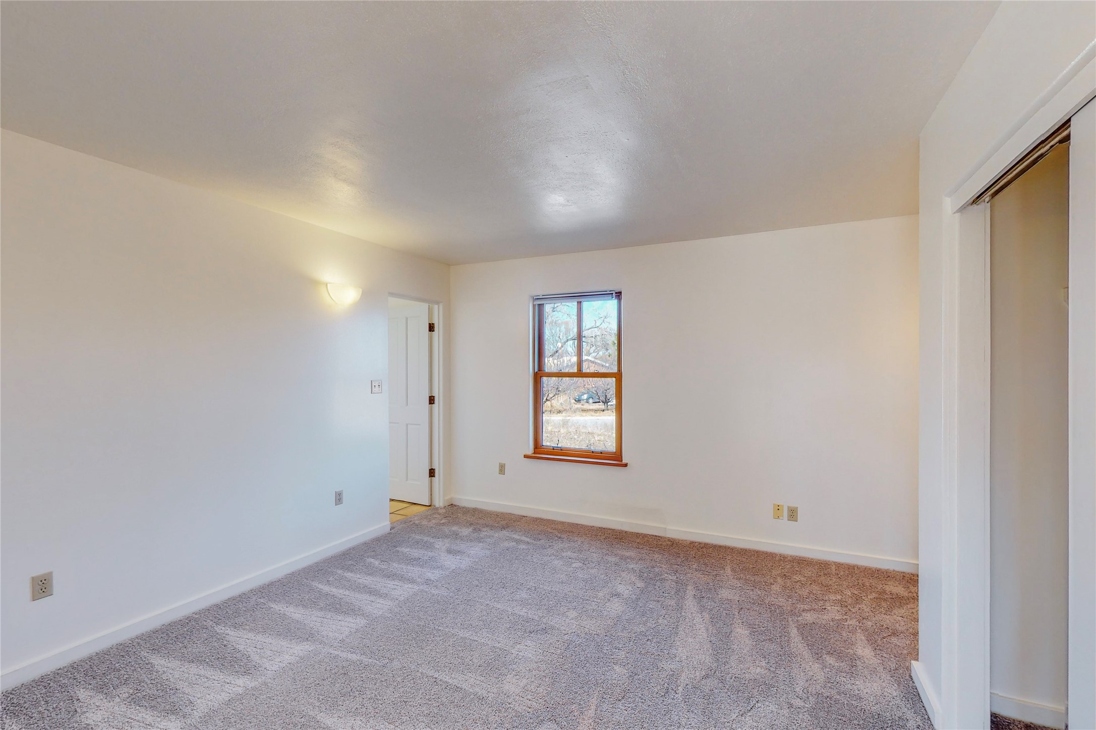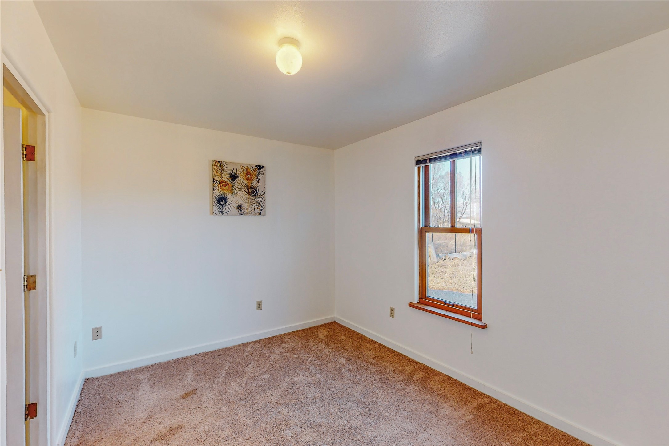 Smack dab in the middle between Santa Fe and Los Alamos, and set way back on the lot, is this Northern New Mexican pitched metal roof charmer. In a quiet rural Sombrillo setting, this custom built home has an oversized 2-car garage and one bedroom guest house on a 1/2 acre with a private well which makes this a horticulturists' delight! Walled and gated courtyard leads to the front L-shaped portal with beamed ceiling and brick floors. Gracious open concept Living/Dining Room with Cathedral vaulted beamed ceiling, saltillo tile floors and fireplace. Kitchen and the large utility room is adjacent. Wide sun drenched hallway could easily be a sitting area/office or solarium and leads to the newly carpeted ensuite Master and guest bedroom. Tons of natural light and windows. New HVAC in house and guest house. Plenty of off-street parking for your vehicles, boats and an RV or two.