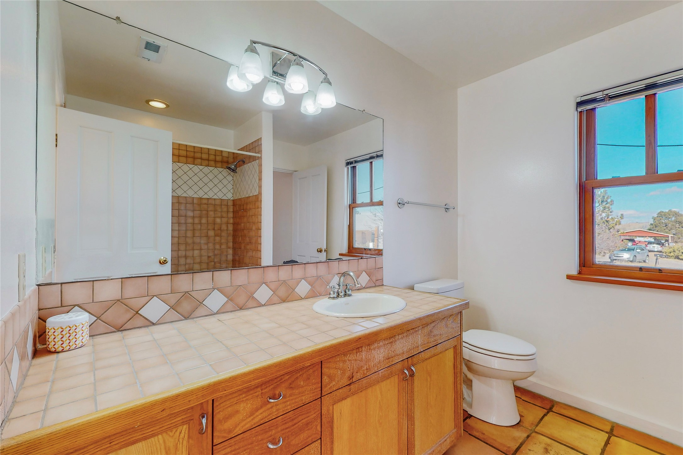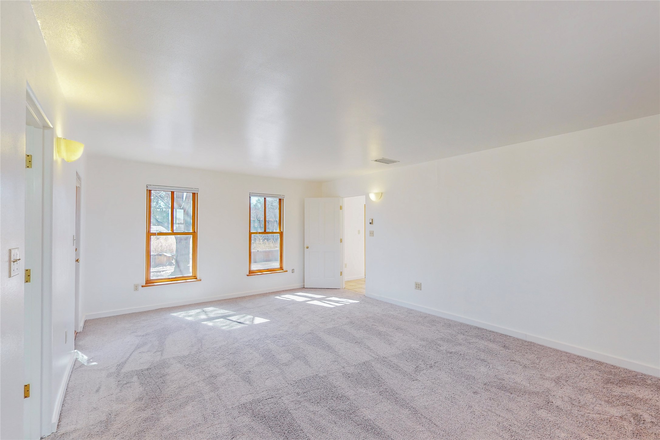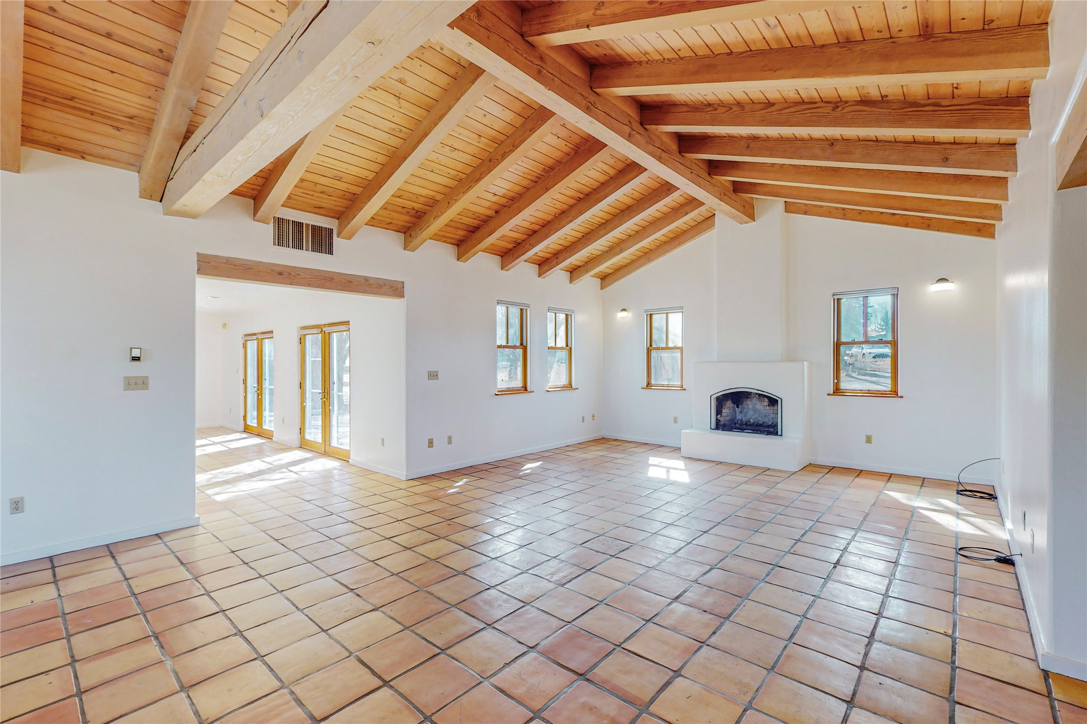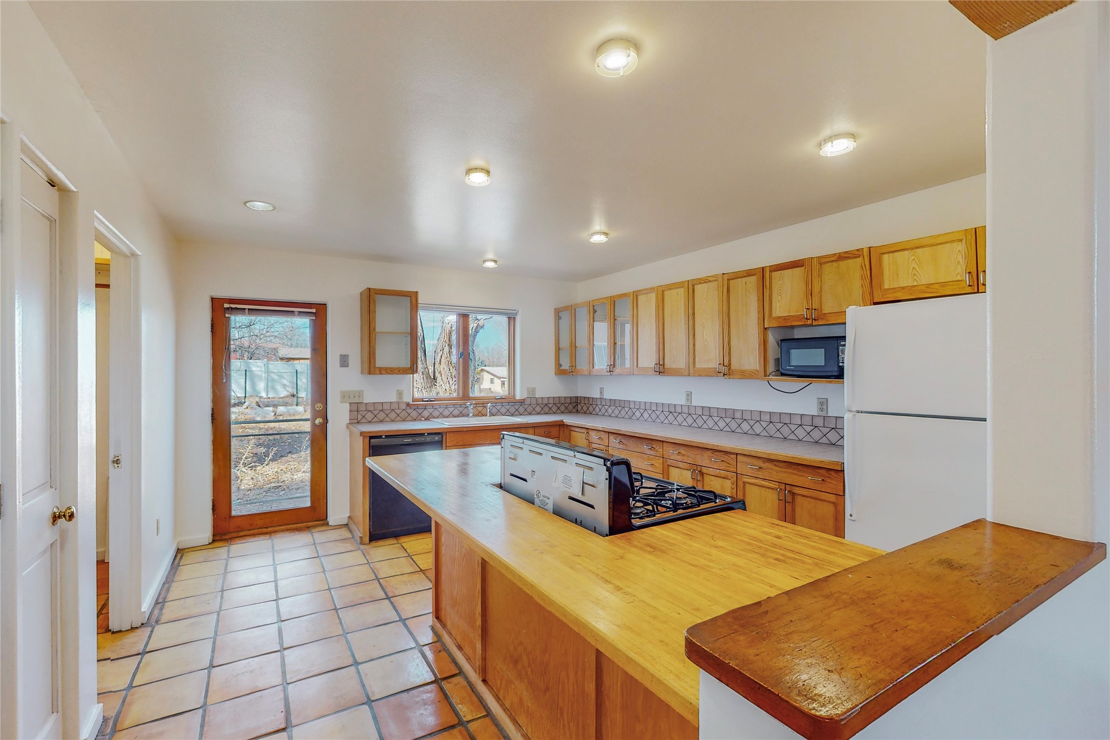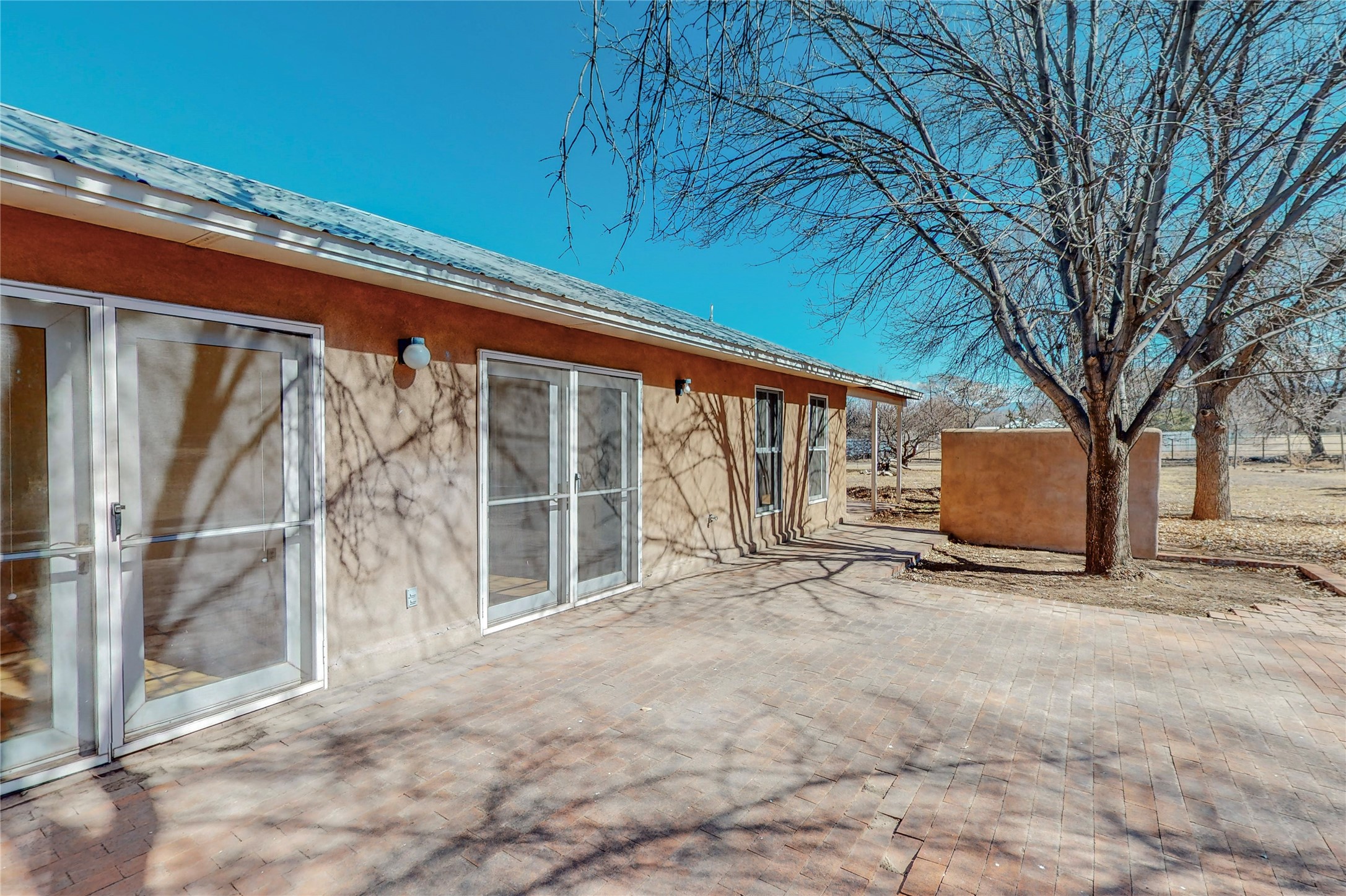 Smack dab in the middle between Santa Fe and Los Alamos, and set way back on the lot, is this Northern New Mexican pitched metal roof charmer. In a quiet rural Sombrillo setting, this custom built home has an oversized 2-car garage and one bedroom guest house on a 1/2 acre with a private well which makes this a horticulturists' delight! Walled and gated courtyard leads to the front L-shaped portal with beamed ceiling and brick floors. Gracious open concept Living/Dining Room with Cathedral vaulted beamed ceiling, saltillo tile floors and fireplace. Kitchen and the large utility room is adjacent. Wide sun drenched hallway could easily be a sitting area/office or solarium and leads to the newly carpeted ensuite Master and guest bedroom. Tons of natural light and windows. New HVAC in house and guest house. Plenty of off-street parking for your vehicles, boats and an RV or two.