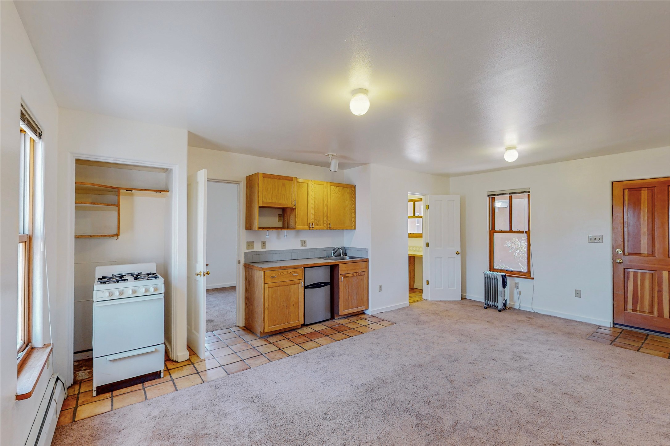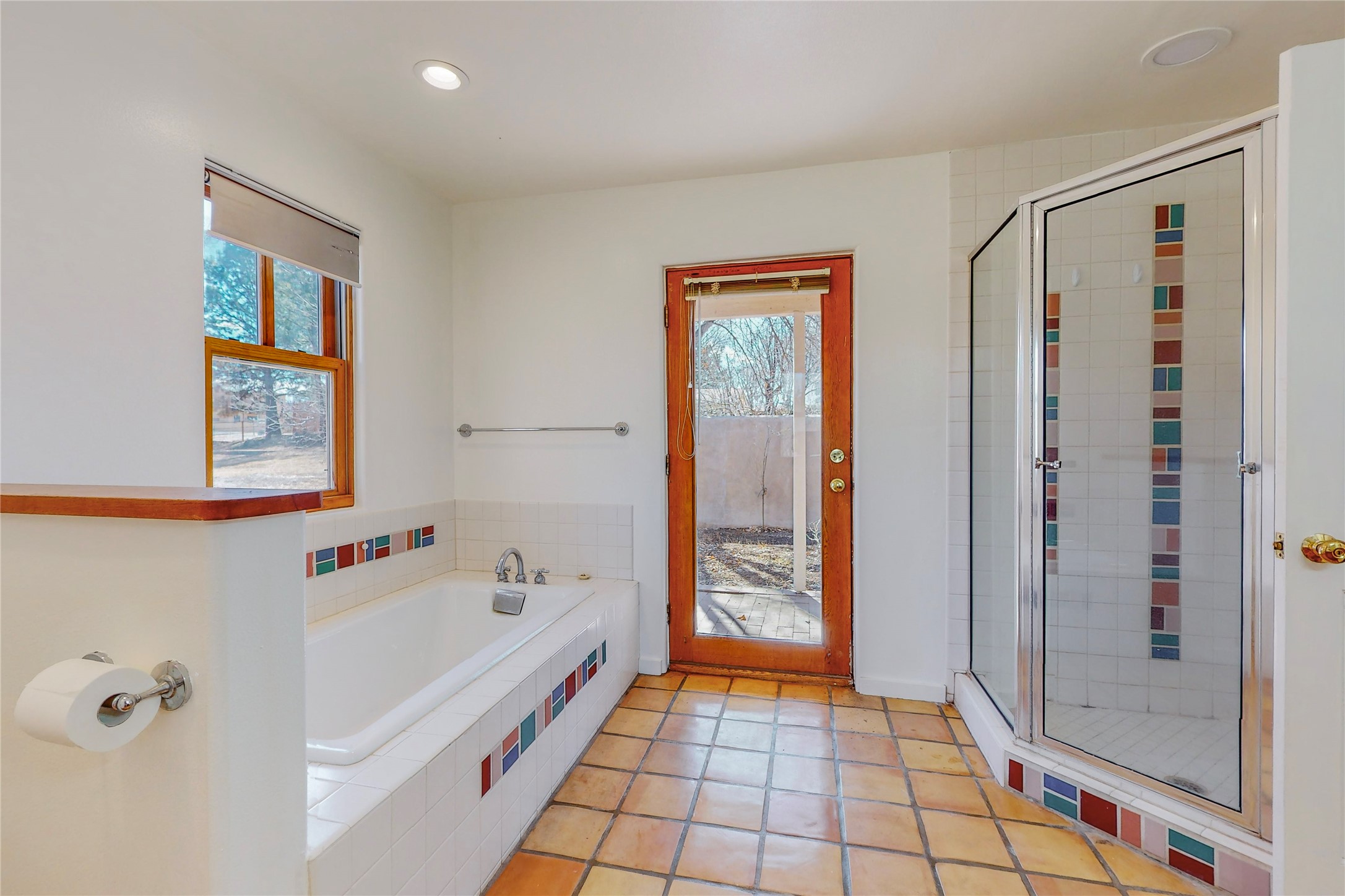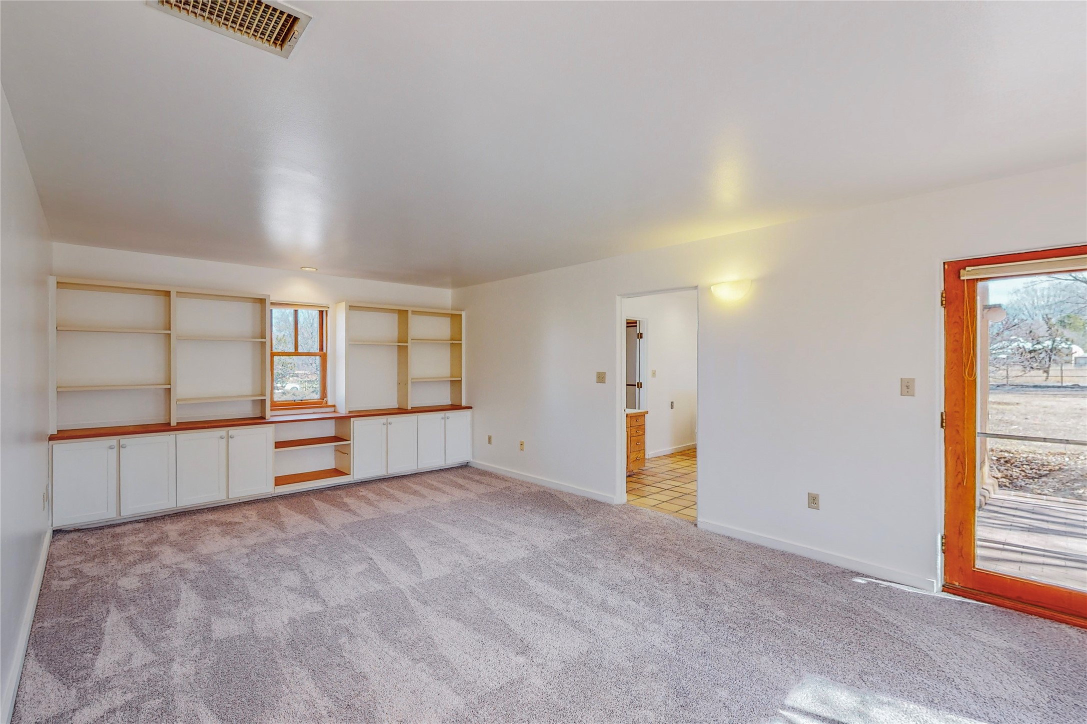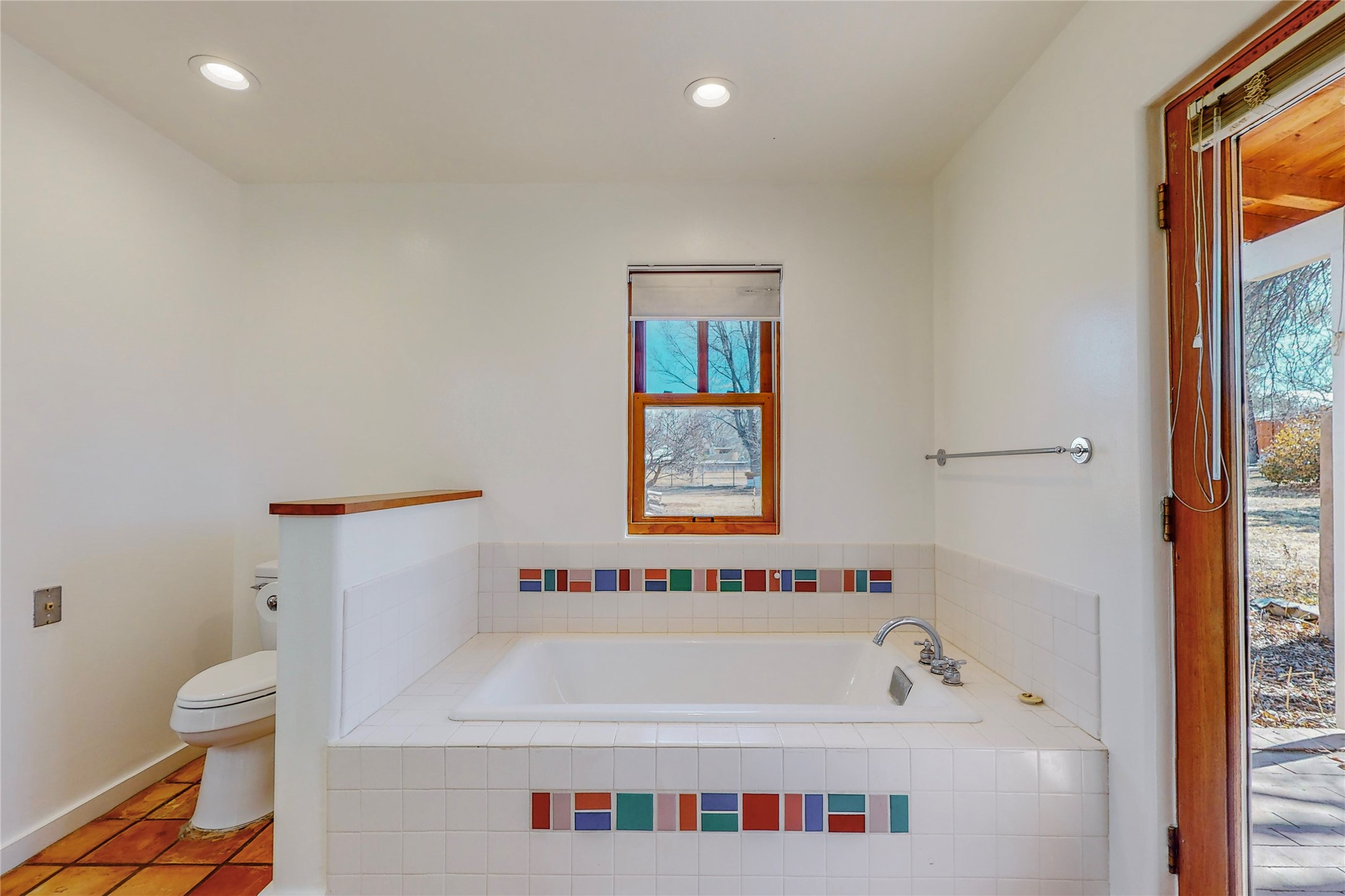 Smack dab in the middle between Santa Fe and Los Alamos, and set way back on the lot, is this Northern New Mexican pitched metal roof charmer. In a quiet rural Sombrillo setting, this custom built home has an oversized 2-car garage and one bedroom guest house on a 1/2 acre with a private well which makes this a horticulturists' delight! Walled and gated courtyard leads to the front L-shaped portal with beamed ceiling and brick floors. Gracious open concept Living/Dining Room with Cathedral vaulted beamed ceiling, saltillo tile floors and fireplace. Kitchen and the large utility room is adjacent. Wide sun drenched hallway could easily be a sitting area/office or solarium and leads to the newly carpeted ensuite Master and guest bedroom. Tons of natural light and windows. New HVAC in house and guest house. Plenty of off-street parking for your vehicles, boats and an RV or two.