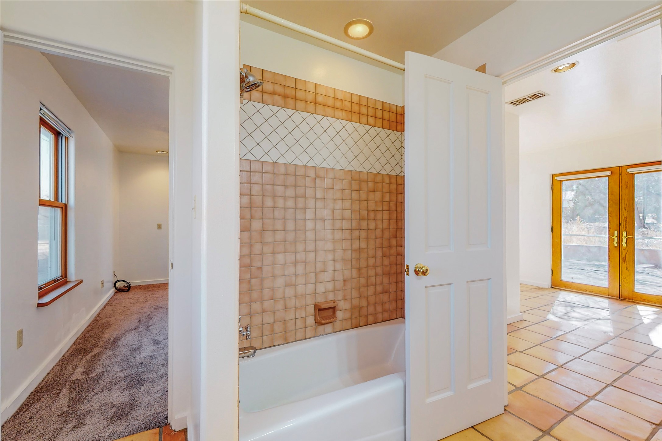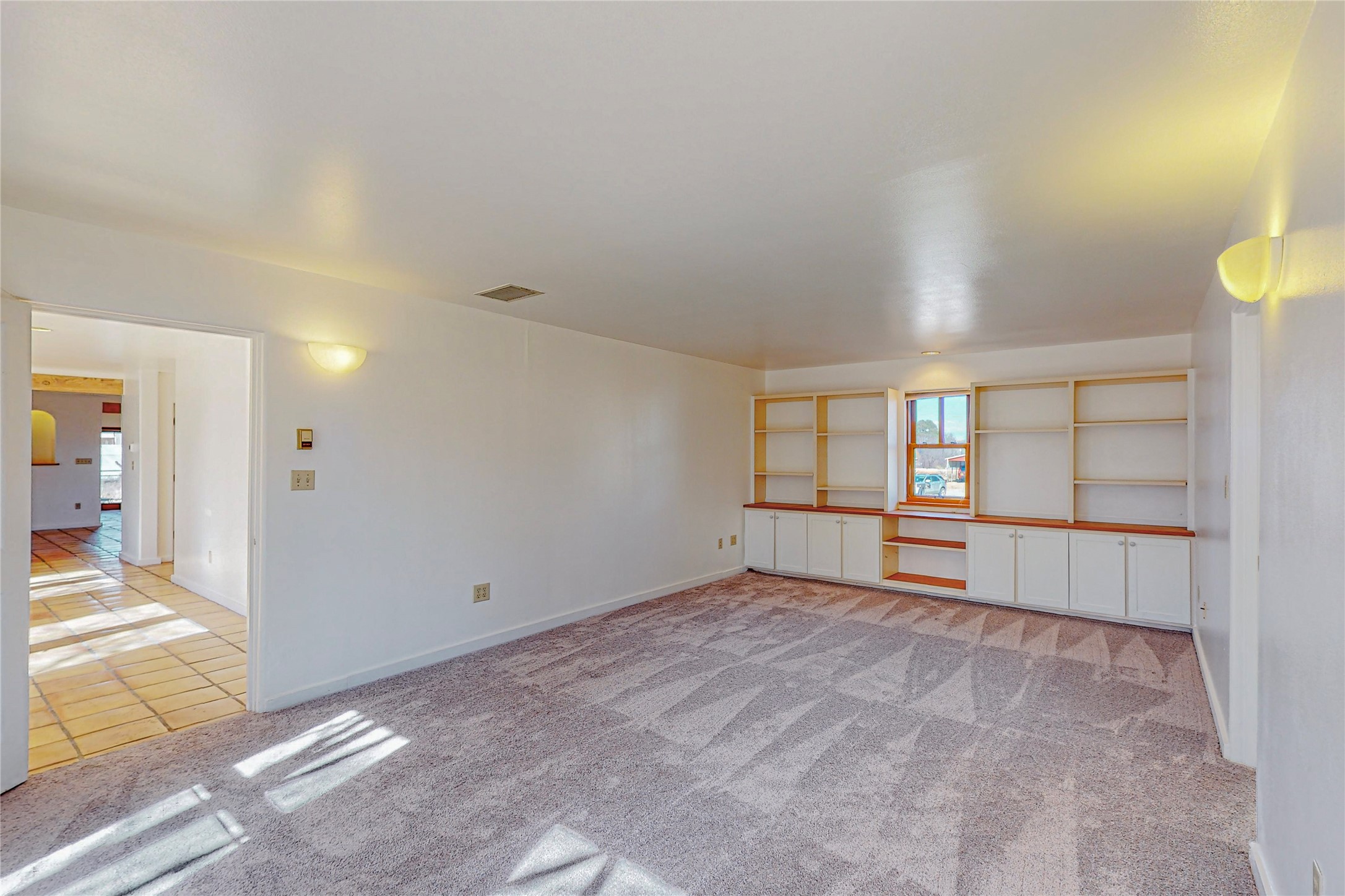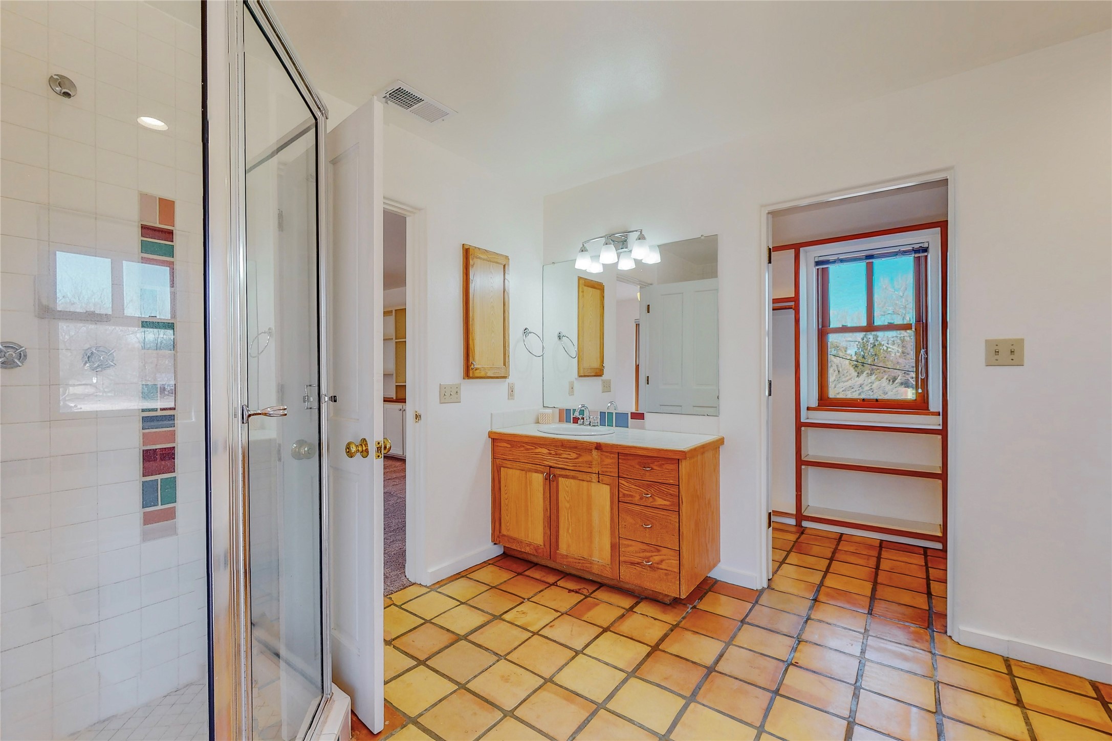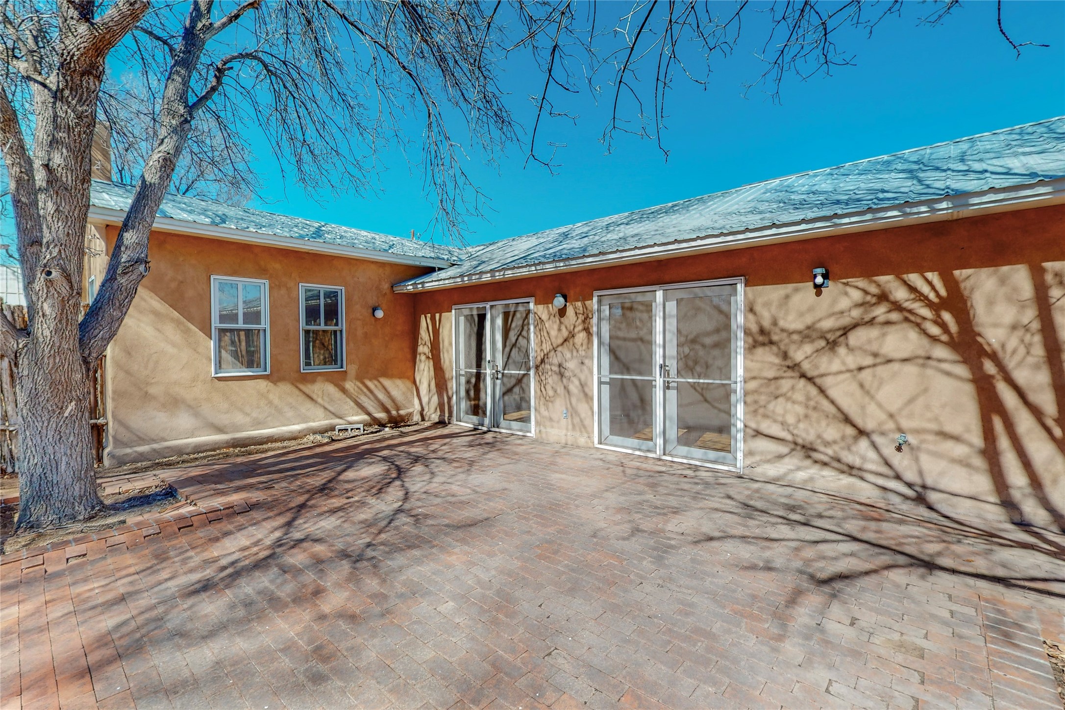 Smack dab in the middle between Santa Fe and Los Alamos, and set way back on the lot, is this Northern New Mexican pitched metal roof charmer. In a quiet rural Sombrillo setting, this custom built home has an oversized 2-car garage and one bedroom guest house on a 1/2 acre with a private well which makes this a horticulturists' delight! Walled and gated courtyard leads to the front L-shaped portal with beamed ceiling and brick floors. Gracious open concept Living/Dining Room with Cathedral vaulted beamed ceiling, saltillo tile floors and fireplace. Kitchen and the large utility room is adjacent. Wide sun drenched hallway could easily be a sitting area/office or solarium and leads to the newly carpeted ensuite Master and guest bedroom. Tons of natural light and windows. New HVAC in house and guest house. Plenty of off-street parking for your vehicles, boats and an RV or two.