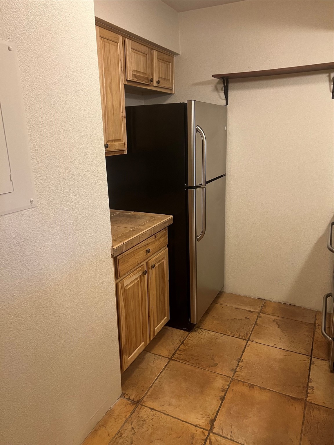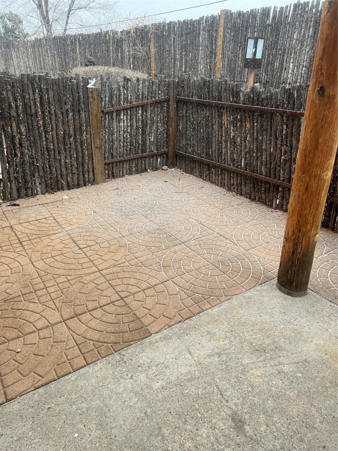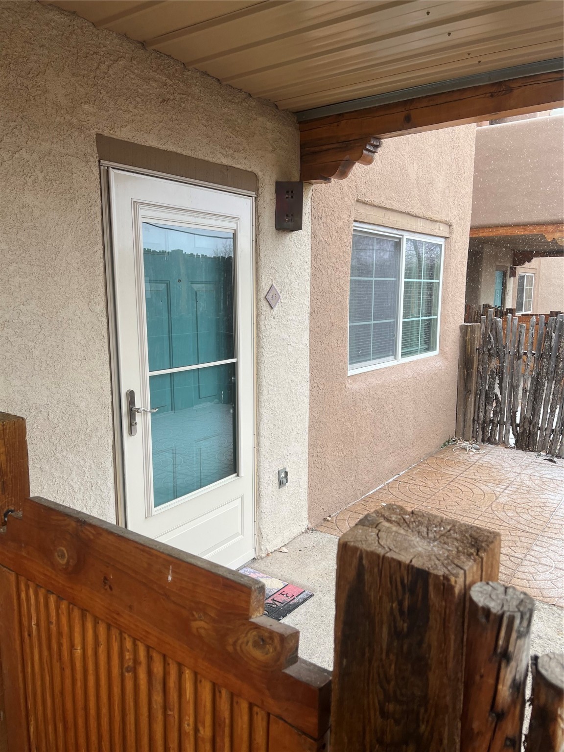 Come see this wonderful, gated Dos Santos two bedroom two bath condo on the ground floor~ no stairs! This condo has newer dark vinyl wood floors in most rooms except second bedroom which has nice carpet and kitchen has tile, evaporative cooling, tile countertops and full sized washer and dryer. Convenient to I-25, shopping, medical accommodations, restaurants and more! The HOA includes maintenance of the seasonal saline water pool, year round hot tub and gym and community maintenance, roof maintenance, exterior maintenance, water, sewer and trash, as well as security and landscaping. There are also BBQ grills and a fenced dog run for you and your furry friend's convenience! A dedicated parking spot can be obtained from the office for a one time fee. Schedule to see this condo today!