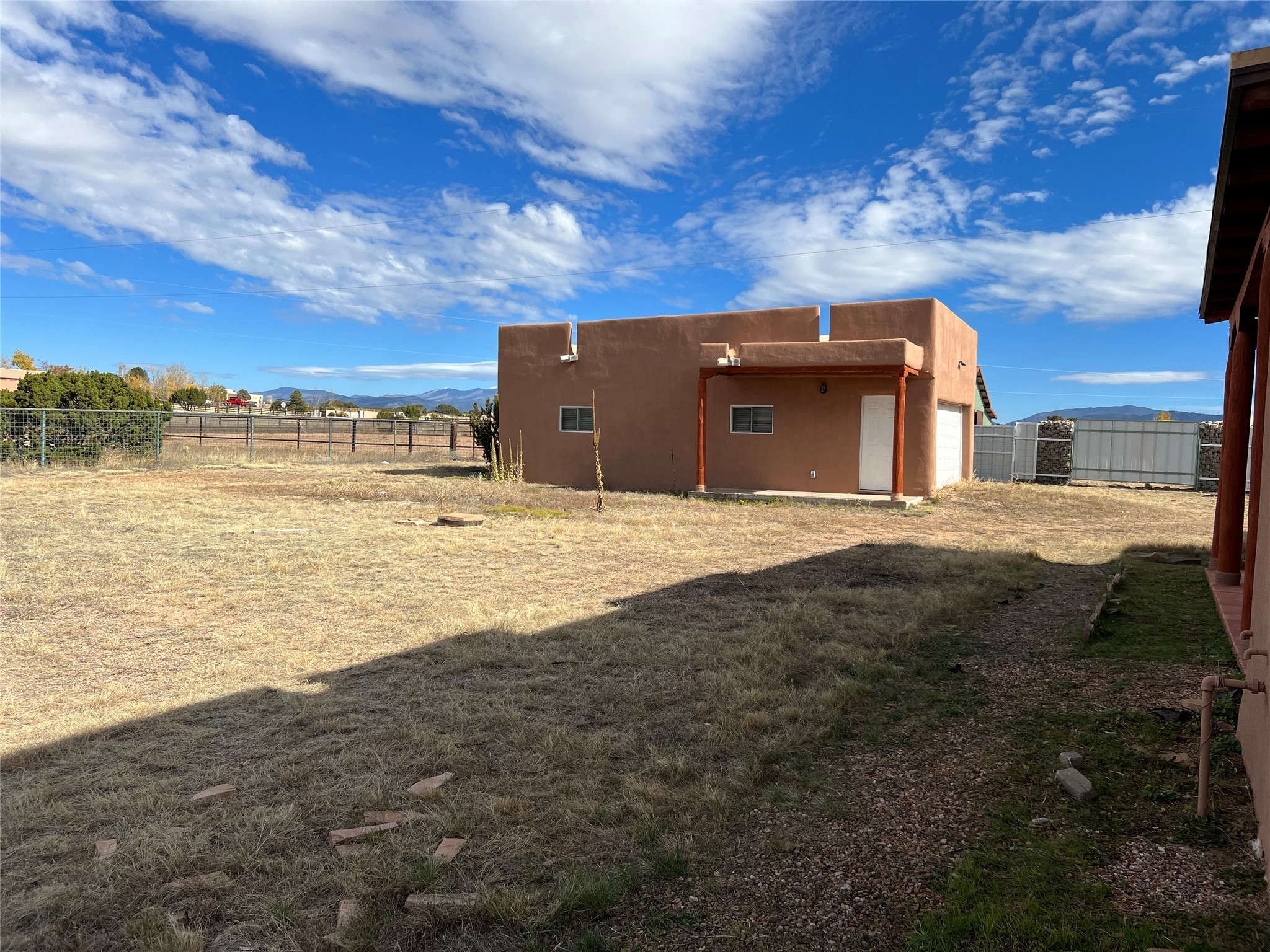Country living close to Santa Fe. This custom home is located on a cul de sac lot, just minutes outside of Santa Fe. This home features 3 bedrooms, a large primary suite with a sitting/gym/or office area, located just off the primary bedroom, complete with a spa like bath and a large walk in closet! The SW features include, Vigas, Beams, Nichos, T&G ceilings and a 2 Kiva fireplaces. Recessed lighting and skylights make this home light and bright. There are new cabinets and countertops throughout. The converted garage is great for an extra large den/second living room. The detached garage is great for your cars, toys, boats etc.! or great as a separate studio.