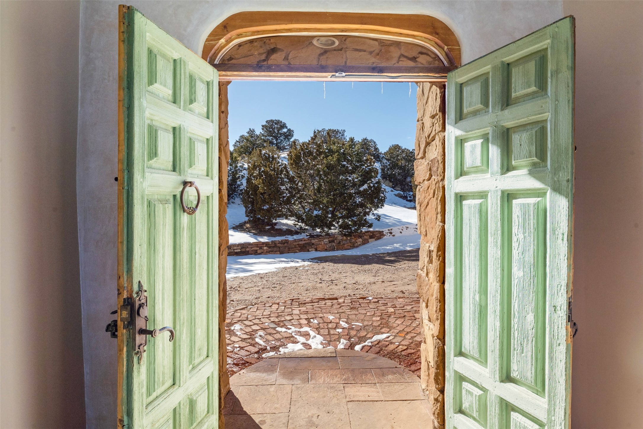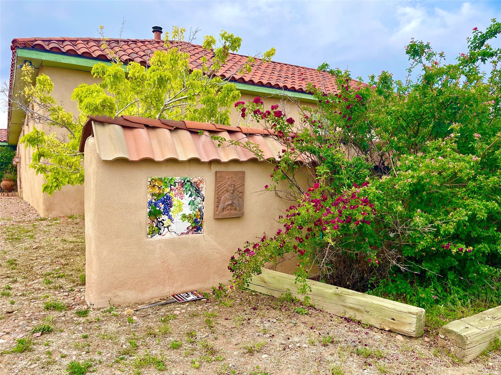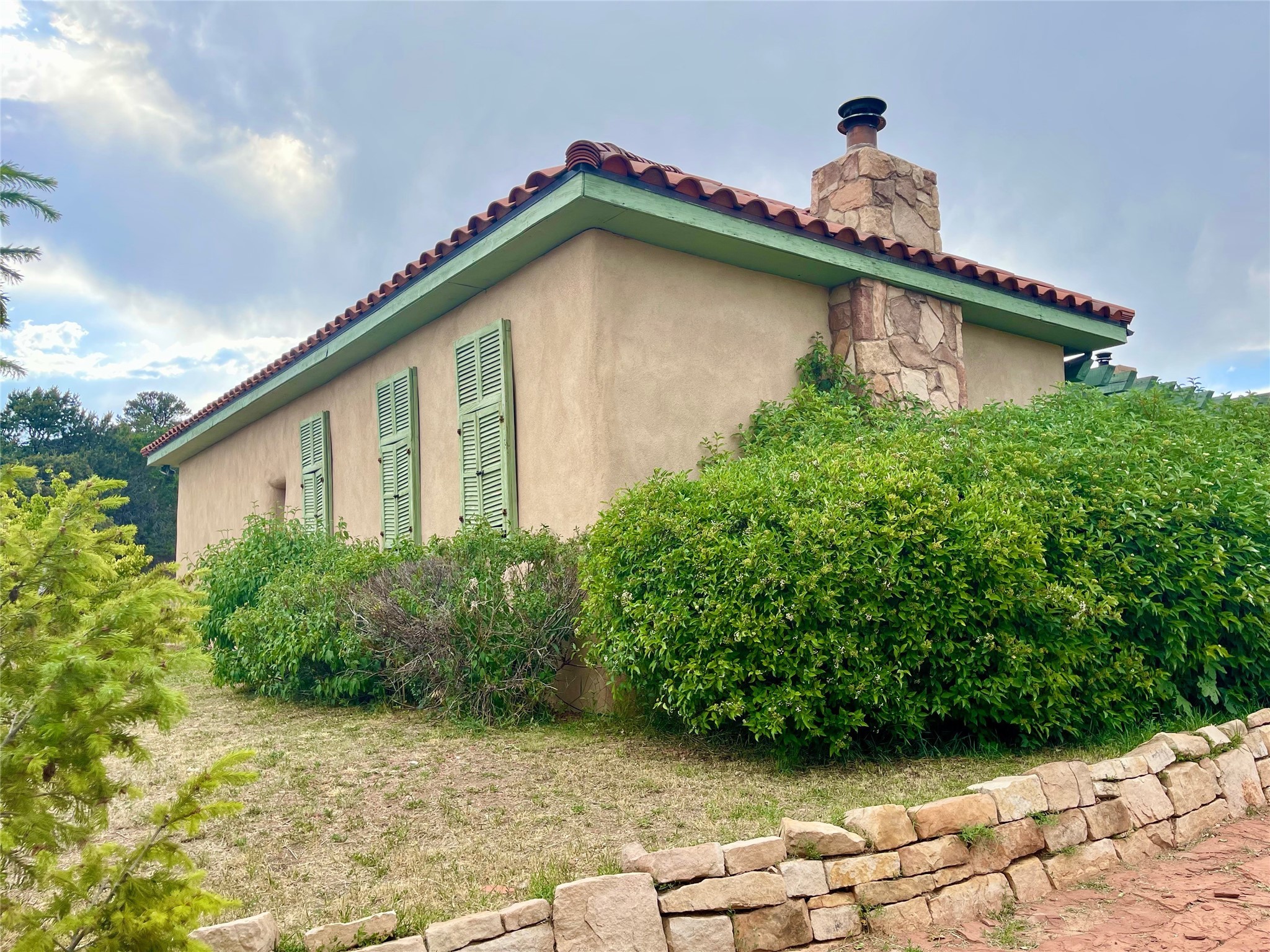 PRICE IMPROVEMENT! You will not find another home like this one!! This stunning European-style home is nestled on a 10-acre property surrounded by majestic rock outcroppings. The main house features 3042 square feet of living space and includes a primary bedroom with primary en-suite, 2 large bedrooms with a pass-through bathroom. The home also boasts 3 fireplaces, tile flooring, cathedral ceilings, and wood beams. The French country kitchen features a custom painted backsplash, custom cabinets, and farm sink. Tile floors through out the entire home and solid wood doors. The 800 square foot studio and storage/garage are connected to the main house and feature a tile roof. The frame/straw bale construction and stucco exterior give the home a unique and timeless look. Complete with a 1-acre vineyard.