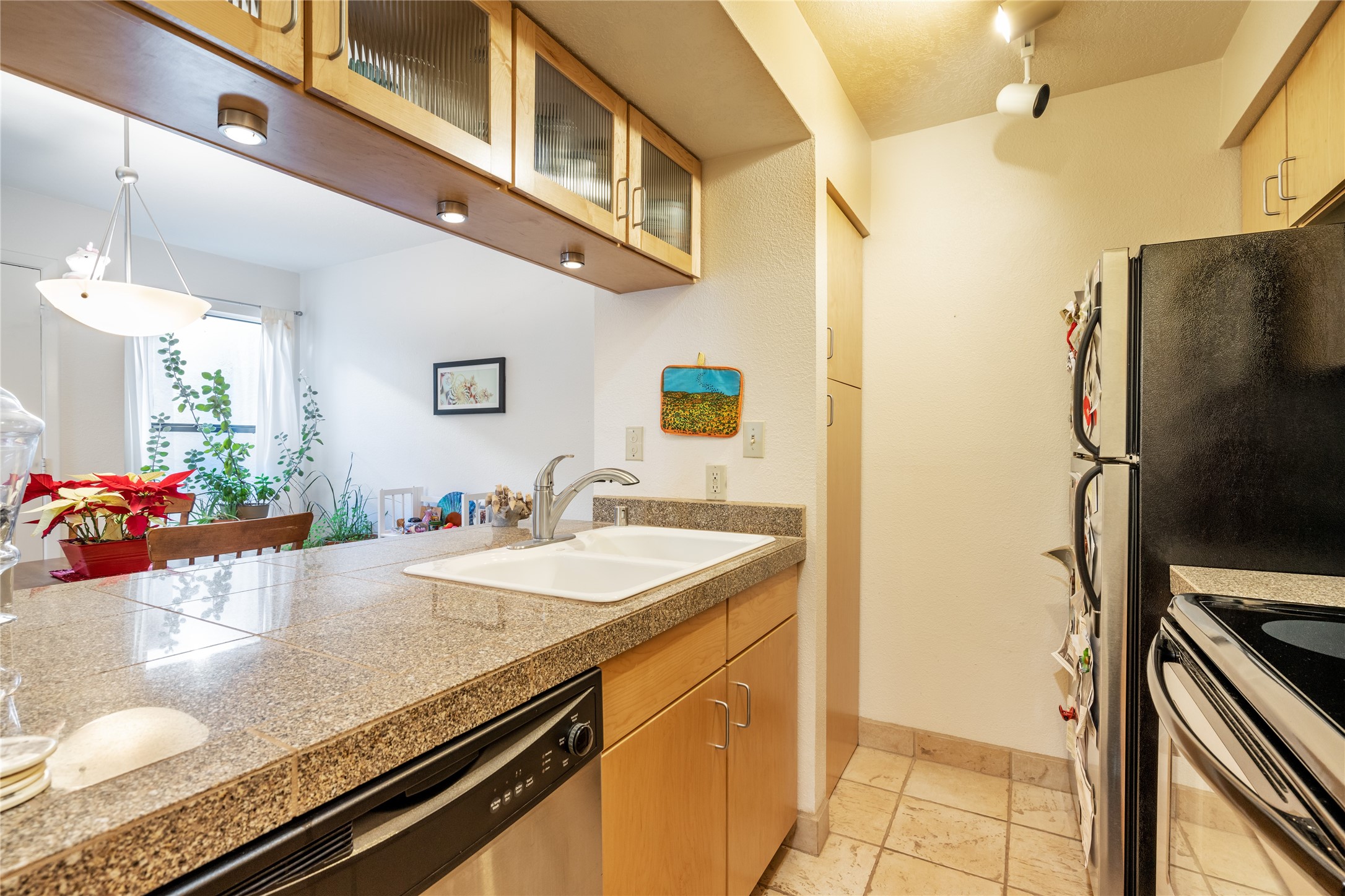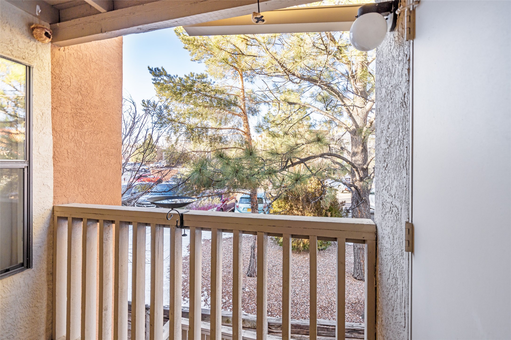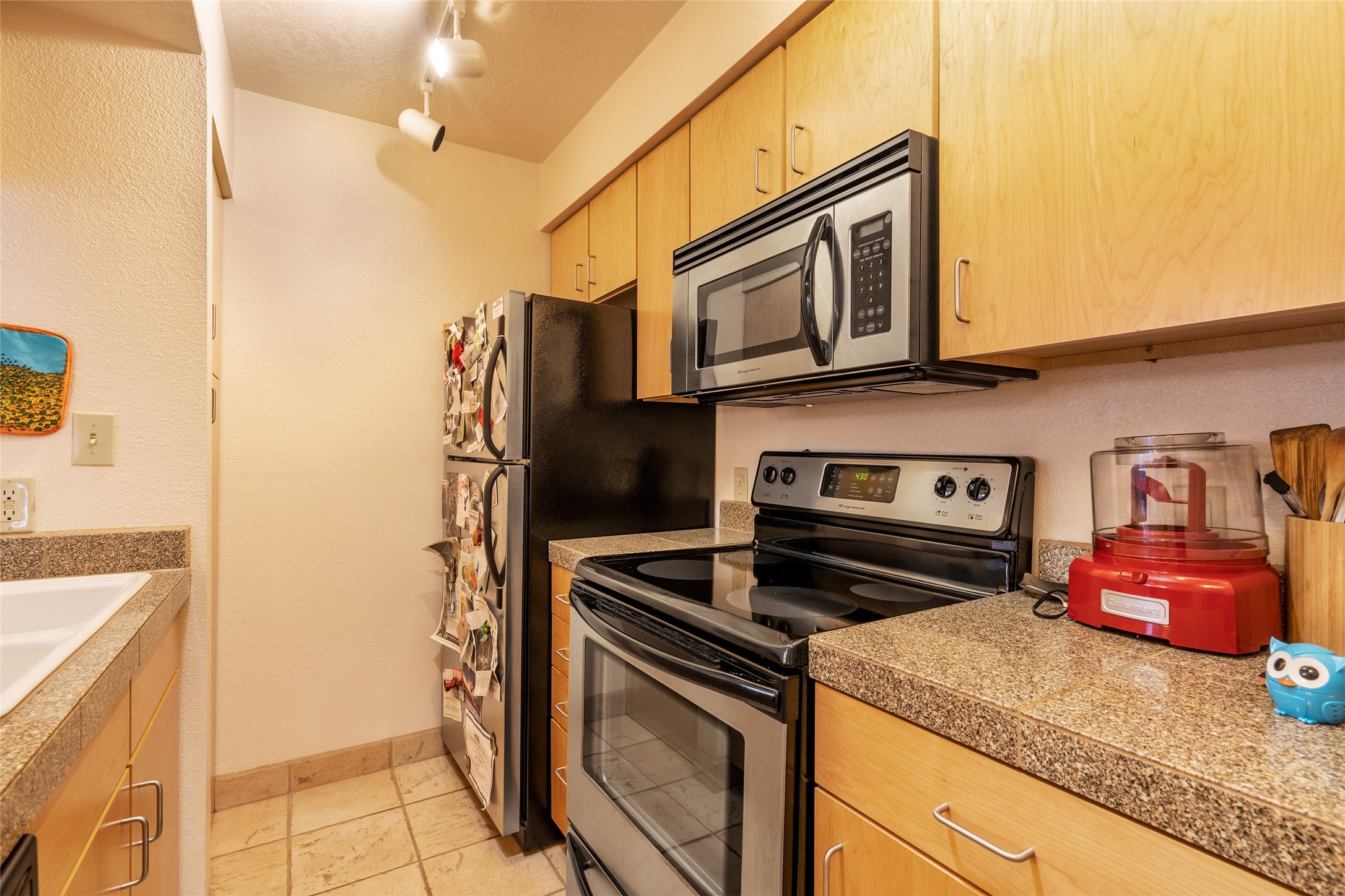 Terrific 1 bedroom, 1 bath, second-floor unit in this coveted, gated condo community. The kitchen and bathroom have tile floors and granite tile counters. The bedroom sports custom built-in drawers in the large double closets. The Reserve at Santa Fe is just minutes away from downtown Santa Fe and an easy commute to Los Alamos. Amenities include a pool and spa, fitness center, laundry, mail center and community room in the main building the 16+/- tree-filled acres provide beautiful nature trails, benches, BBQs and nicely landscaped public areas. This community is non-smoking.