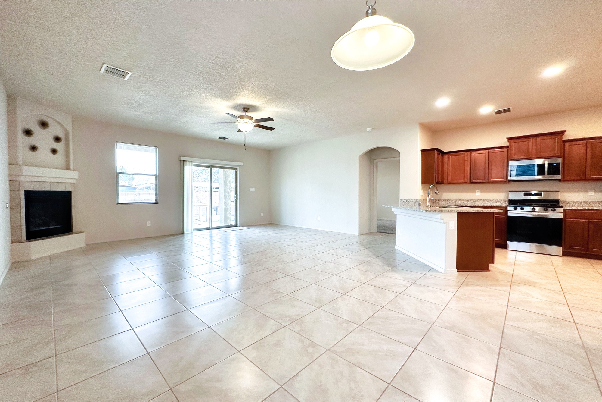 Lovely single level Twilight Home practically brand new! This charming three bedroom, two bath home features an open floor plan combining the kitchen, dining room, and living room in one shared space. The kitchen has beautiful granite counter tops, stainless appliances, and a spacious pantry. The living room features a lovely gas fireplace that gives the perfect cozy ambiance, tile flooring, and large sliding glass doors that lead to the well landscaped / fenced in backyard. You'll also find a lovely portal in the backyard, perfect for entertaining. Additional features include an attached two car garage, pitched roof, central forced air heating and refrigerated air conditioning. Enjoy the neighborhood park located within walking distance! This home is centrally located and just minutes from shopping, dining, entertainment along with quick access to Hwy 599. Built in 2020 this newer home is move-in ready!