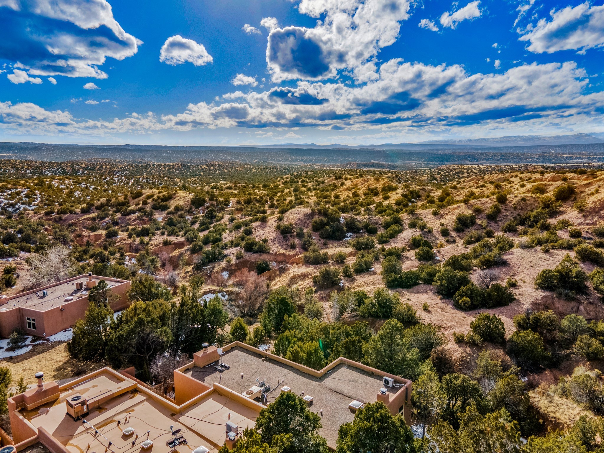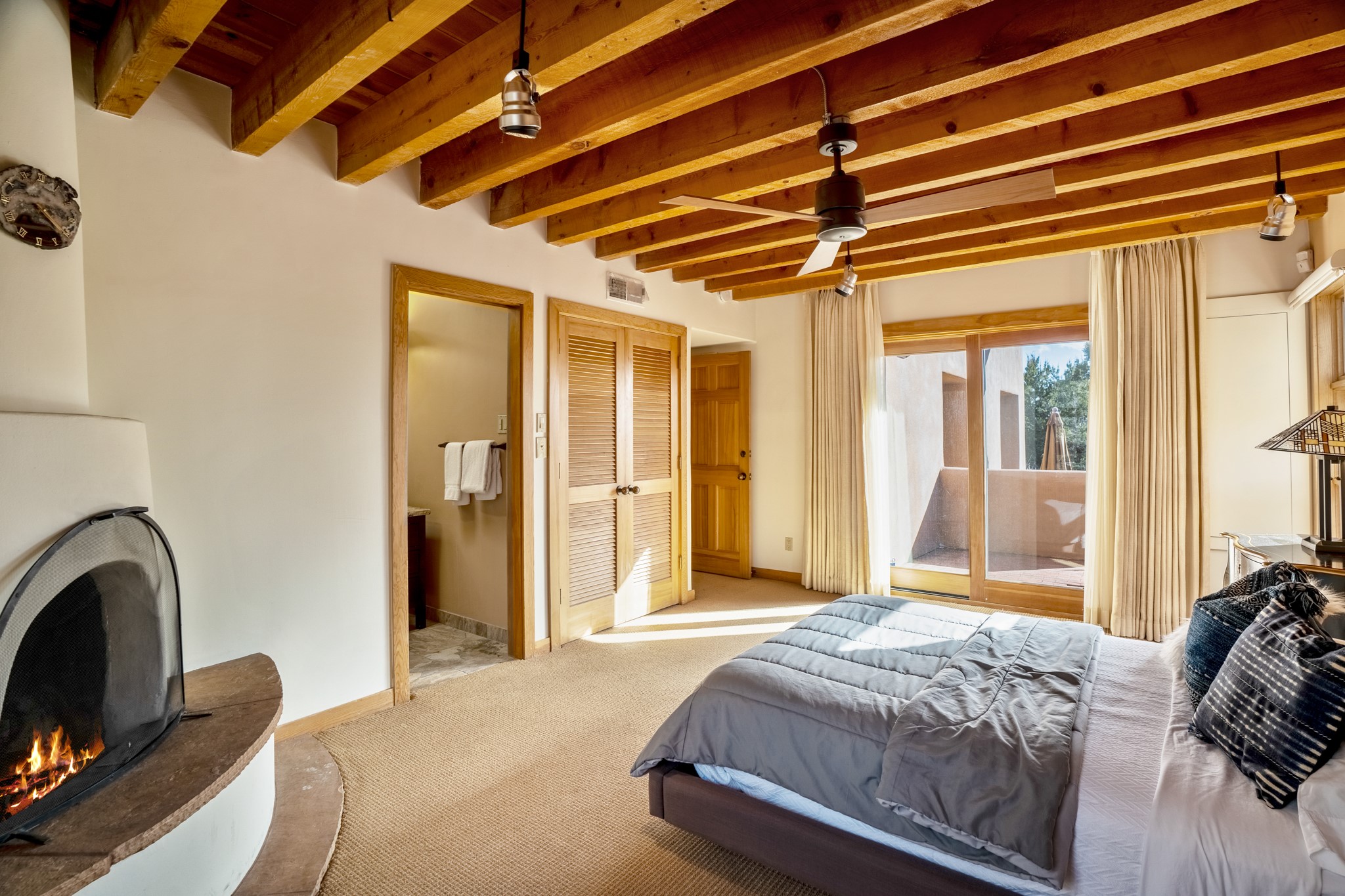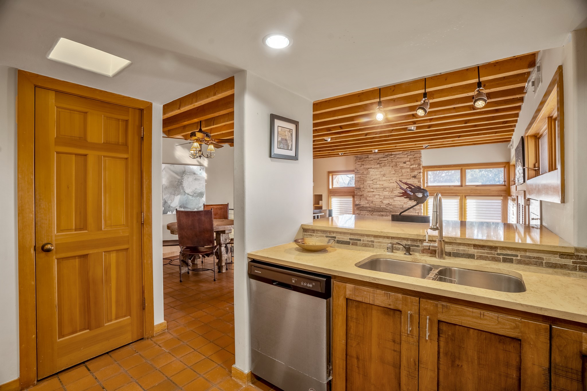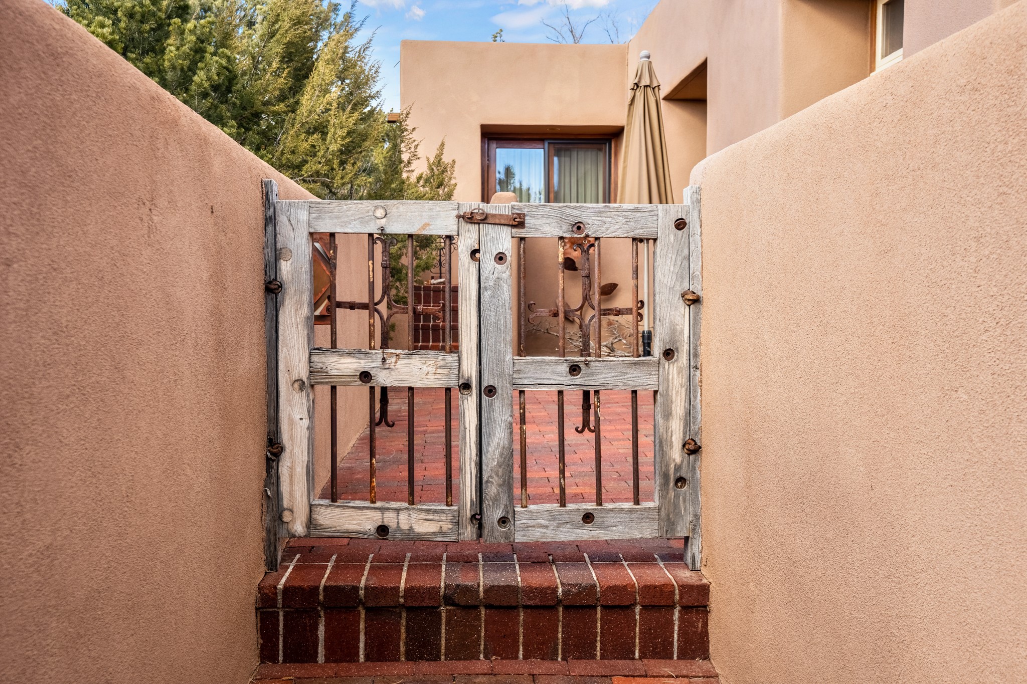 Sweet as can be condo in the ever popular Pueblo Encantado across from the Four Seasons in Tesuque. Views and Privacy from this updated 2 beds 2 full baths end unit condo. There are Brick floors in the common areas. The living room has a large stone fireplace to cozy up next to while the snow falls across the Santa Fe Dessert. The primary suite also has a wood burning kiva fireplace for Santa Fe ambiance on romantic evenings. The kitchen has been updated from the original including the cabinets, beautiful quartx counters , tile back splashes and nice stainless steel appliances. Both of the bathrooms have also been tastefully remodeled with new vanities and tile and glass showers. There is a wrap around portal to enjoy the sunsets and night skies with you family and friends. These units are often used as second homes and investment properties. There is a swimming pool, club house and on site management. THe house has Forced air and AC.