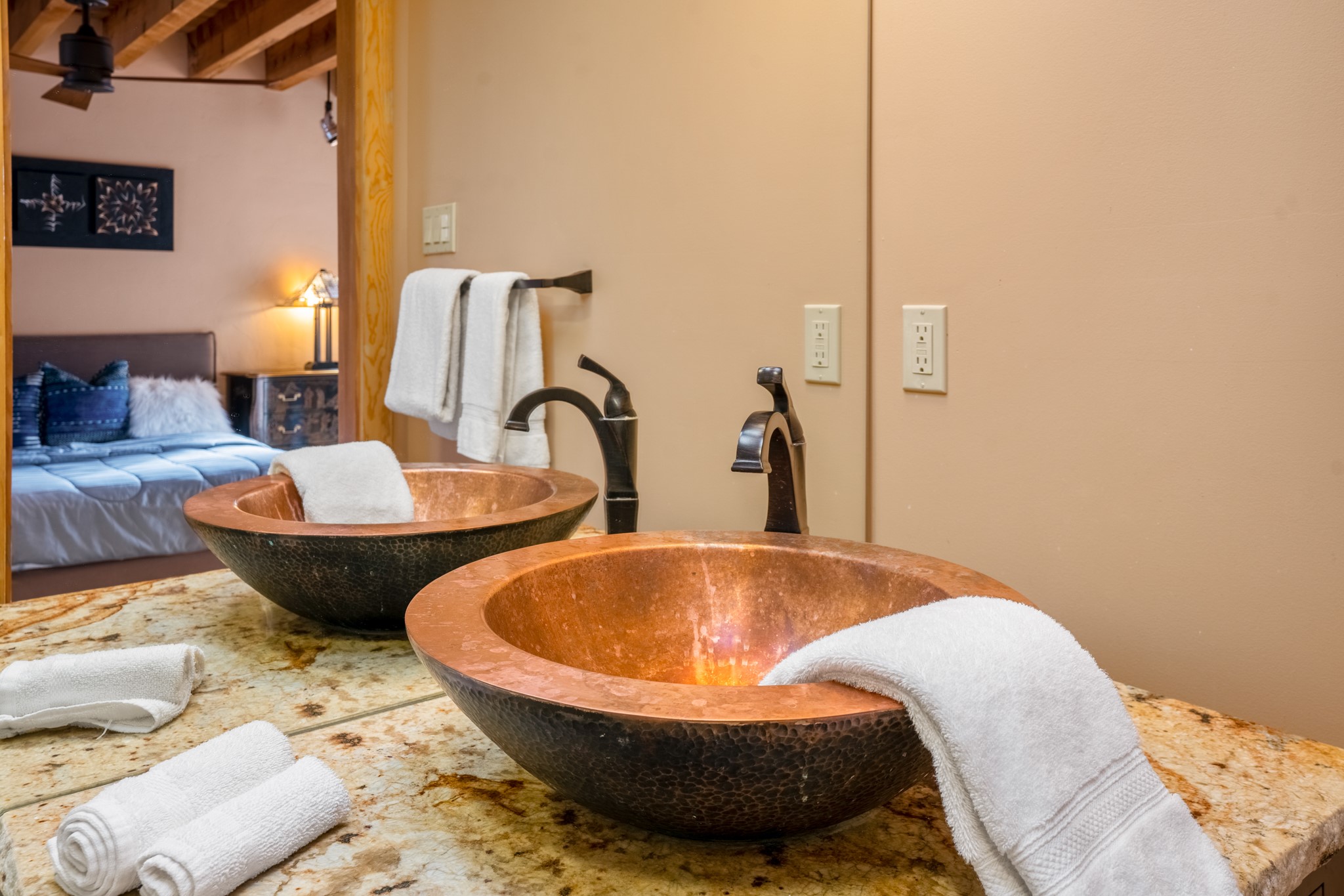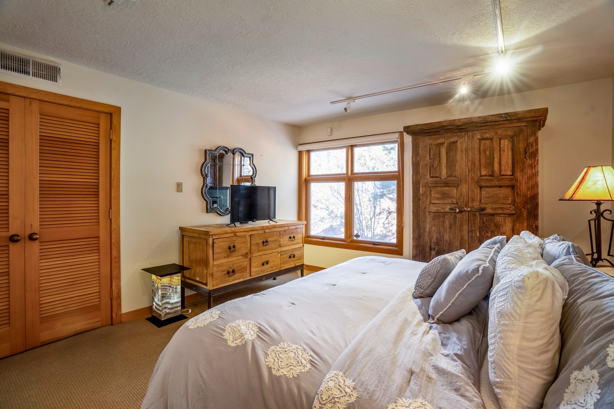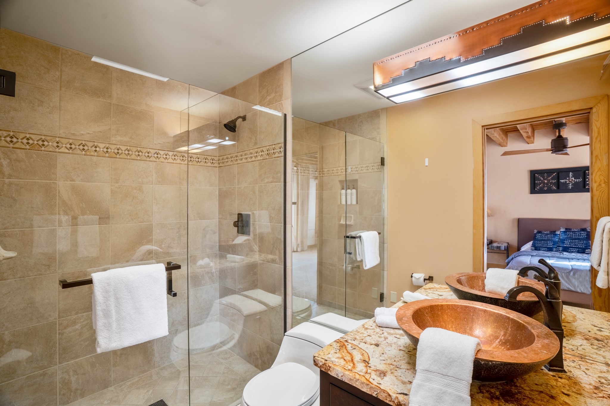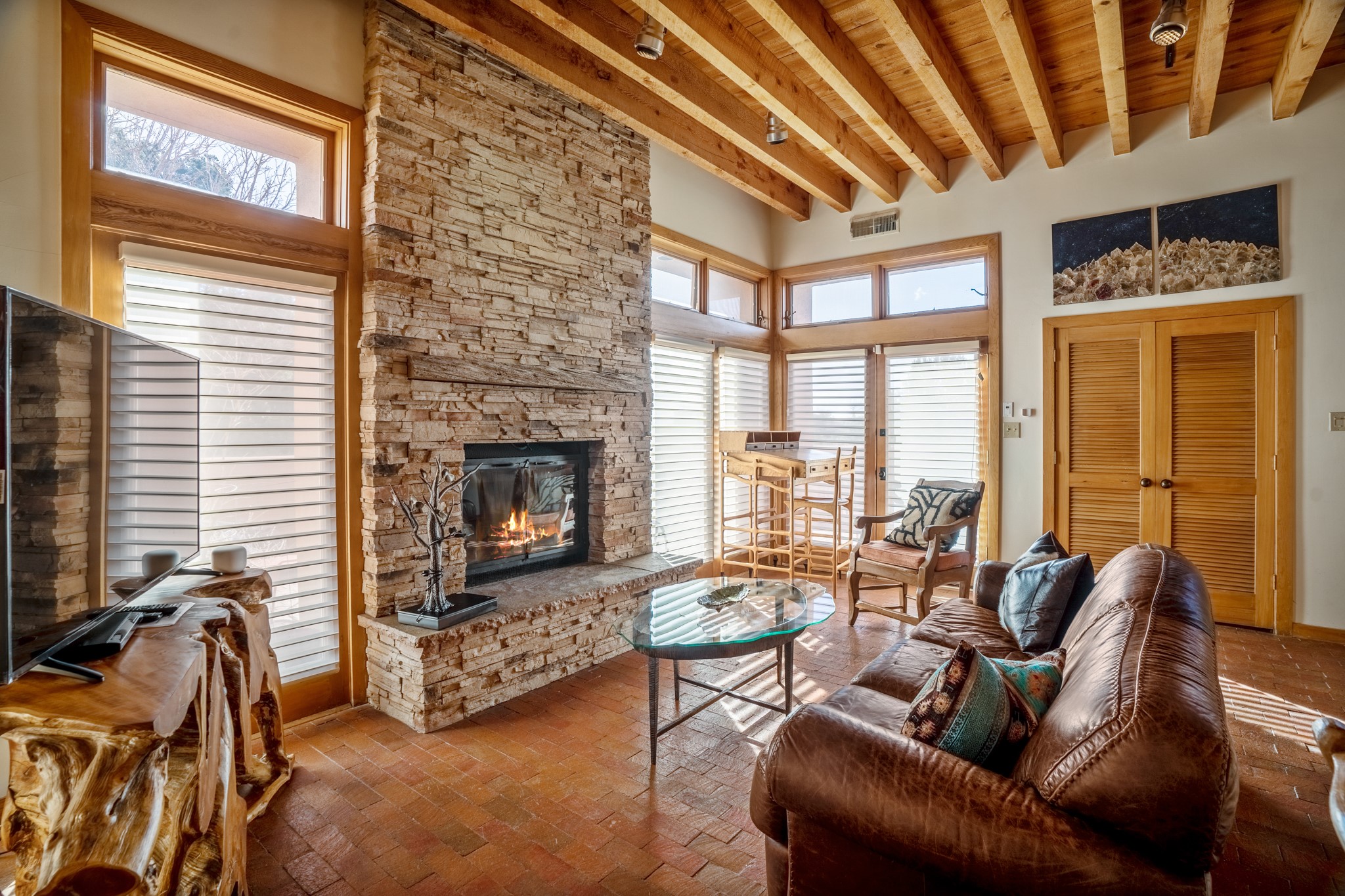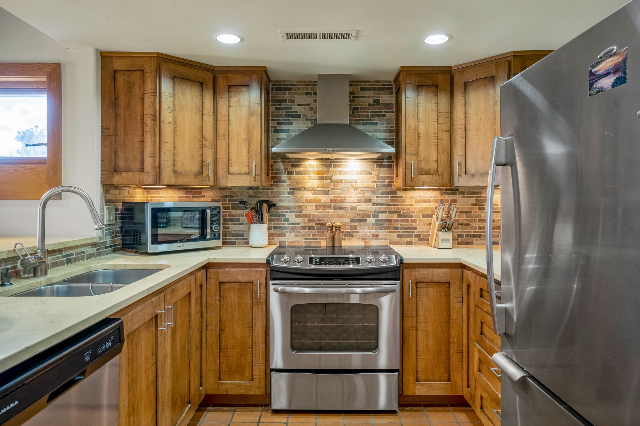 Sweet as can be condo in the ever popular Pueblo Encantado across from the Four Seasons in Tesuque. Views and Privacy from this updated 2 beds 2 full baths end unit condo. There are Brick floors in the common areas. The living room has a large stone fireplace to cozy up next to while the snow falls across the Santa Fe Dessert. The primary suite also has a wood burning kiva fireplace for Santa Fe ambiance on romantic evenings. The kitchen has been updated from the original including the cabinets, beautiful quartx counters , tile back splashes and nice stainless steel appliances. Both of the bathrooms have also been tastefully remodeled with new vanities and tile and glass showers. There is a wrap around portal to enjoy the sunsets and night skies with you family and friends. These units are often used as second homes and investment properties. There is a swimming pool, club house and on site management. THe house has Forced air and AC.