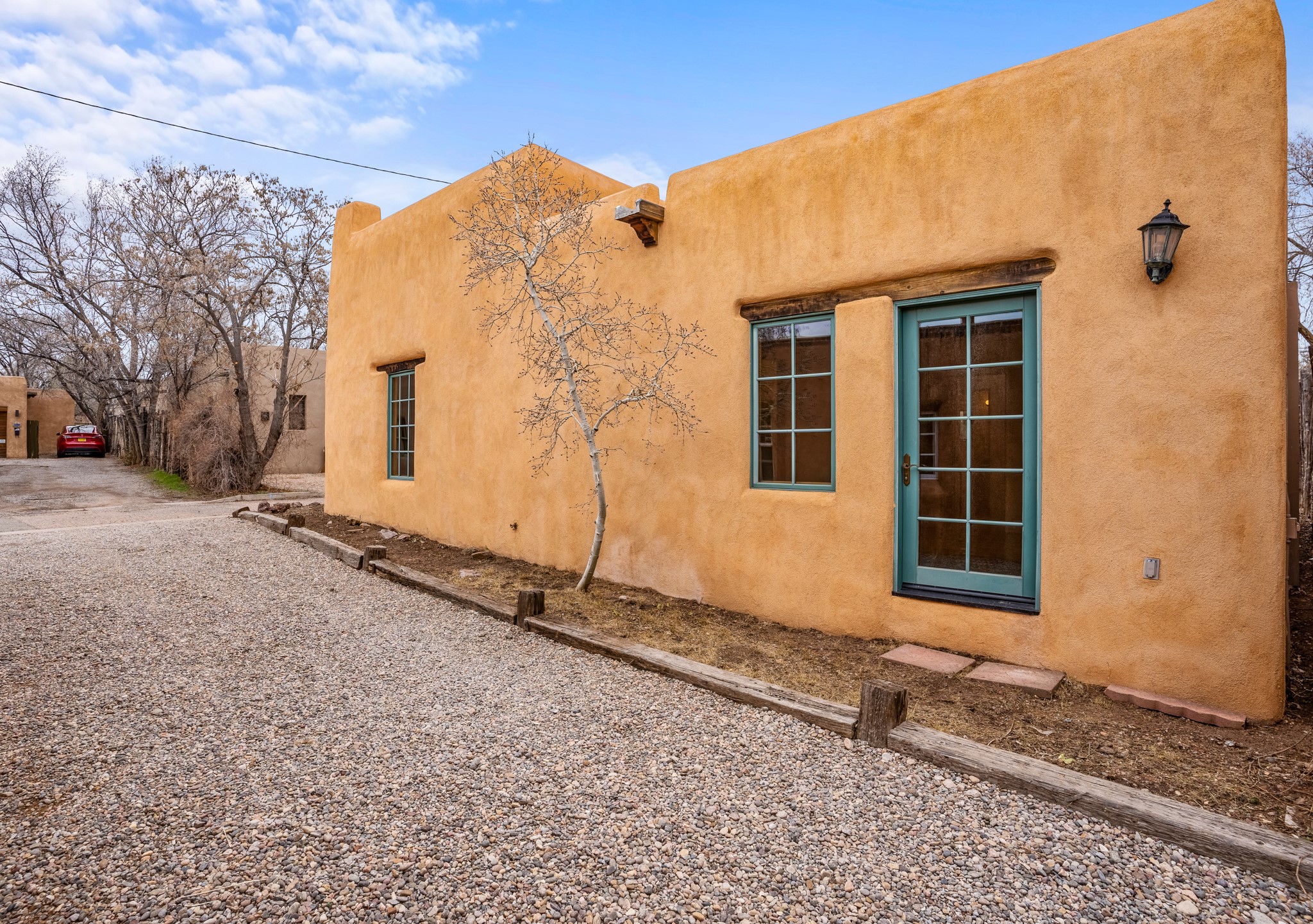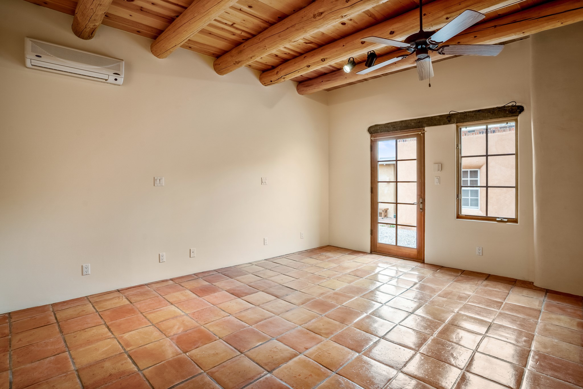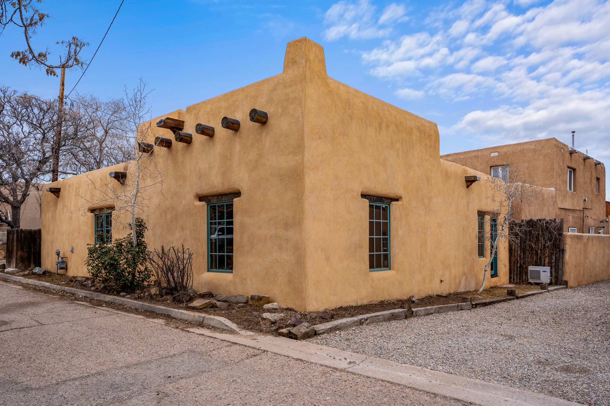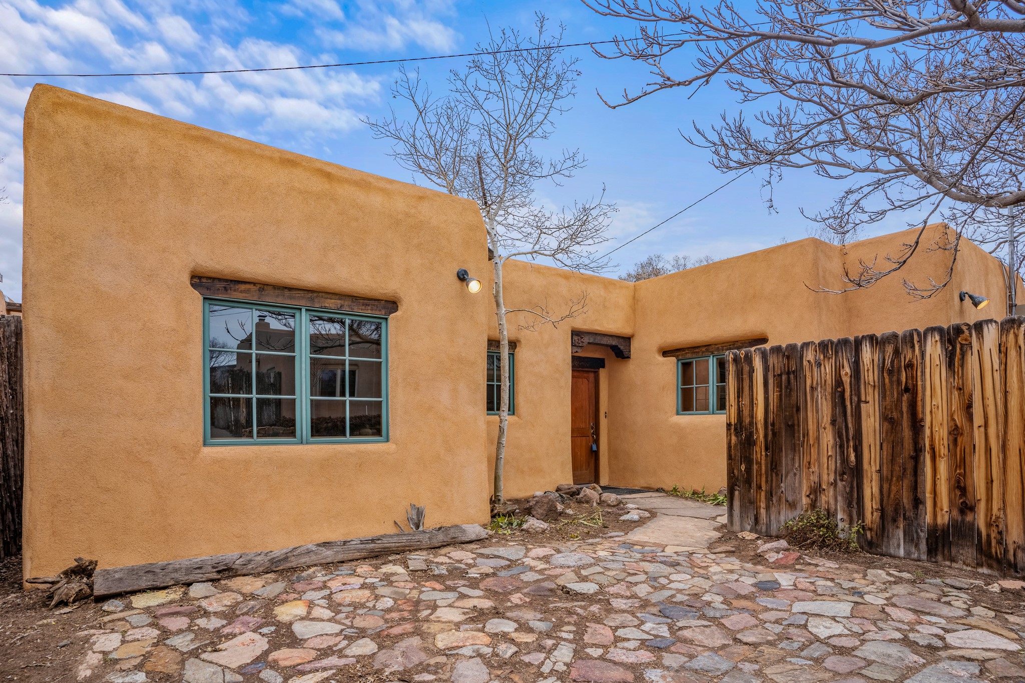 Charming partial Adobe, single level, located downtown off W San Francisco walkable to the Plaza. Built in 2003, this darling home has all the Santa Fe touches. Modern design features include: large rooms with high ceilings, open floor plan, skylights, plaster walls, radiant heat, tile floors throughout with wood flooring in the dining area. There is a mini-split in the master bedroom and a kiva fireplace in the living room. Includes a private small front yard perfect for entertaining!Come take a look at this super cute home!