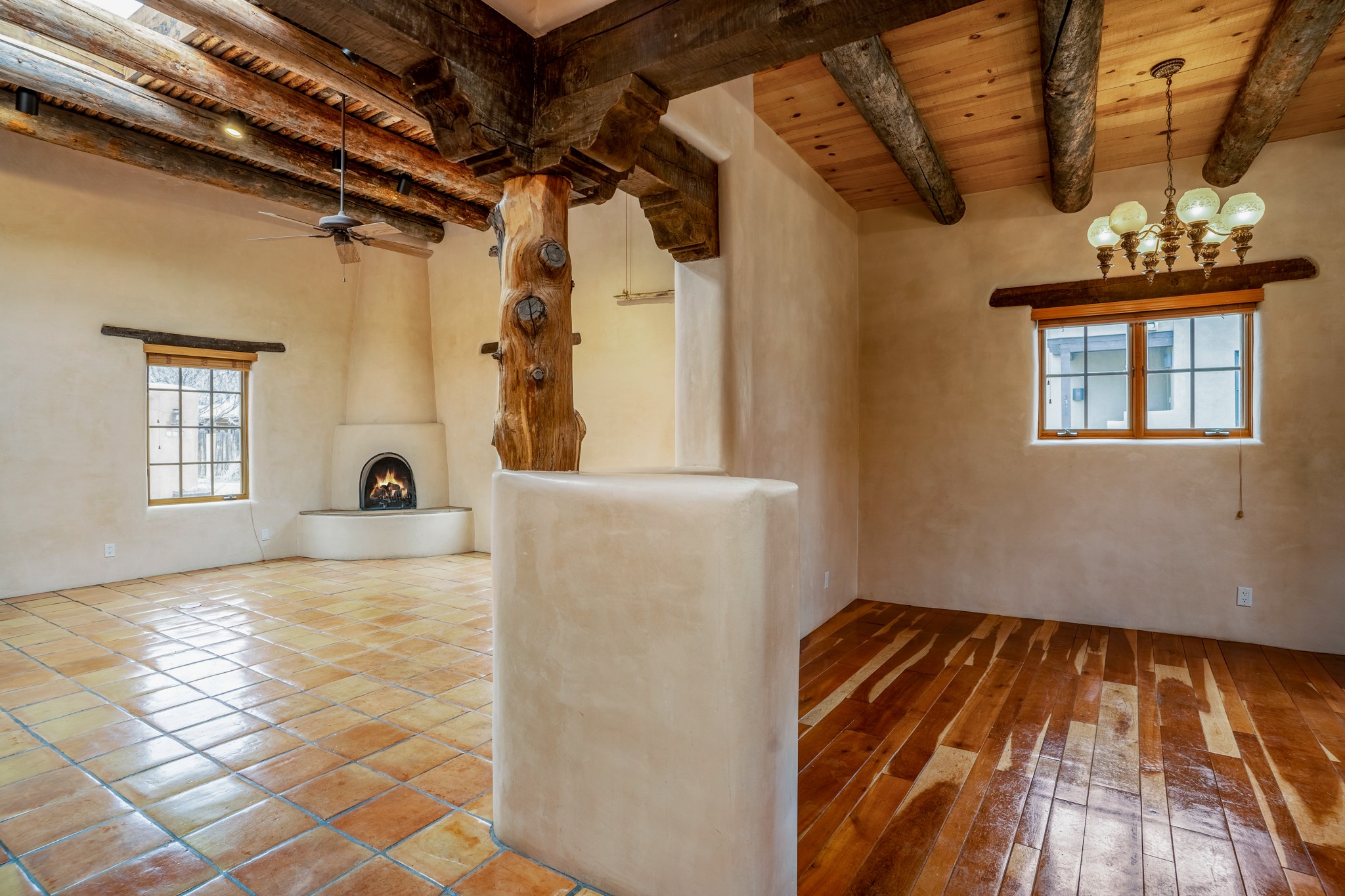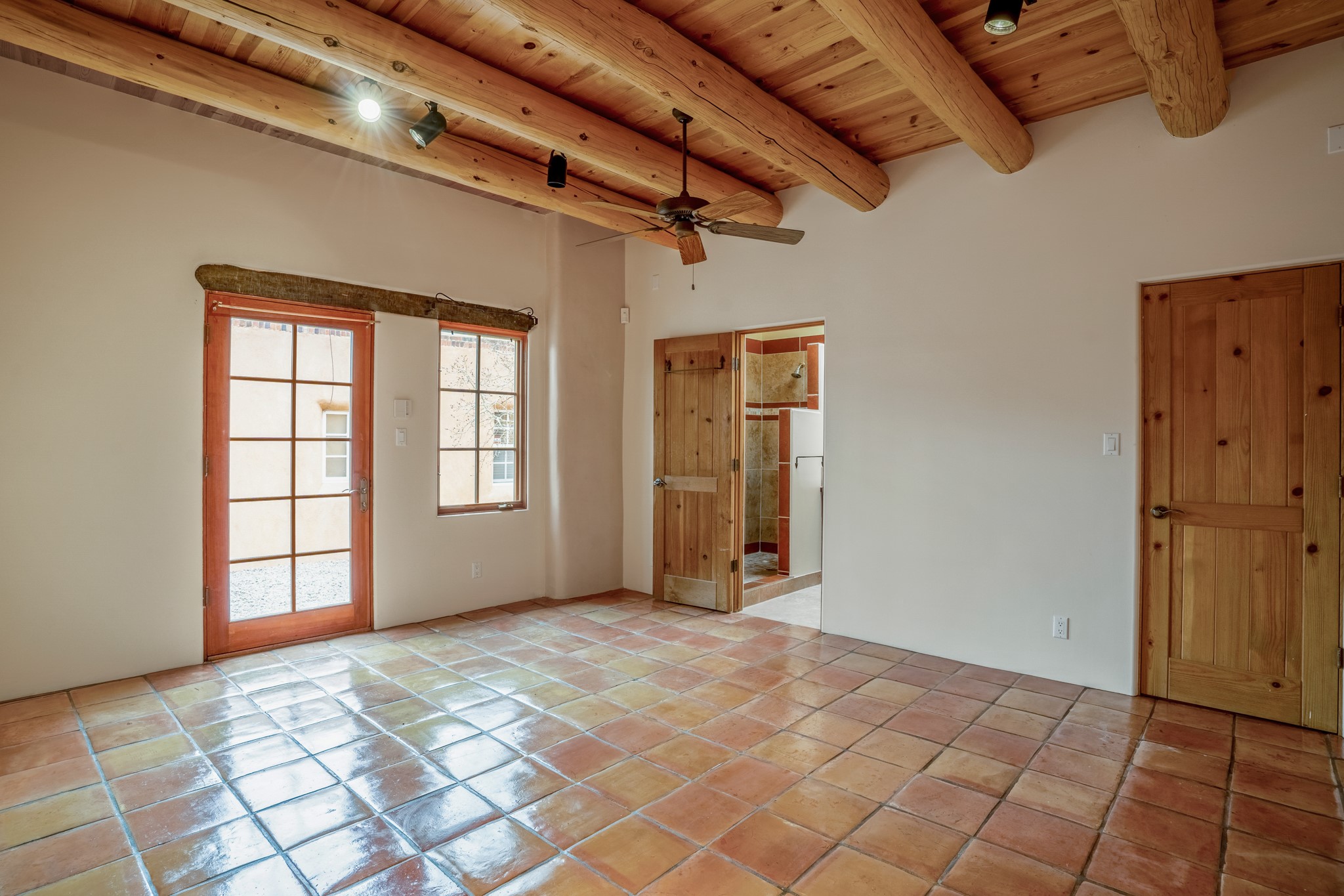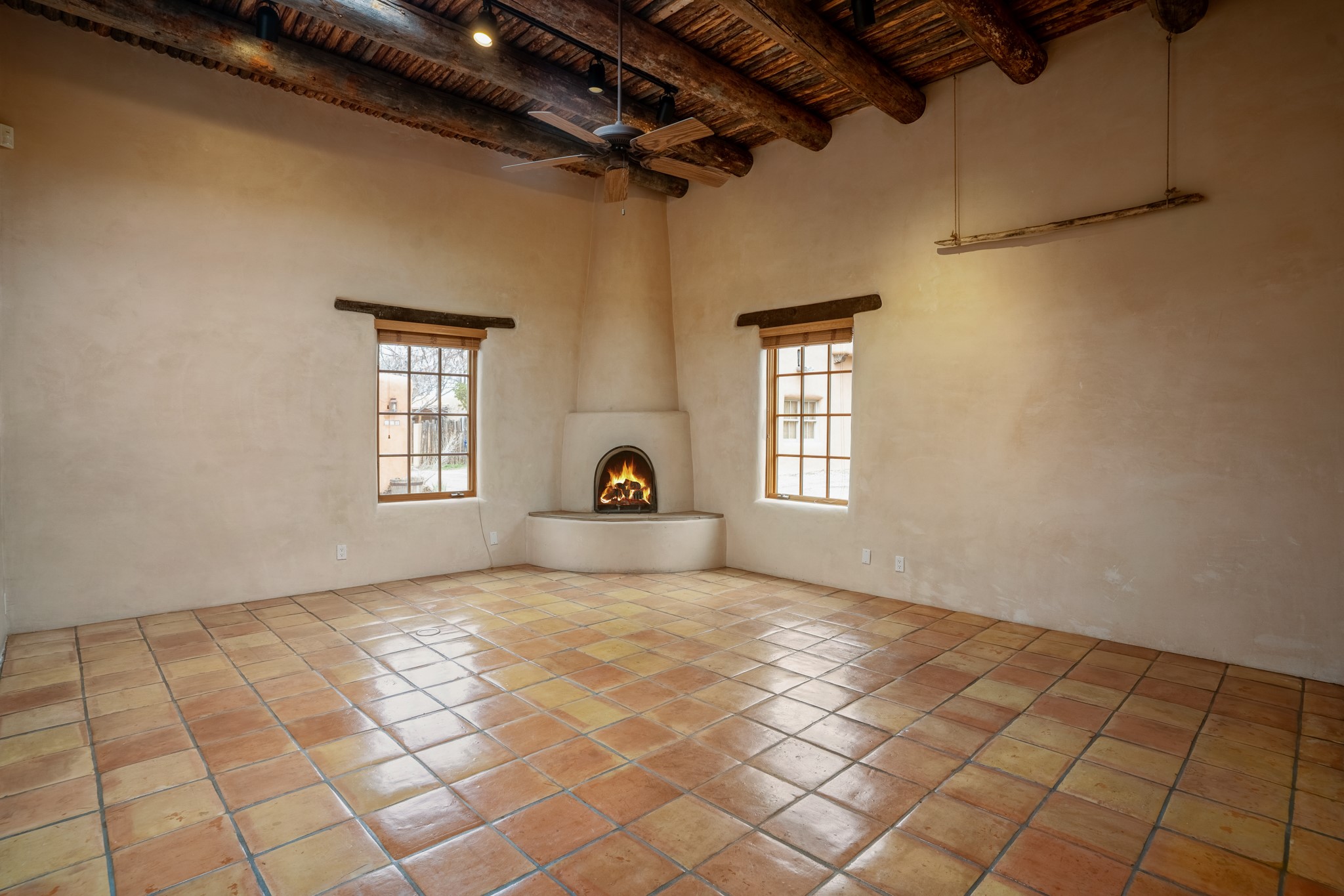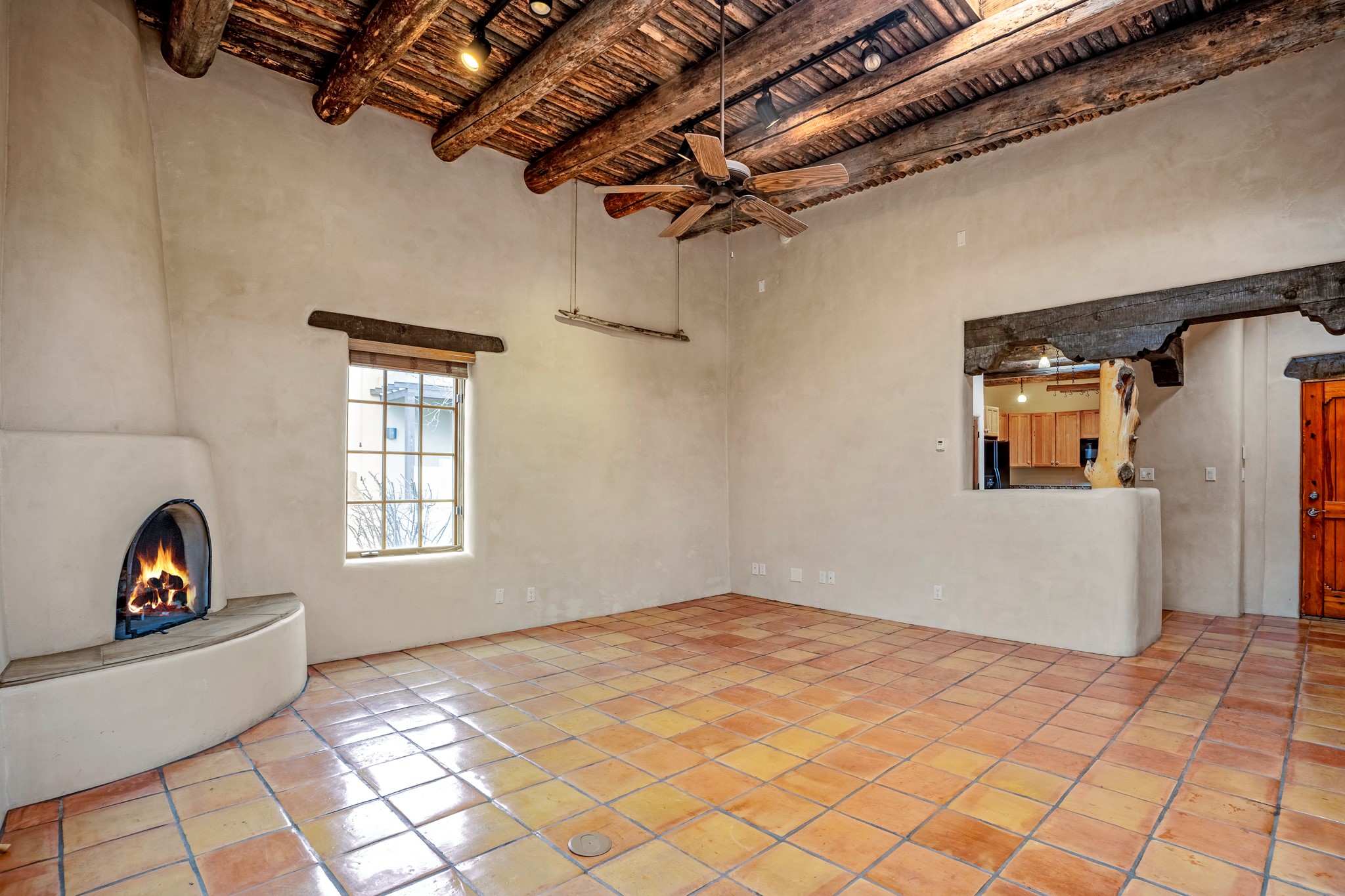 Charming partial Adobe, single level, located downtown off W San Francisco walkable to the Plaza. Built in 2003, this darling home has all the Santa Fe touches. Modern design features include: large rooms with high ceilings, open floor plan, skylights, plaster walls, radiant heat, tile floors throughout with wood flooring in the dining area. There is a mini-split in the master bedroom and a kiva fireplace in the living room. Includes a private small front yard perfect for entertaining!Come take a look at this super cute home!