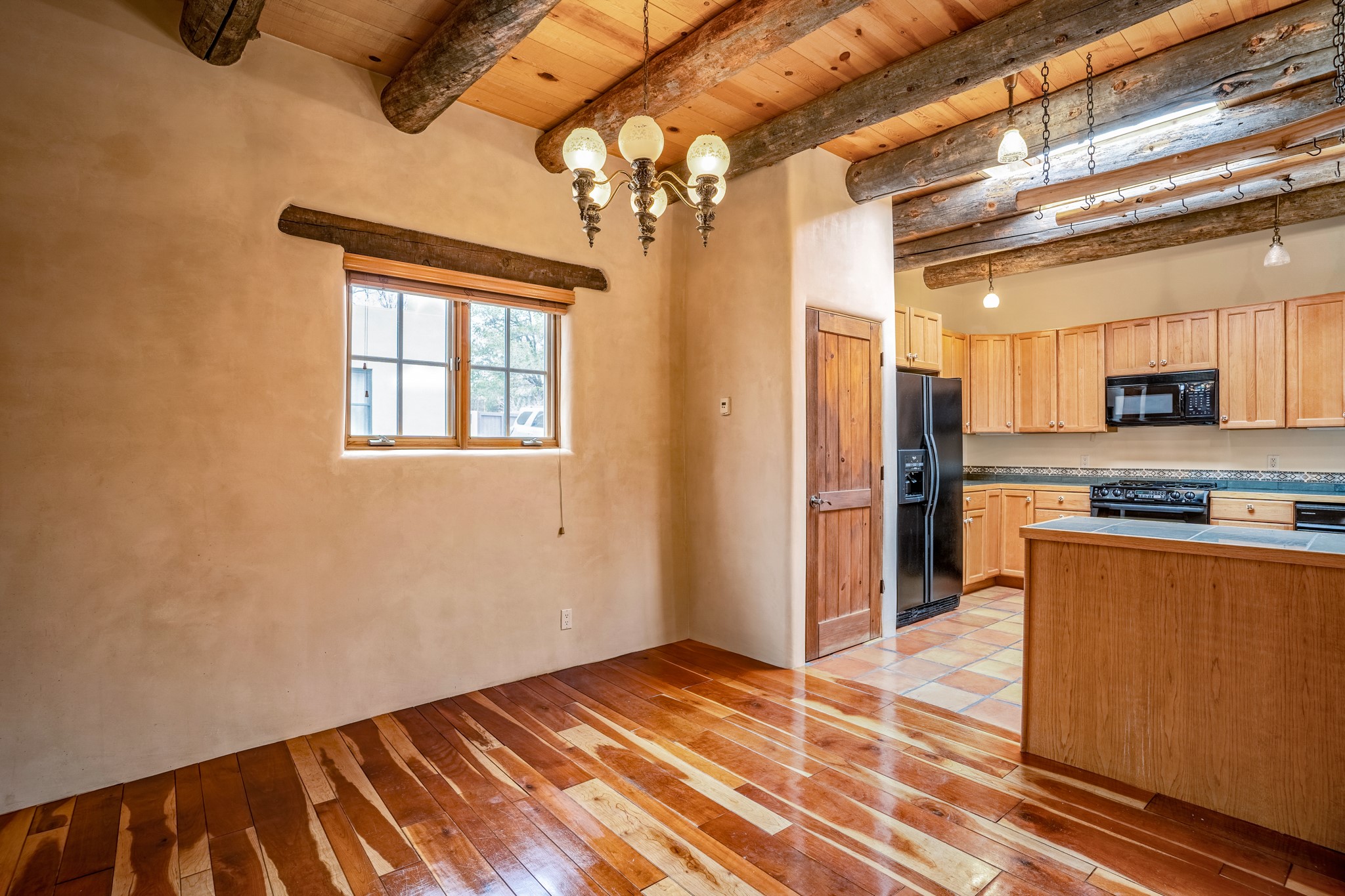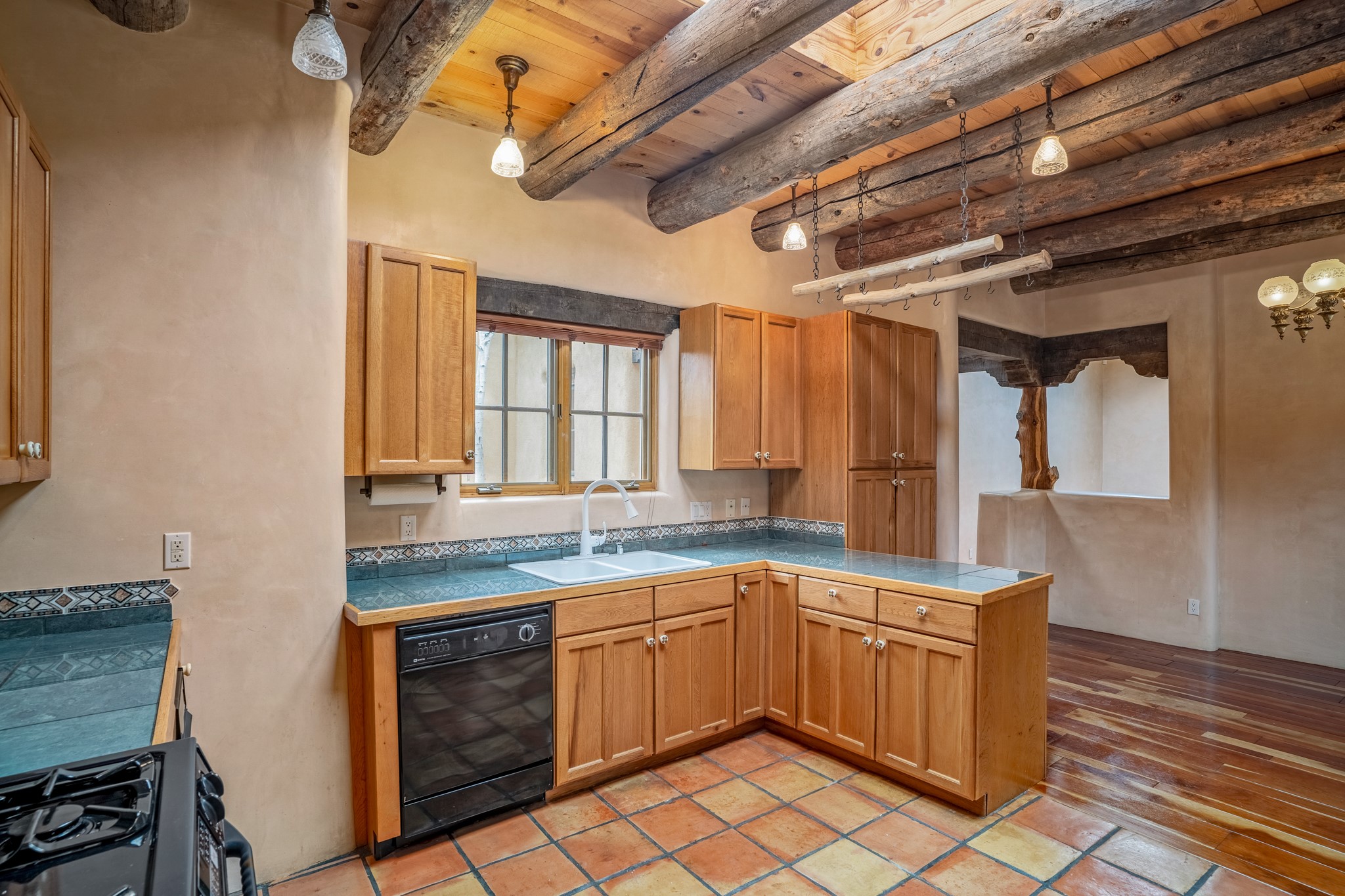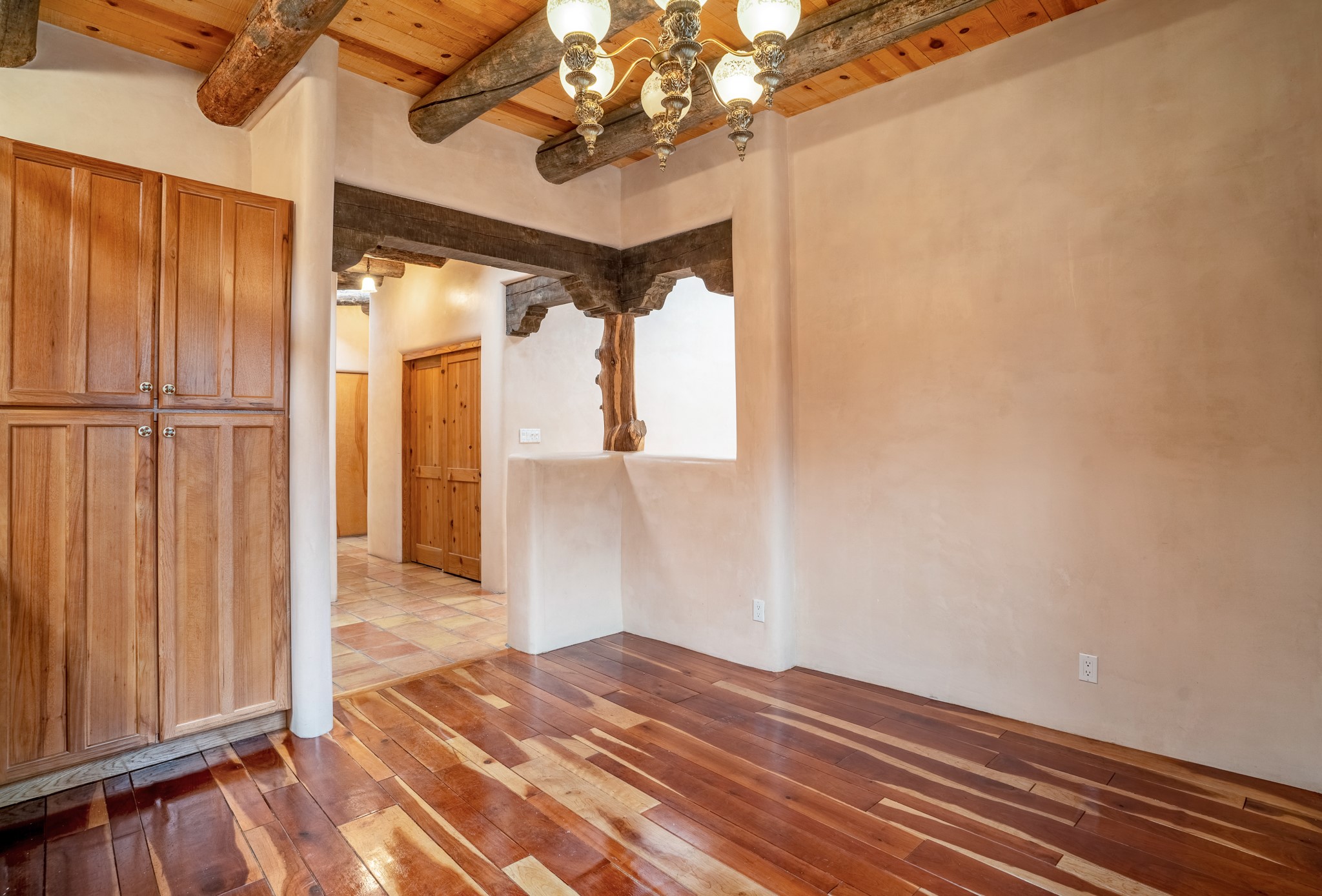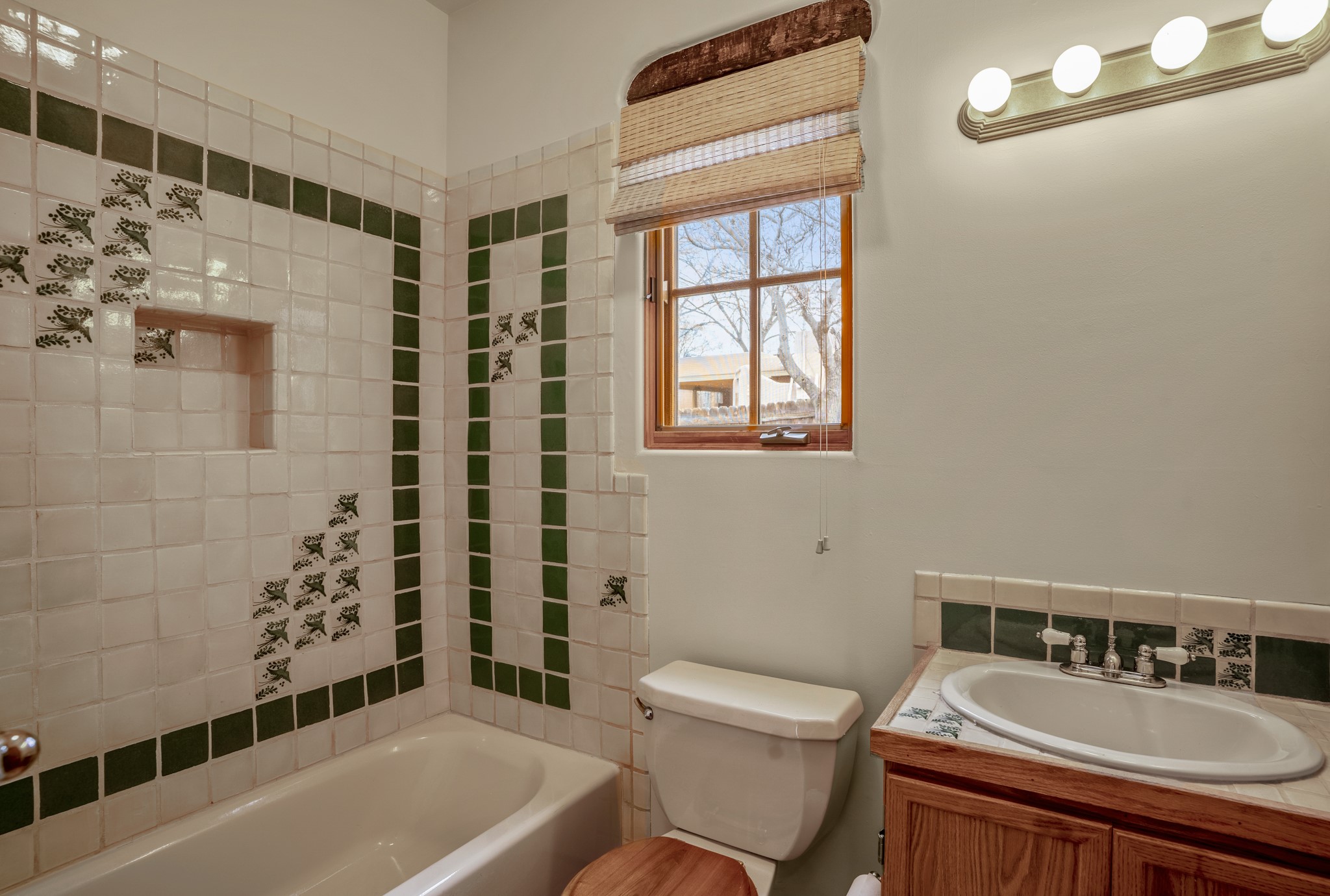 Charming partial Adobe, single level, located downtown off W San Francisco walkable to the Plaza. Built in 2003, this darling home has all the Santa Fe touches. Modern design features include: large rooms with high ceilings, open floor plan, skylights, plaster walls, radiant heat, tile floors throughout with wood flooring in the dining area. There is a mini-split in the master bedroom and a kiva fireplace in the living room. Includes a private small front yard perfect for entertaining!Come take a look at this super cute home!