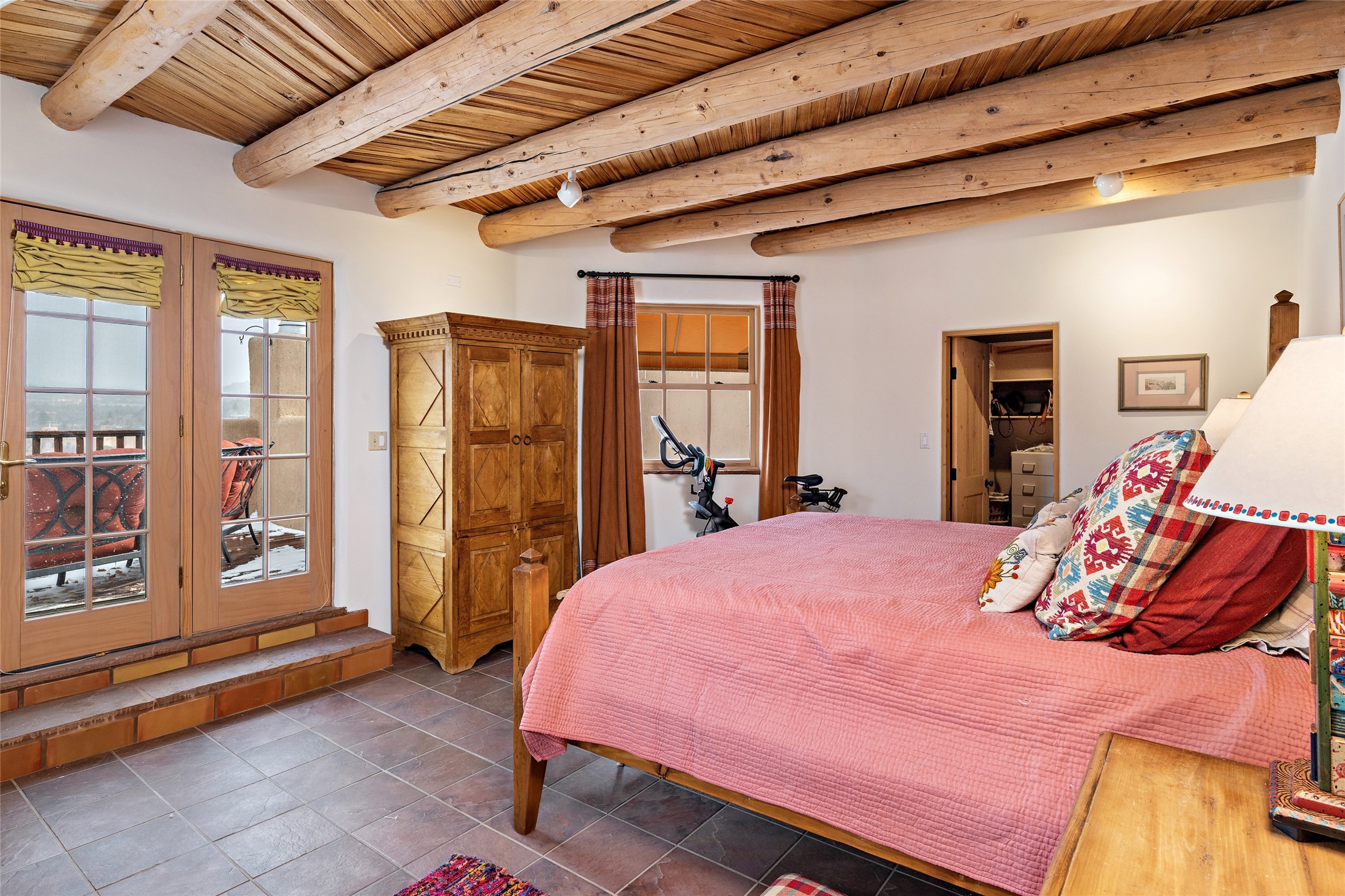 If you want mountain and city views, with a great location, you have it all at this superb Eastside home with spectacular views of Atalaya & Picacho Peaks and the historic Eastside of Santa Fe and Cristo Rey Church, within walking distance to Canyon Road! Great outdoor living spaces with 3 separate decks and two additional flagstone patios. Gorgeous, complete kitchen remodel in 2020. New mini-splits were installed in 2019. New high efficiency heating and mechanical systems installed in 2022. New Roof & Stucco in 2019; Roof is under warranty until 2035! Spacious primary bedroom suite offers a jacuzzi tub, separate shower, double vanity, a large walk-in closet and a private outdoor deck for spectacular East mountain and city views. The upper-level Library/Den has a cozy Kiva fireplace and a West facing deck for spectacular Sunsets. Living Room has a Kiva fireplace and an East facing view deck. The spacious dining area and fabulous new kitchen provide for comfortable and elegant entertaining. There are two guest bedrooms on the lower level that share a full bath. Quintessential Santa Fe charm and character throughout this wonderful home. An oversized two car garage with plenty of storage space completes this spectacular offering.