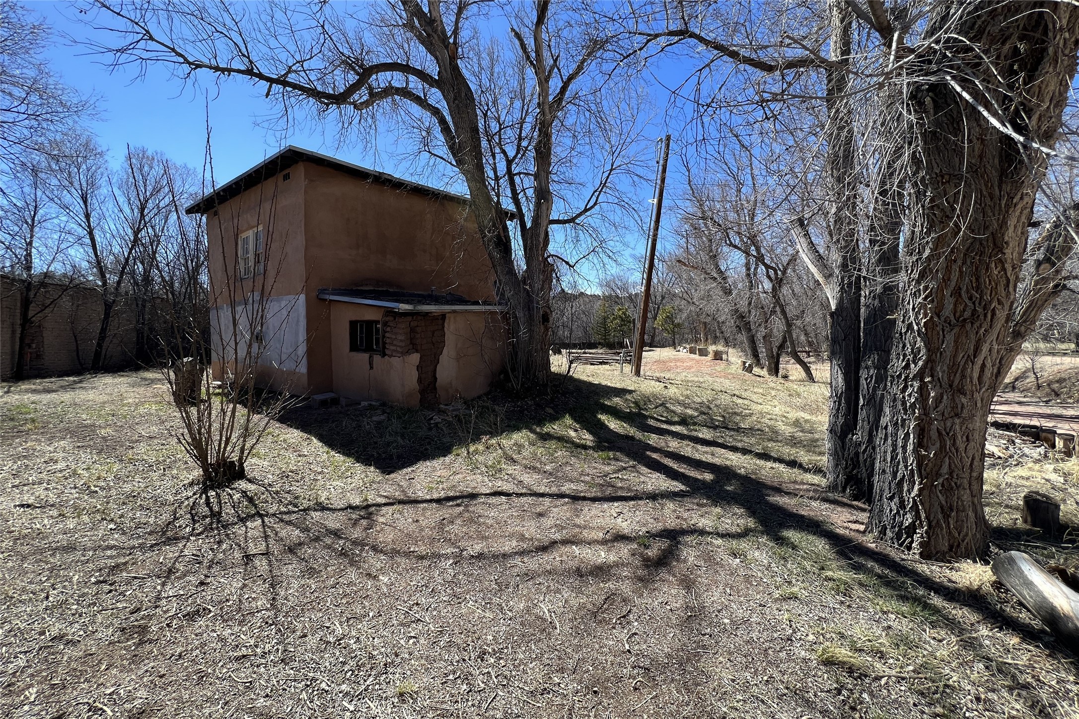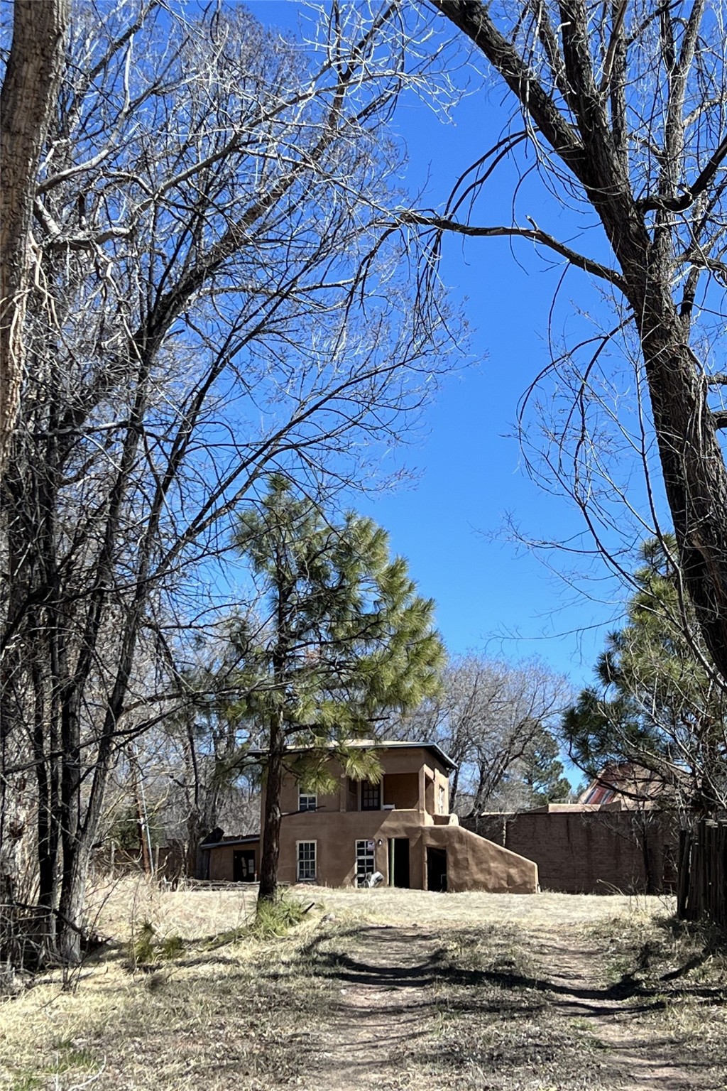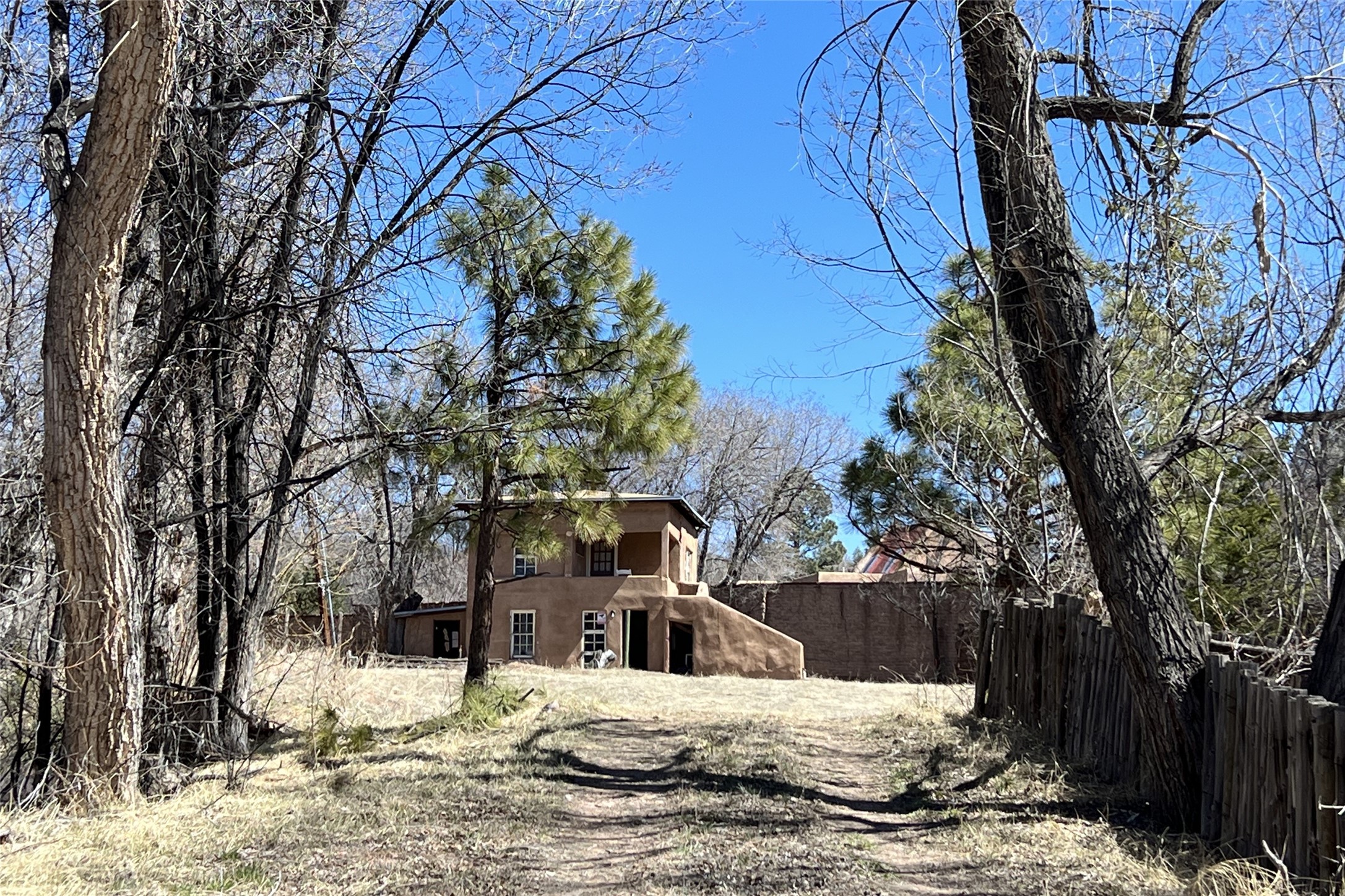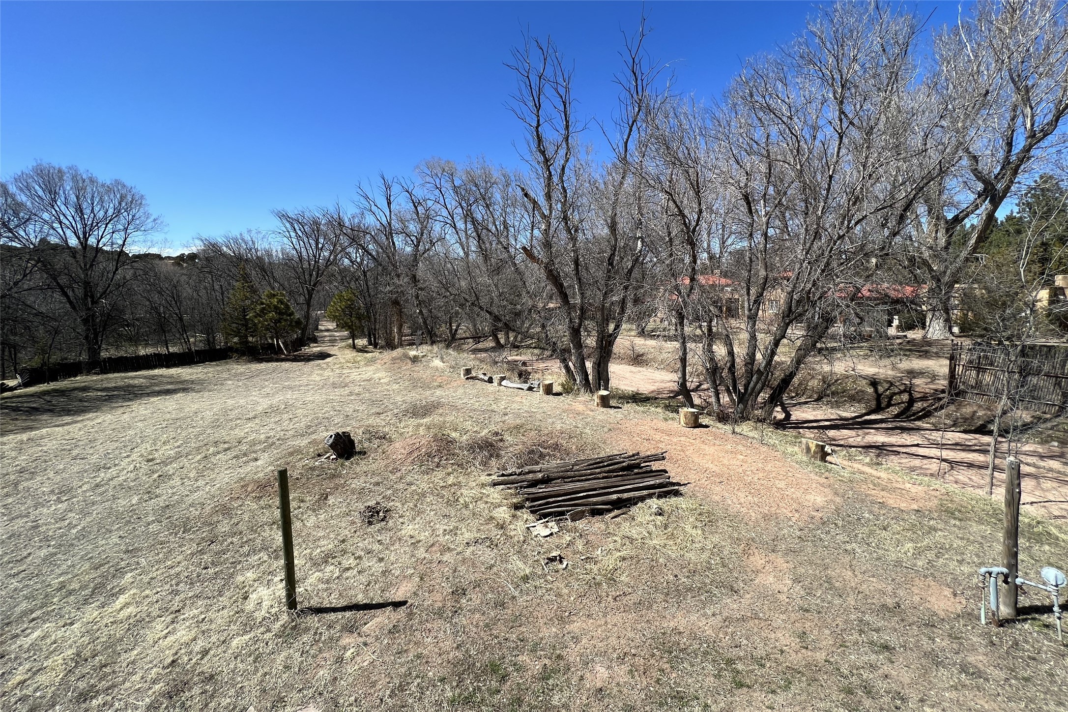 Prime Tesuque location. Abundance of Trees and Privacy. Shared Pre-Basin well with 1 acre foot of water allocation. An uninhabitable old home is on property. Very easy access off of Tesuque Village Rd. Walk to TVM & El Nido! Unique opportunity as very few vacant lots such as this remain in heart of Tesuque.