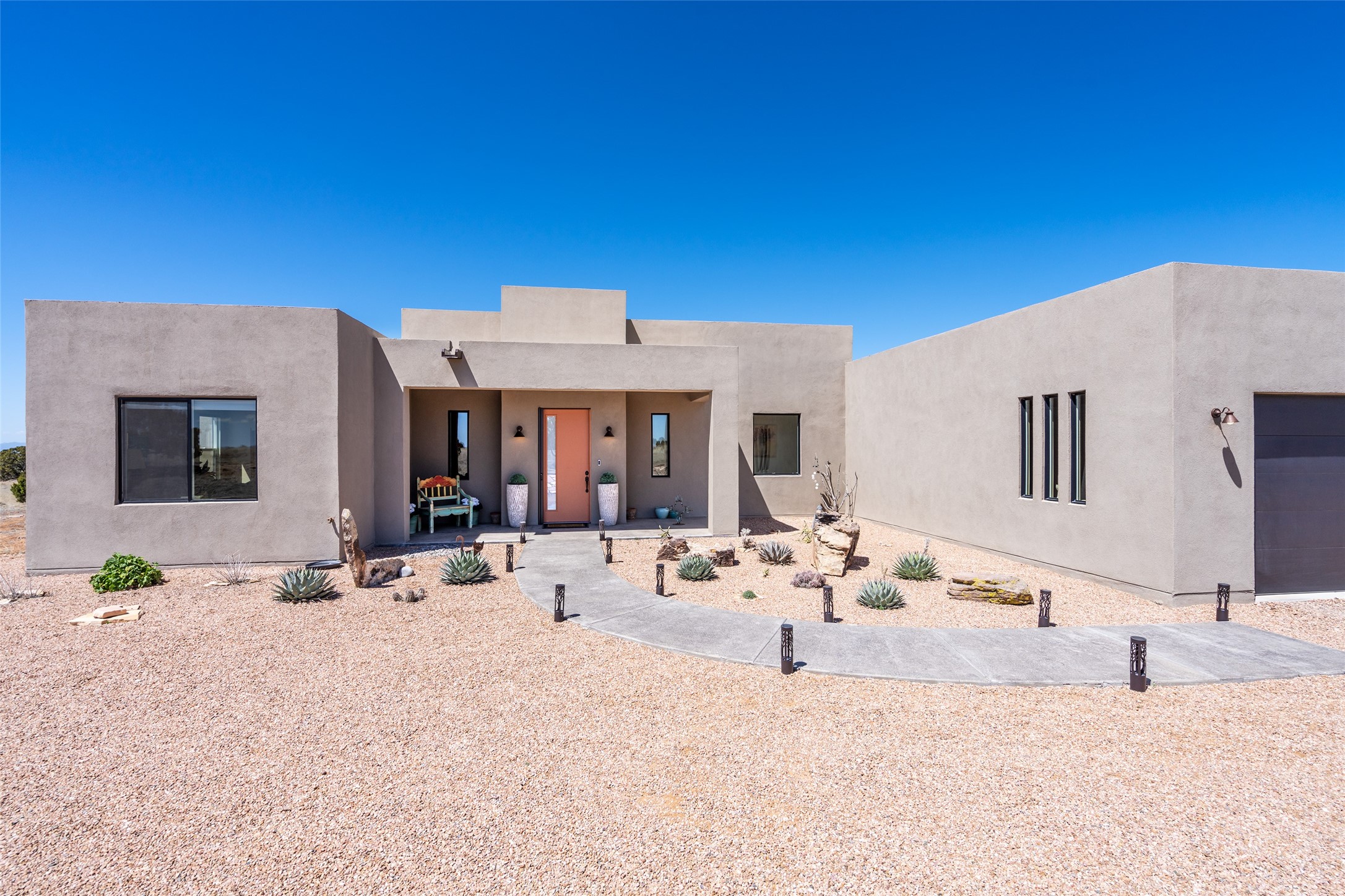 Gorgeous views of the Jemez and Sangre de Christo Mountains from the back patio of this Eldorado home. A beautifully designed 3 bedroom 2.5 bath home on one of the largest lots in Eldorado at 2.828 acres. This easy living floor plan is perfect for a couple or young family.