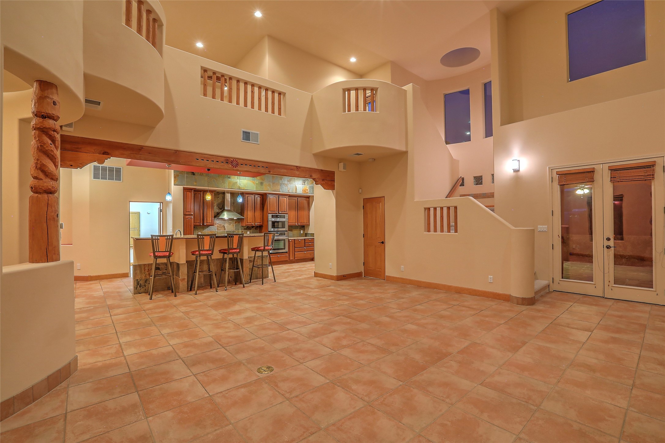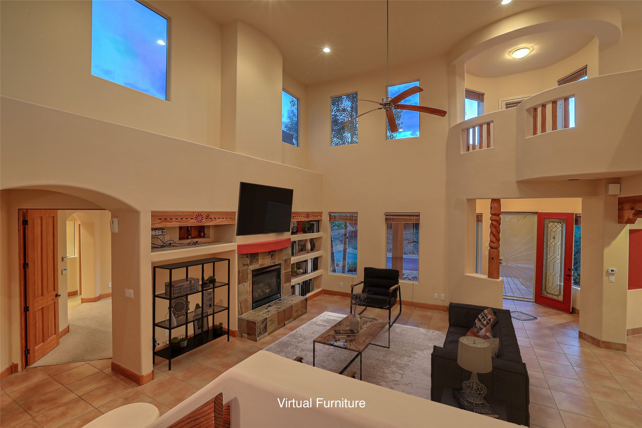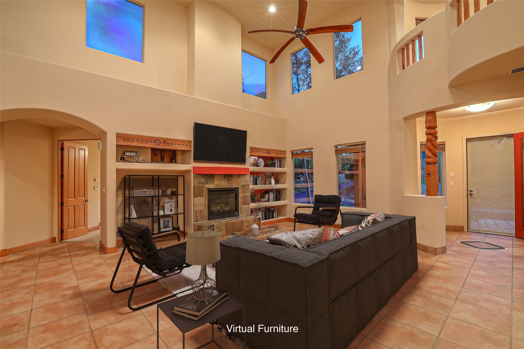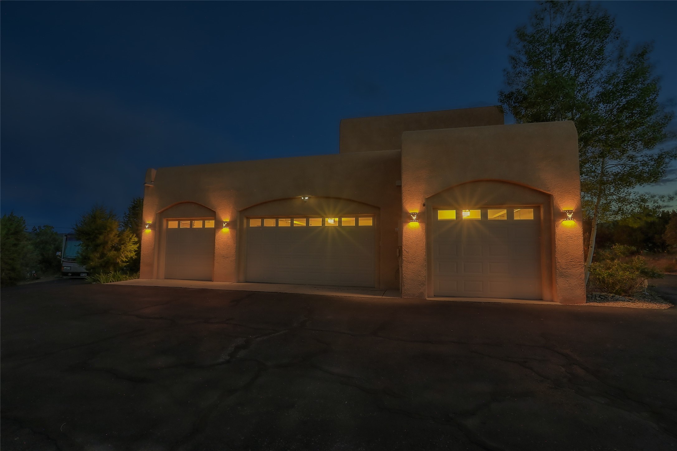 Energy Star Certified easy care mountain home in the lovely Paa-Ko Village community. Bring your motorhome and bikes to enjoy easy back-door access to the Turquoise Trail, a nationally recognized scenic byway. Move-in ready, with pre-listing home inspection available for review. You'll be greeted by an extended paved circular drive that sets the stage for this stunning, two-story house nestled in a picturesque landscape. Main floor owners suite for your convenience. Great room with 2 story high ceilings and a spacious living area with fireplace, perfect for relaxing or entertaining guests. Large windows offer natural light and views of the surrounding mountains. Extensive granite center island anchors the spacious kitchen, providing a focal point for gatherings. The owner's suite is conveniently located on the main floor with fireplace and views. The owners bathroom has two private toilets, two walk-in closets and dual vanities. Spa influenced soaking tub is a focal point of the architecturally inspired bath with a walk-in shower creatively nestled behind it. Two additional bedrooms, full bath and entertainment area with wet bar are positioned on the second floor. Dual balconies located on east and west sides beckon you for morning coffee or evening sunset enjoyment. The car enthusiast will appreciate the 4 car attached and finished garage with epoxy flooring for easy clean-up. The fourth garage separate bay also includes heating and AC. East facing climate controlled sunroom increases your enjoyable living space by 387 sq.ft. A spacious motorhome concrete pad with electricity provides convenient parking for your vehicle. As part of the community, you'll have access to a range of amenities that enhance your quality of life. Paa-ko Golf Course. The community features a pool, tennis and Pickle Ball courts are also available for those who enjoy an active lifestyle, and a recreation center provides. Motivated Seller.