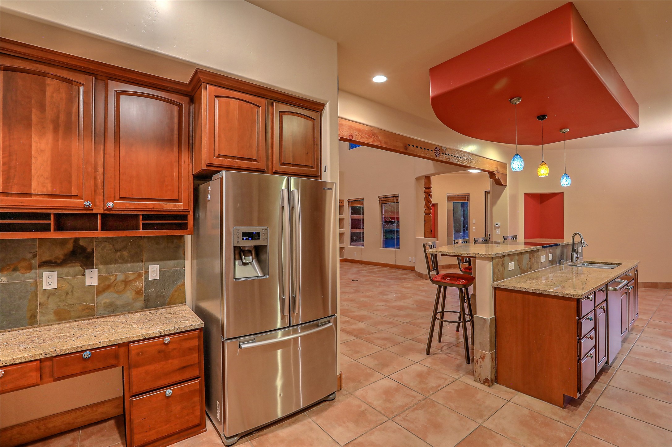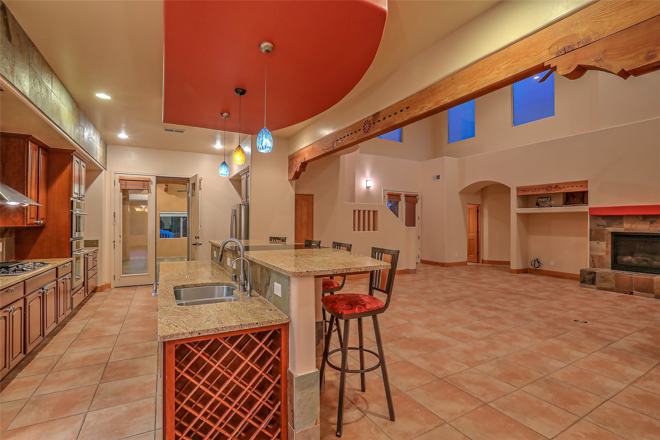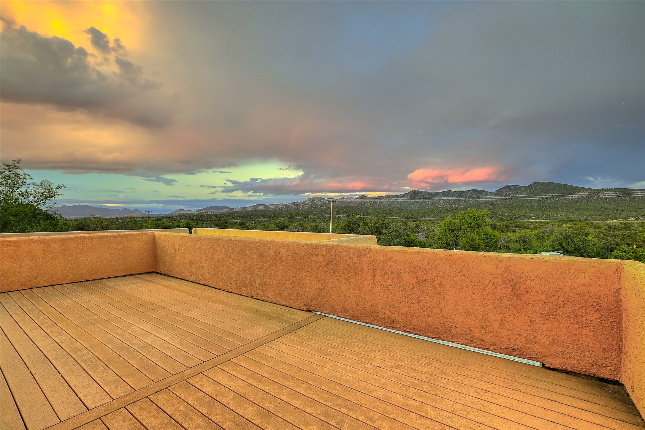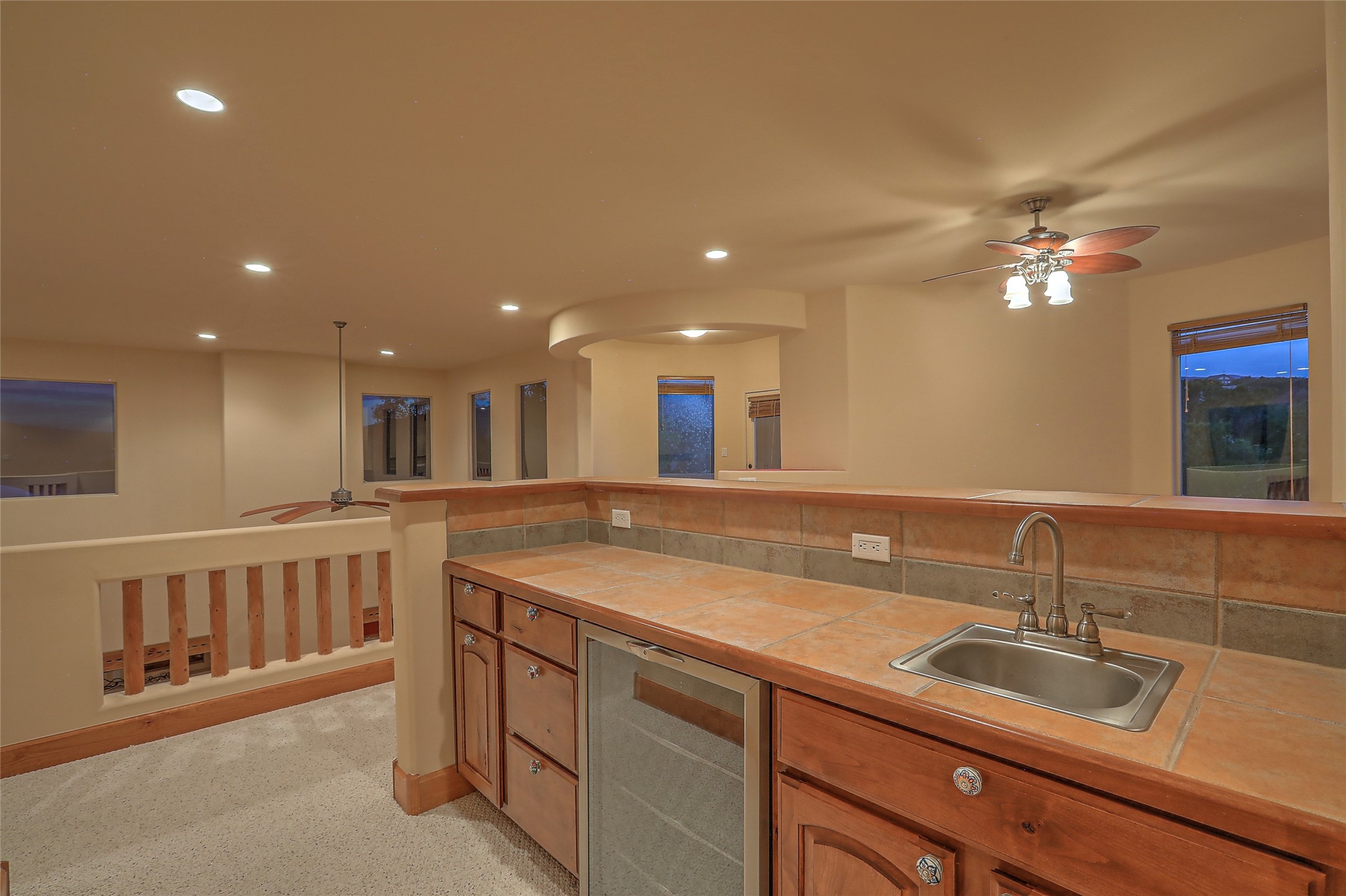 Energy Star Certified easy care mountain home in the lovely Paa-Ko Village community. Bring your motorhome and bikes to enjoy easy back-door access to the Turquoise Trail, a nationally recognized scenic byway. Move-in ready, with pre-listing home inspection available for review. You'll be greeted by an extended paved circular drive that sets the stage for this stunning, two-story house nestled in a picturesque landscape. Main floor owners suite for your convenience. Great room with 2 story high ceilings and a spacious living area with fireplace, perfect for relaxing or entertaining guests. Large windows offer natural light and views of the surrounding mountains. Extensive granite center island anchors the spacious kitchen, providing a focal point for gatherings. The owner's suite is conveniently located on the main floor with fireplace and views. The owners bathroom has two private toilets, two walk-in closets and dual vanities. Spa influenced soaking tub is a focal point of the architecturally inspired bath with a walk-in shower creatively nestled behind it. Two additional bedrooms, full bath and entertainment area with wet bar are positioned on the second floor. Dual balconies located on east and west sides beckon you for morning coffee or evening sunset enjoyment. The car enthusiast will appreciate the 4 car attached and finished garage with epoxy flooring for easy clean-up. The fourth garage separate bay also includes heating and AC. East facing climate controlled sunroom increases your enjoyable living space by 387 sq.ft. A spacious motorhome concrete pad with electricity provides convenient parking for your vehicle. As part of the community, you'll have access to a range of amenities that enhance your quality of life. Paa-ko Golf Course. The community features a pool, tennis and Pickle Ball courts are also available for those who enjoy an active lifestyle, and a recreation center provides. Motivated Seller.