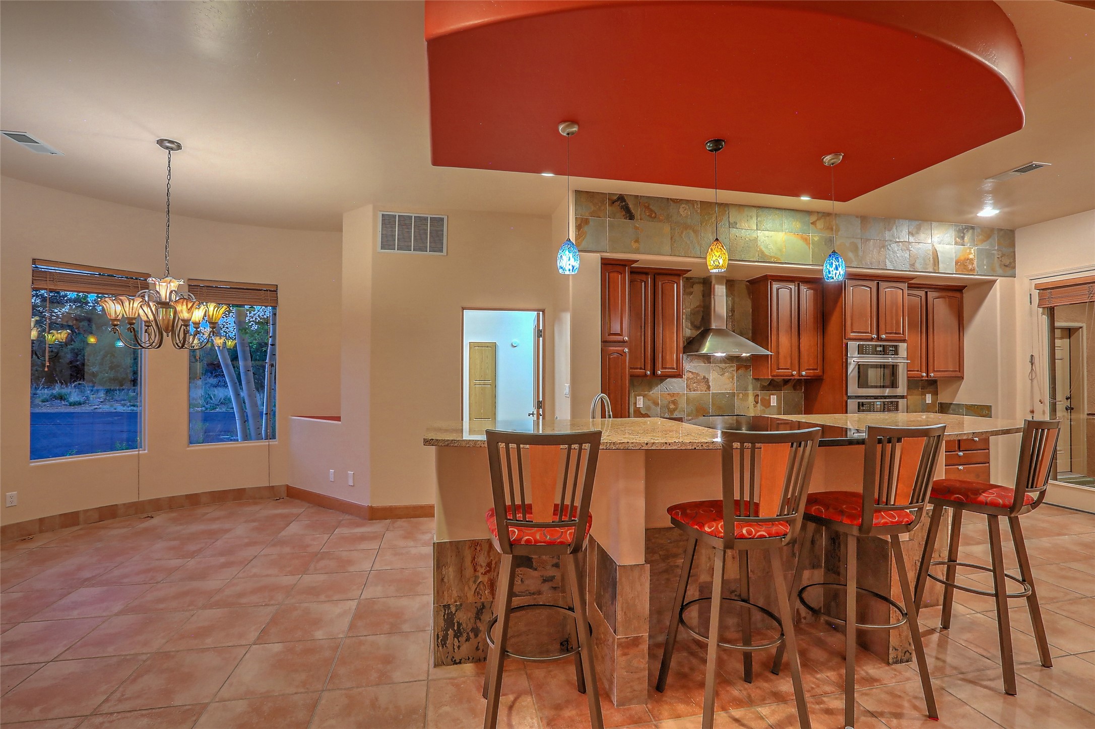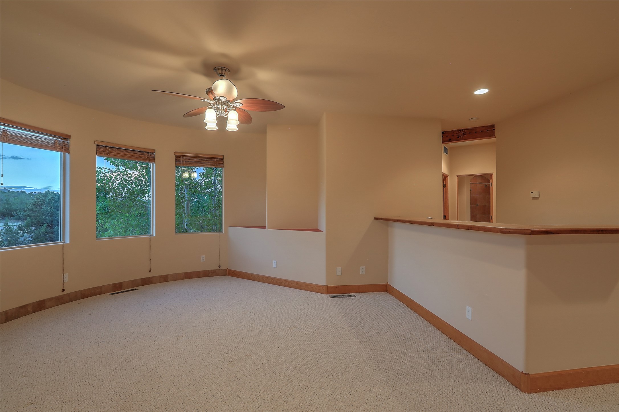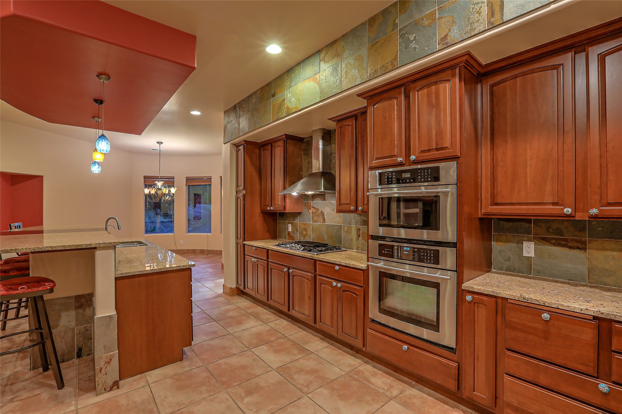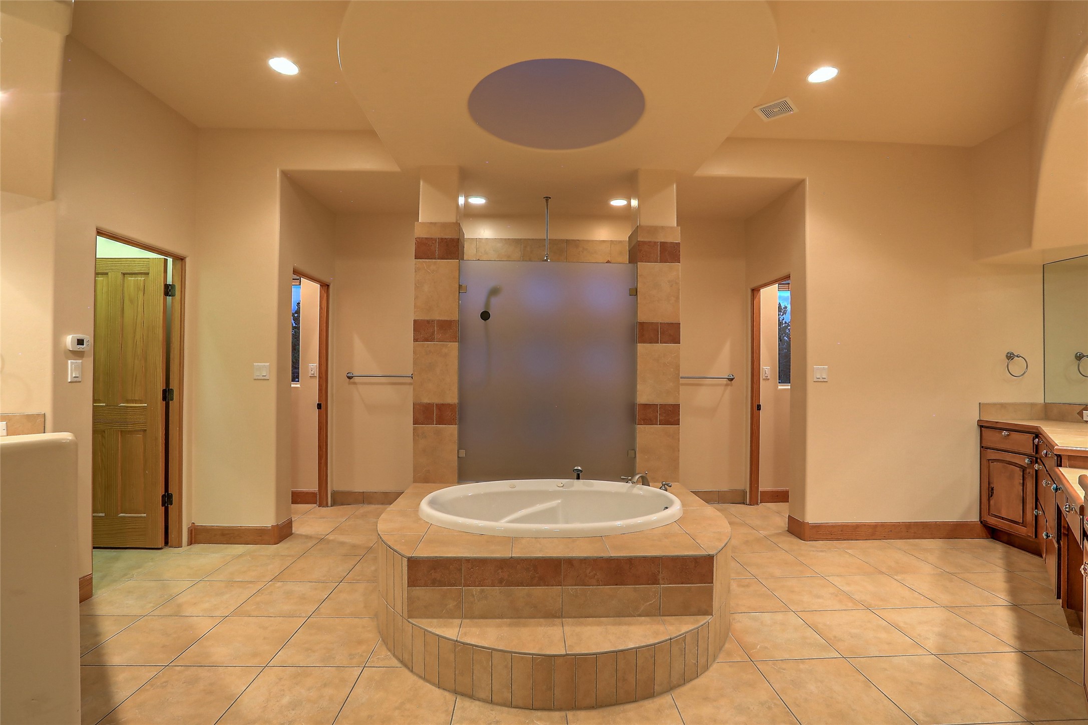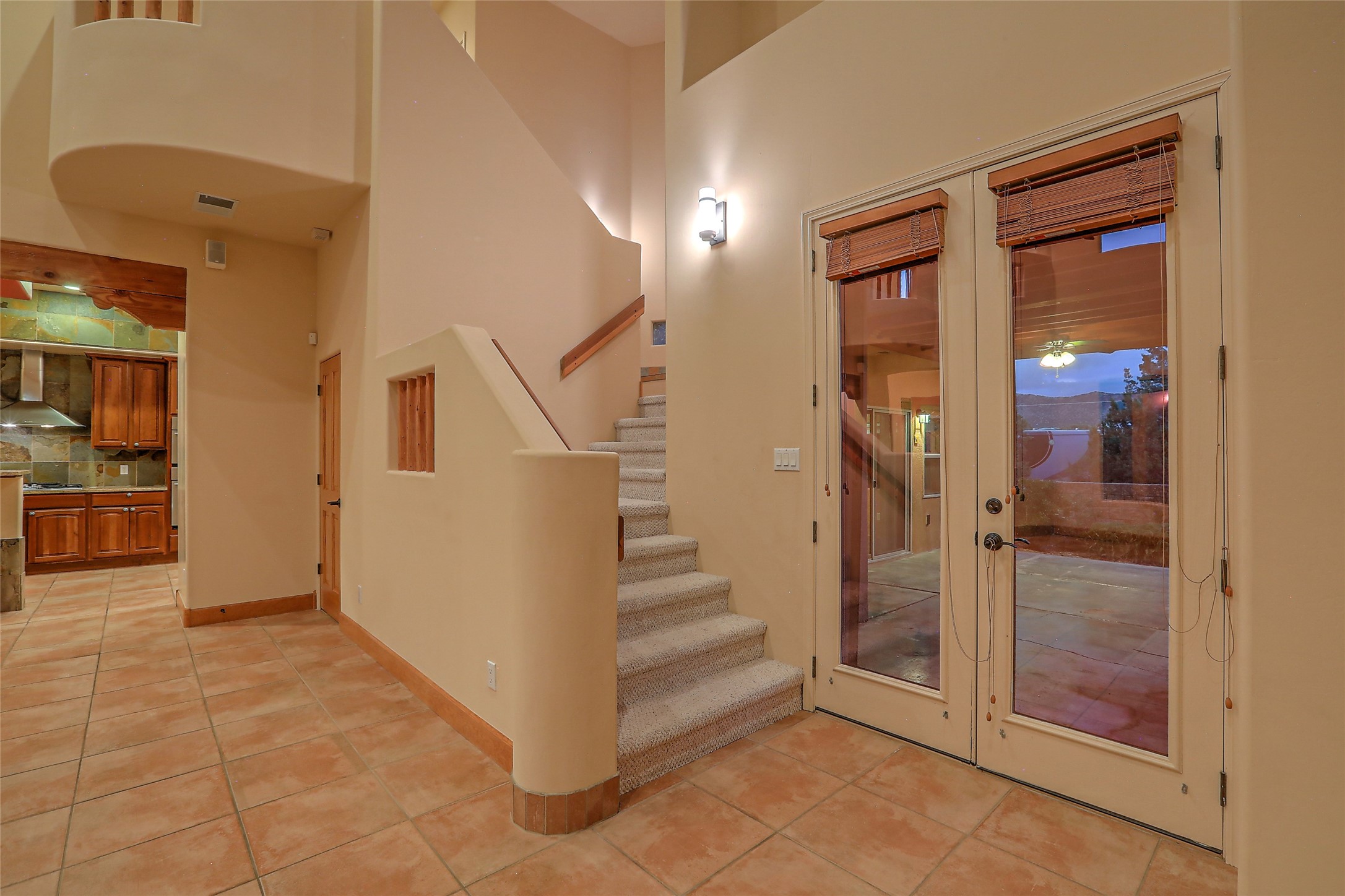 Energy Star Certified easy care mountain home in the lovely Paa-Ko Village community. Bring your motorhome and bikes to enjoy easy back-door access to the Turquoise Trail, a nationally recognized scenic byway. Move-in ready, with pre-listing home inspection available for review. You'll be greeted by an extended paved circular drive that sets the stage for this stunning, two-story house nestled in a picturesque landscape. Main floor owners suite for your convenience. Great room with 2 story high ceilings and a spacious living area with fireplace, perfect for relaxing or entertaining guests. Large windows offer natural light and views of the surrounding mountains. Extensive granite center island anchors the spacious kitchen, providing a focal point for gatherings. The owner's suite is conveniently located on the main floor with fireplace and views. The owners bathroom has two private toilets, two walk-in closets and dual vanities. Spa influenced soaking tub is a focal point of the architecturally inspired bath with a walk-in shower creatively nestled behind it. Two additional bedrooms, full bath and entertainment area with wet bar are positioned on the second floor. Dual balconies located on east and west sides beckon you for morning coffee or evening sunset enjoyment. The car enthusiast will appreciate the 4 car attached and finished garage with epoxy flooring for easy clean-up. The fourth garage separate bay also includes heating and AC. East facing climate controlled sunroom increases your enjoyable living space by 387 sq.ft. A spacious motorhome concrete pad with electricity provides convenient parking for your vehicle. As part of the community, you'll have access to a range of amenities that enhance your quality of life. Paa-ko Golf Course. The community features a pool, tennis and Pickle Ball courts are also available for those who enjoy an active lifestyle, and a recreation center provides. Motivated Seller.