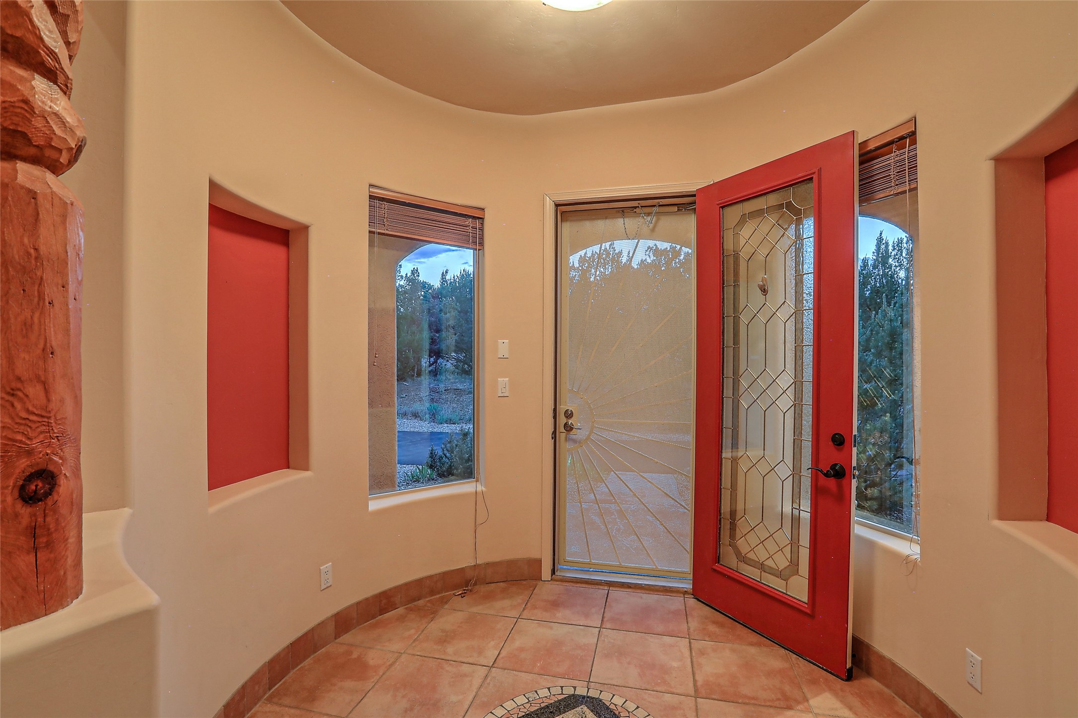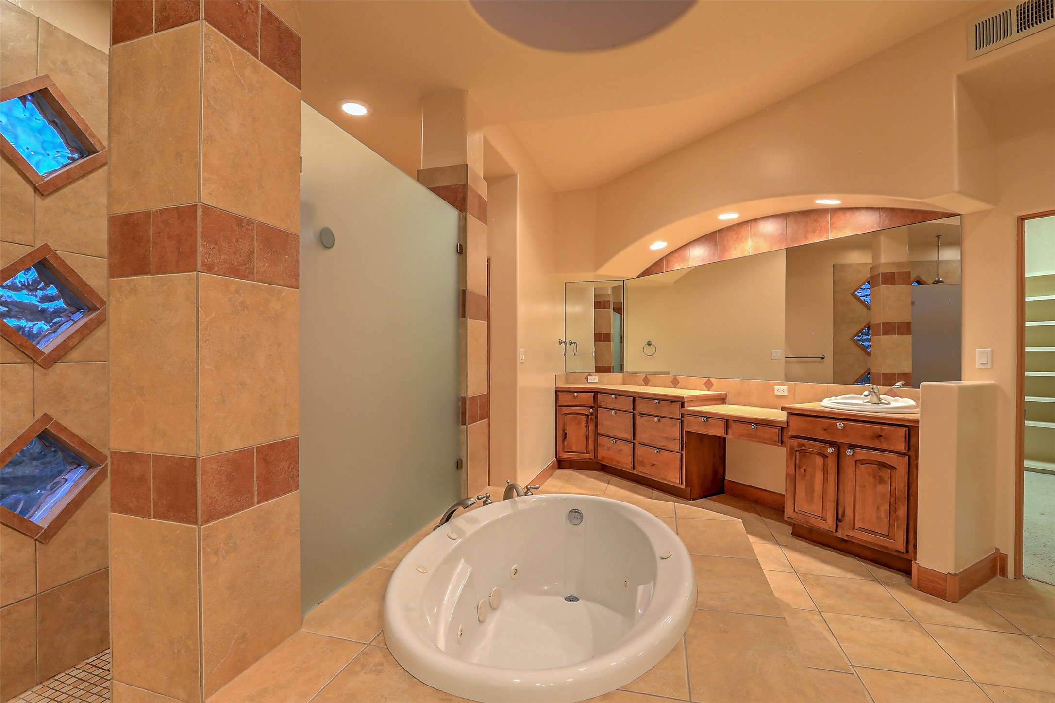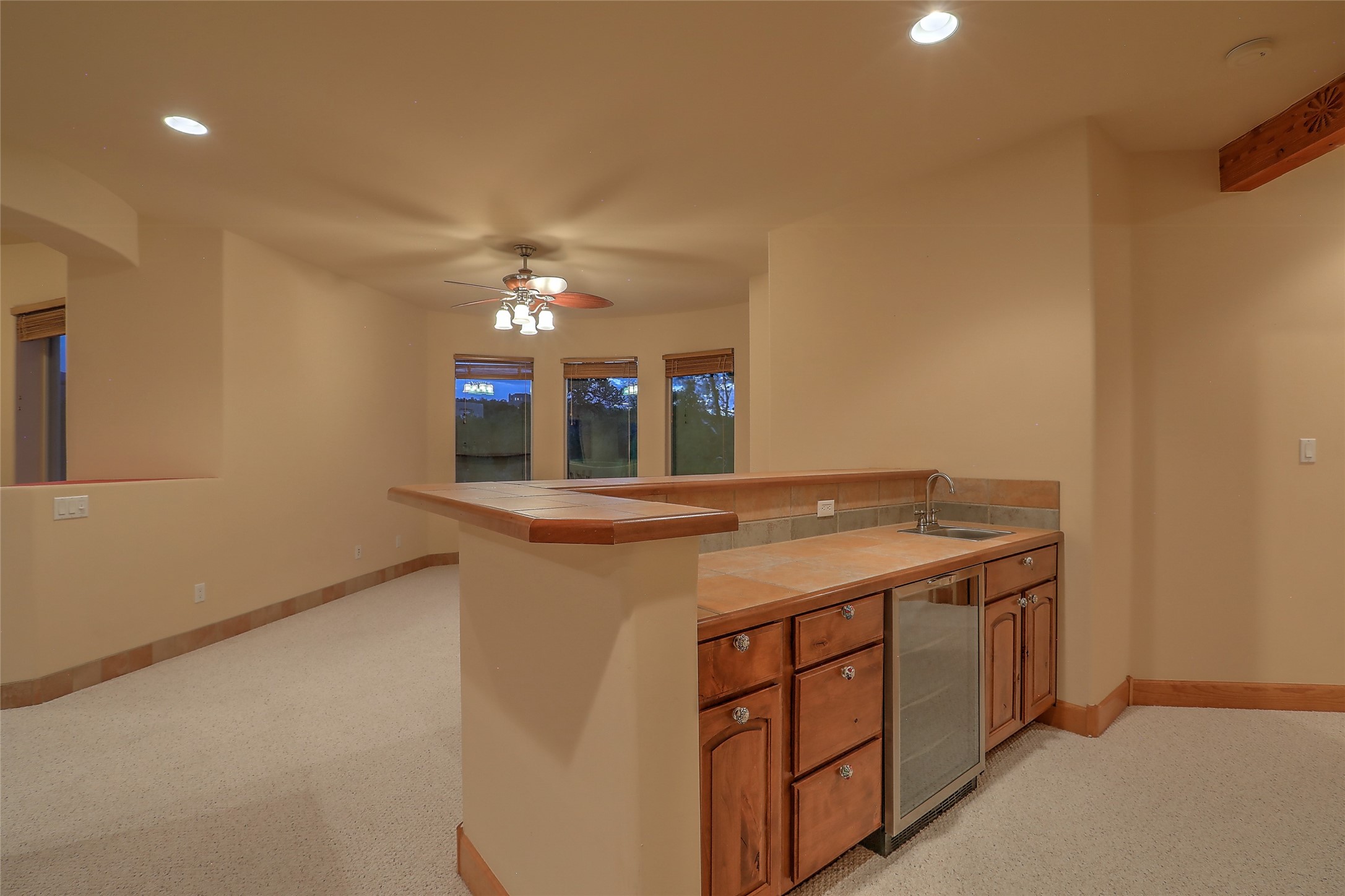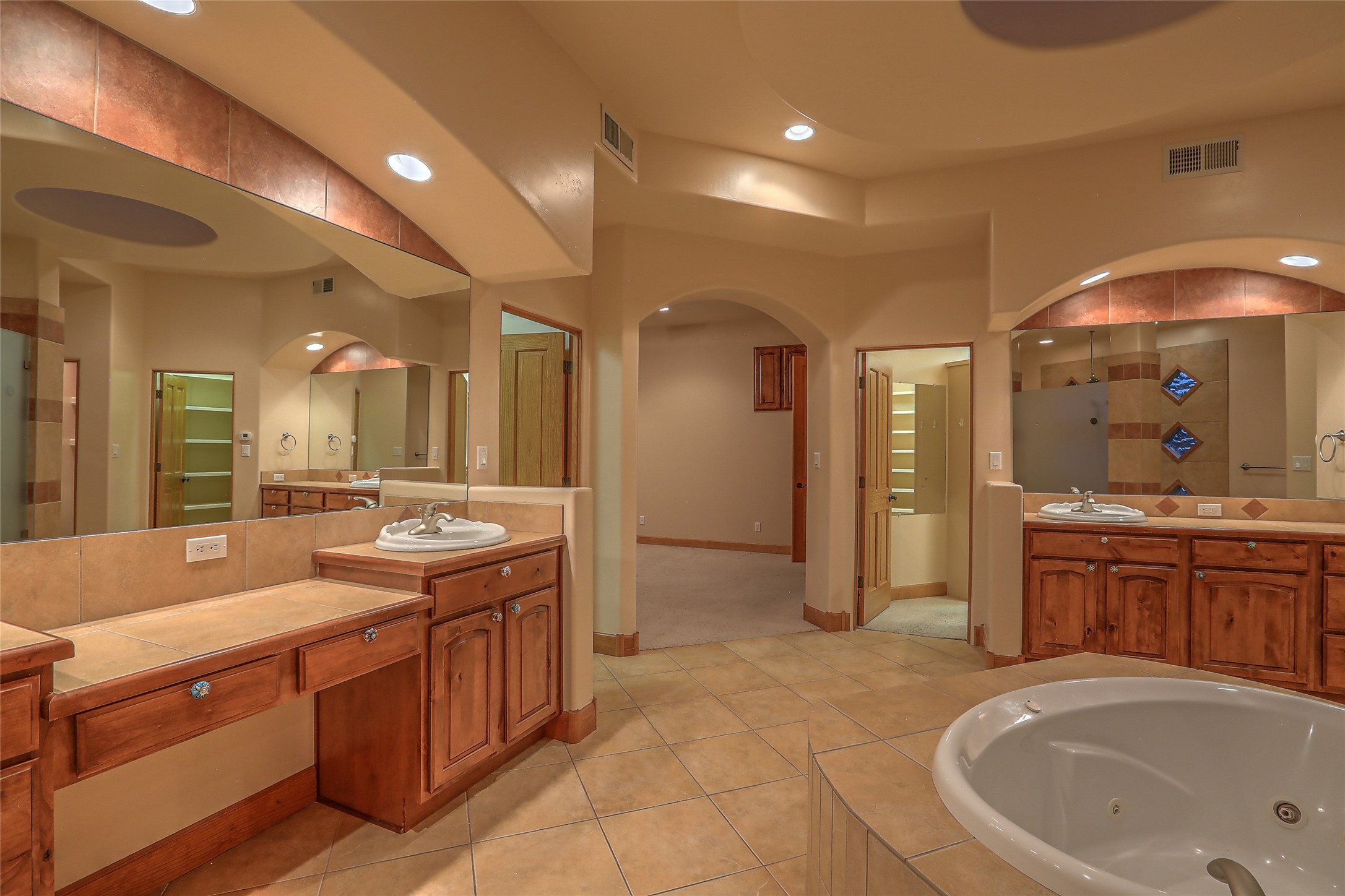 Energy Star Certified easy care mountain home in the lovely Paa-Ko Village community. Bring your motorhome and bikes to enjoy easy back-door access to the Turquoise Trail, a nationally recognized scenic byway. Move-in ready, with pre-listing home inspection available for review. You'll be greeted by an extended paved circular drive that sets the stage for this stunning, two-story house nestled in a picturesque landscape. Main floor owners suite for your convenience. Great room with 2 story high ceilings and a spacious living area with fireplace, perfect for relaxing or entertaining guests. Large windows offer natural light and views of the surrounding mountains. Extensive granite center island anchors the spacious kitchen, providing a focal point for gatherings. The owner's suite is conveniently located on the main floor with fireplace and views. The owners bathroom has two private toilets, two walk-in closets and dual vanities. Spa influenced soaking tub is a focal point of the architecturally inspired bath with a walk-in shower creatively nestled behind it. Two additional bedrooms, full bath and entertainment area with wet bar are positioned on the second floor. Dual balconies located on east and west sides beckon you for morning coffee or evening sunset enjoyment. The car enthusiast will appreciate the 4 car attached and finished garage with epoxy flooring for easy clean-up. The fourth garage separate bay also includes heating and AC. East facing climate controlled sunroom increases your enjoyable living space by 387 sq.ft. A spacious motorhome concrete pad with electricity provides convenient parking for your vehicle. As part of the community, you'll have access to a range of amenities that enhance your quality of life. Paa-ko Golf Course. The community features a pool, tennis and Pickle Ball courts are also available for those who enjoy an active lifestyle, and a recreation center provides. Motivated Seller.