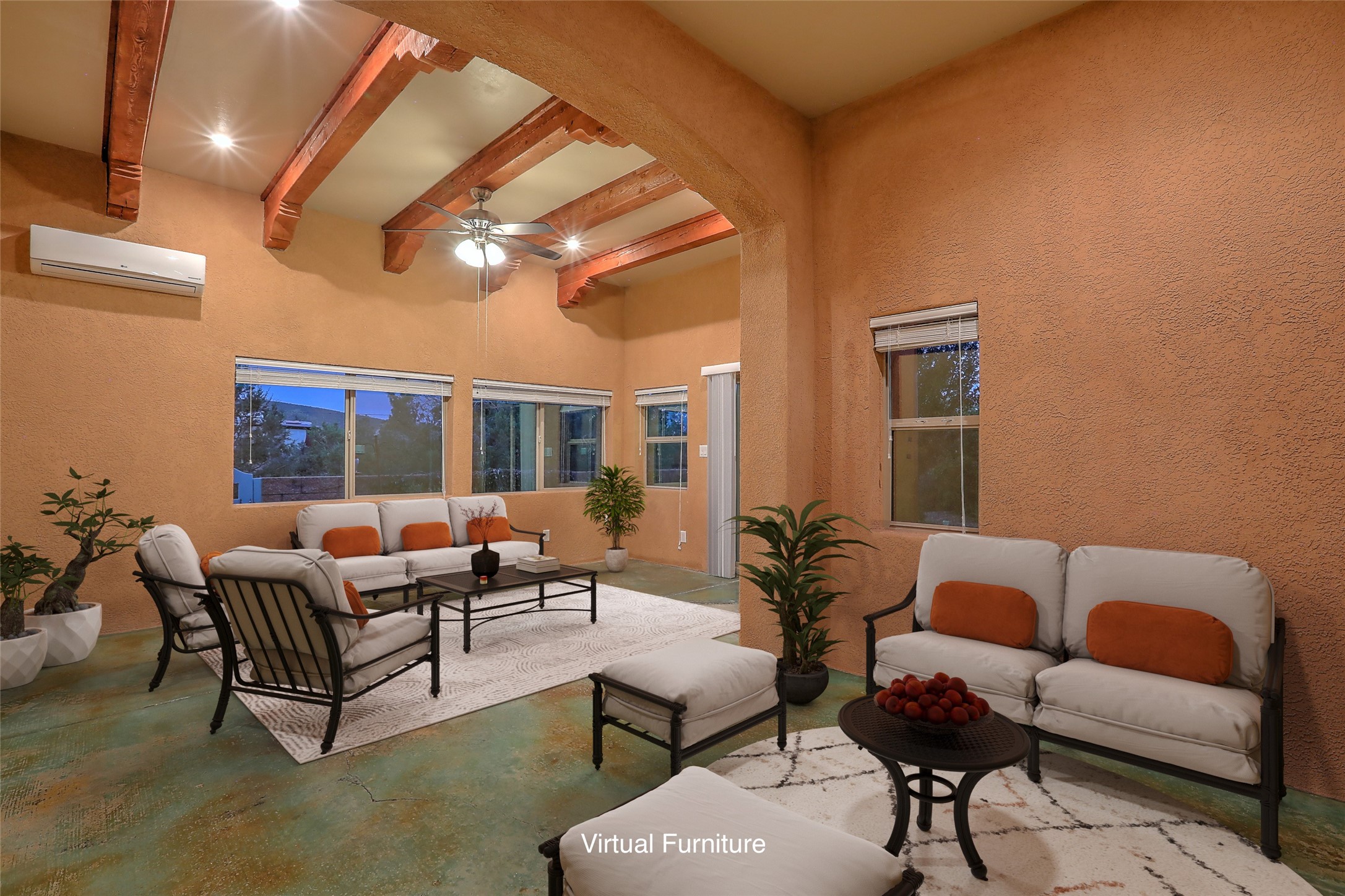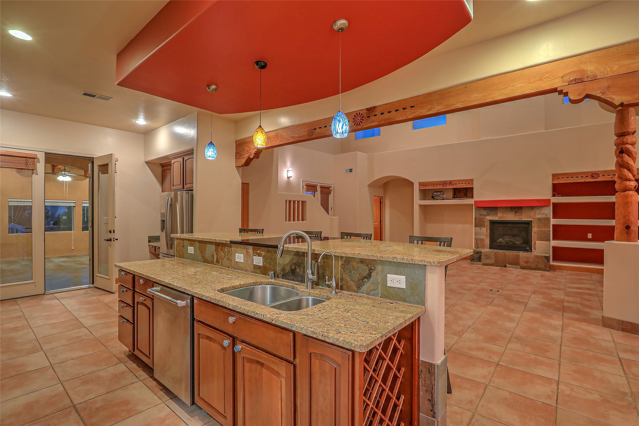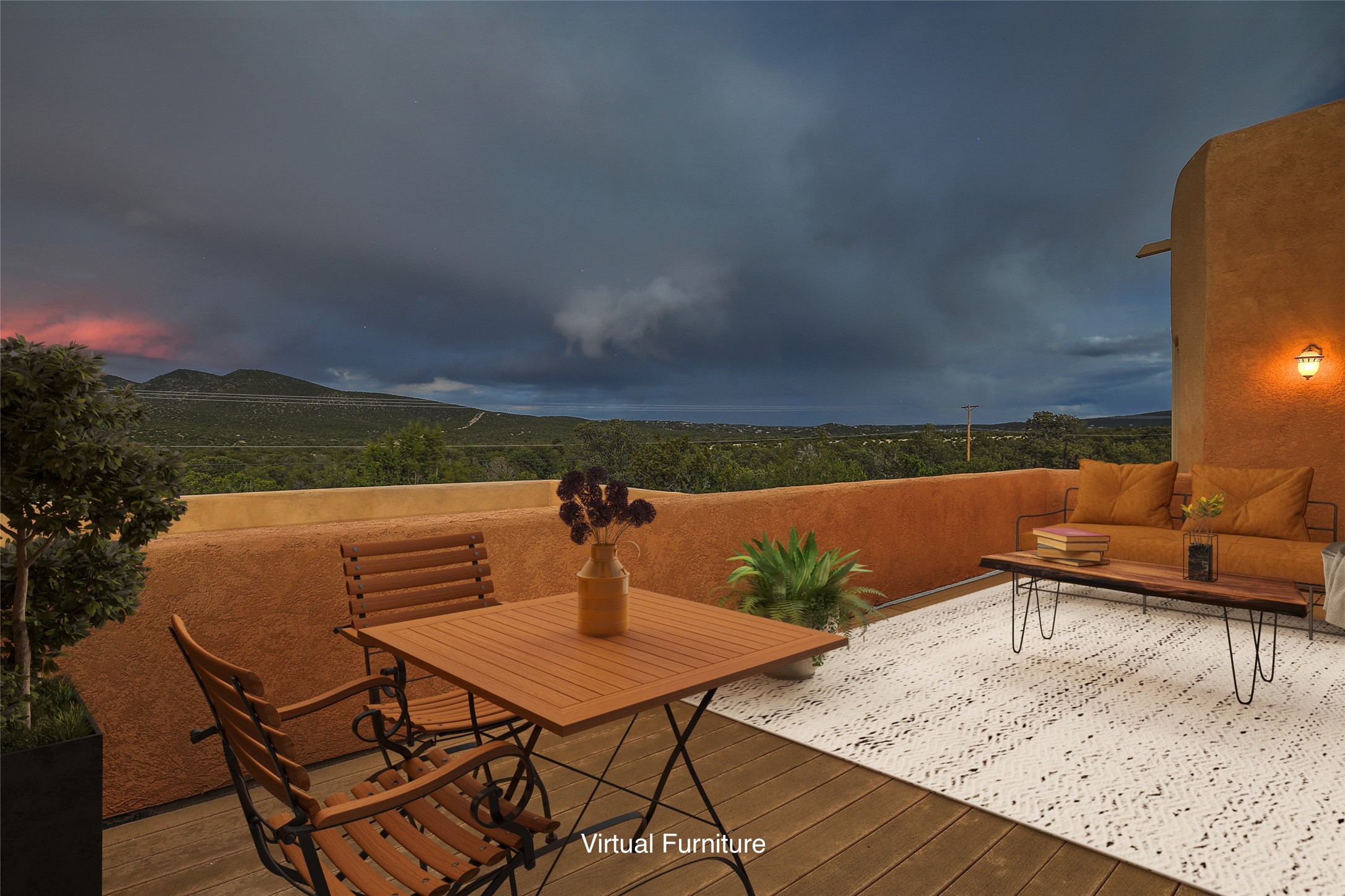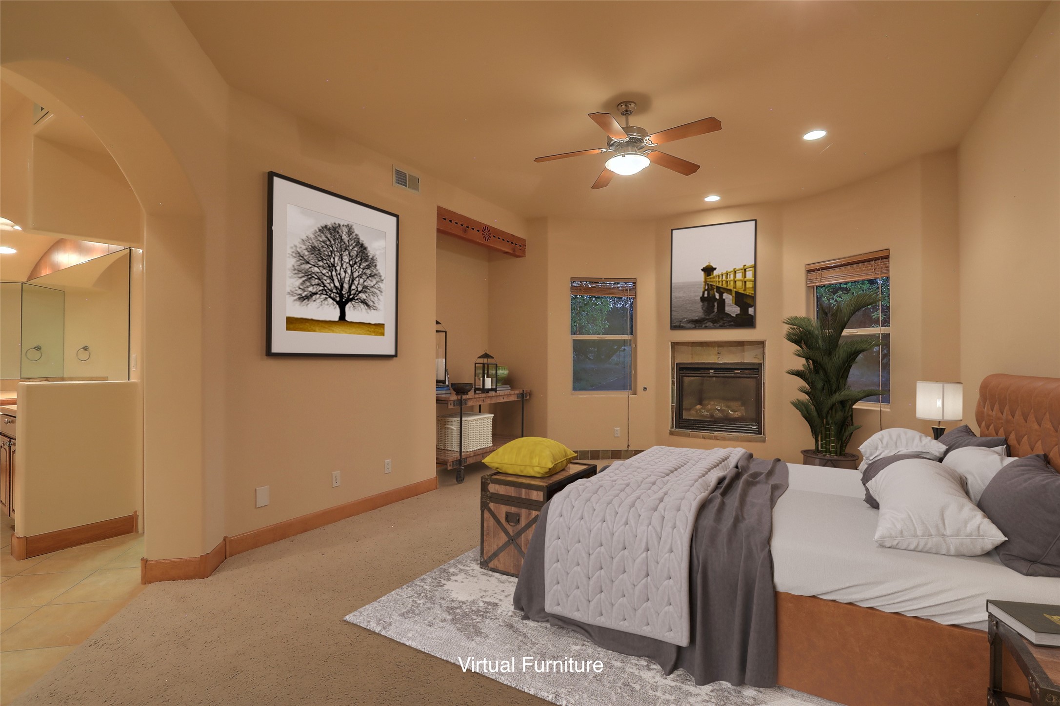 Energy Star Certified easy care mountain home in the lovely Paa-Ko Village community. Bring your motorhome and bikes to enjoy easy back-door access to the Turquoise Trail, a nationally recognized scenic byway. Move-in ready, with pre-listing home inspection available for review. You'll be greeted by an extended paved circular drive that sets the stage for this stunning, two-story house nestled in a picturesque landscape. Main floor owners suite for your convenience. Great room with 2 story high ceilings and a spacious living area with fireplace, perfect for relaxing or entertaining guests. Large windows offer natural light and views of the surrounding mountains. Extensive granite center island anchors the spacious kitchen, providing a focal point for gatherings. The owner's suite is conveniently located on the main floor with fireplace and views. The owners bathroom has two private toilets, two walk-in closets and dual vanities. Spa influenced soaking tub is a focal point of the architecturally inspired bath with a walk-in shower creatively nestled behind it. Two additional bedrooms, full bath and entertainment area with wet bar are positioned on the second floor. Dual balconies located on east and west sides beckon you for morning coffee or evening sunset enjoyment. The car enthusiast will appreciate the 4 car attached and finished garage with epoxy flooring for easy clean-up. The fourth garage separate bay also includes heating and AC. East facing climate controlled sunroom increases your enjoyable living space by 387 sq.ft. A spacious motorhome concrete pad with electricity provides convenient parking for your vehicle. As part of the community, you'll have access to a range of amenities that enhance your quality of life. Paa-ko Golf Course. The community features a pool, tennis and Pickle Ball courts are also available for those who enjoy an active lifestyle, and a recreation center provides. Motivated Seller.