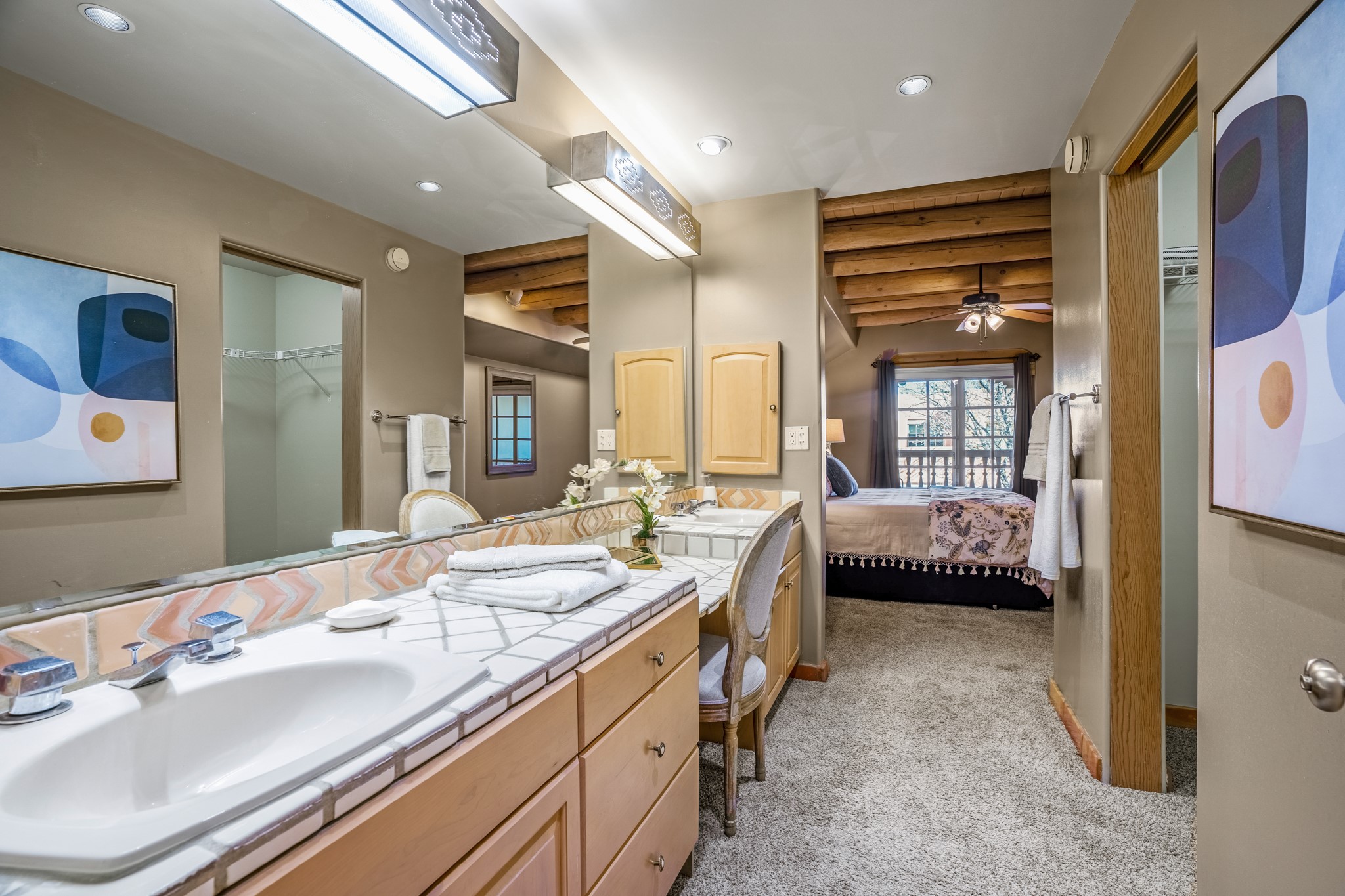 Resort Style living only minutes from the downtown. Welcome home to this second floor condo, three steps from the elevator. This unit embodies Santa Fe Style with vigas, saltillo tile and a kiva fireplace. There are two bedrooms and two balconies, one is oversized and covered. Come join Quail Run which offers community in a space that accommodates the times you need privacy and quiet. Ownership includes all of Quail Run's top notch amenities including golf, fitness, indoor pool, spa, gym, pickleball and more. 24 hour hosted security and stunning grounds, Quail Run remains one of a kind.