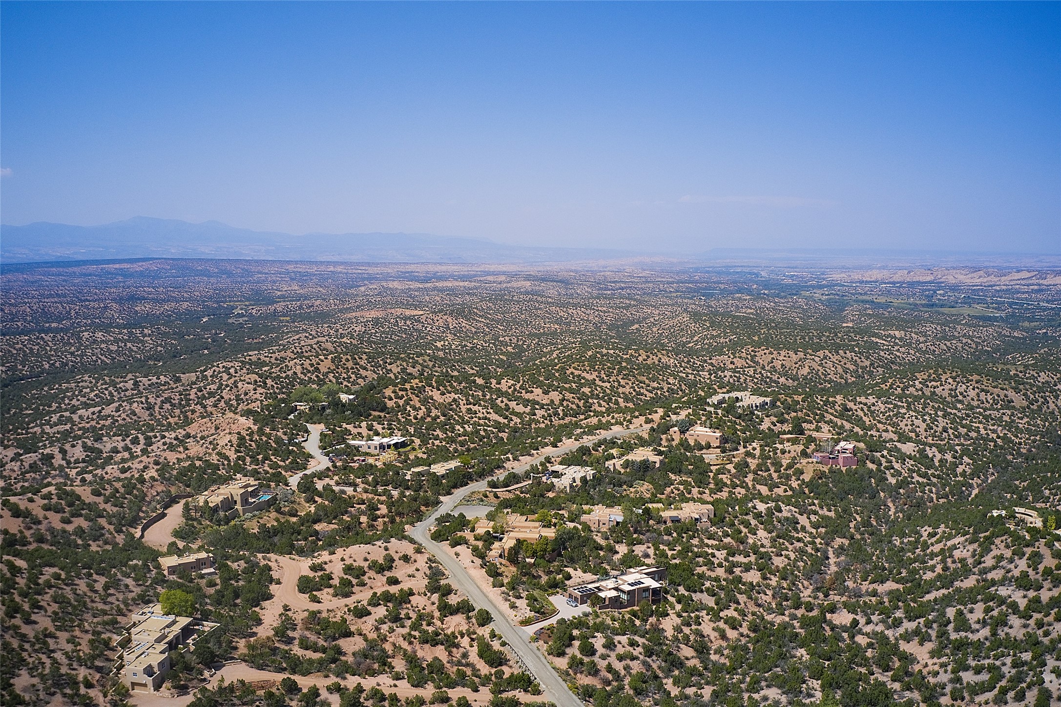 Casa de Vidrio (House of Glass), an extraordinary, gated contemporary estate, overlooks the world-renowned Santa Fe Opera with panoramic views of distant valleys and the Sangre de Cristo and Jemez Mountain ranges. The 5,600-square-foot main home and 1,600-square-foot guest house command 8.43 acres in the prestigious northside Tesuque area. Designed by Aaron Bohrer to emulate the architectural spirit of Chaco Canyon's Pueblo Bonito, Casa de Vidrio provides an enormous entry glass door, an observation deck, slate and bamboo floors, sliding pocket doors, multiple water features, a home theatre, unmatched art display facilities, an outdoor hot tub, and numerous patios and portals. The color-filled art and architecture, floor-to-ceiling windows, multiple outdoor living spaces, and native landscaping--along with nearby skiing, hiking, and biking--all combine to fulfill the dream of living the enchanting Santa Fe lifestyle.