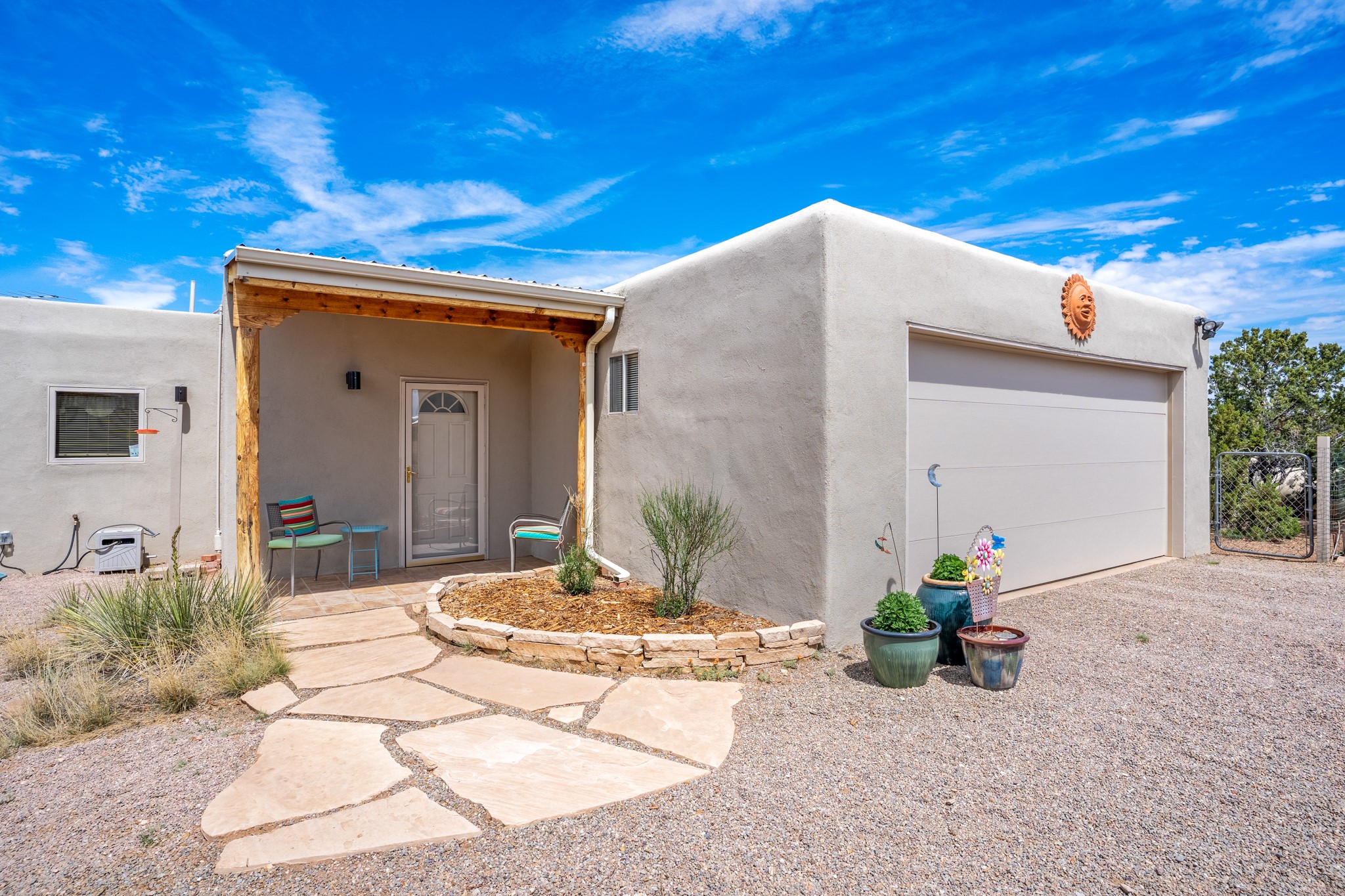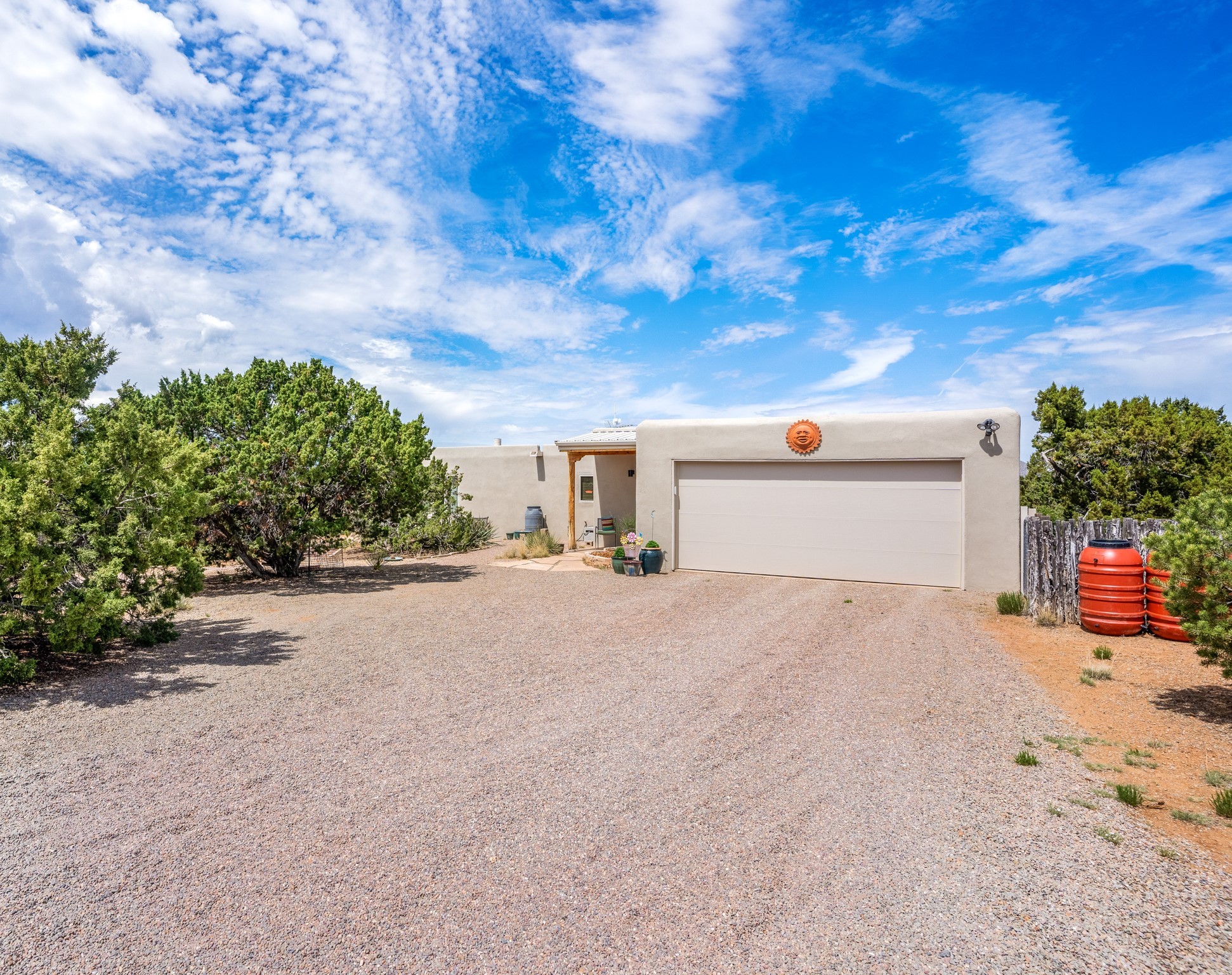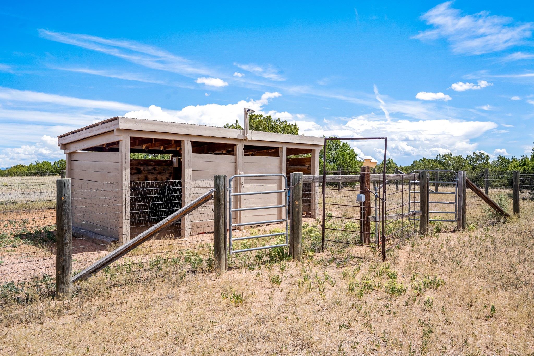 Native American legend says the Crazy Rabbit enjoys quiet, isolated contemplation. Near the 50 acre Alan Houser sculpture garden, displaying over 70 works, solitude is delivered in abundance. At the end of a private, gated driveway rests this 3 bedroom 2 bath, well maintained home, with expansive mountain and vista views. Whether enjoying the panorama from the light infused interior or on horseback in the arena, one can sense the deep history and cultural significance of the area. The 700 year old, nearby Burnt Corn Pueblo was purchased by the BLM opening public access to over 2,000 acres of public land. After recreation relax in the cool refrigerated home or find yourself sipping a cold drink under one of the covered portales. The entire home is tile floor making cleaning easy and the large 2 car garage has enough space to tackle projects large and small. Two walk in closets, full bathroom, and large entry room ensure you and your guests are comfortable. Perimeter and cross fencing with loafing sheds and turnouts make sure the four legged friends feel at home too. Near the historical villages of Cerrillos and Madrid with only a 20 minute drive to downtown Santa Fe, the area enjoys many restaurants, shops, and festivals but with peace and seclusion awaiting at home.