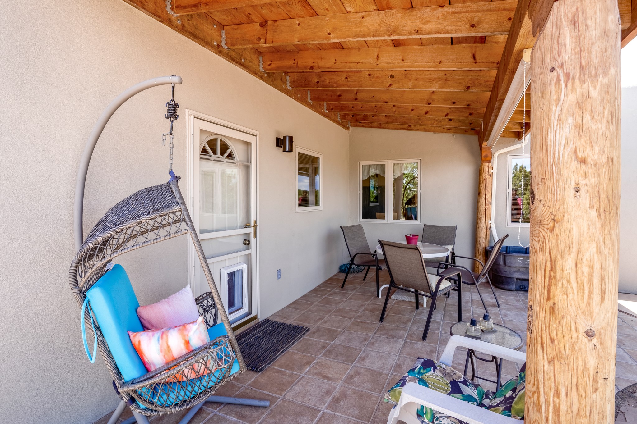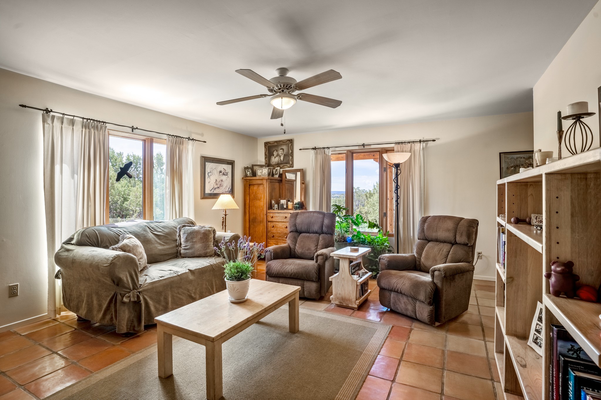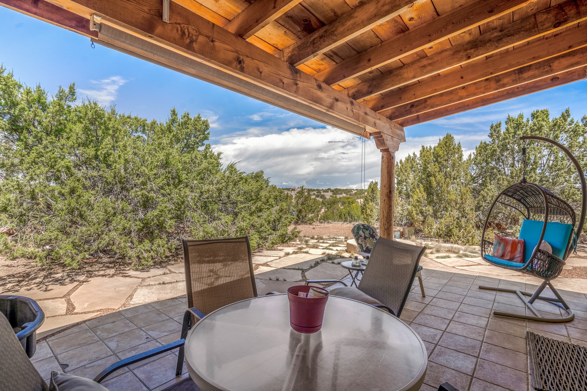 Native American legend says the Crazy Rabbit enjoys quiet, isolated contemplation. Near the 50 acre Alan Houser sculpture garden, displaying over 70 works, solitude is delivered in abundance. At the end of a private, gated driveway rests this 3 bedroom 2 bath, well maintained home, with expansive mountain and vista views. Whether enjoying the panorama from the light infused interior or on horseback in the arena, one can sense the deep history and cultural significance of the area. The 700 year old, nearby Burnt Corn Pueblo was purchased by the BLM opening public access to over 2,000 acres of public land. After recreation relax in the cool refrigerated home or find yourself sipping a cold drink under one of the covered portales. The entire home is tile floor making cleaning easy and the large 2 car garage has enough space to tackle projects large and small. Two walk in closets, full bathroom, and large entry room ensure you and your guests are comfortable. Perimeter and cross fencing with loafing sheds and turnouts make sure the four legged friends feel at home too. Near the historical villages of Cerrillos and Madrid with only a 20 minute drive to downtown Santa Fe, the area enjoys many restaurants, shops, and festivals but with peace and seclusion awaiting at home.