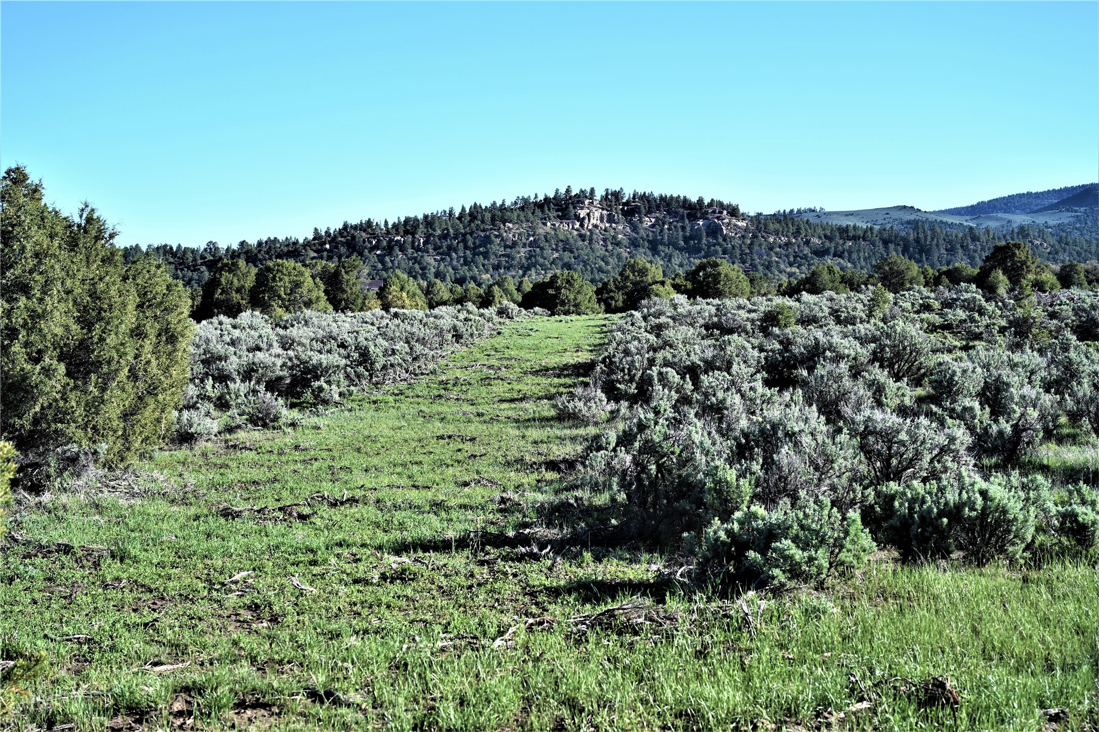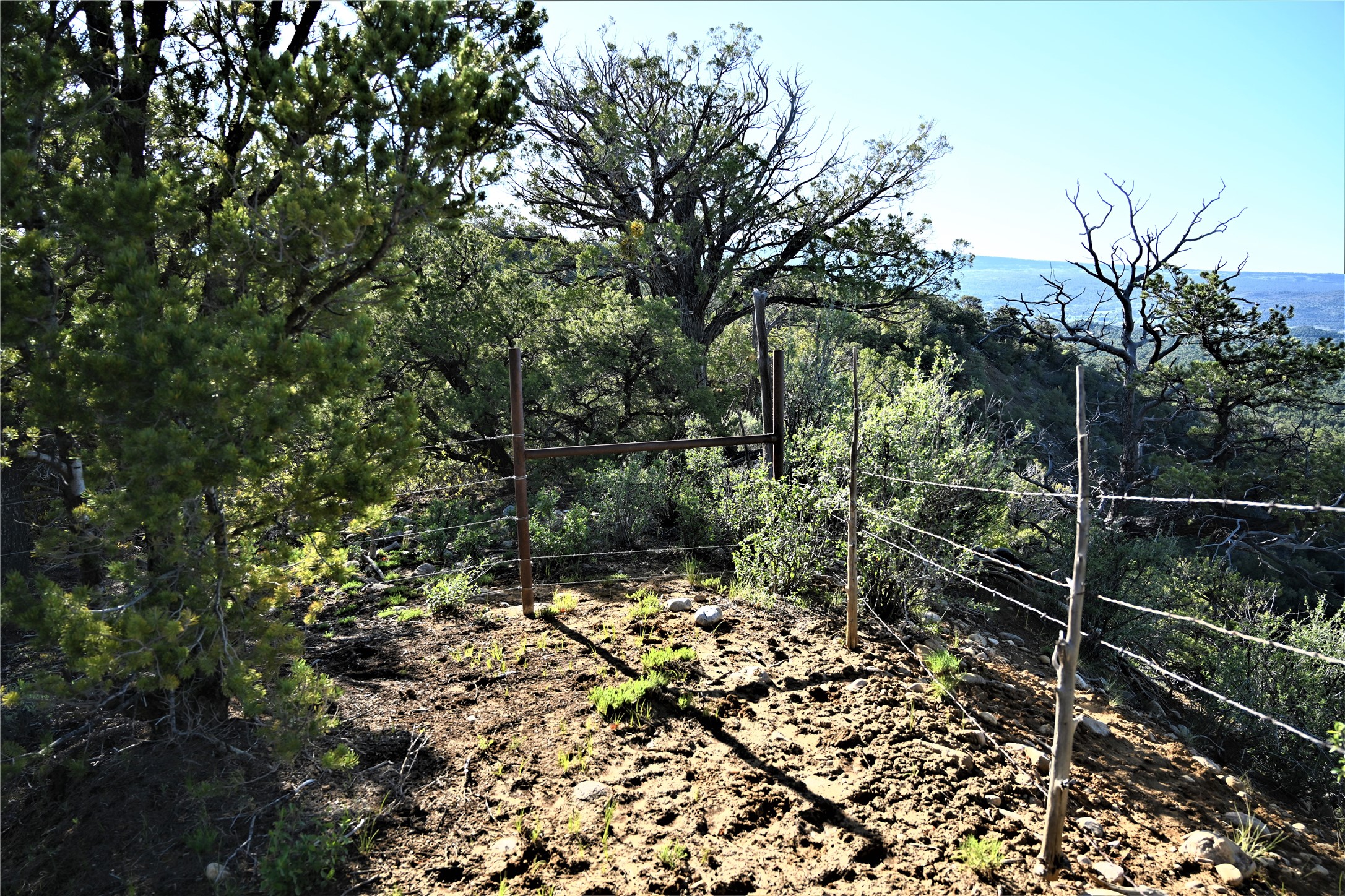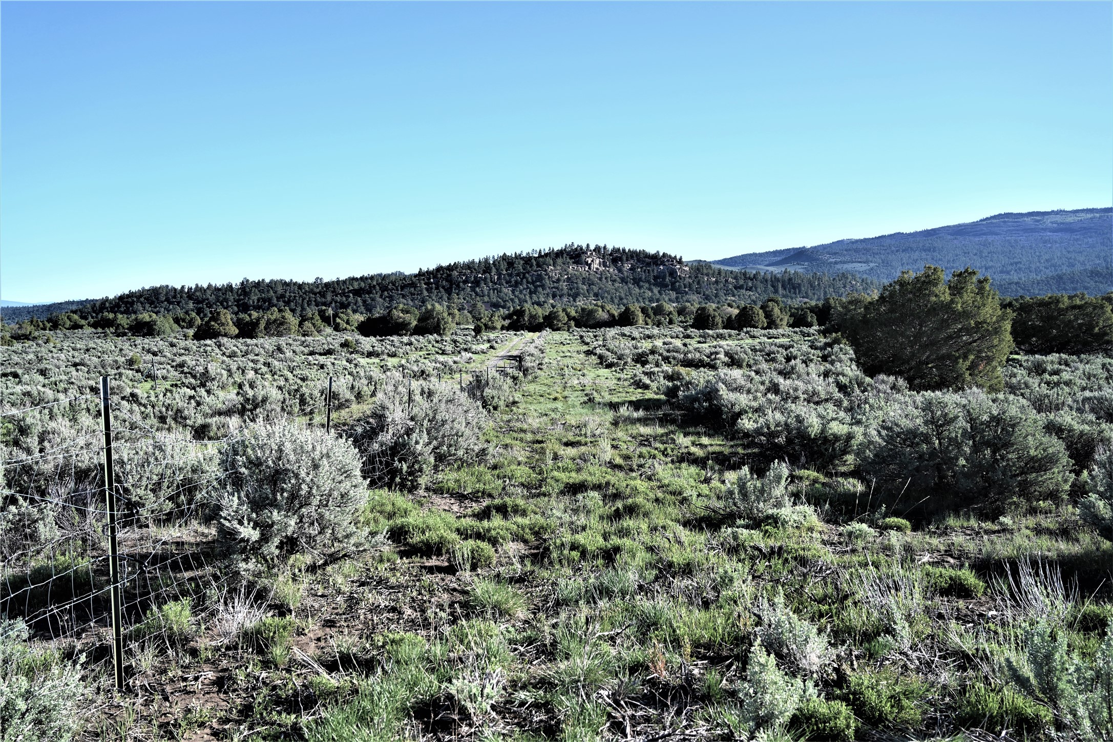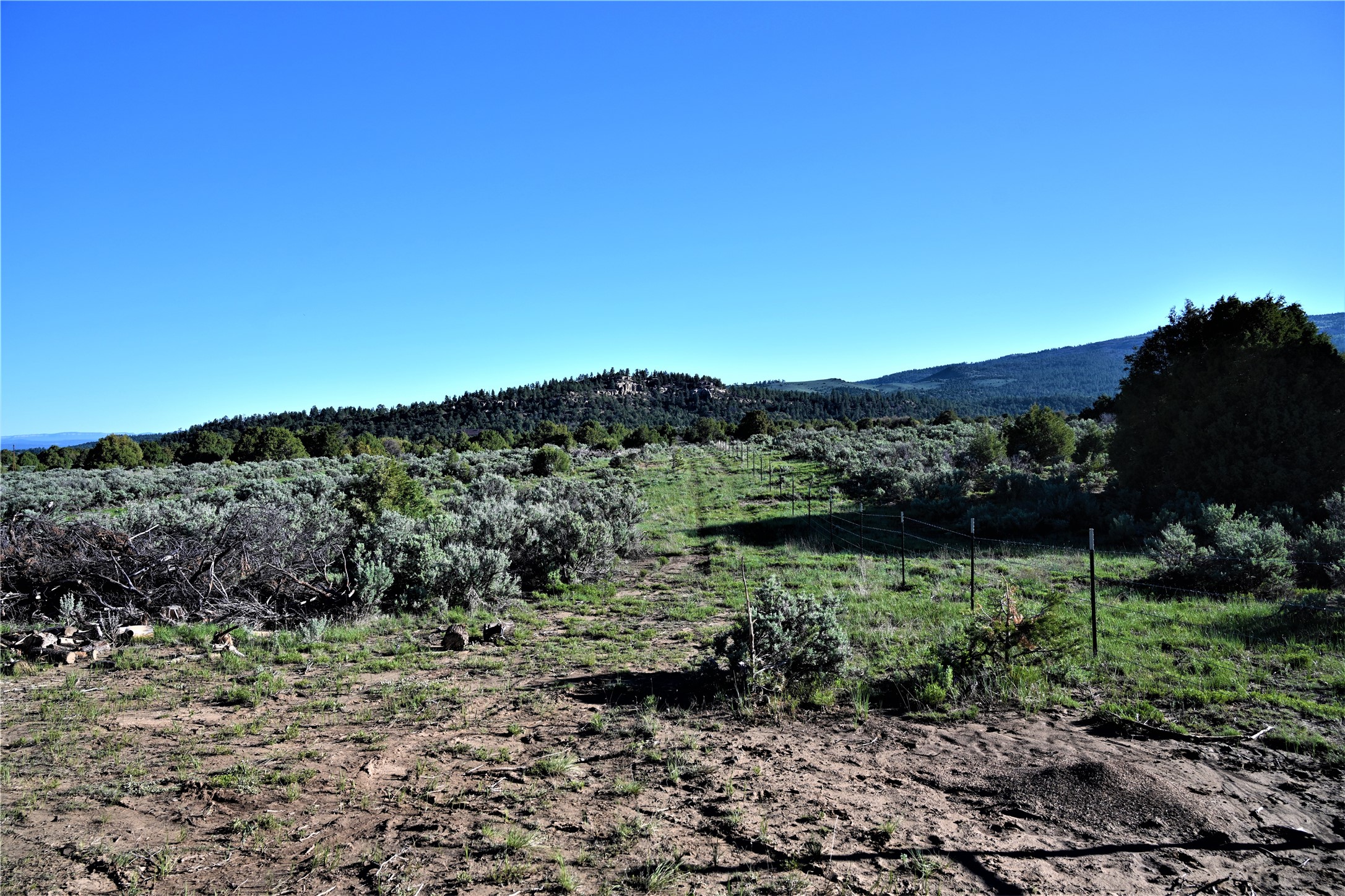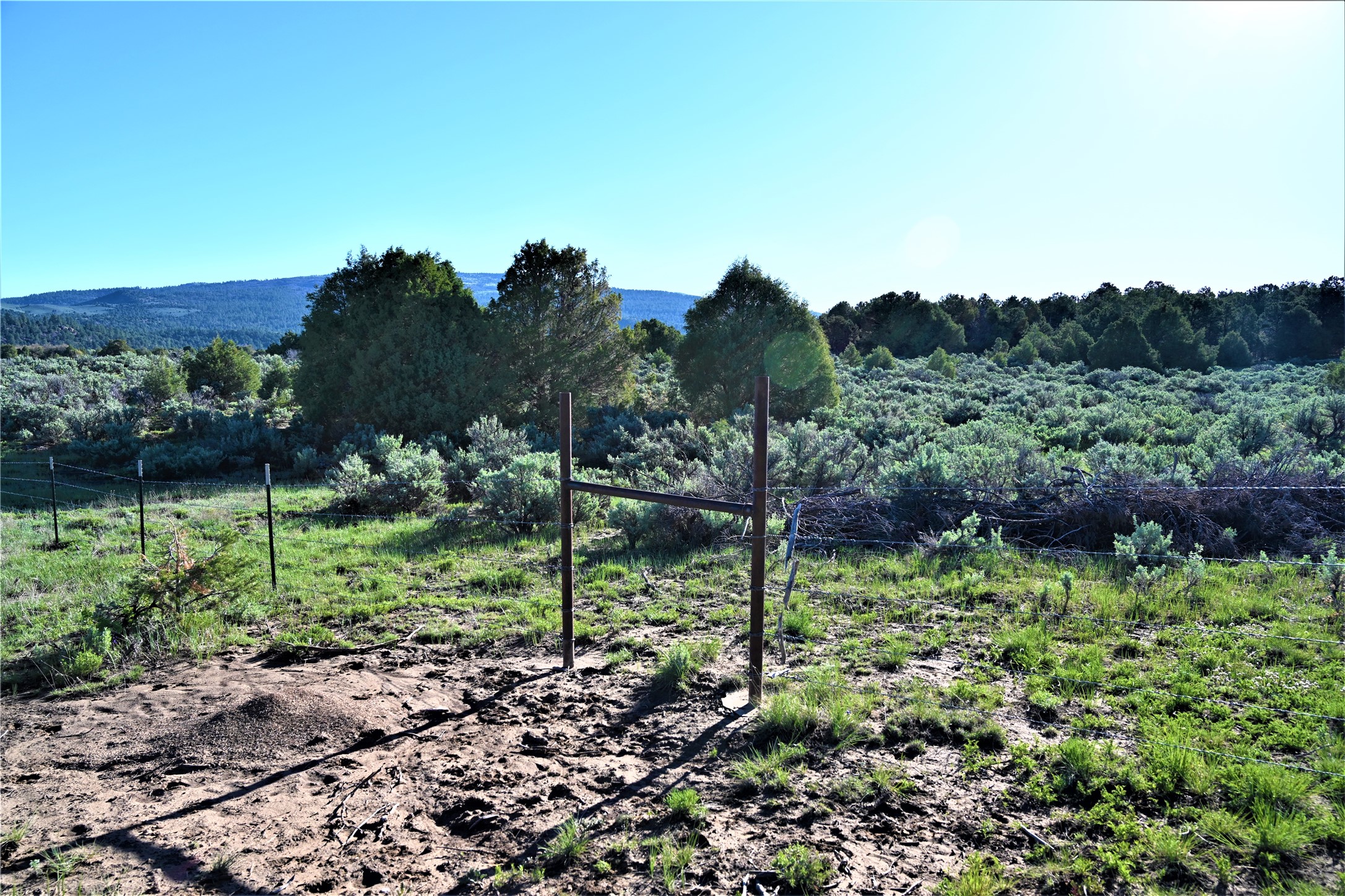 Beautiful Northern NM hunting property. The place has been set up for Elk and Mule Deer hunting. Has been assigned 1 Elk tag in the past years and a couple of Mule Deer tags as well. Turkey and Black Bear also roam this property. The current owner has put in work to get this place where its at today. Some areas of Sage have been cleared and planted with Grass and Alfalfa. Hunting Stand put in place. The fence has special areas for the animals to cross back and forth. Nice deep water hole that is spring and run off fed. A 300 yard shooting range for getting your Rifles zeroed in. This is GREAT private hunting property. Real easy to get around in. Power at the front of the property.