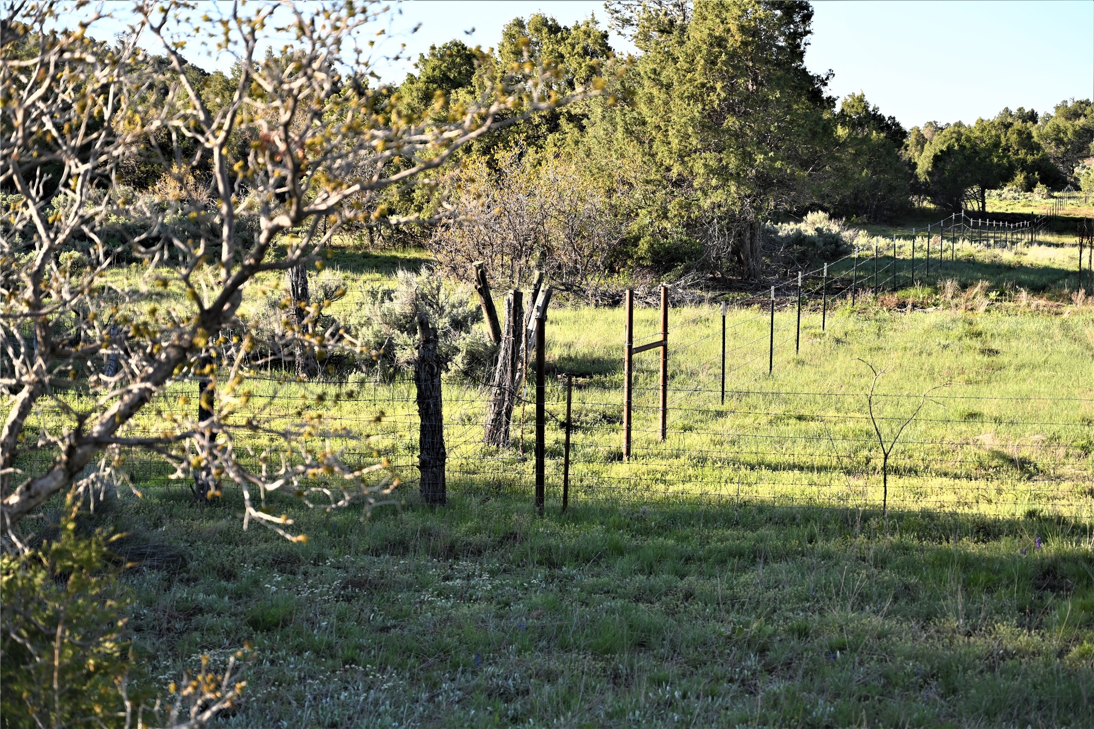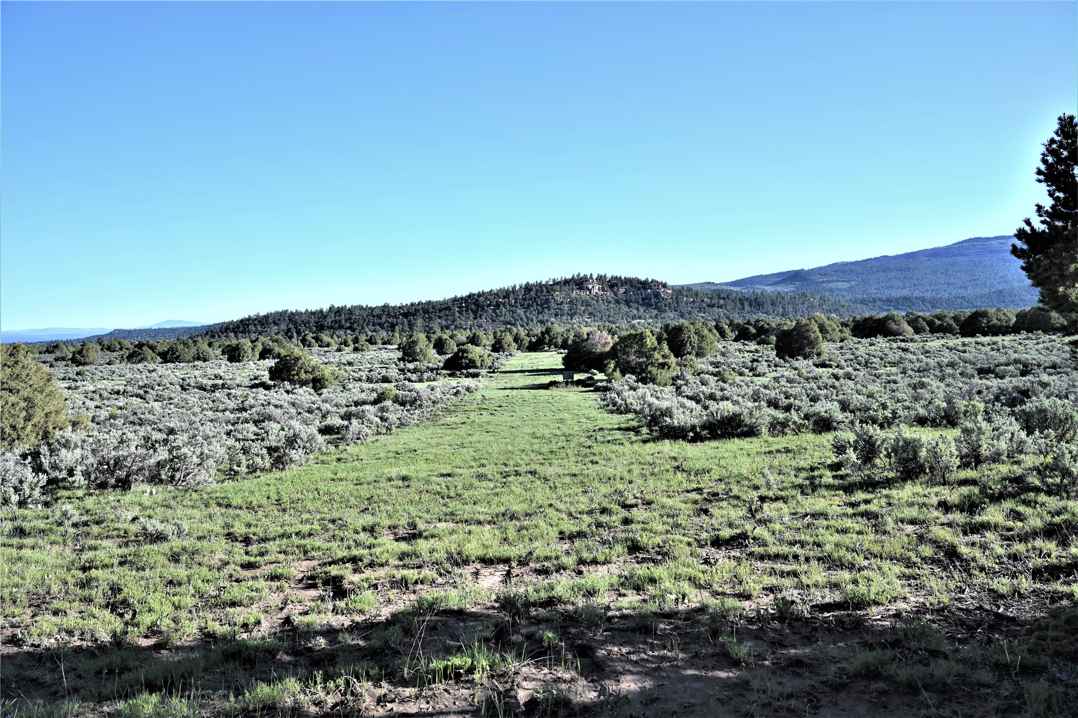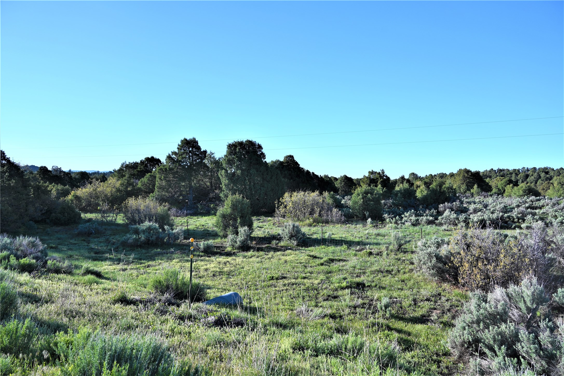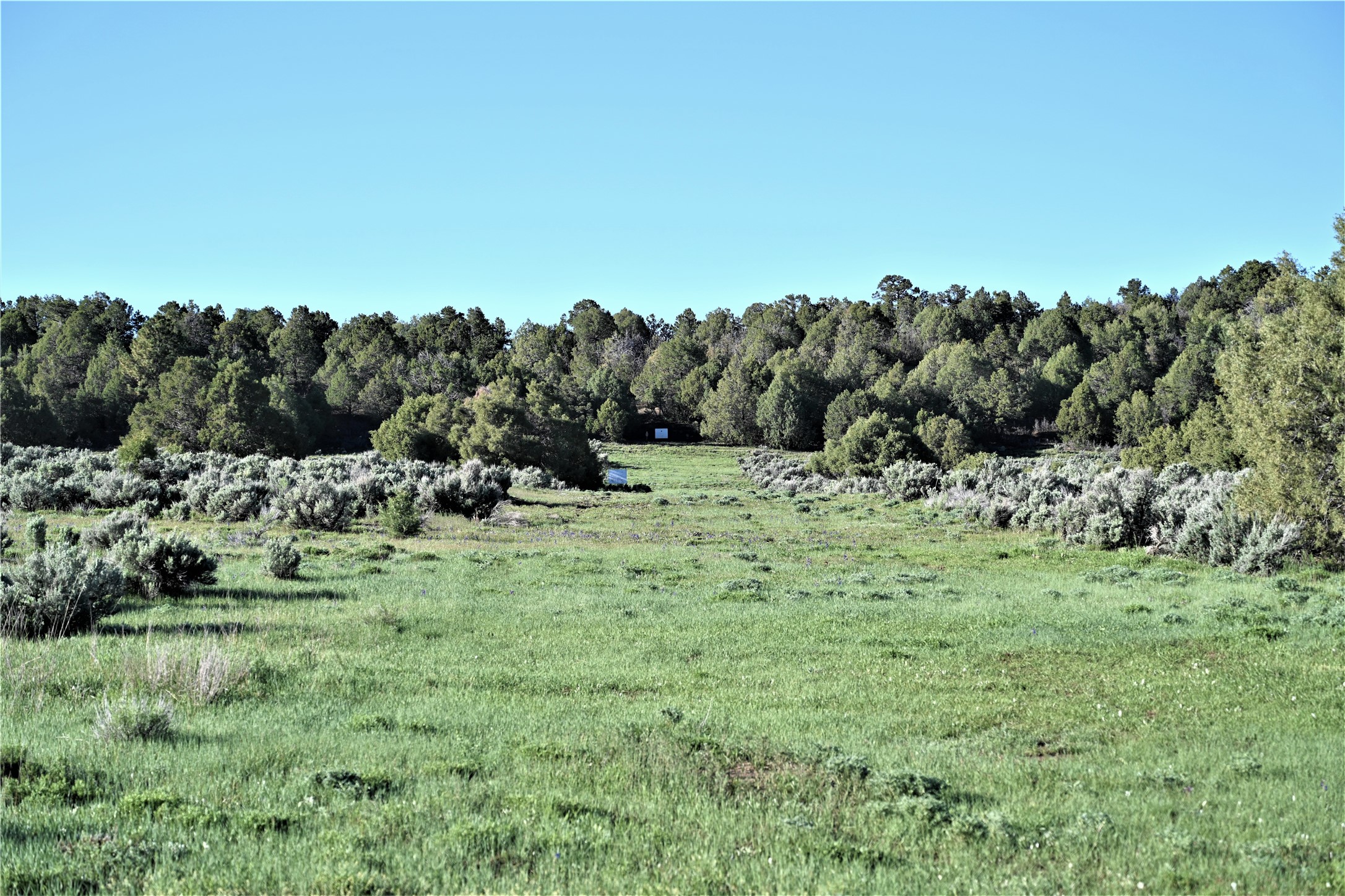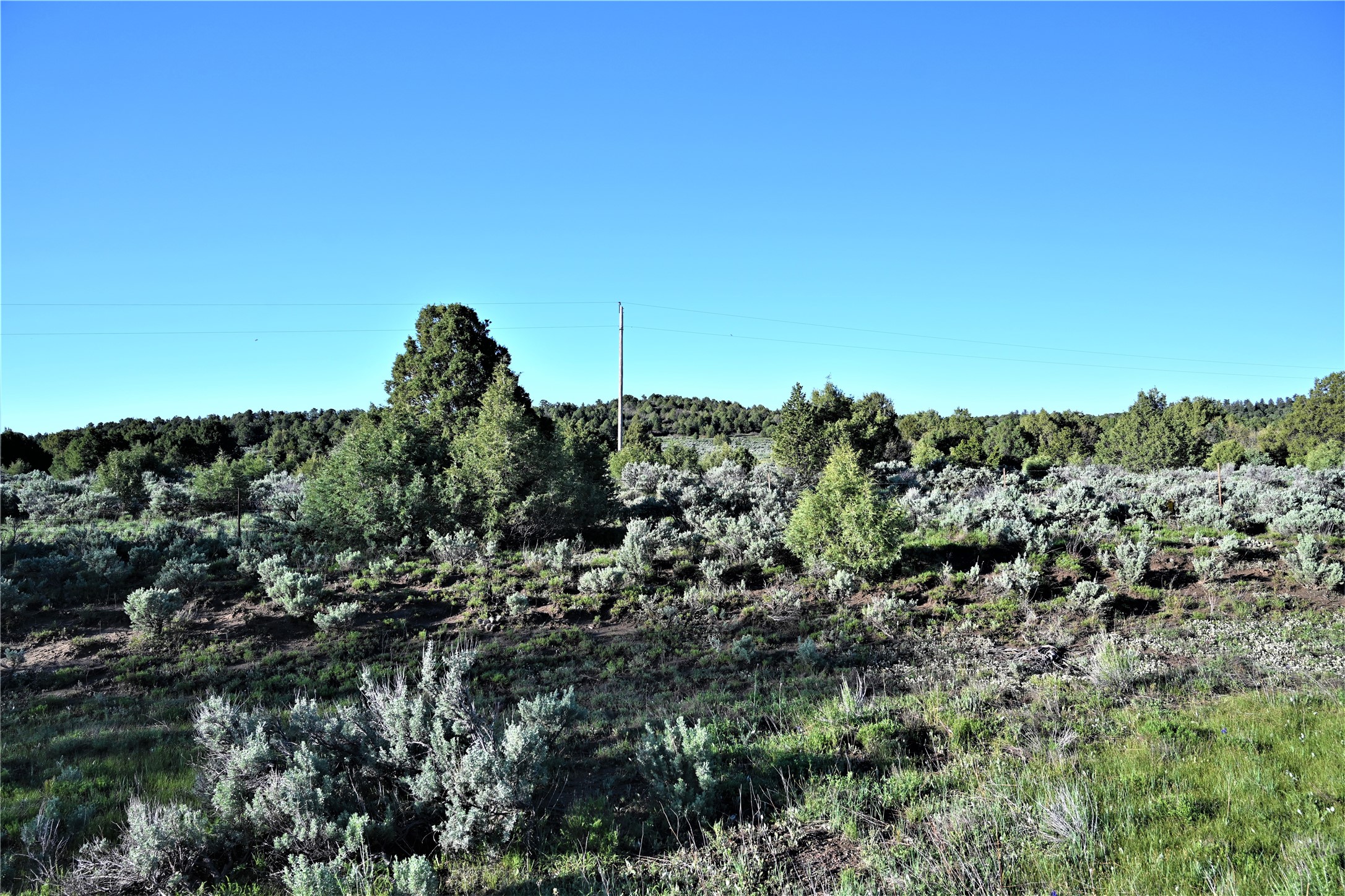 Beautiful Northern NM hunting property. The place has been set up for Elk and Mule Deer hunting. Has been assigned 1 Elk tag in the past years and a couple of Mule Deer tags as well. Turkey and Black Bear also roam this property. The current owner has put in work to get this place where its at today. Some areas of Sage have been cleared and planted with Grass and Alfalfa. Hunting Stand put in place. The fence has special areas for the animals to cross back and forth. Nice deep water hole that is spring and run off fed. A 300 yard shooting range for getting your Rifles zeroed in. This is GREAT private hunting property. Real easy to get around in. Power at the front of the property.