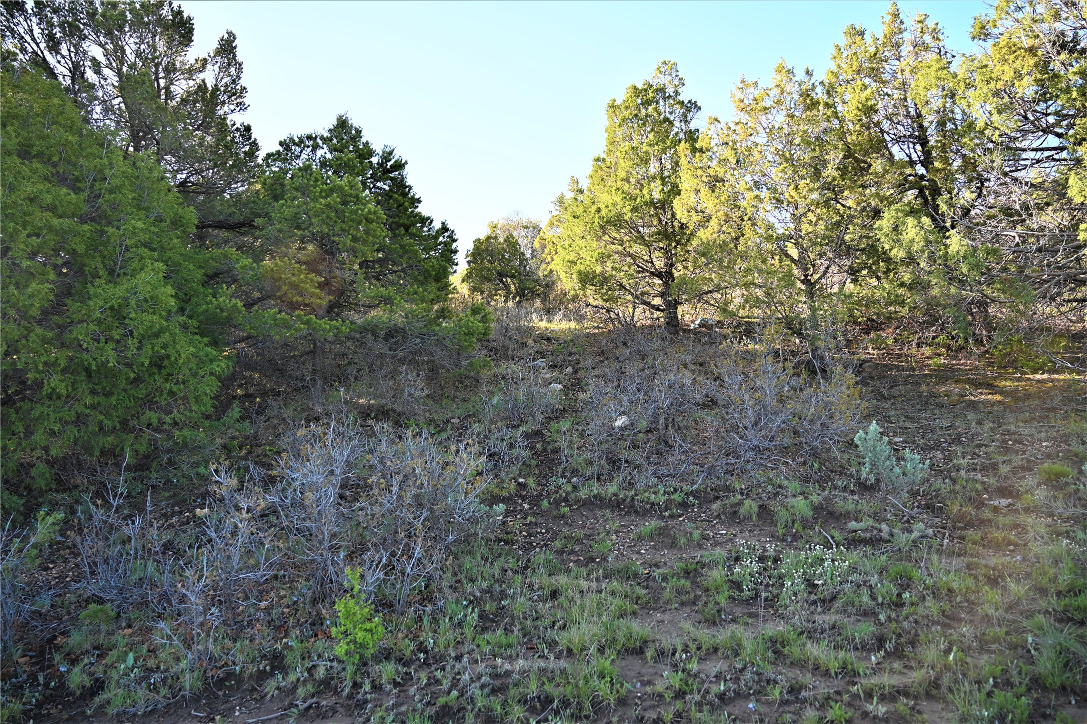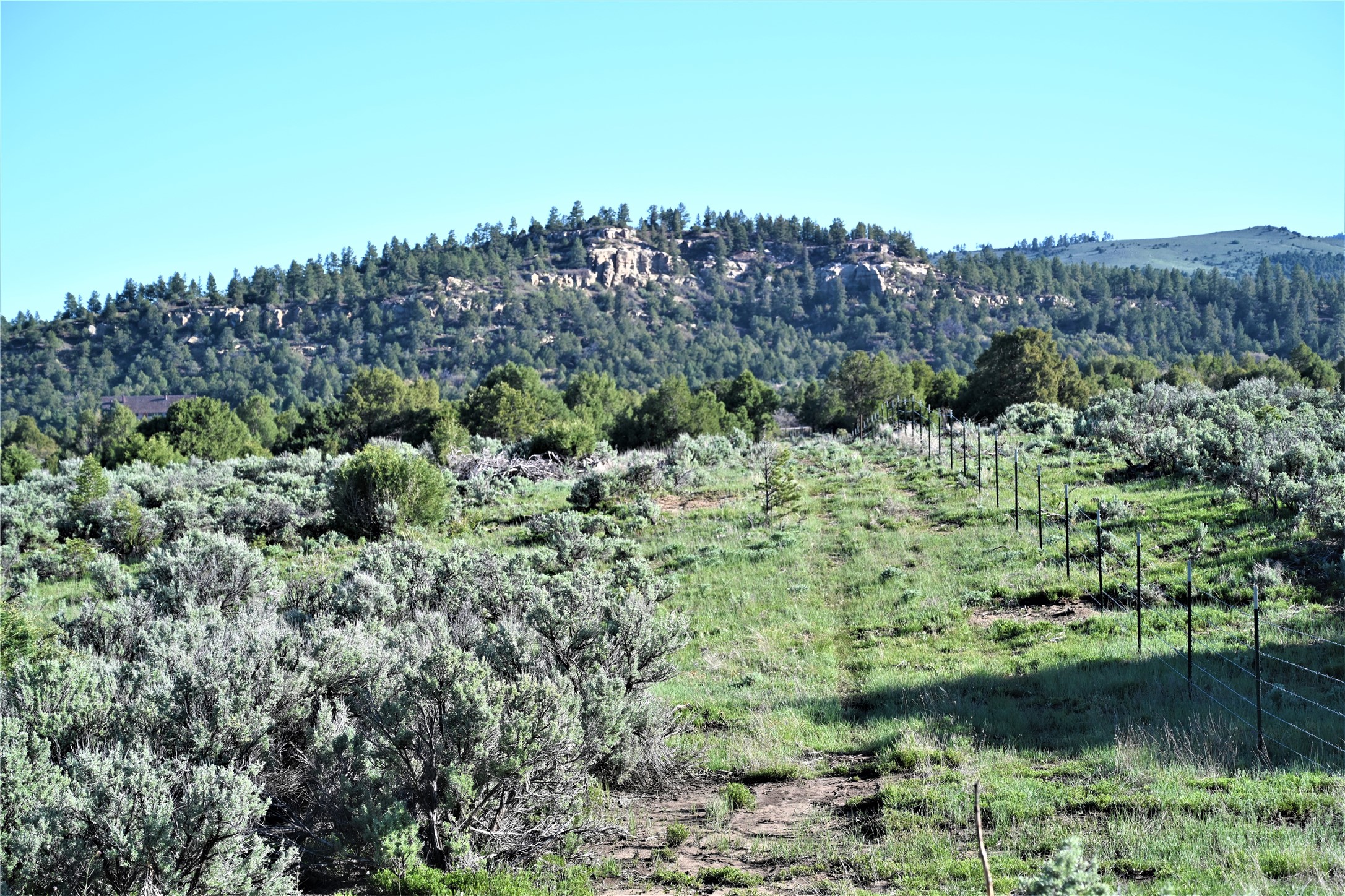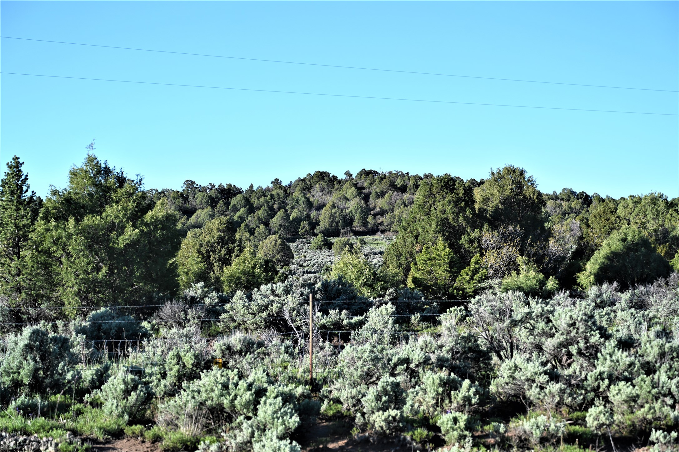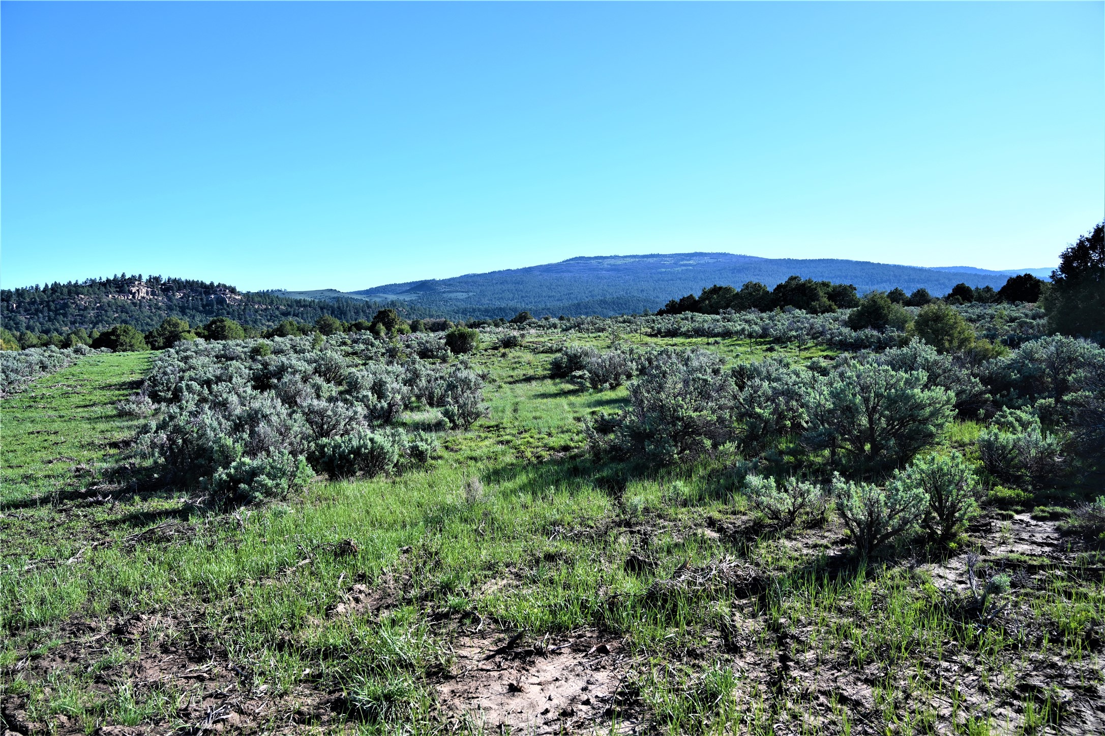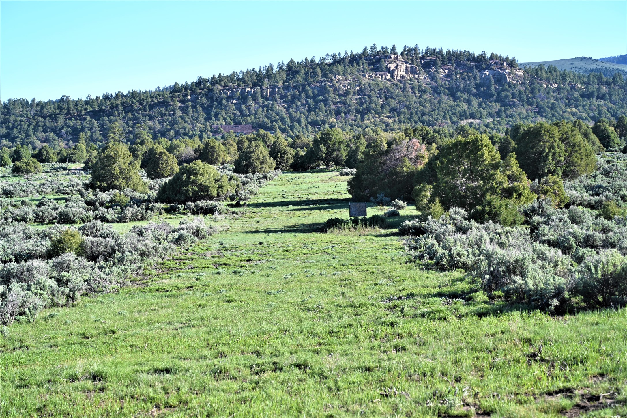 Beautiful Northern NM hunting property. The place has been set up for Elk and Mule Deer hunting. Has been assigned 1 Elk tag in the past years and a couple of Mule Deer tags as well. Turkey and Black Bear also roam this property. The current owner has put in work to get this place where its at today. Some areas of Sage have been cleared and planted with Grass and Alfalfa. Hunting Stand put in place. The fence has special areas for the animals to cross back and forth. Nice deep water hole that is spring and run off fed. A 300 yard shooting range for getting your Rifles zeroed in. This is GREAT private hunting property. Real easy to get around in. Power at the front of the property.