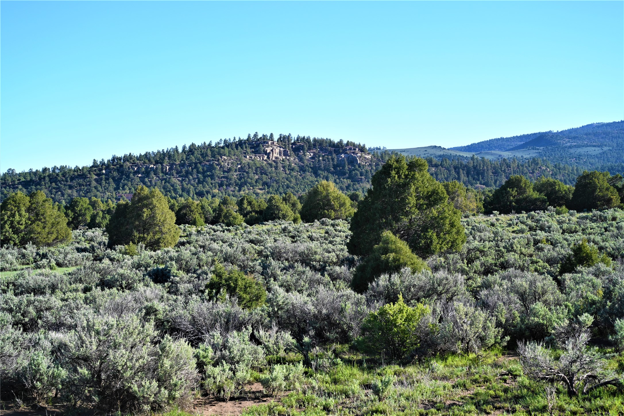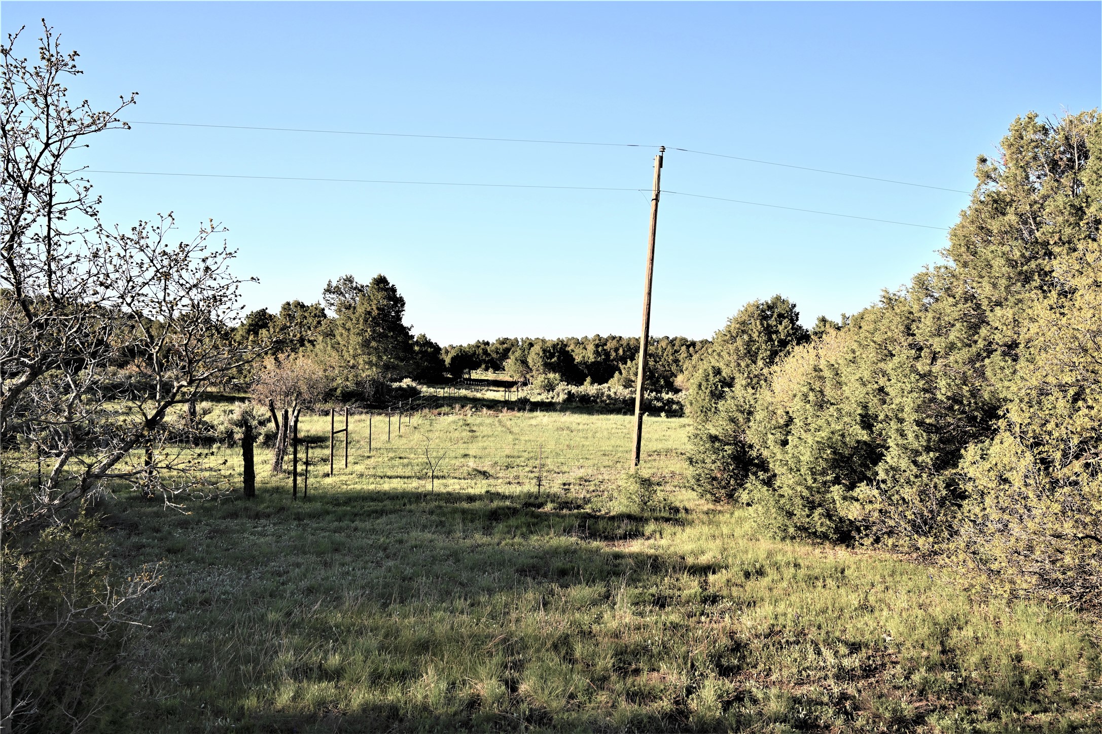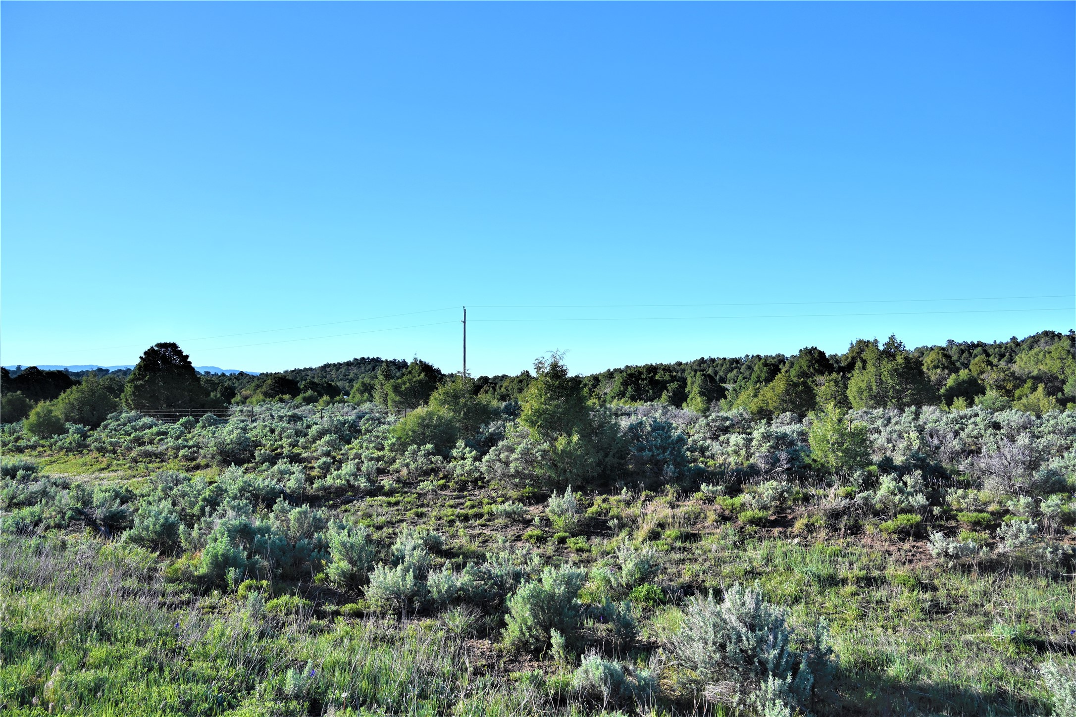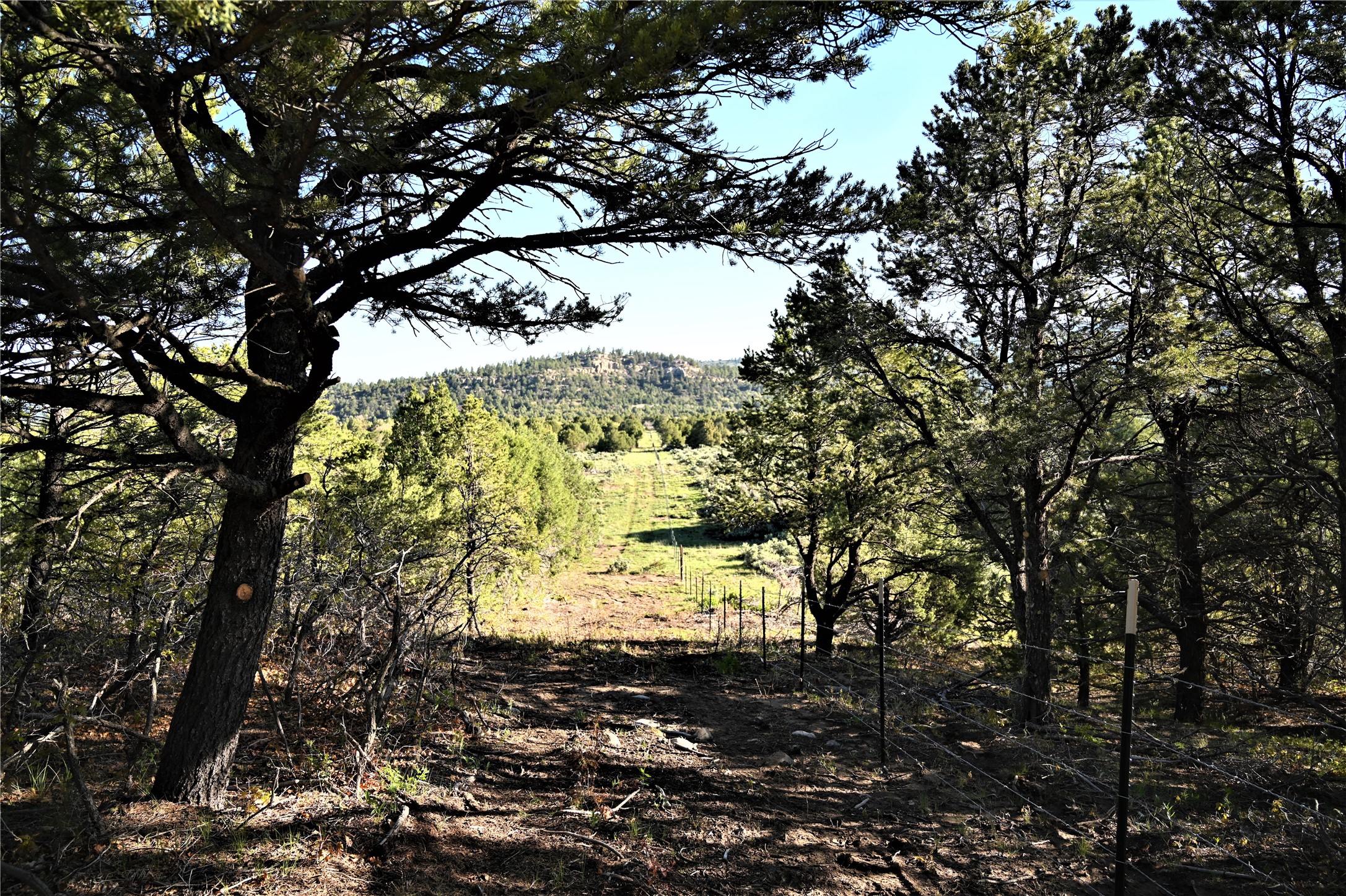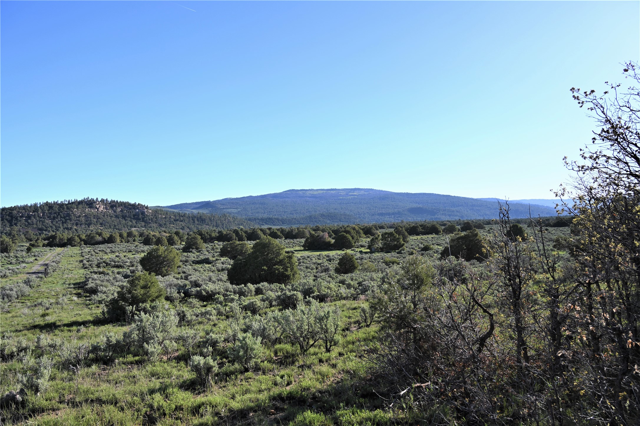 Beautiful Northern NM hunting property. The place has been set up for Elk and Mule Deer hunting. Has been assigned 1 Elk tag in the past years and a couple of Mule Deer tags as well. Turkey and Black Bear also roam this property. The current owner has put in work to get this place where its at today. Some areas of Sage have been cleared and planted with Grass and Alfalfa. Hunting Stand put in place. The fence has special areas for the animals to cross back and forth. Nice deep water hole that is spring and run off fed. A 300 yard shooting range for getting your Rifles zeroed in. This is GREAT private hunting property. Real easy to get around in. Power at the front of the property.