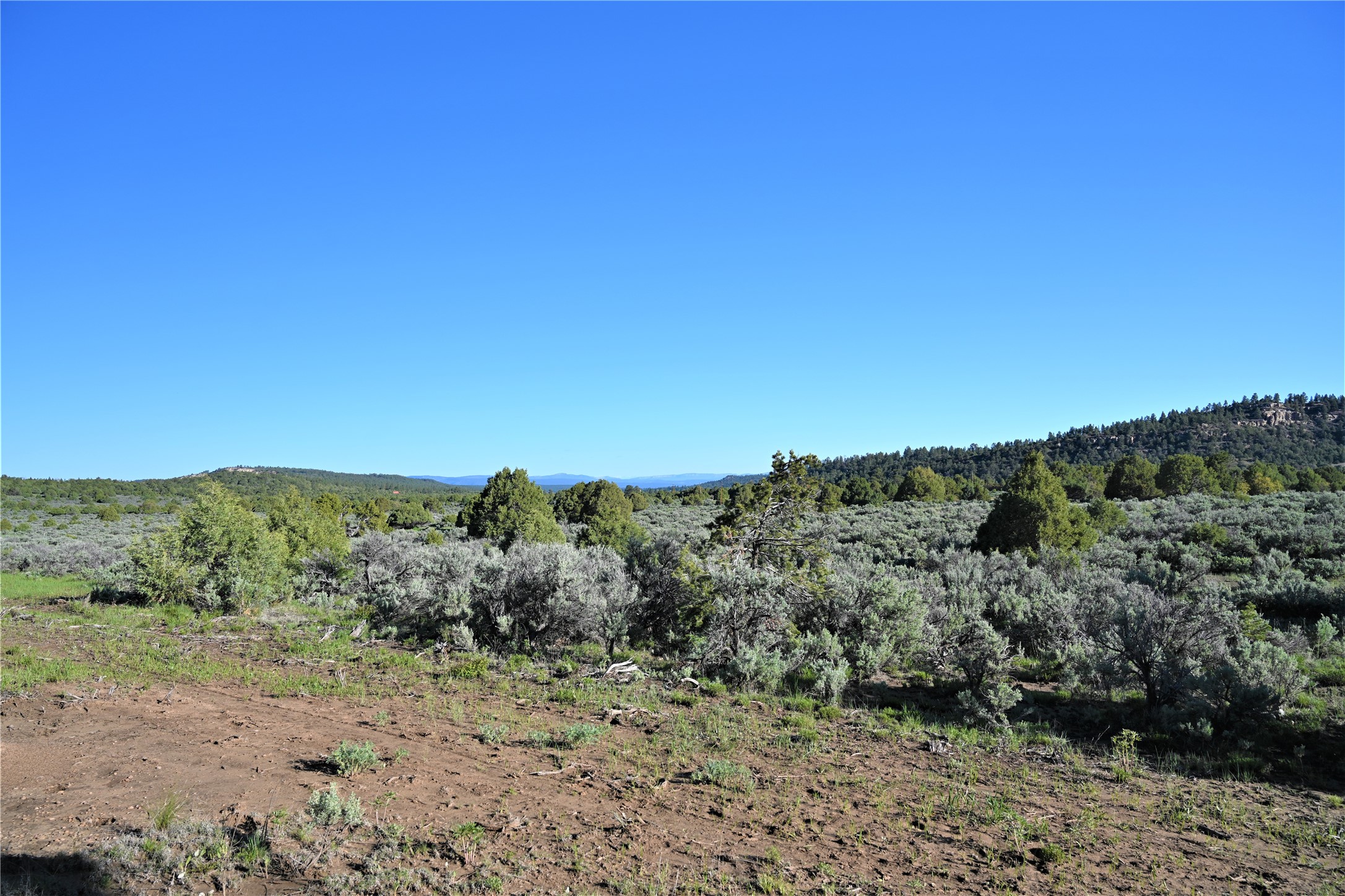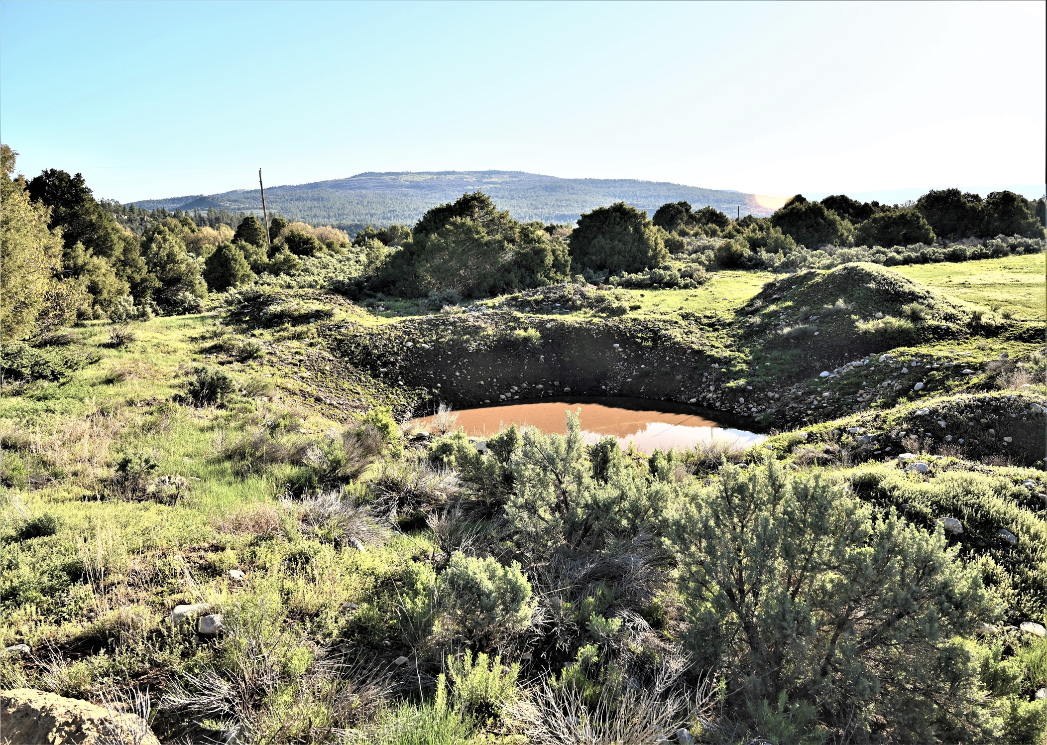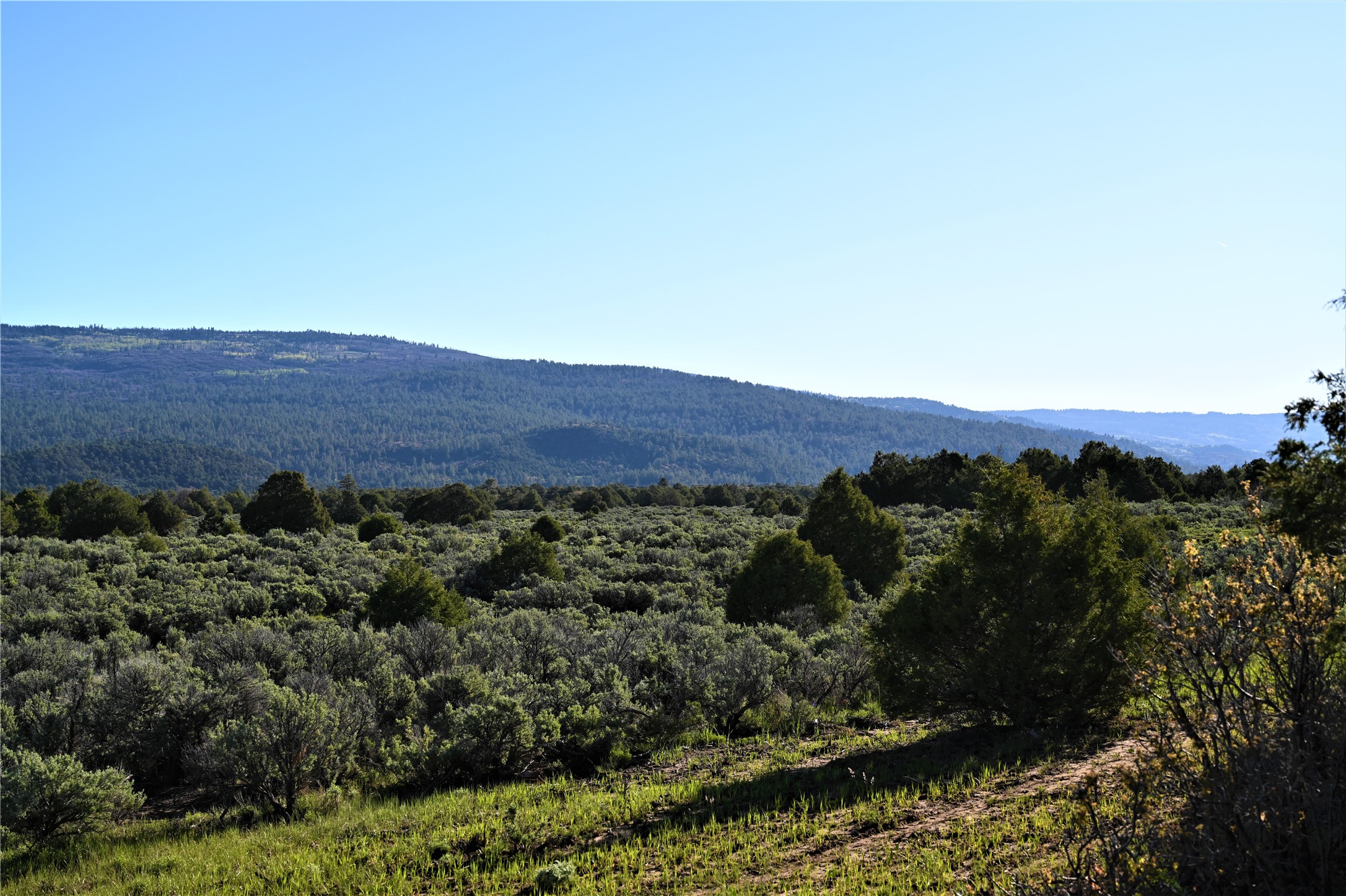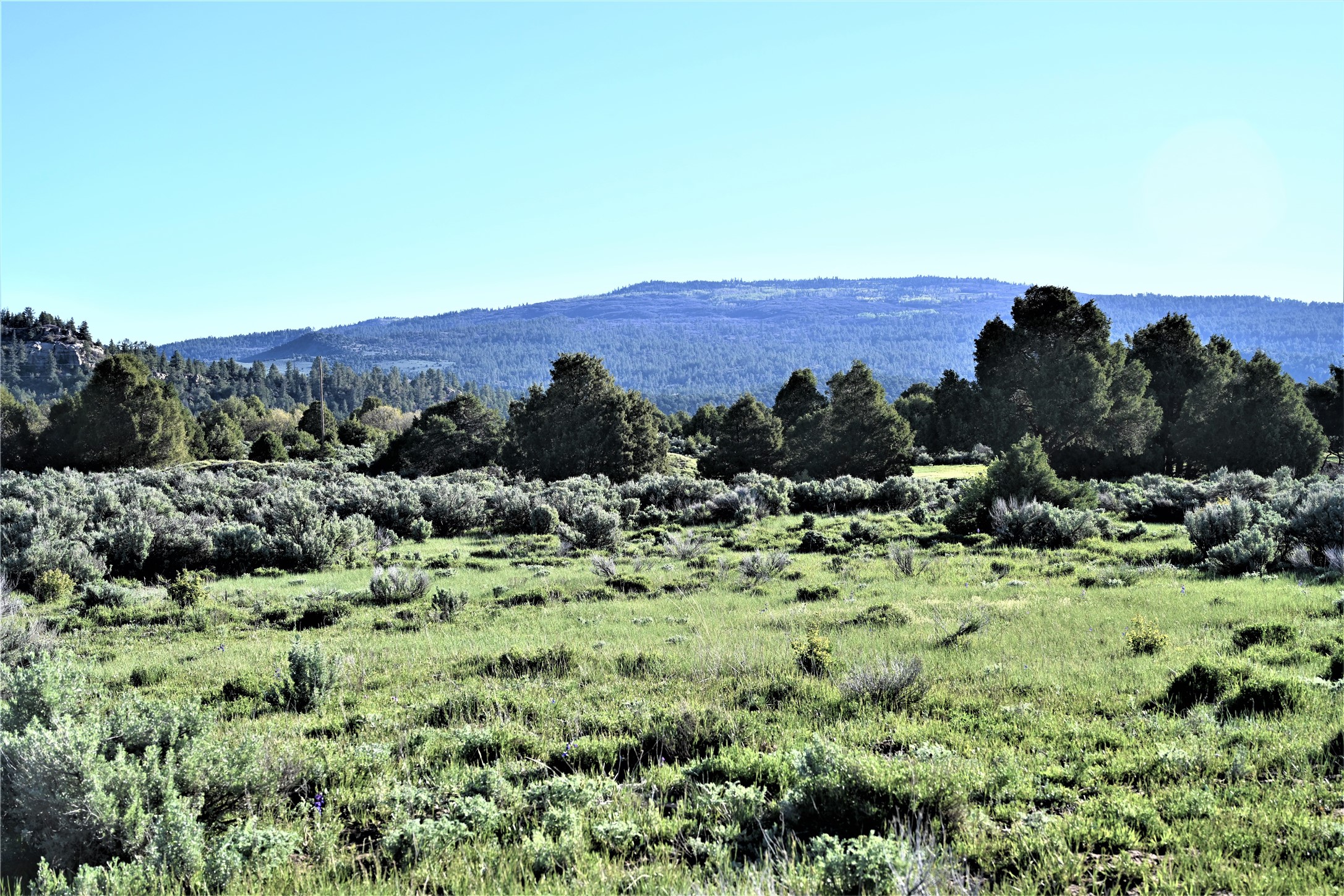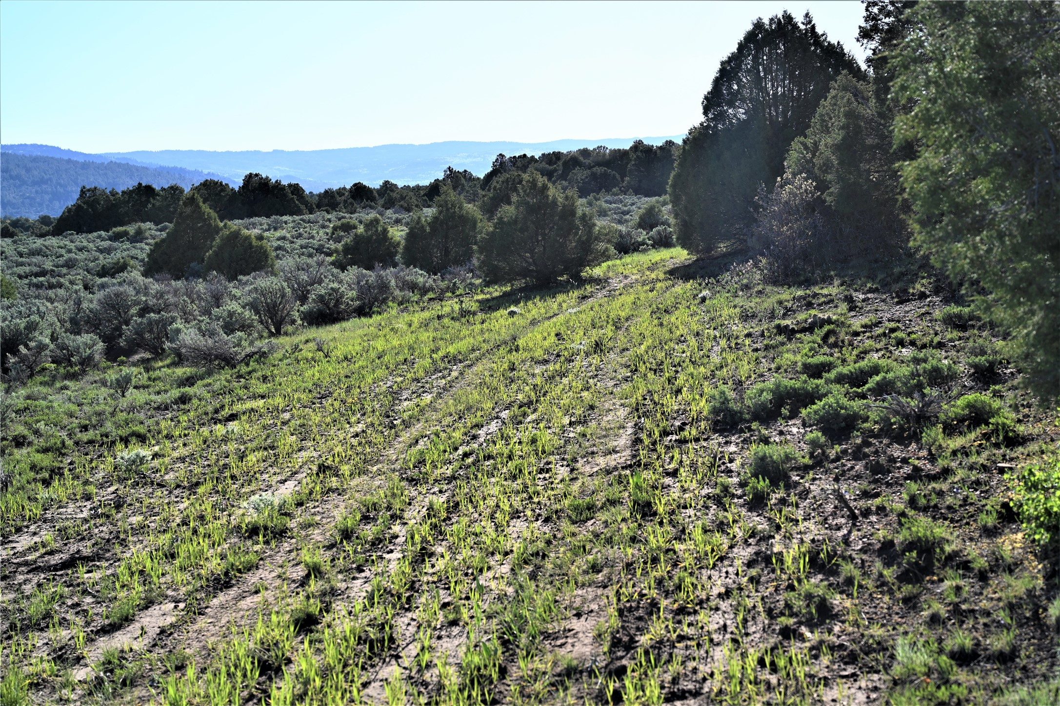 Beautiful Northern NM hunting property. The place has been set up for Elk and Mule Deer hunting. Has been assigned 1 Elk tag in the past years and a couple of Mule Deer tags as well. Turkey and Black Bear also roam this property. The current owner has put in work to get this place where its at today. Some areas of Sage have been cleared and planted with Grass and Alfalfa. Hunting Stand put in place. The fence has special areas for the animals to cross back and forth. Nice deep water hole that is spring and run off fed. A 300 yard shooting range for getting your Rifles zeroed in. This is GREAT private hunting property. Real easy to get around in. Power at the front of the property.